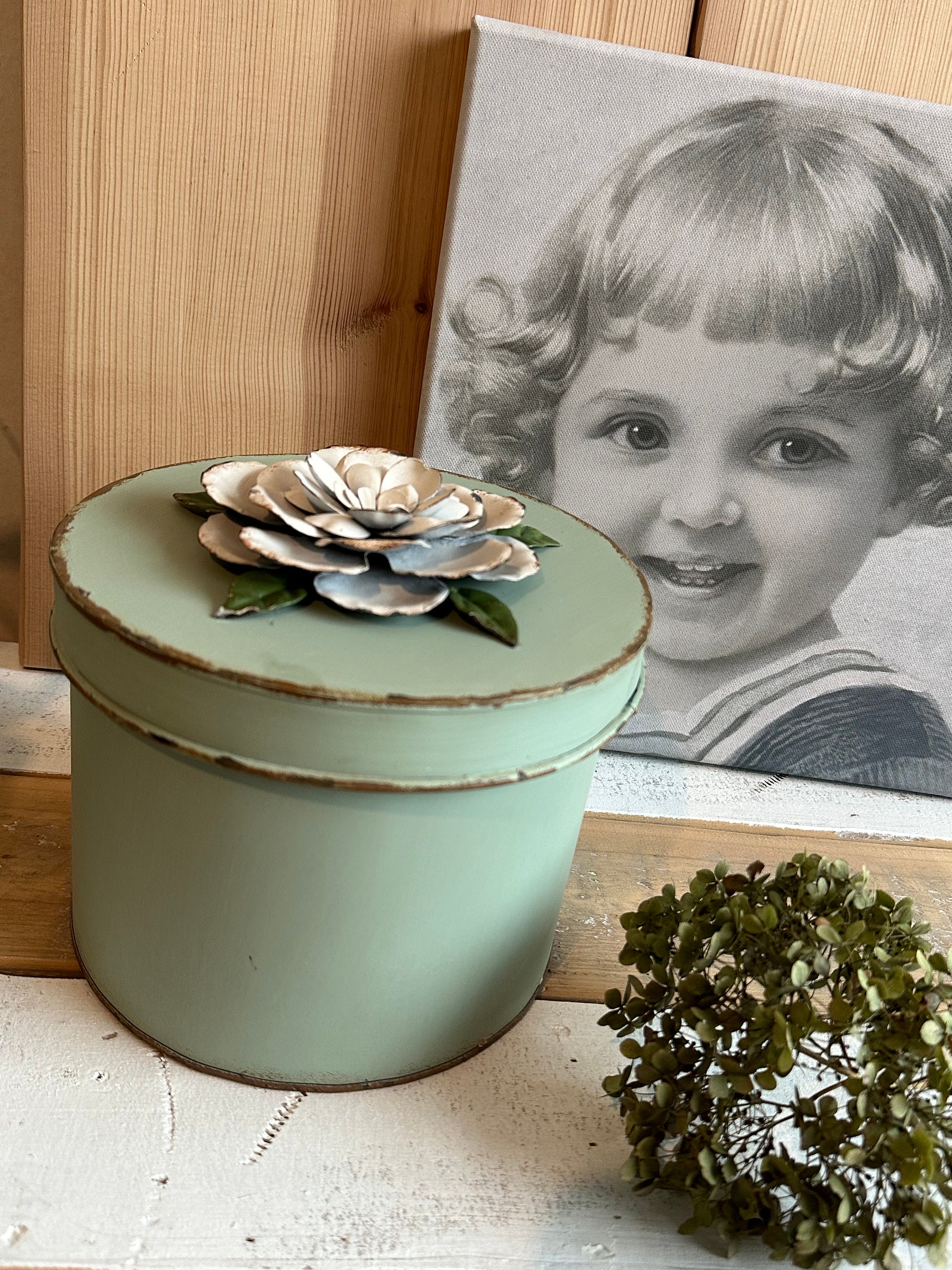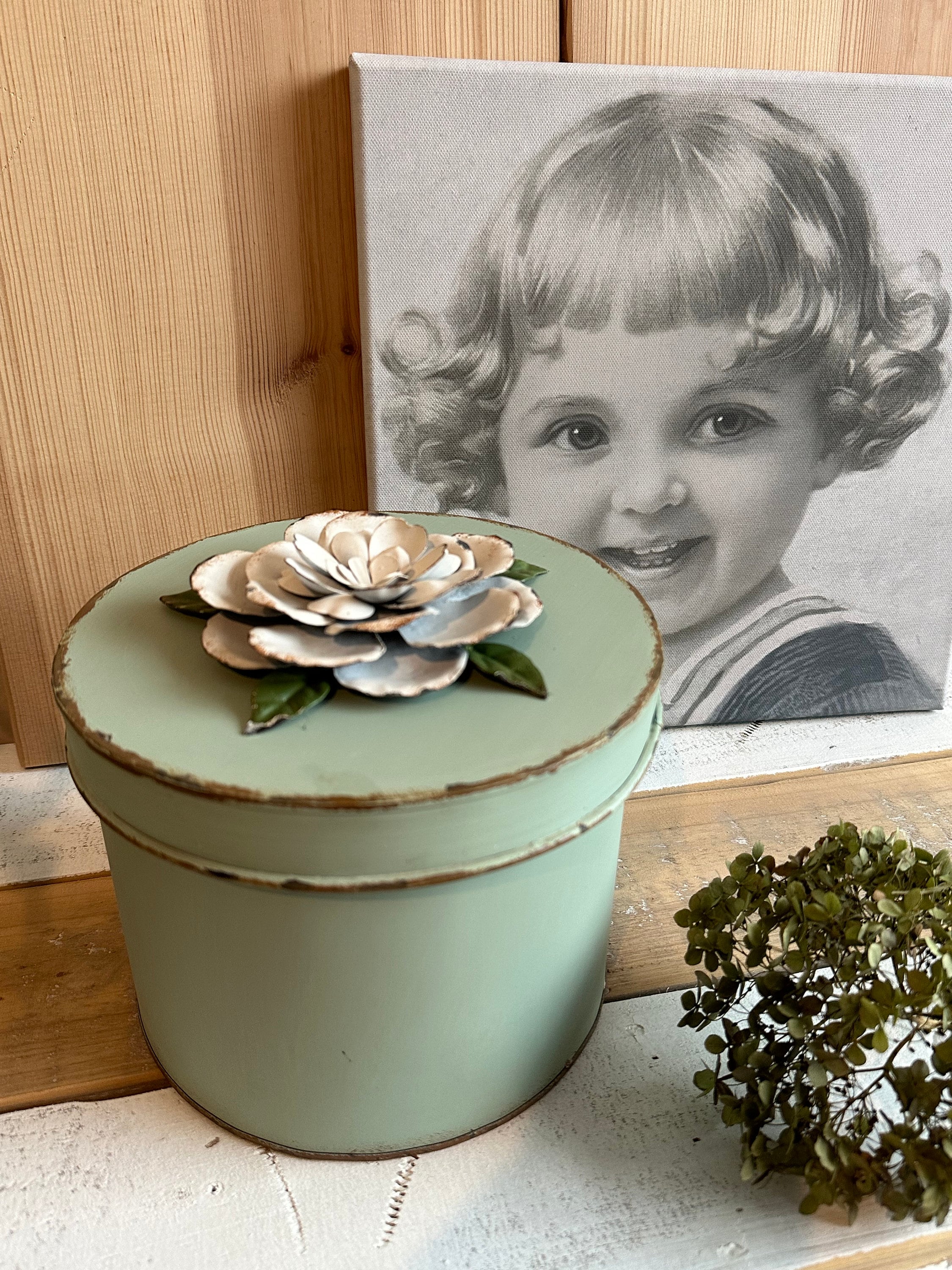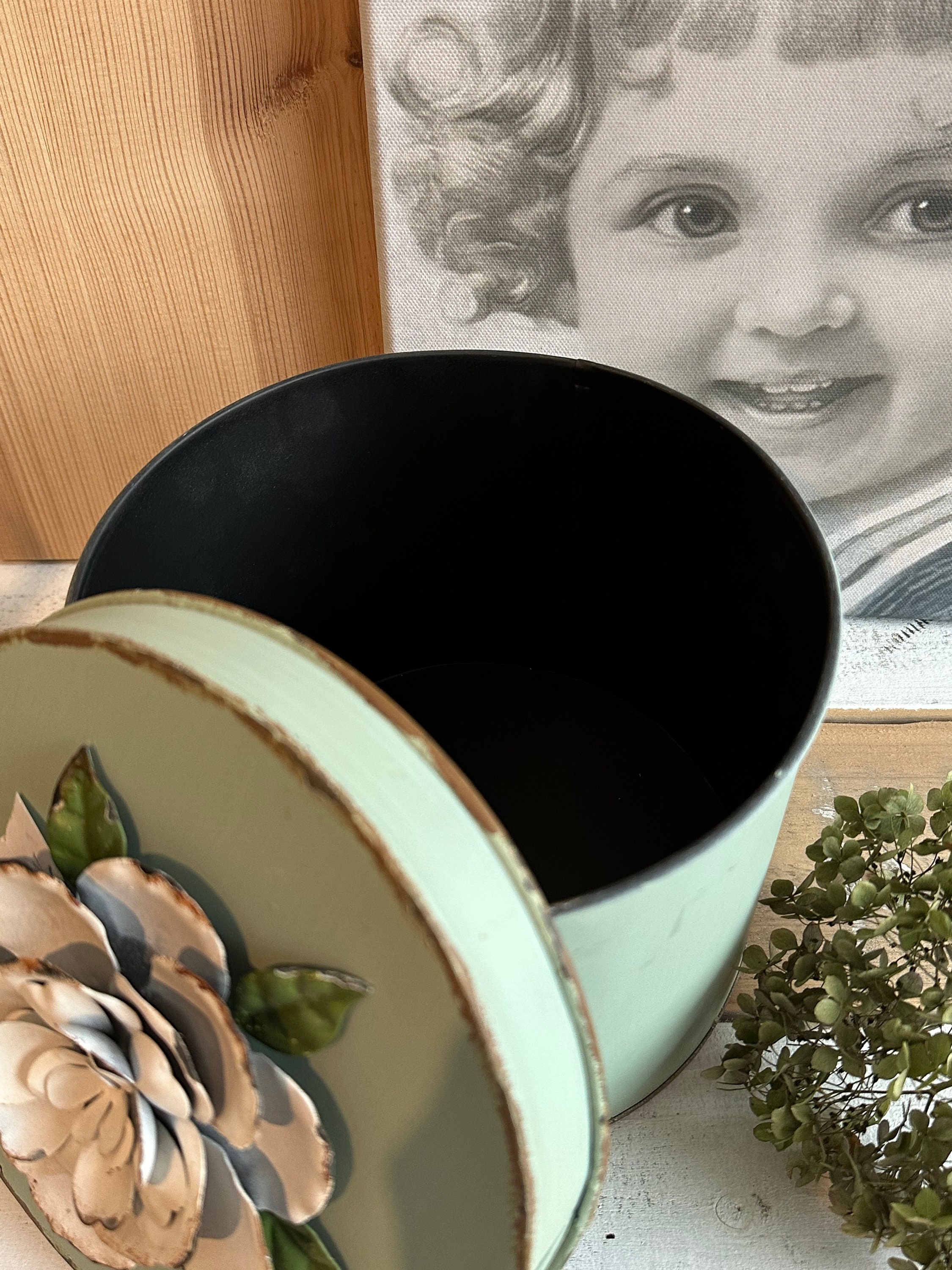 A romantic tin can - made of metal in a beautiful old-fashioned green - these cans are from bygone eras and
