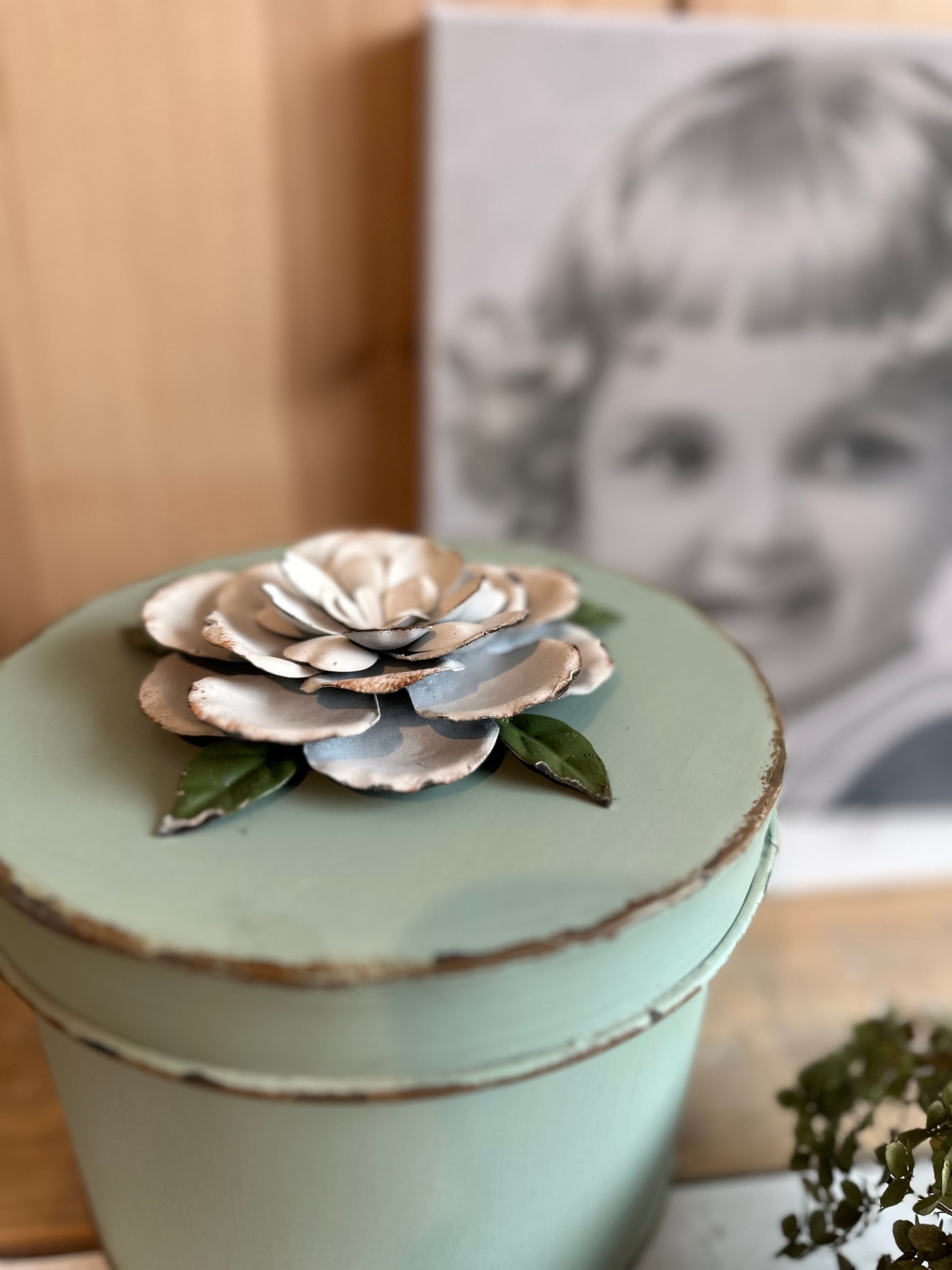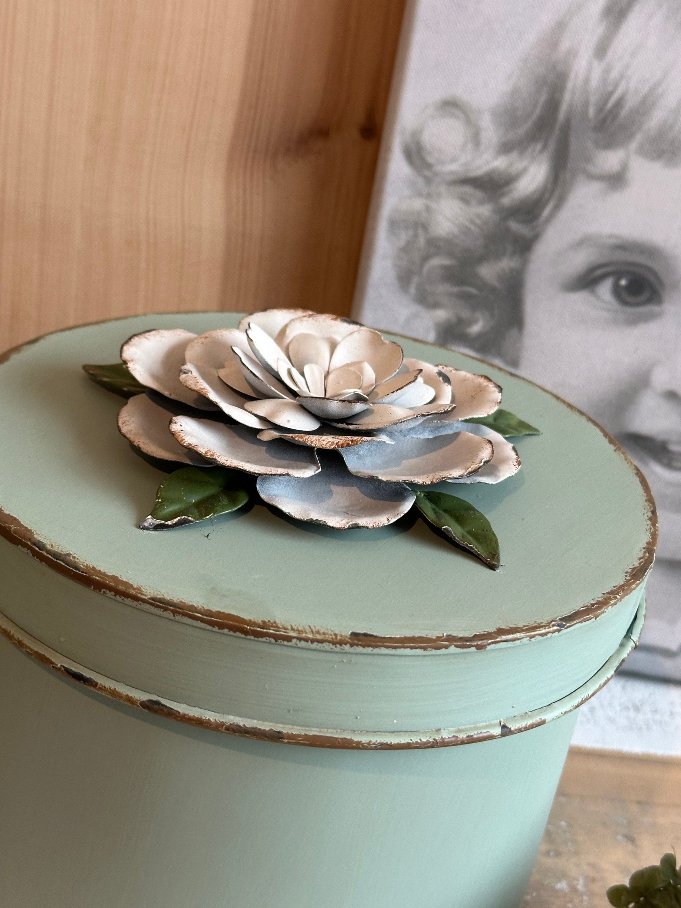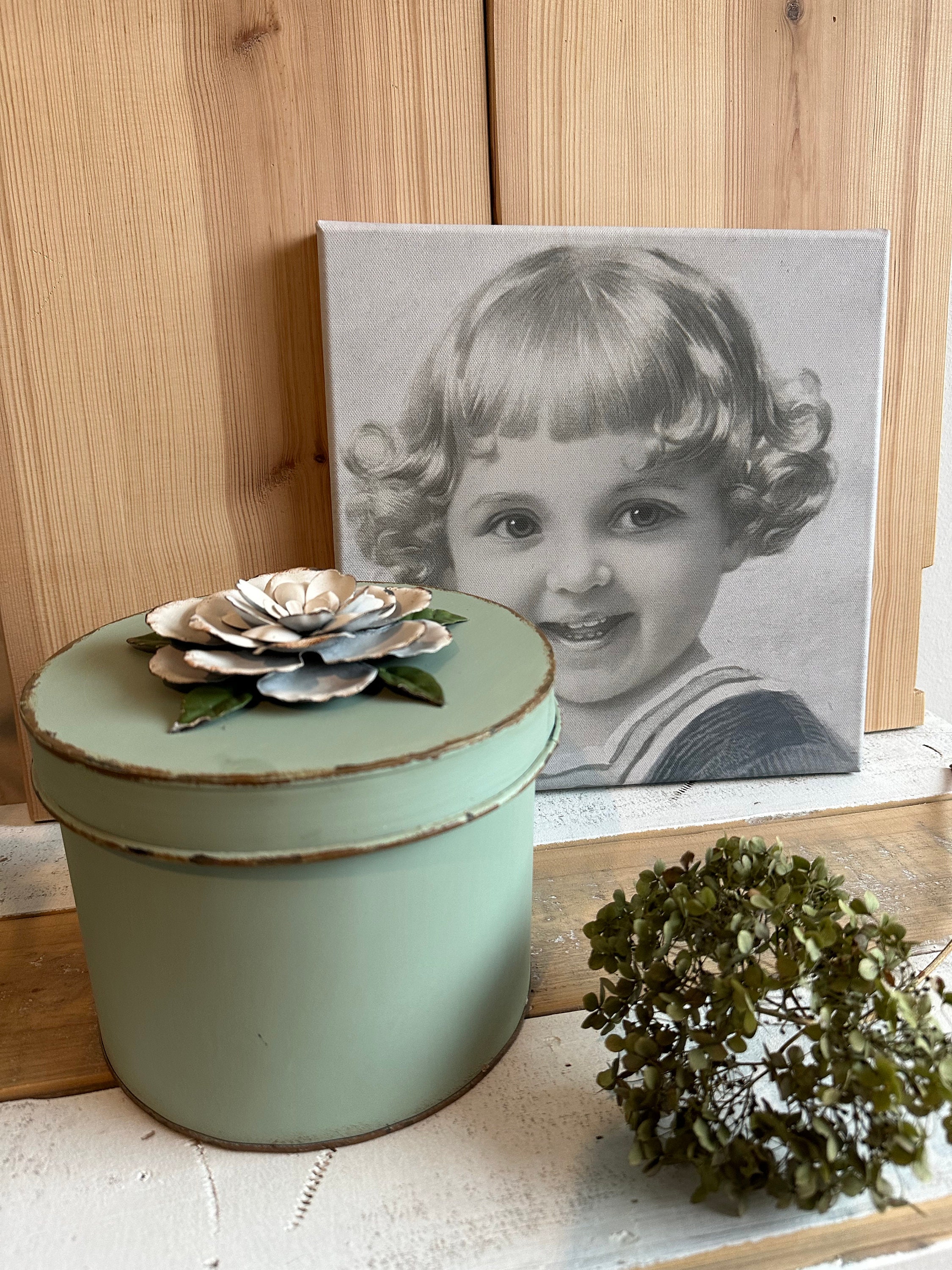 A romantic tin can - made of metal in a beautiful old-fashioned green - these cans are from bygone eras and