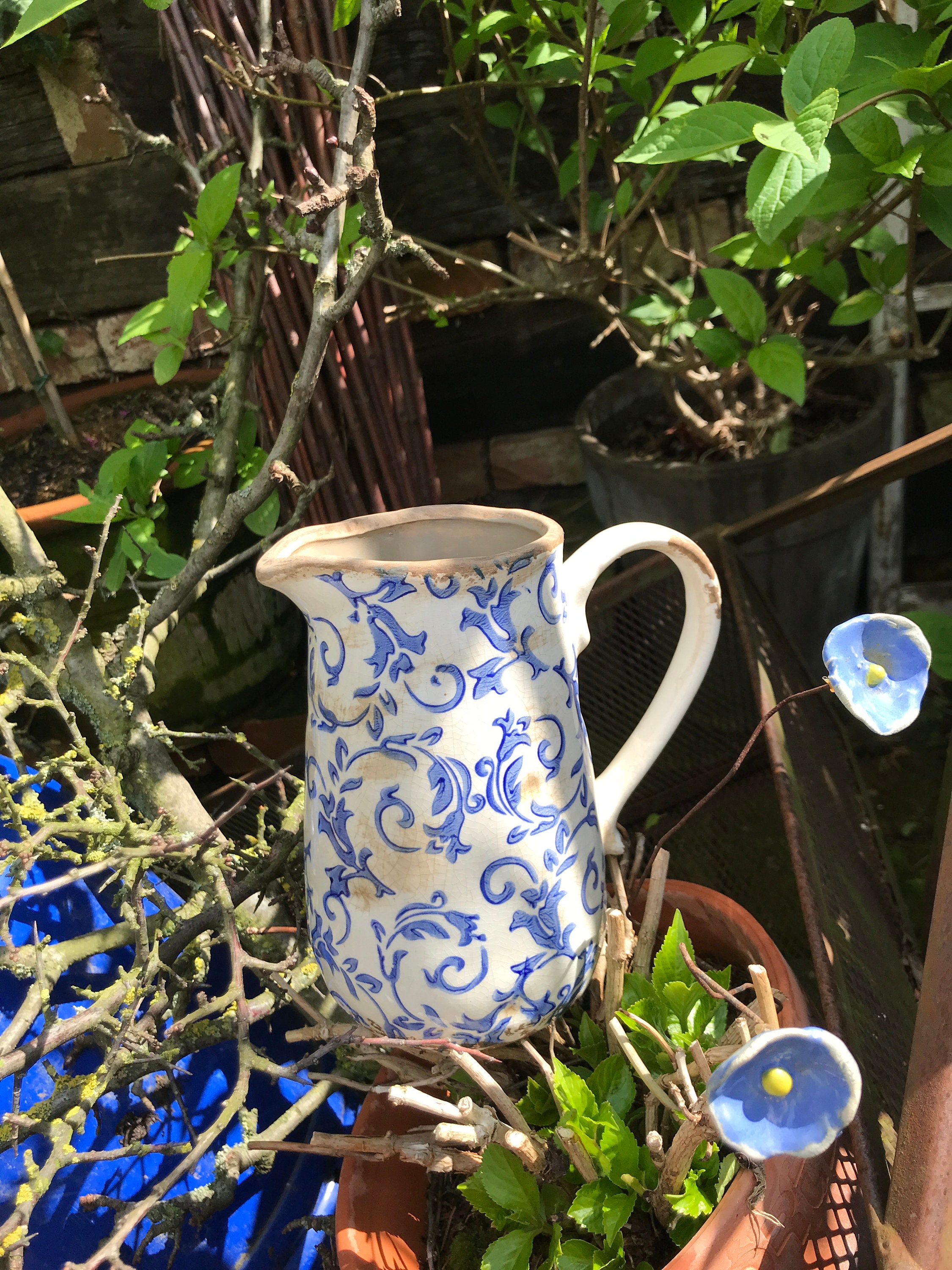 Ceramic – this enchanting jug was modeled after the French country house look – a lovely pattern combined with this beautiful old, cracked patina, as if these pots were decades old – it is reminiscent of times gone by and is a lovely companion for fresh meadow bouquets, branches, or dried grasses – create your own ambiance.🌼