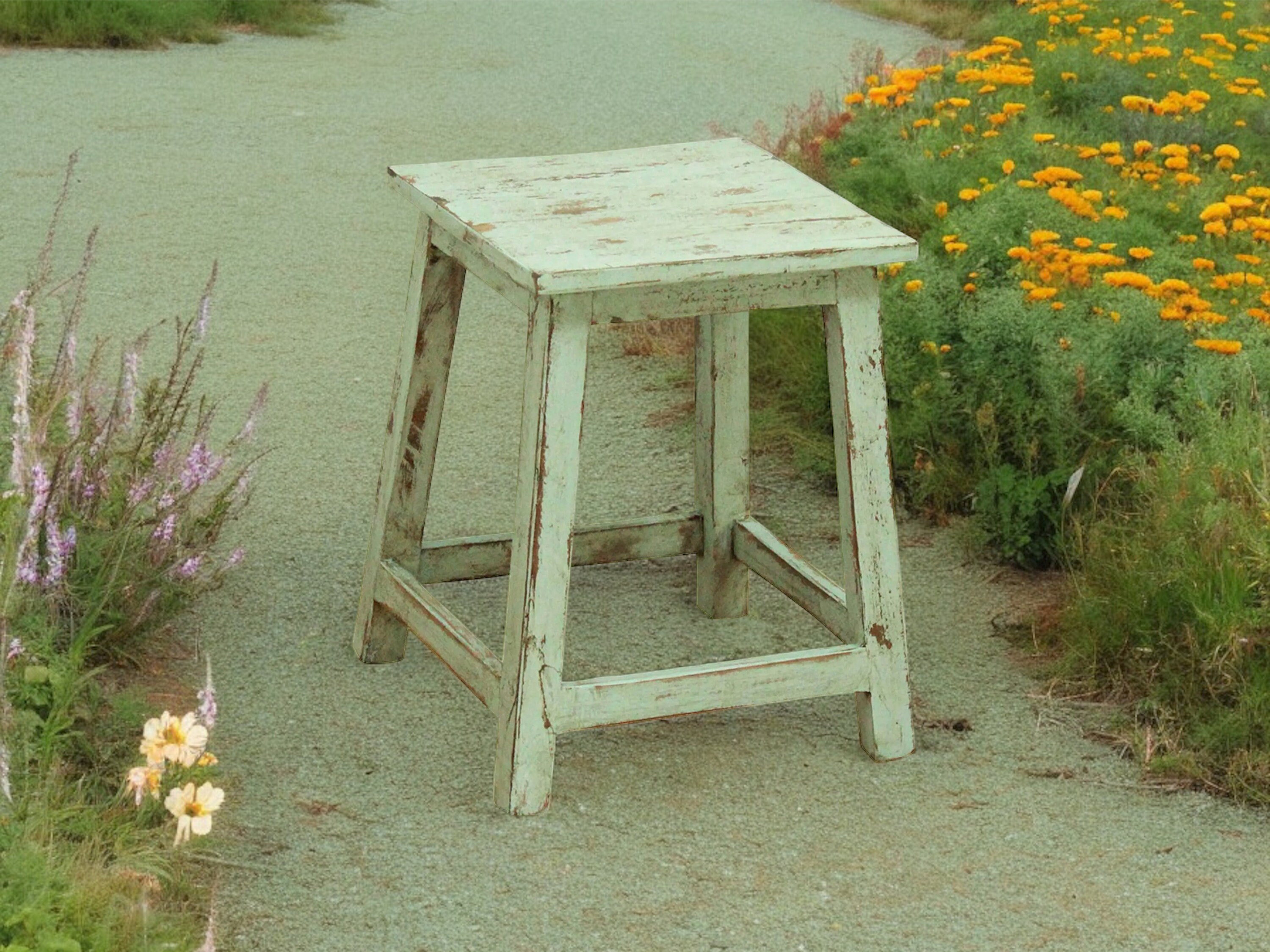 Stool, side table, antique finish, bench, furniture, vintage, shabby