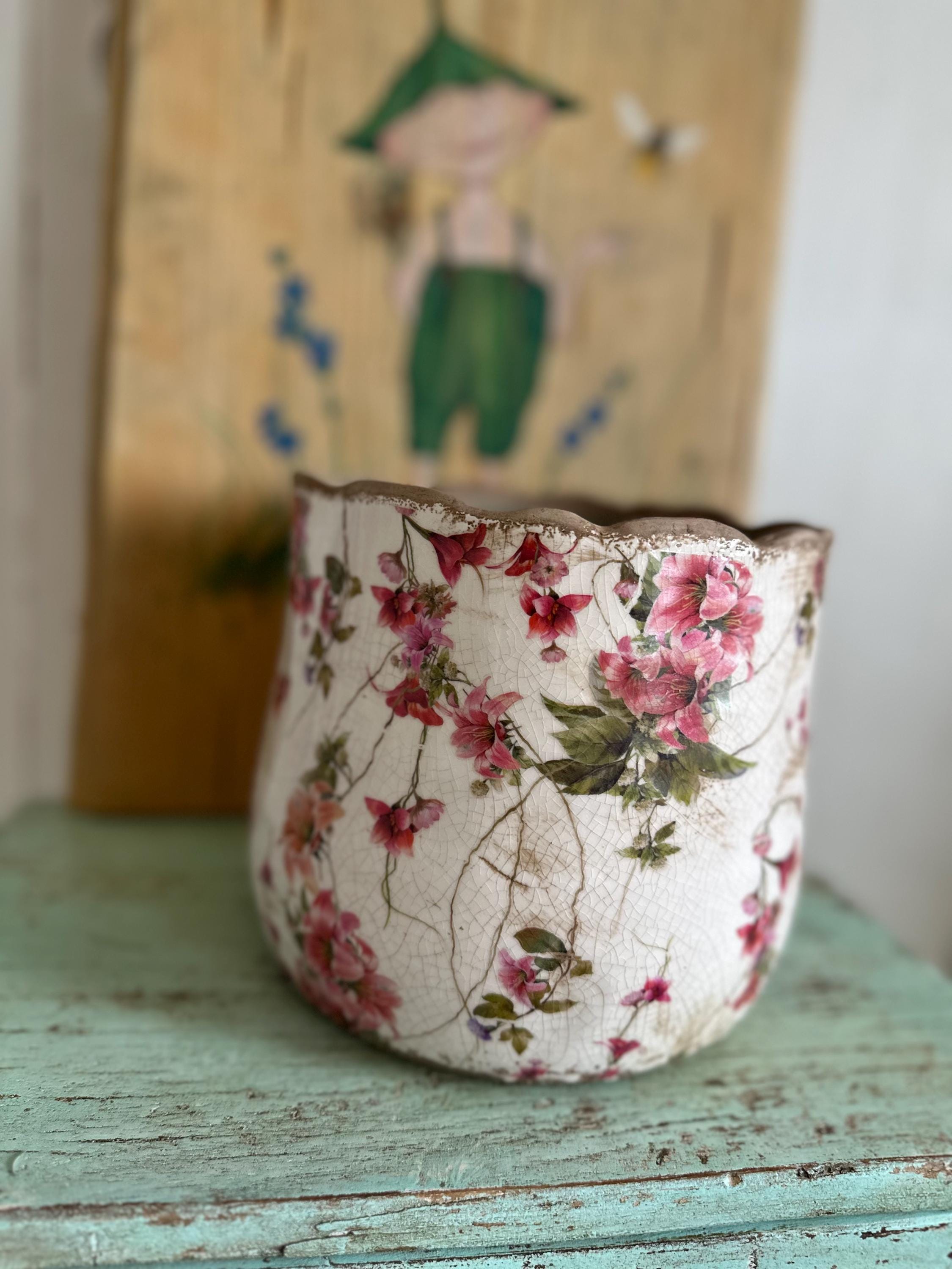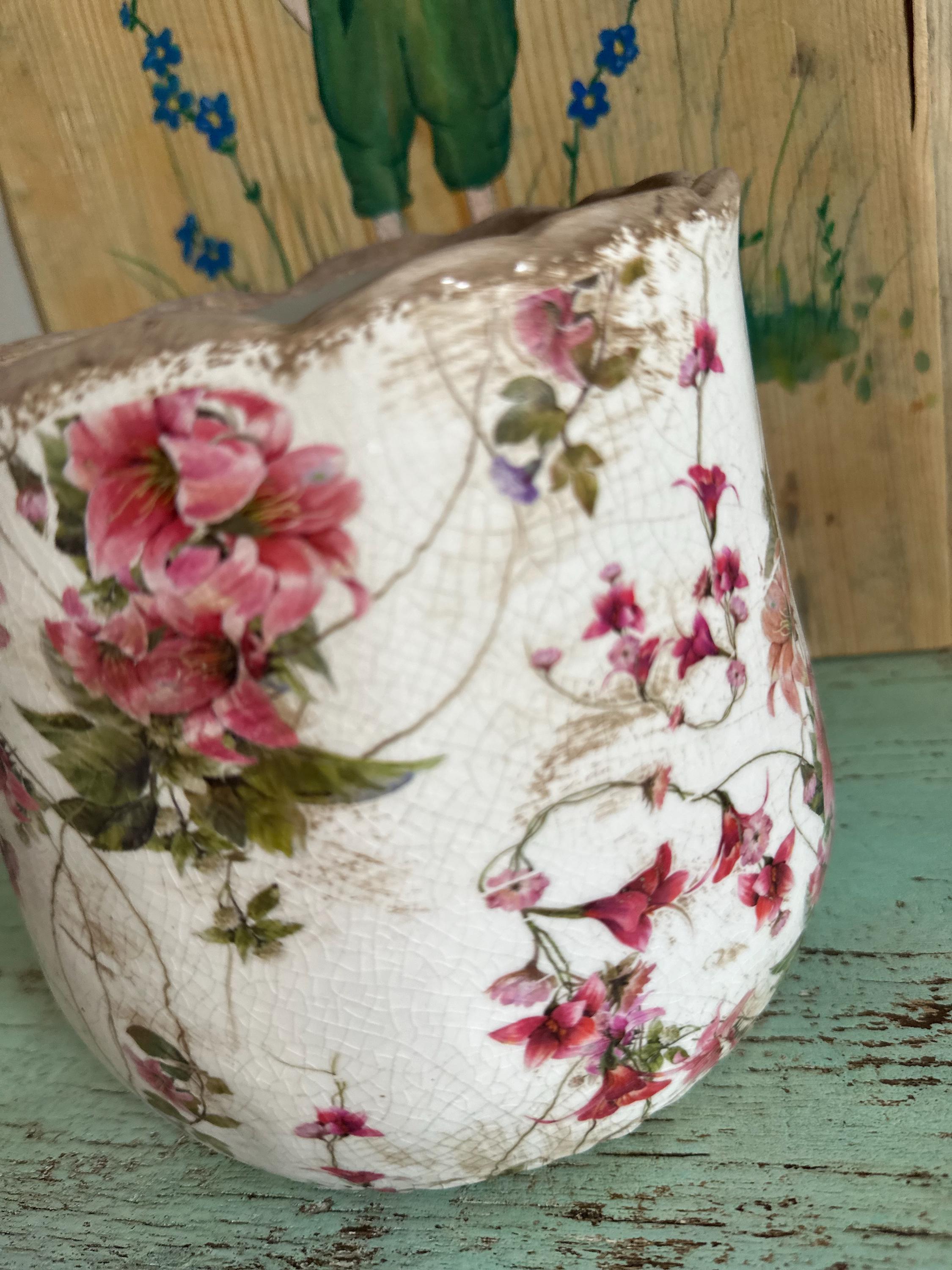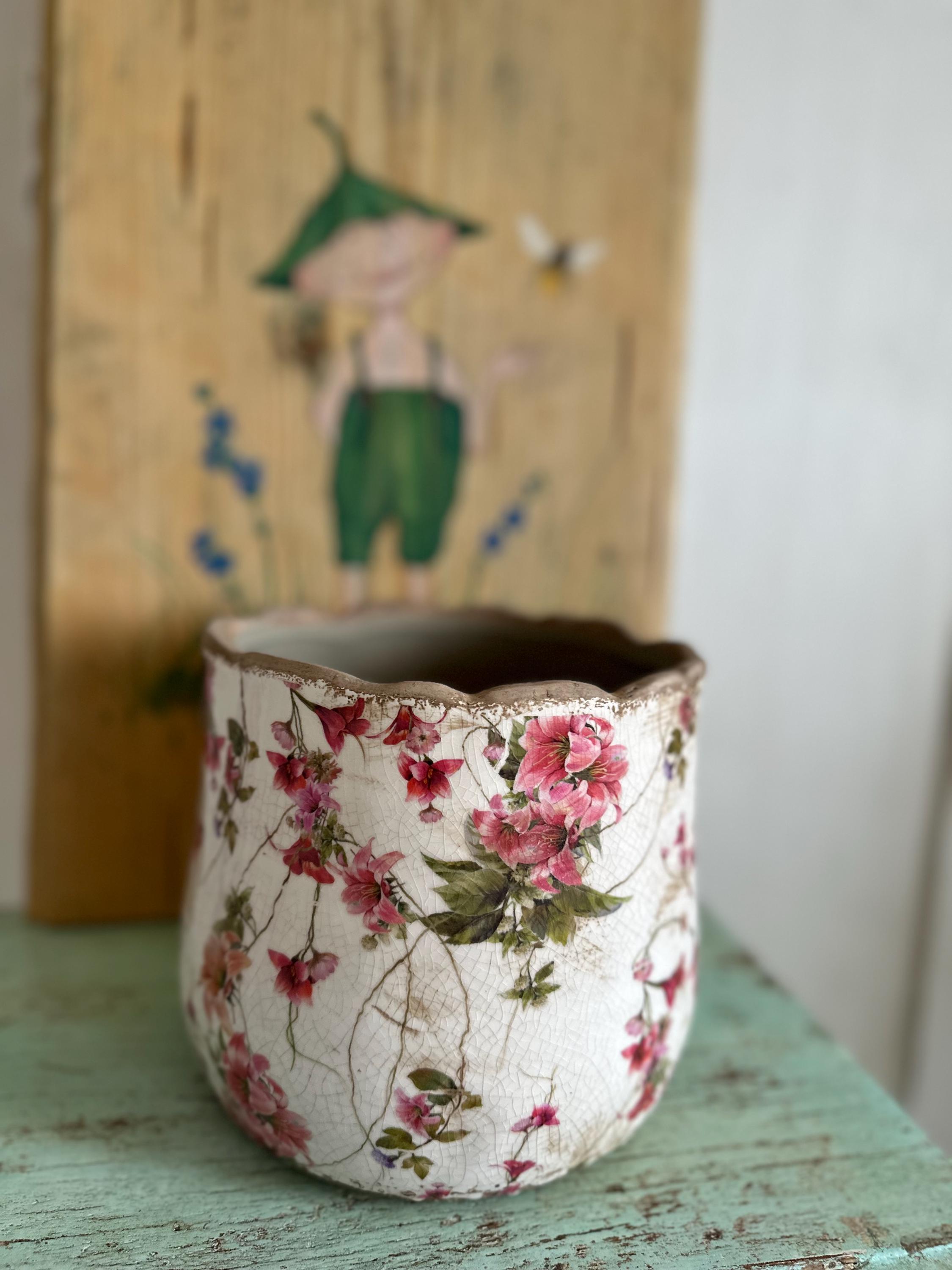 Ceramic - these enchanting pots were modeled after the French country house look - a lovely floral pattern combined with this beautiful old cracked patina, as if these pots were decades old - it is reminiscent of times gone by and is a beautiful companion for fresh meadow bouquets, branches, or dried grasses - create your own ambiance.🌼