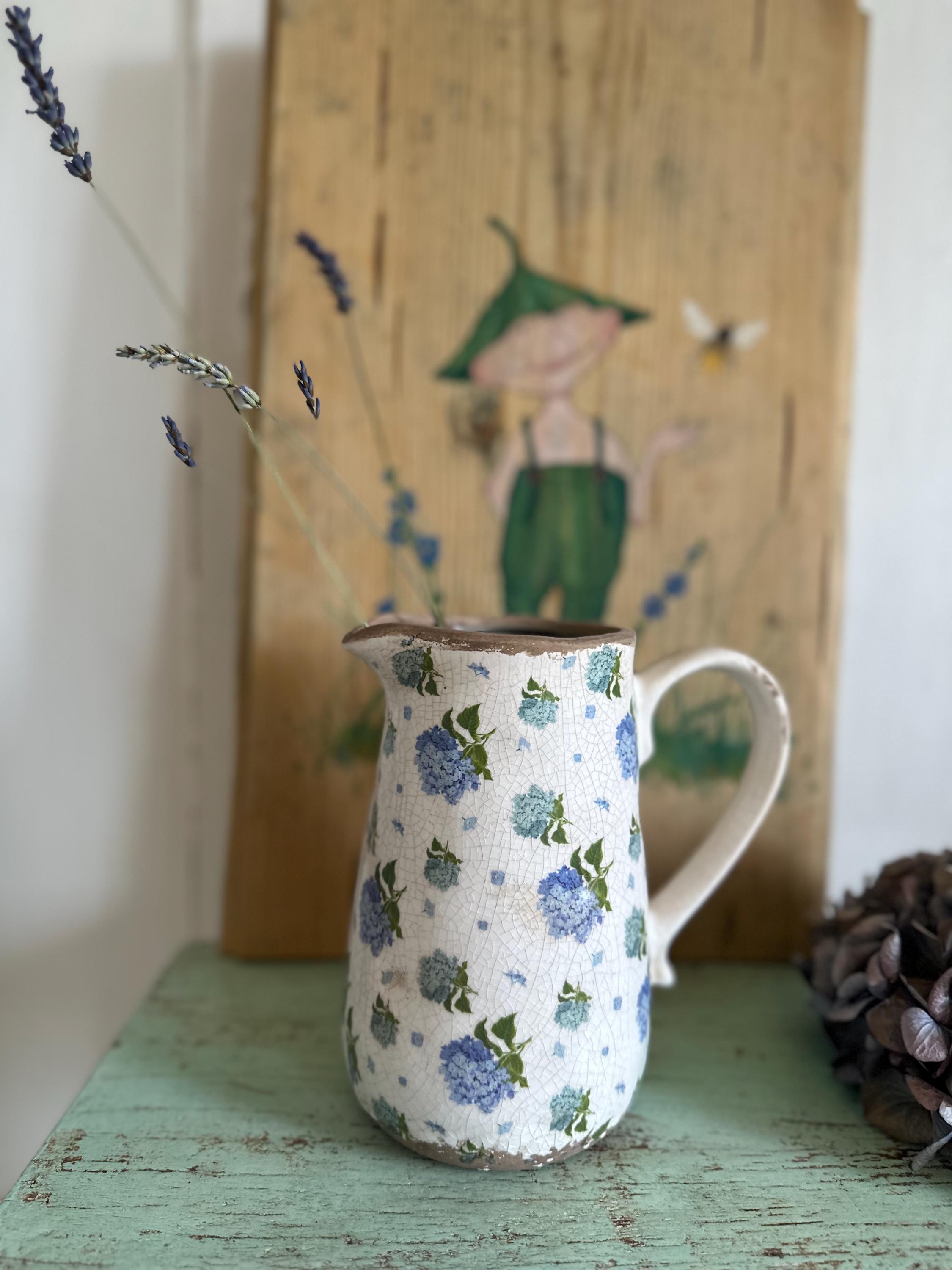 Ceramic - this enchanting jug is inspired by the French country style - a charming floral pattern combined with a beautiful, aged, cracked patina, as if these pots were decades old - it evokes memories of bygone eras and is a lovely companion for fresh meadow bouquets, branches, or dried grasses - create your own unique atmosphere. 🌼