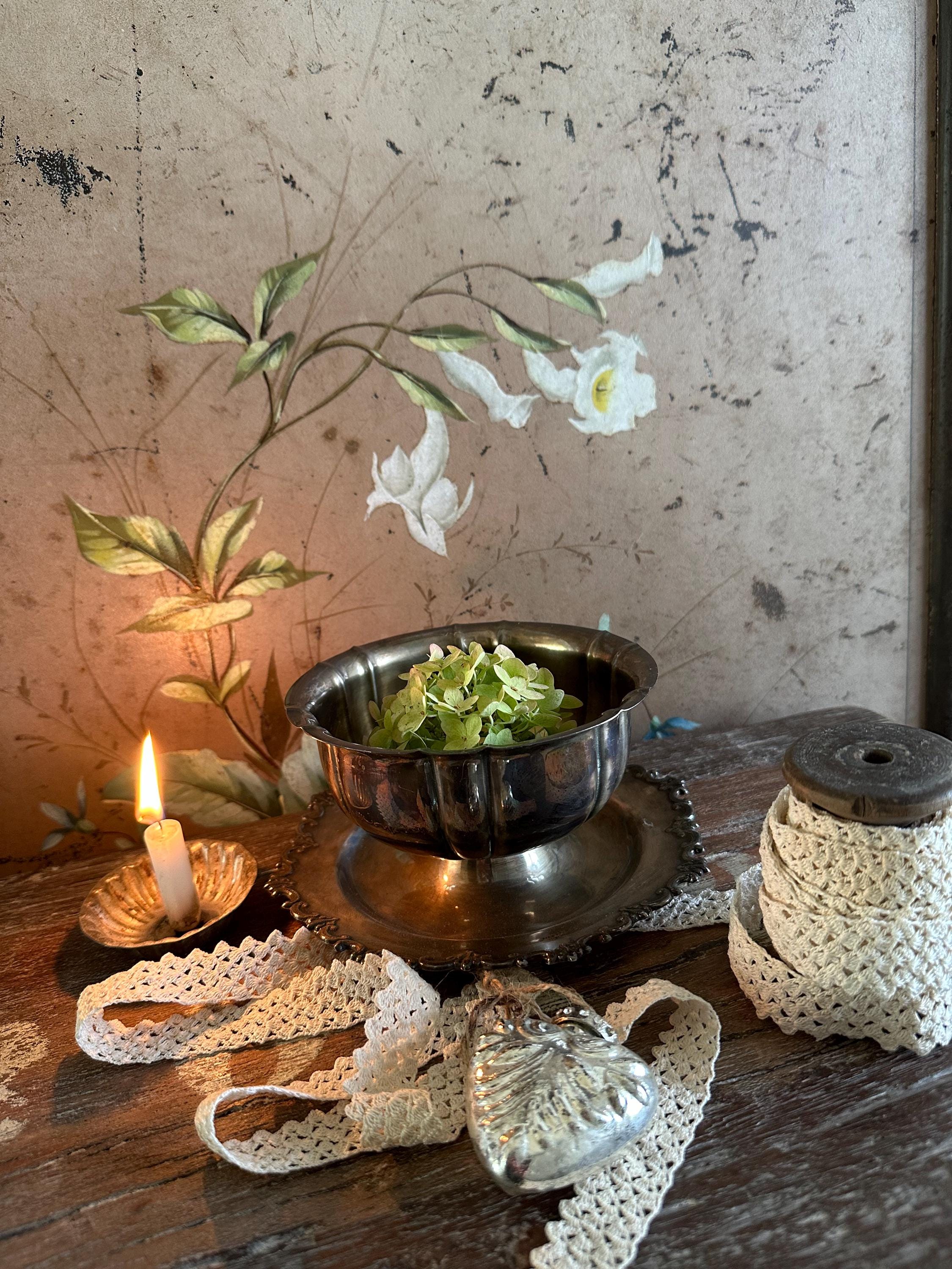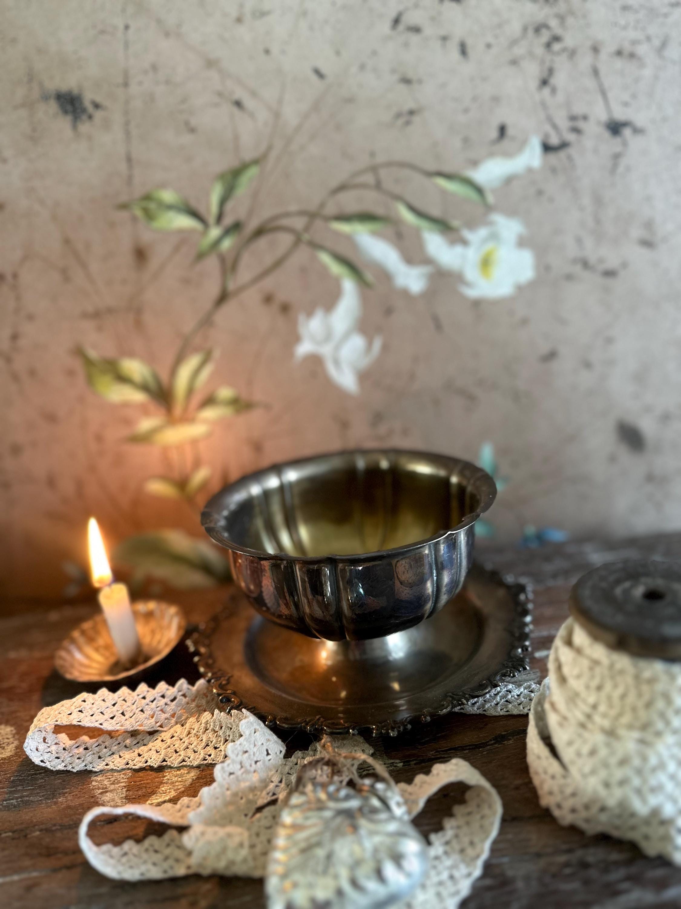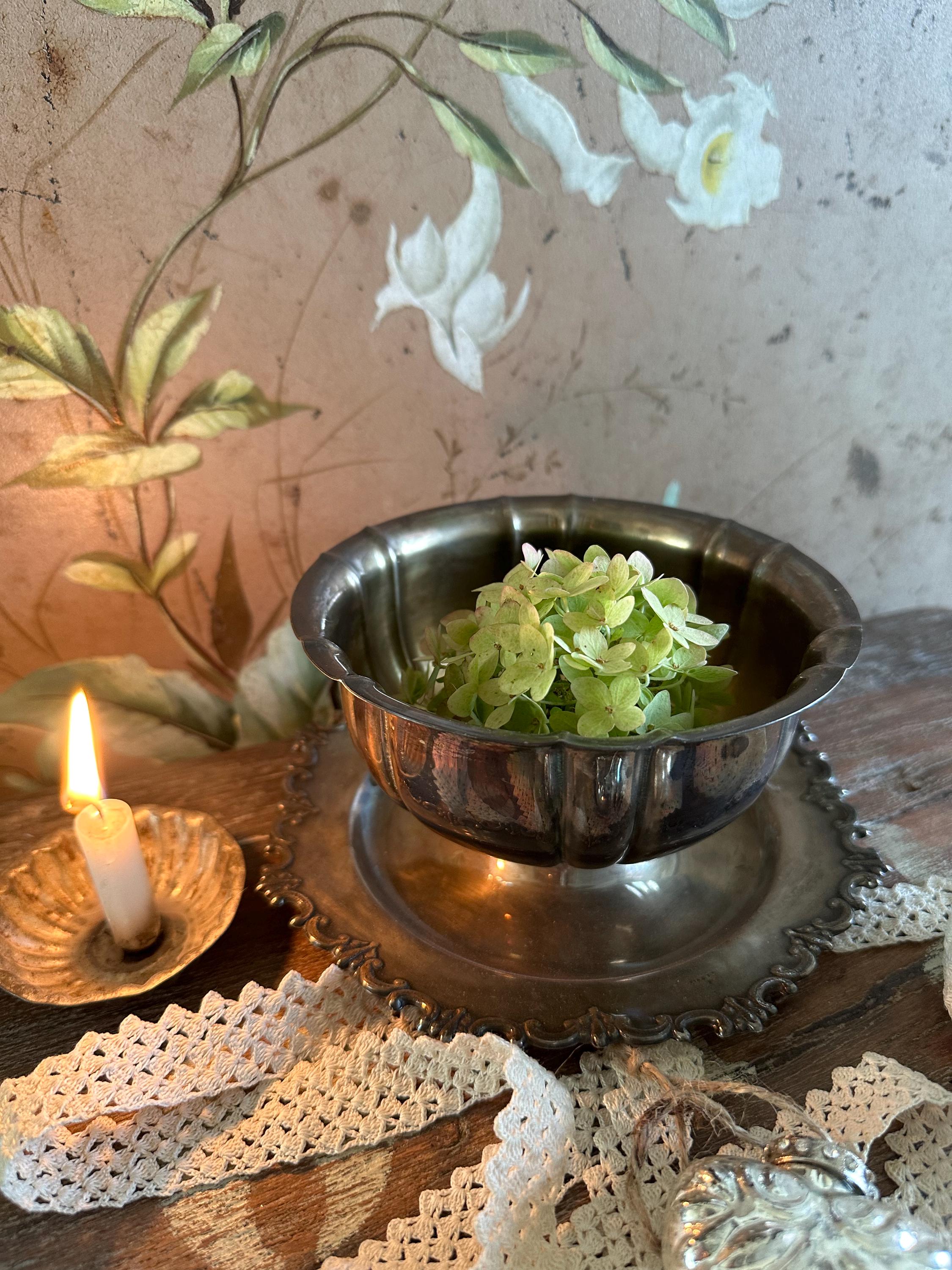 Old farmer's pewter / farmer's silver - a dreamy bowl... Welcome - lots of silver combined with fine porcelain and flower arrangements, old photos, a bit of lace - this is how you can conjure up magical old decorations - a feast for the senses, perhaps with a candlelight - perfect for lovers of this old blacksmith's art ❤️