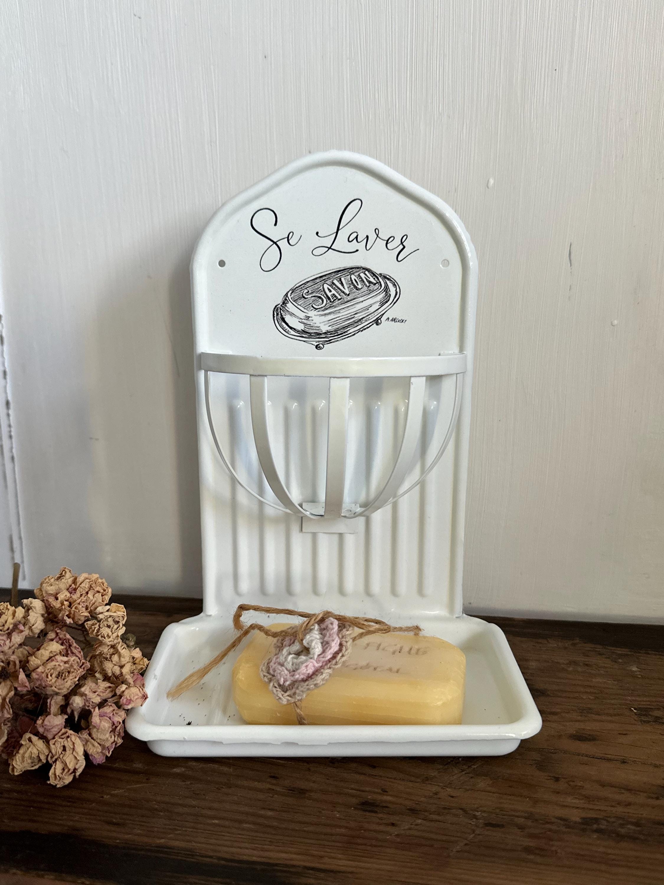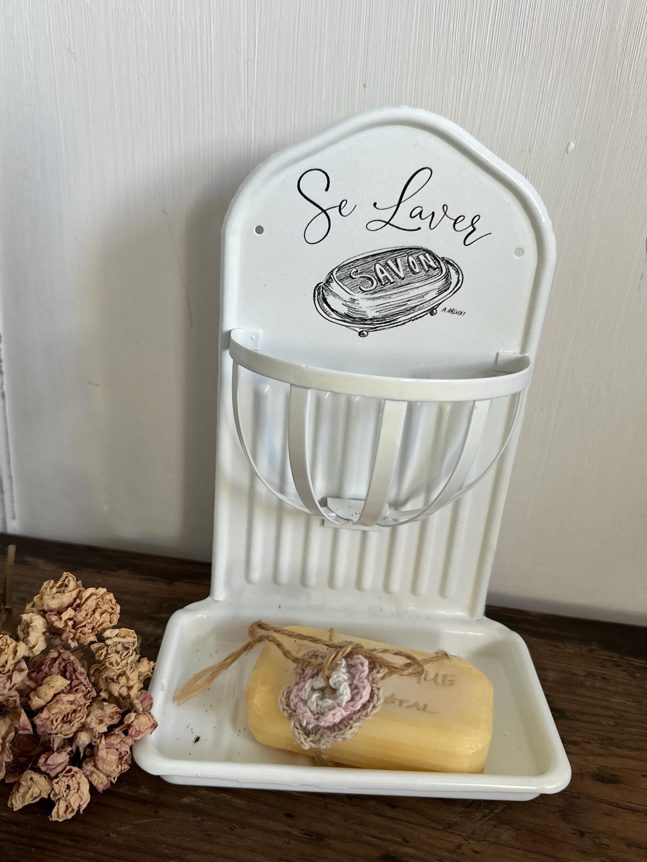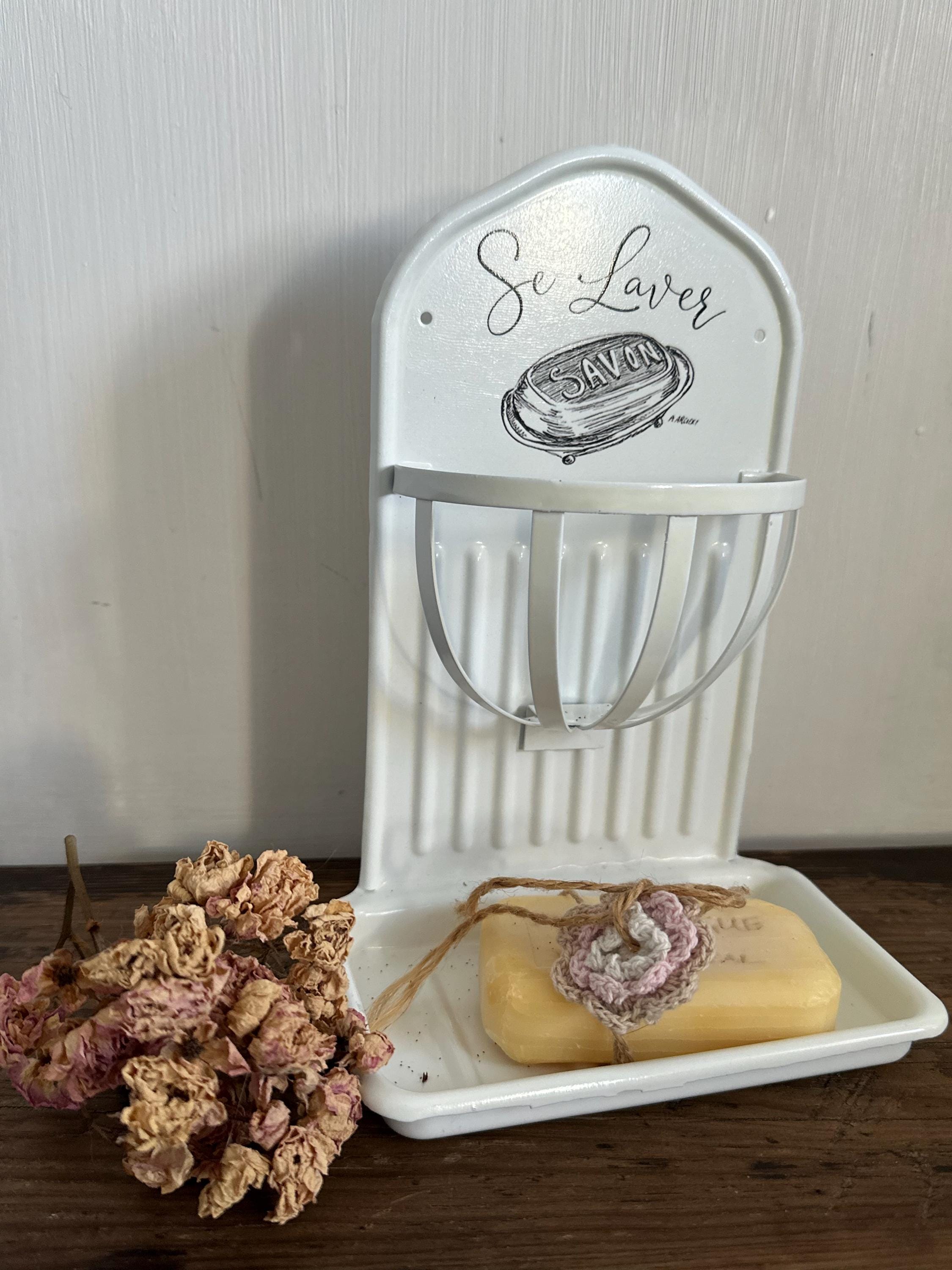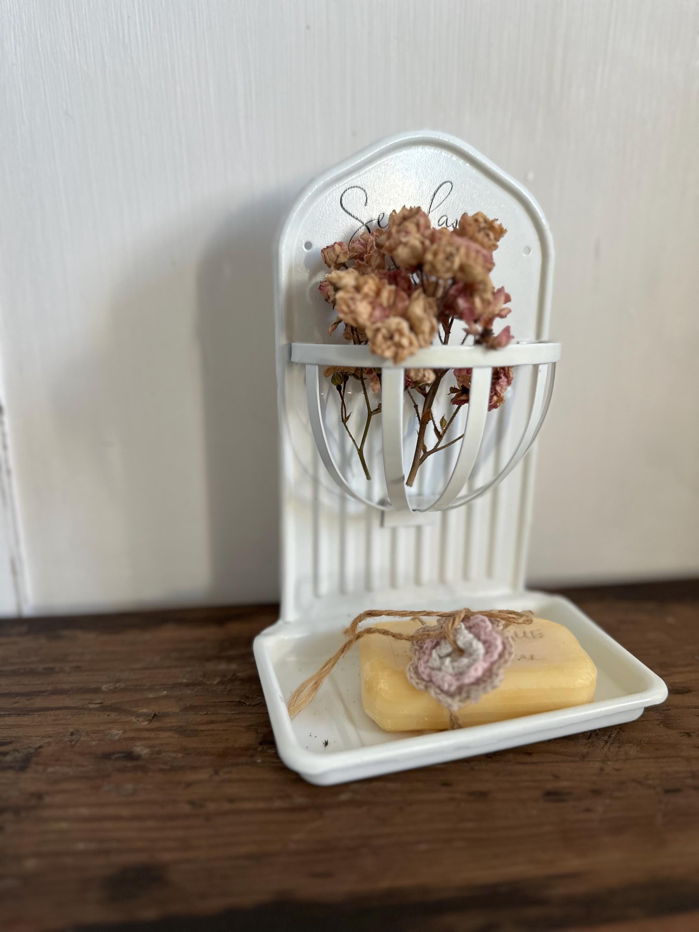 Soap dishes made of white enamel – a small helper for organizing things indoors or outdoors – but not only soap can be stored in them – you can also effectively arrange floral decorations in them ❤️