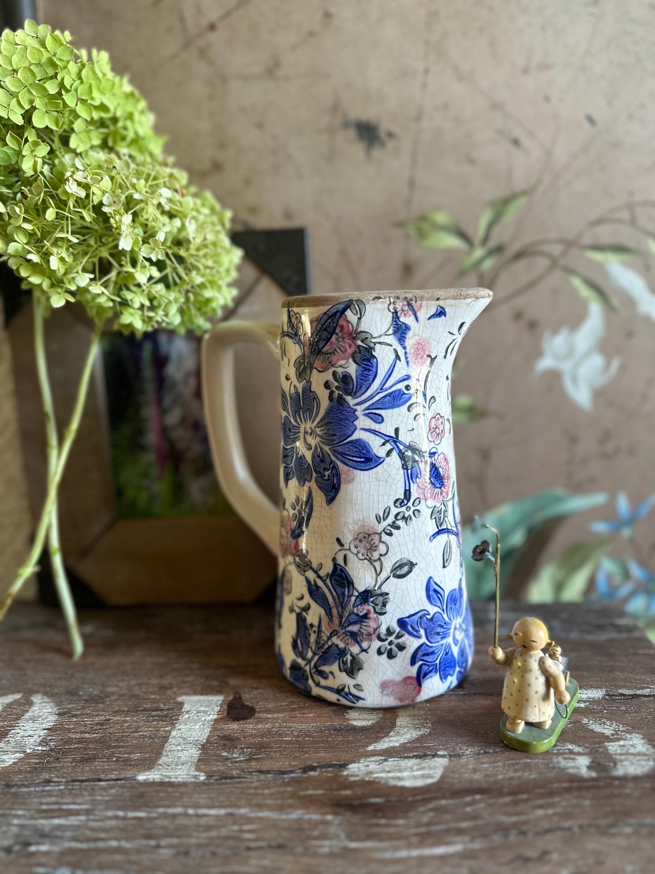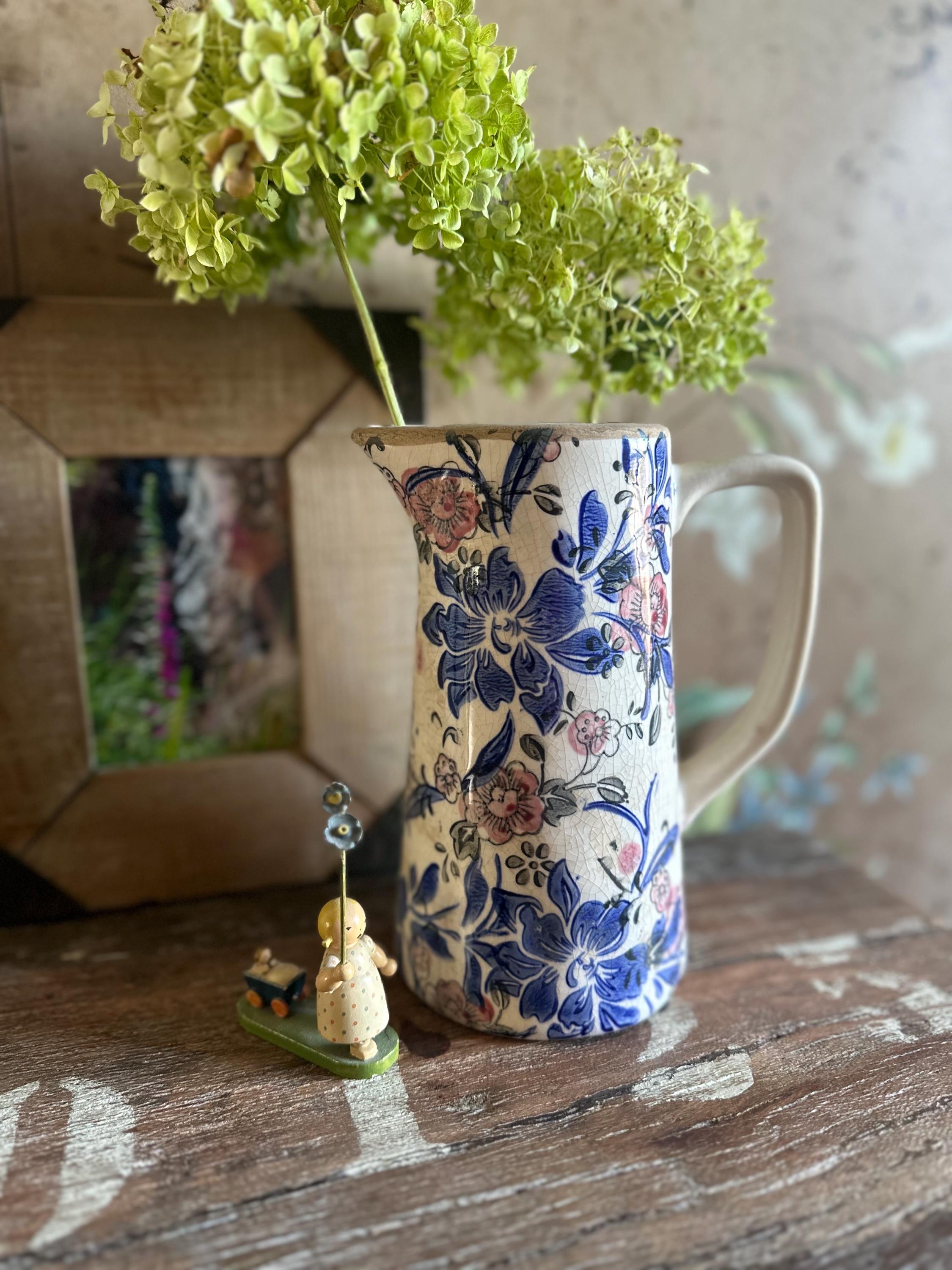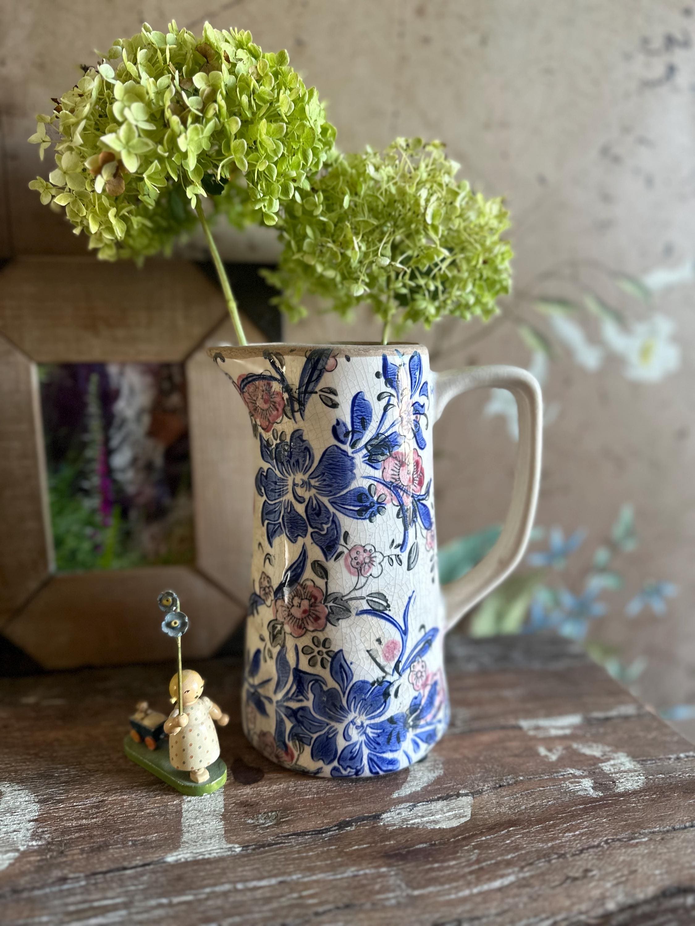 A ceramic jug - this enchanting jug was modeled on the French country house look - a lovely floral pattern combined with this beautiful old cracked patina, as if the jug were decades old - it is reminiscent of times gone by and is a beautiful companion for fresh meadow bouquets, branches or dried grasses - create your own ambience.