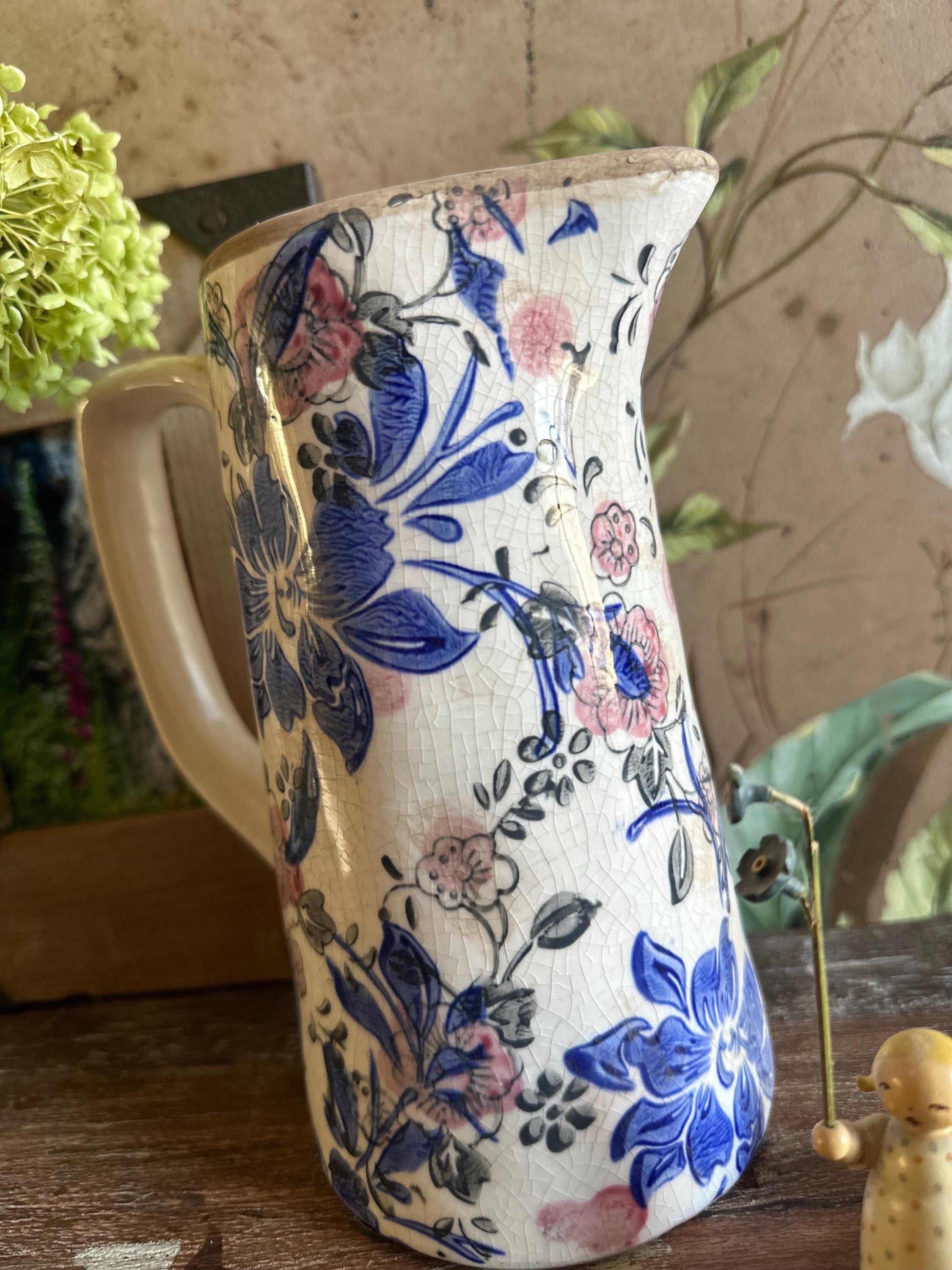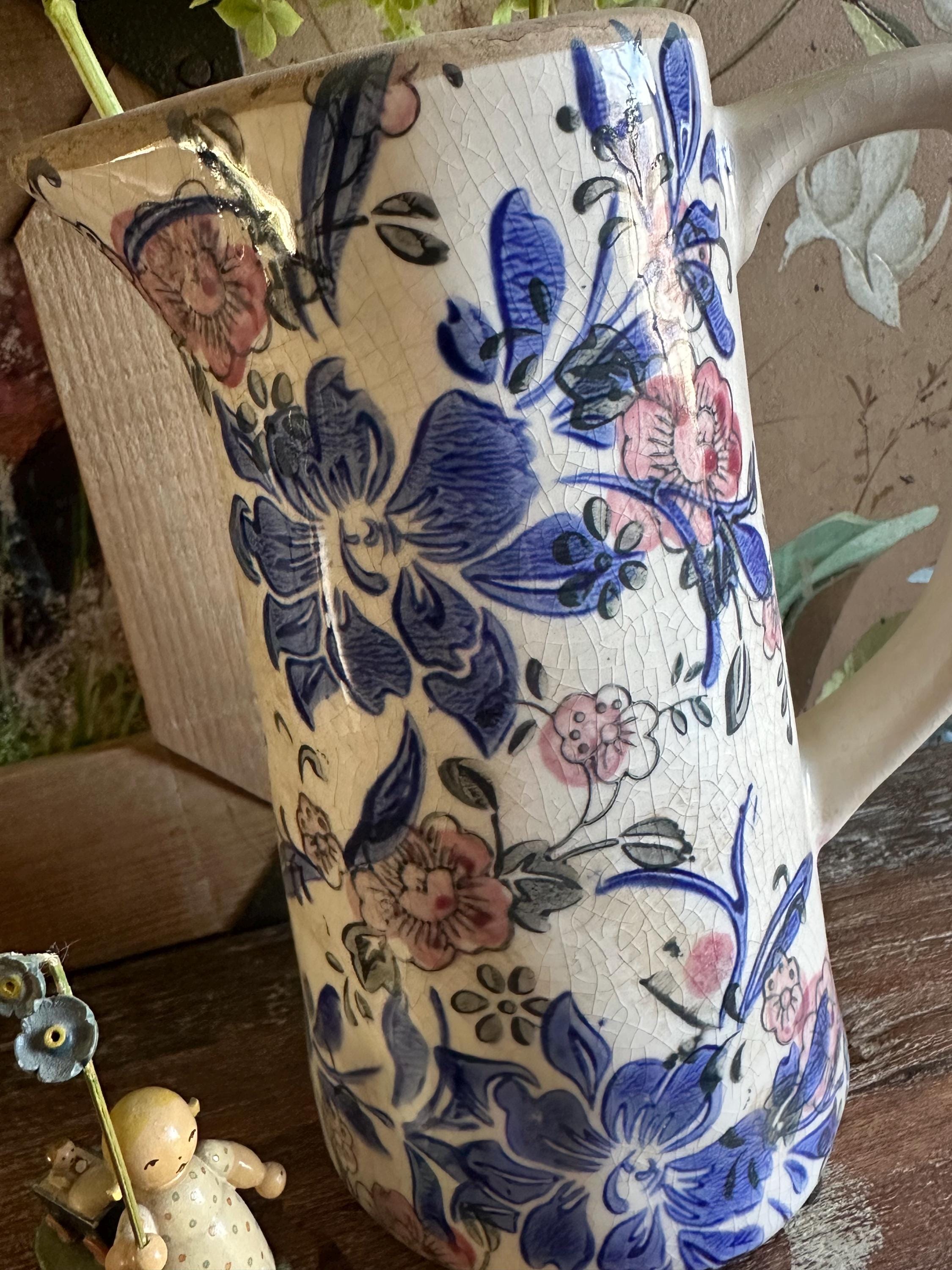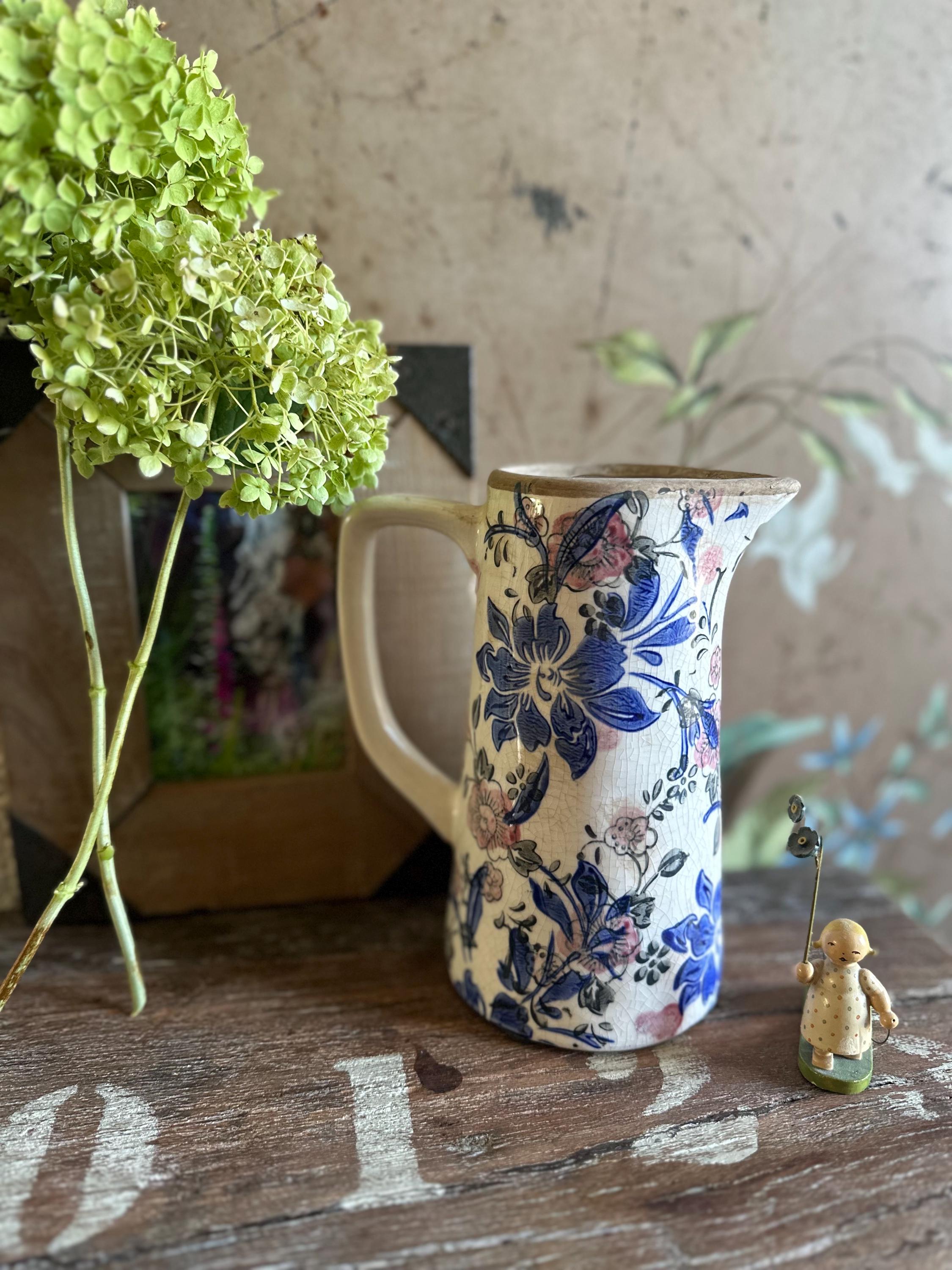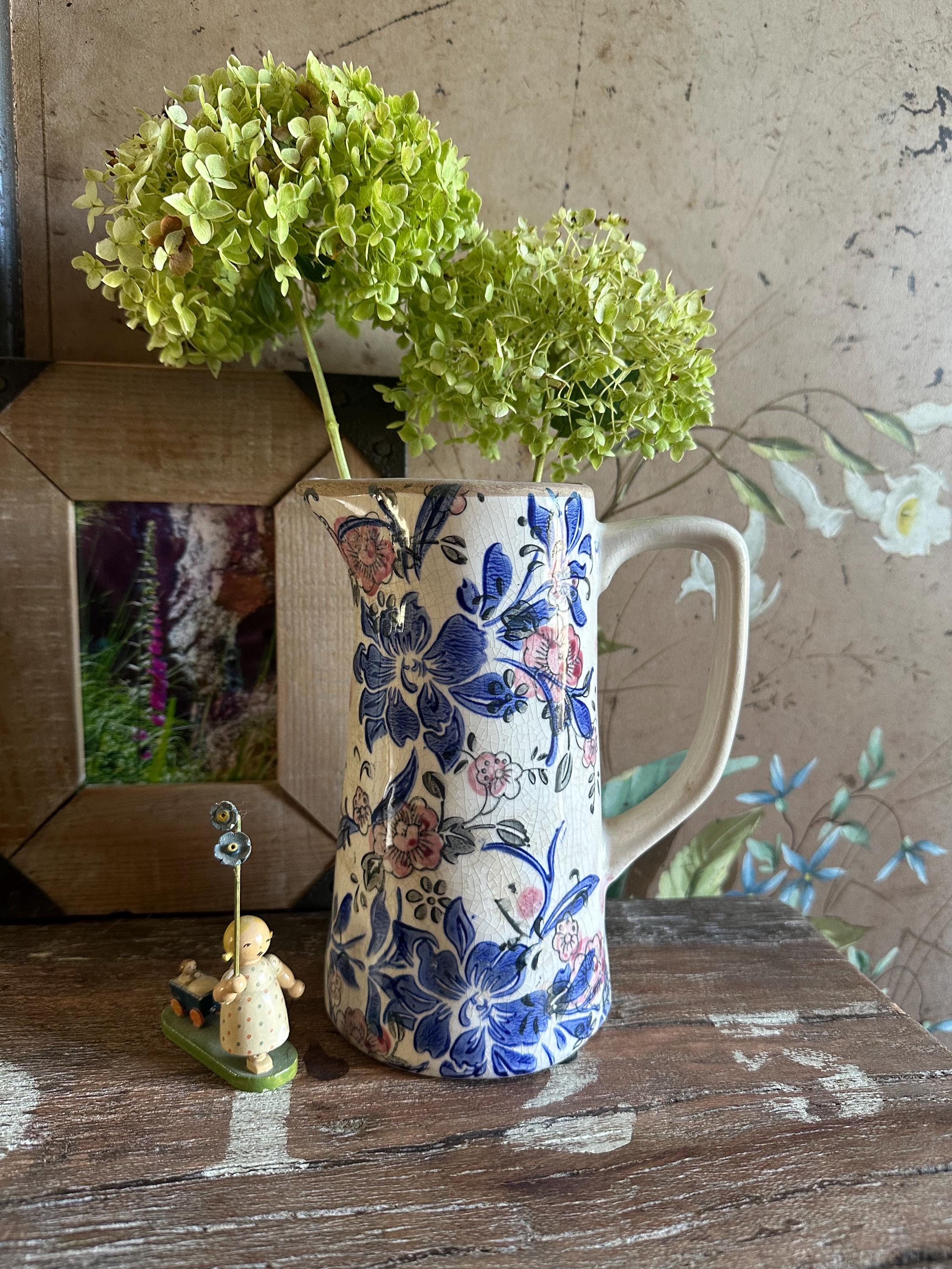A ceramic jug - this enchanting jug was modeled on the French country house look - a lovely floral pattern combined with this beautiful old cracked patina, as if the jug were decades old - it is reminiscent of times gone by and is a beautiful companion for fresh meadow bouquets, branches or dried grasses - create your own ambience.