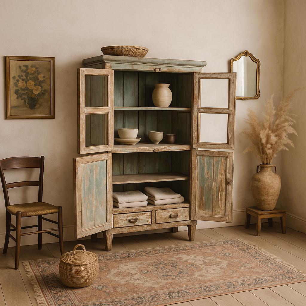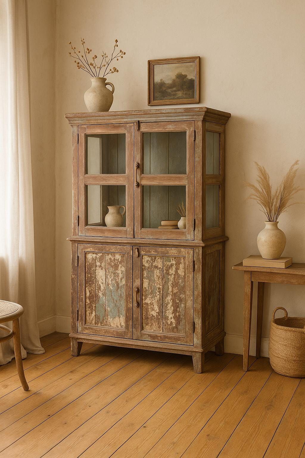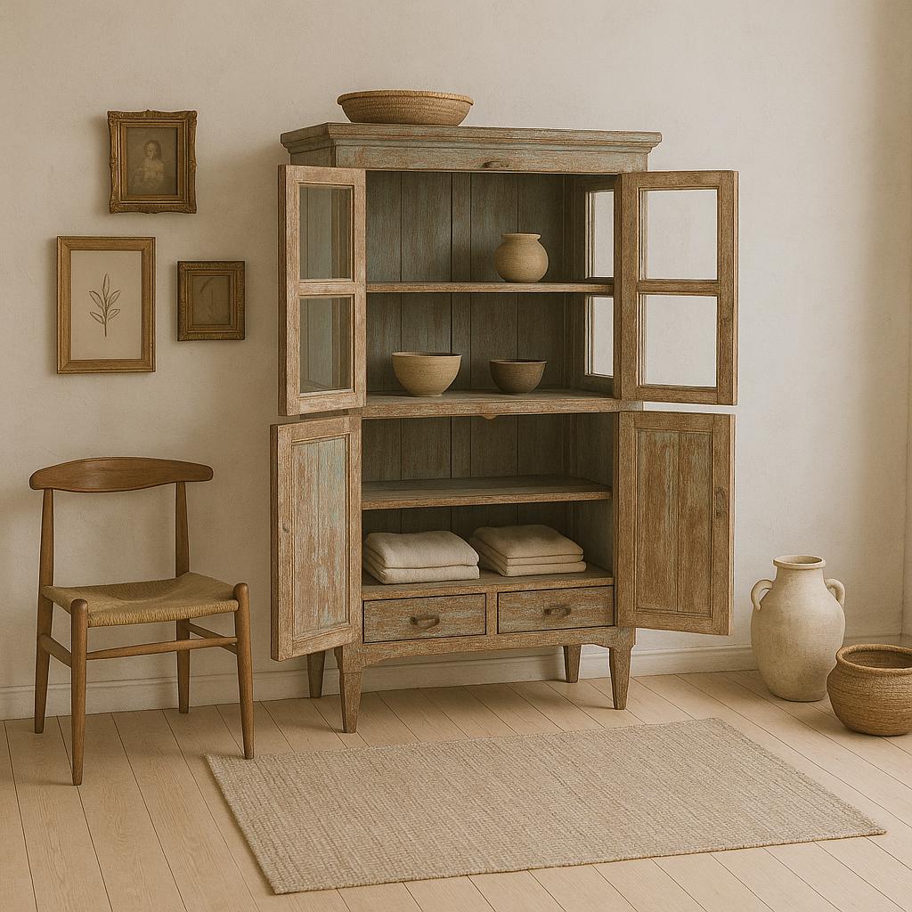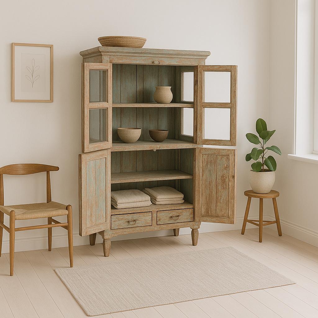 Greta's dreamlike display cabinet - an incredibly colorful patina with glass doors and the perfect depth to store your favorite pieces.