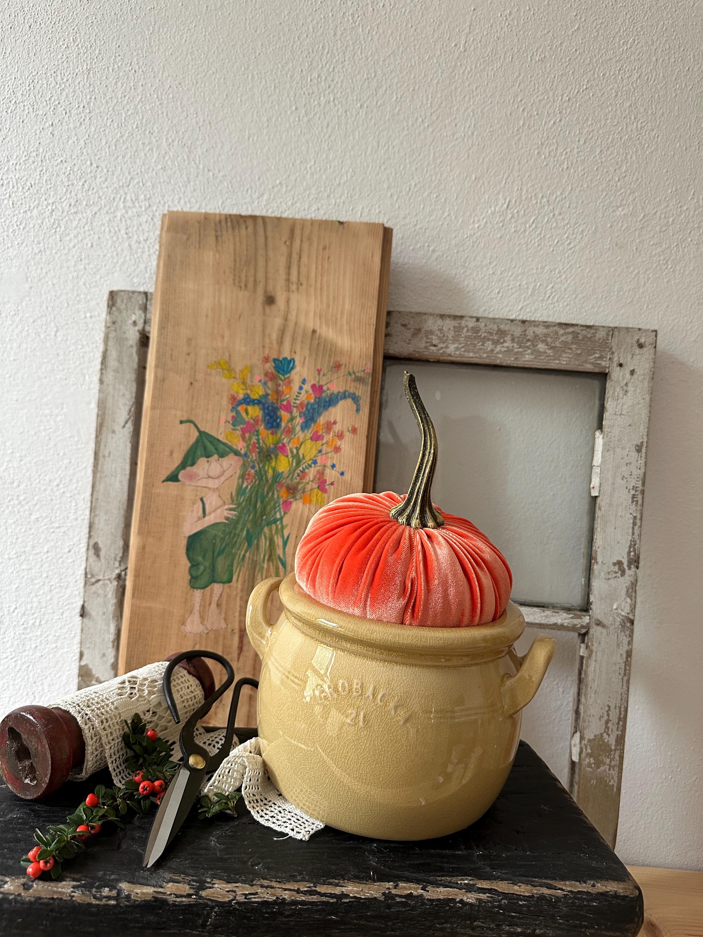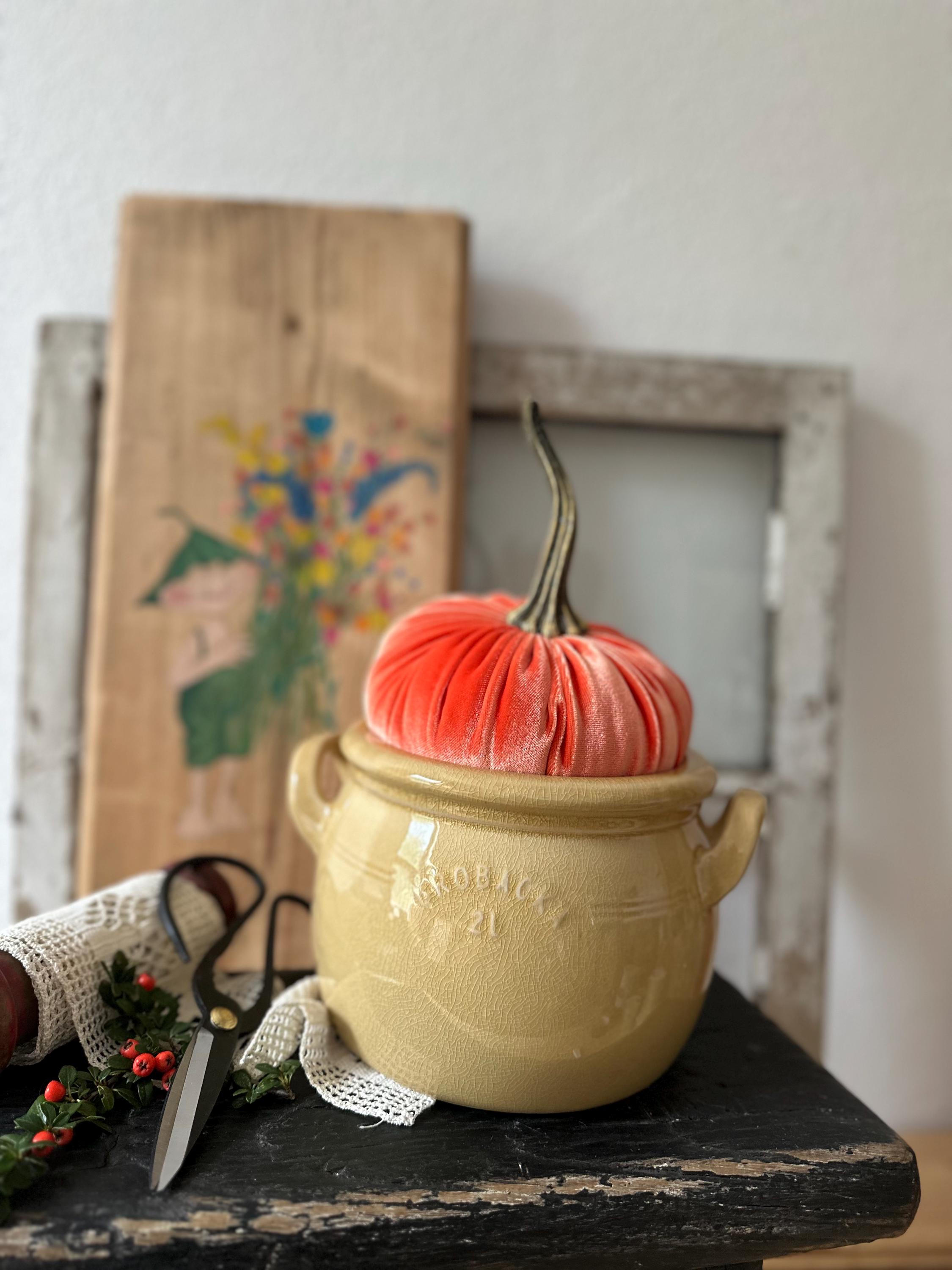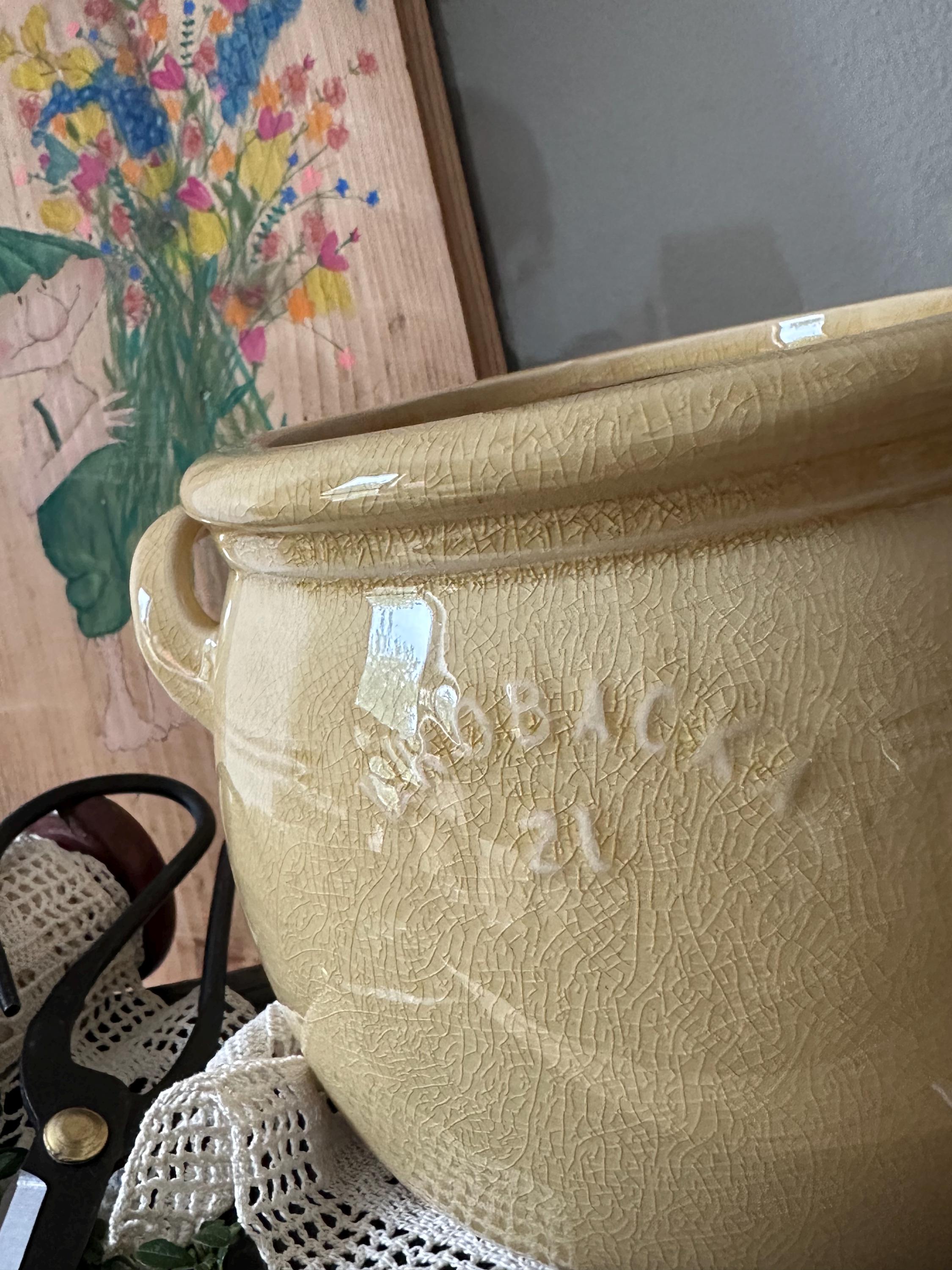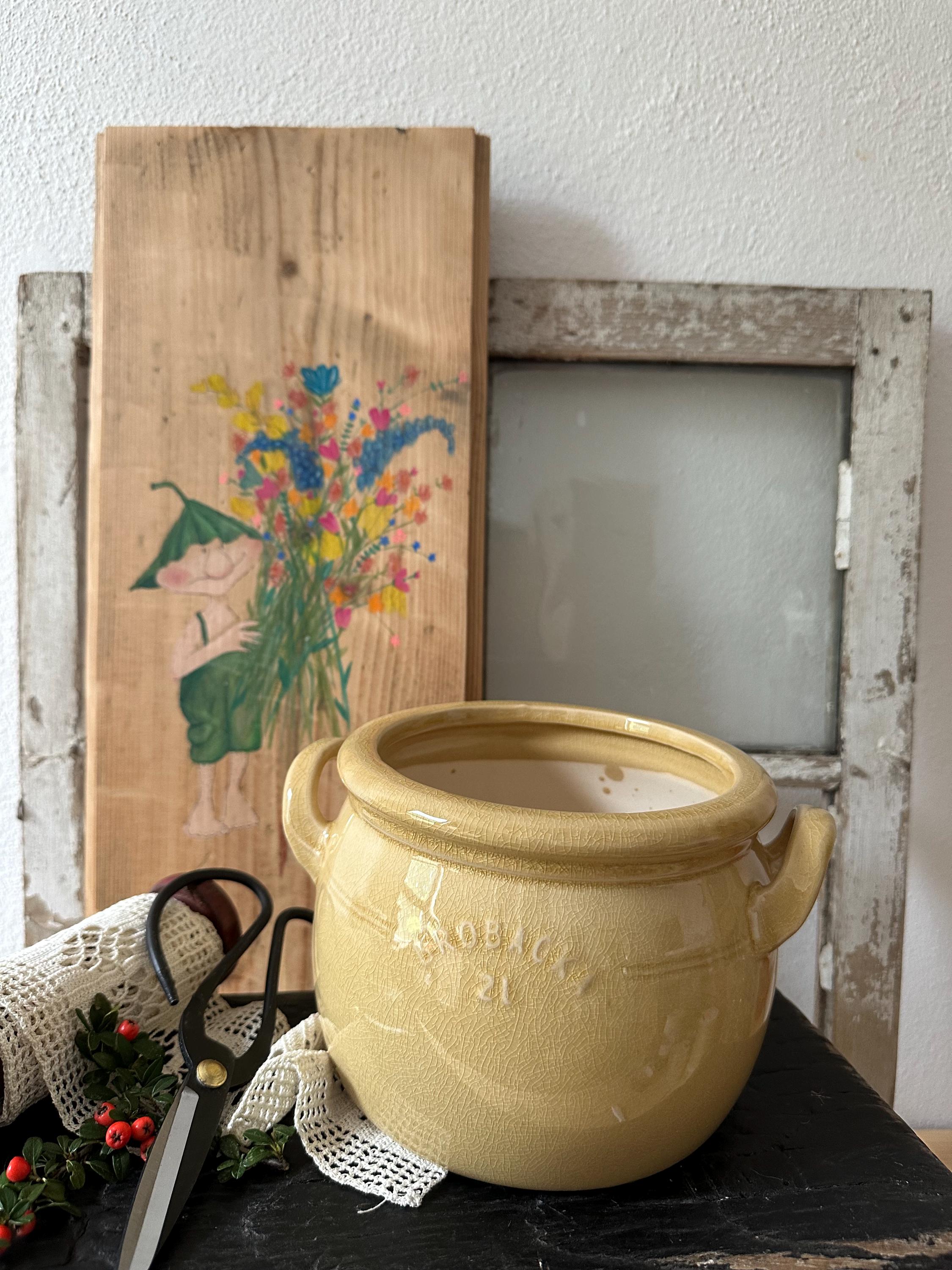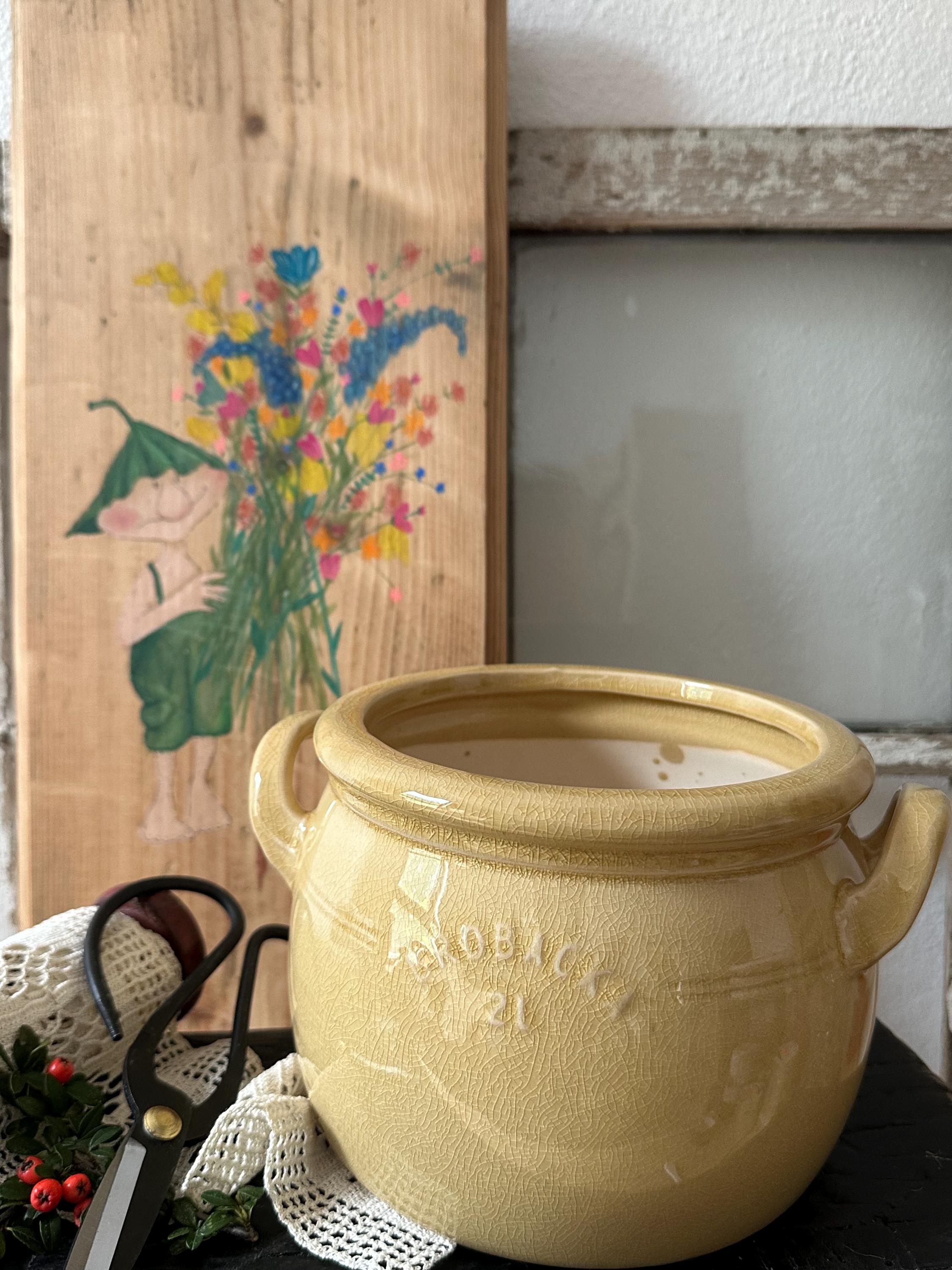 A Swedish clay jug - with an extraordinary patina - in one of the most popular colors, yellow - modeled on old originals with a beautiful cracked patina, a vintage color that is trendy when arranged with natural materials according to the season - for a simple decoration perfect with wood, cones or dried flowers!