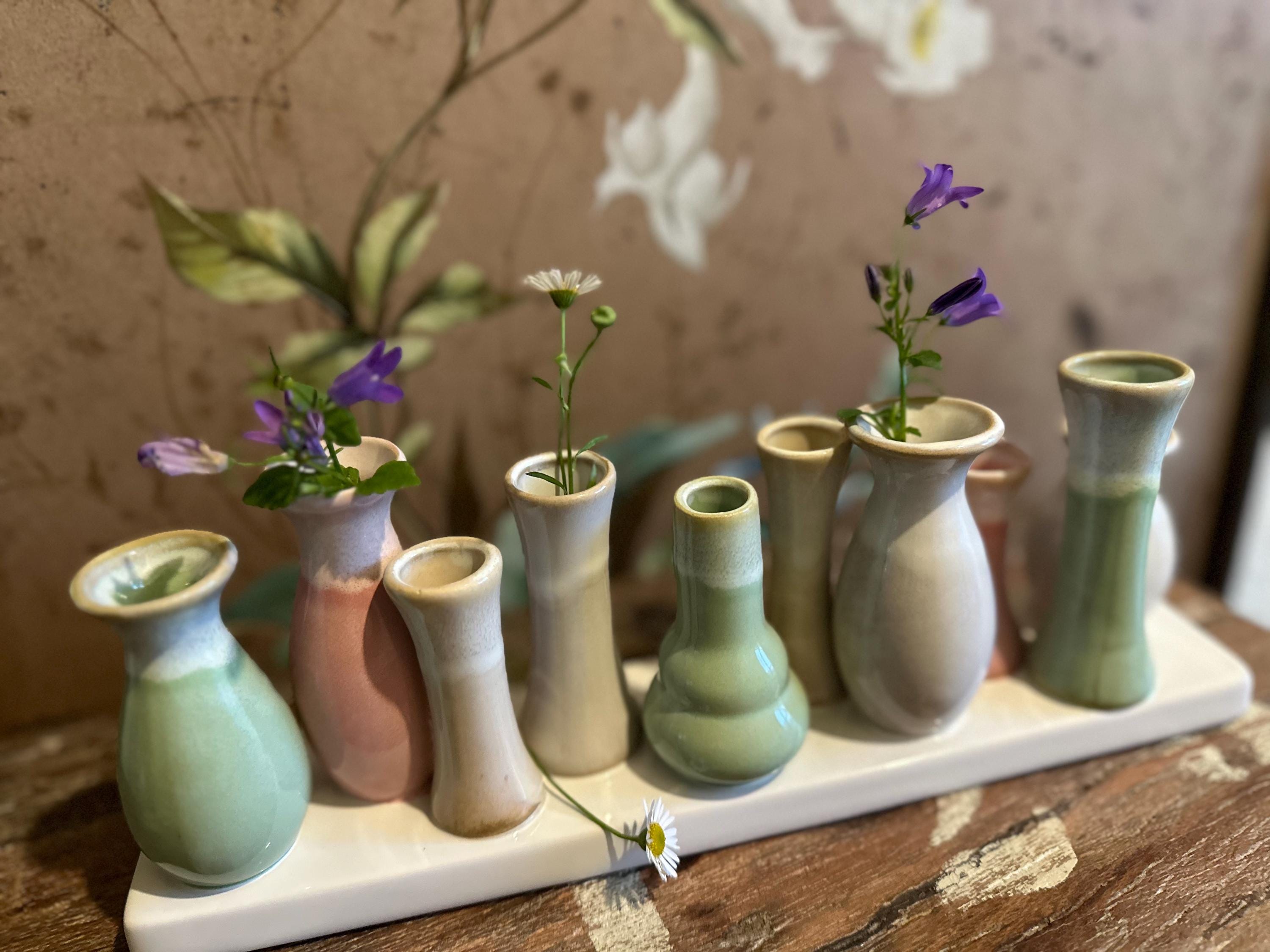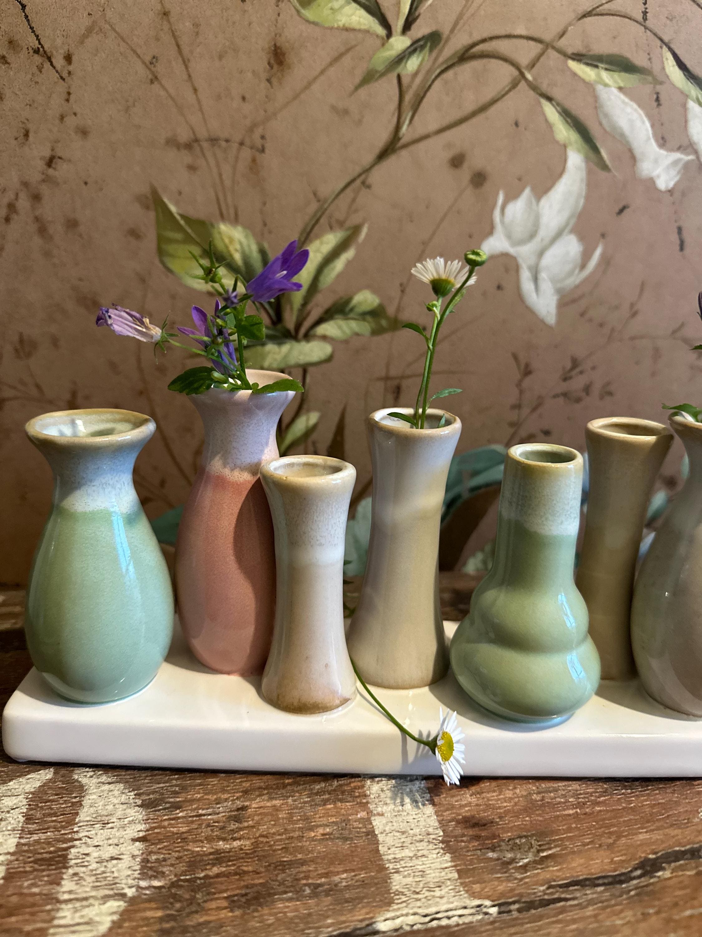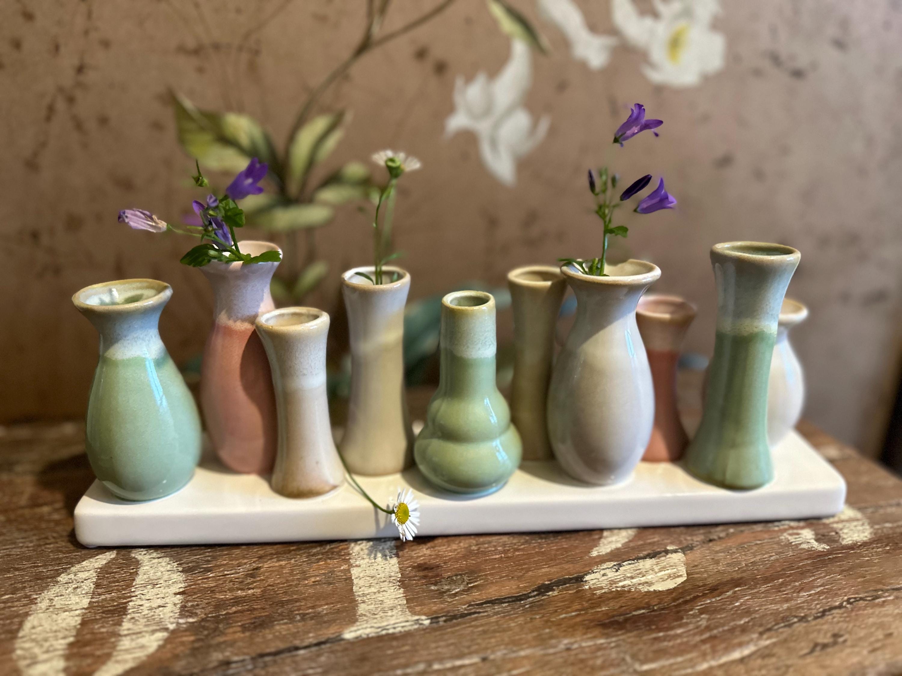 Vases with summer flowers staged on an old cracked patina, these pieces are modeled on old originals. Small mini vases for beautiful arrangements for individual small blossoms - heart ❤️sweetly they spread their charm and bring romance - enjoy these pretty accessories all year round.