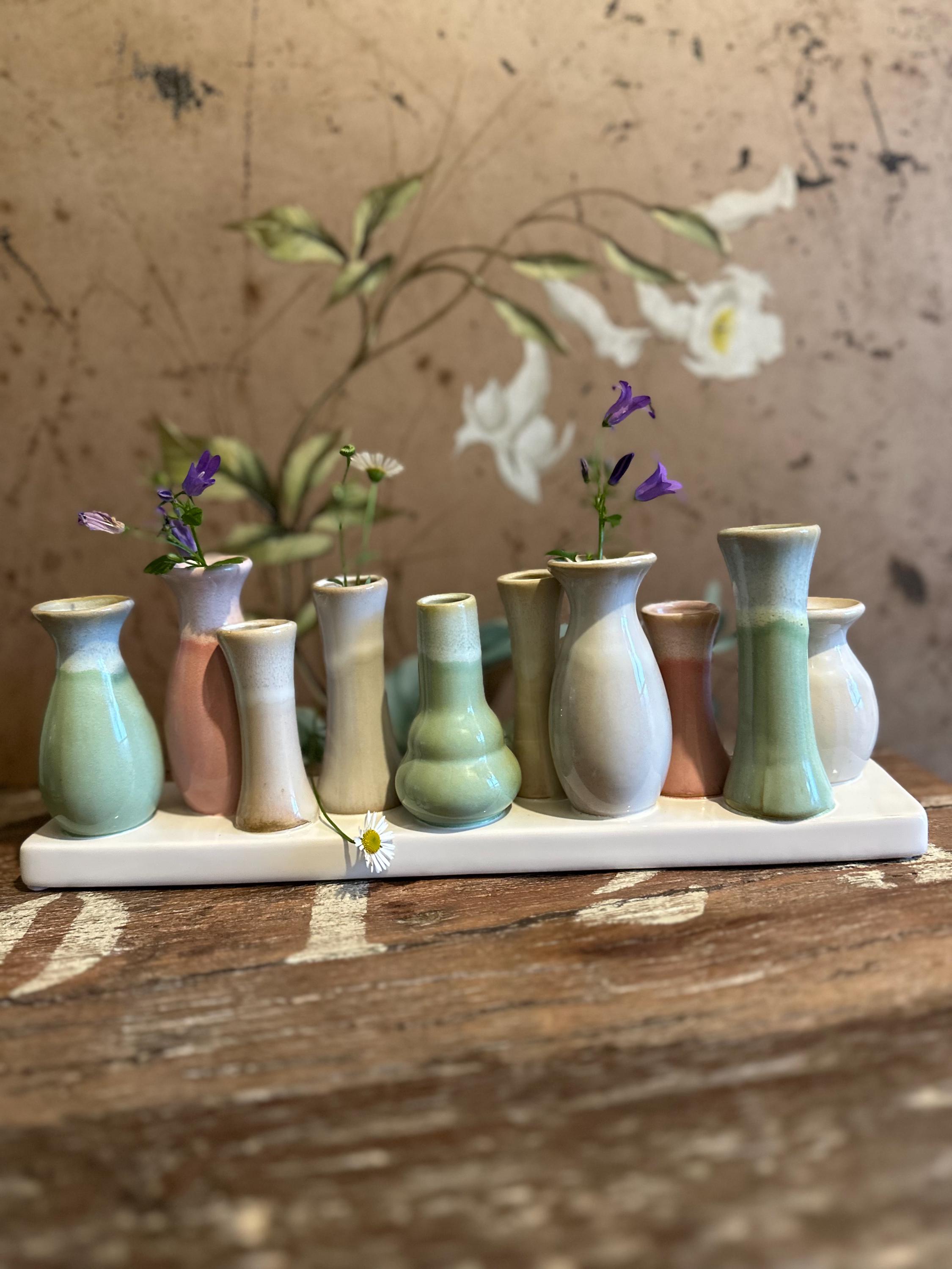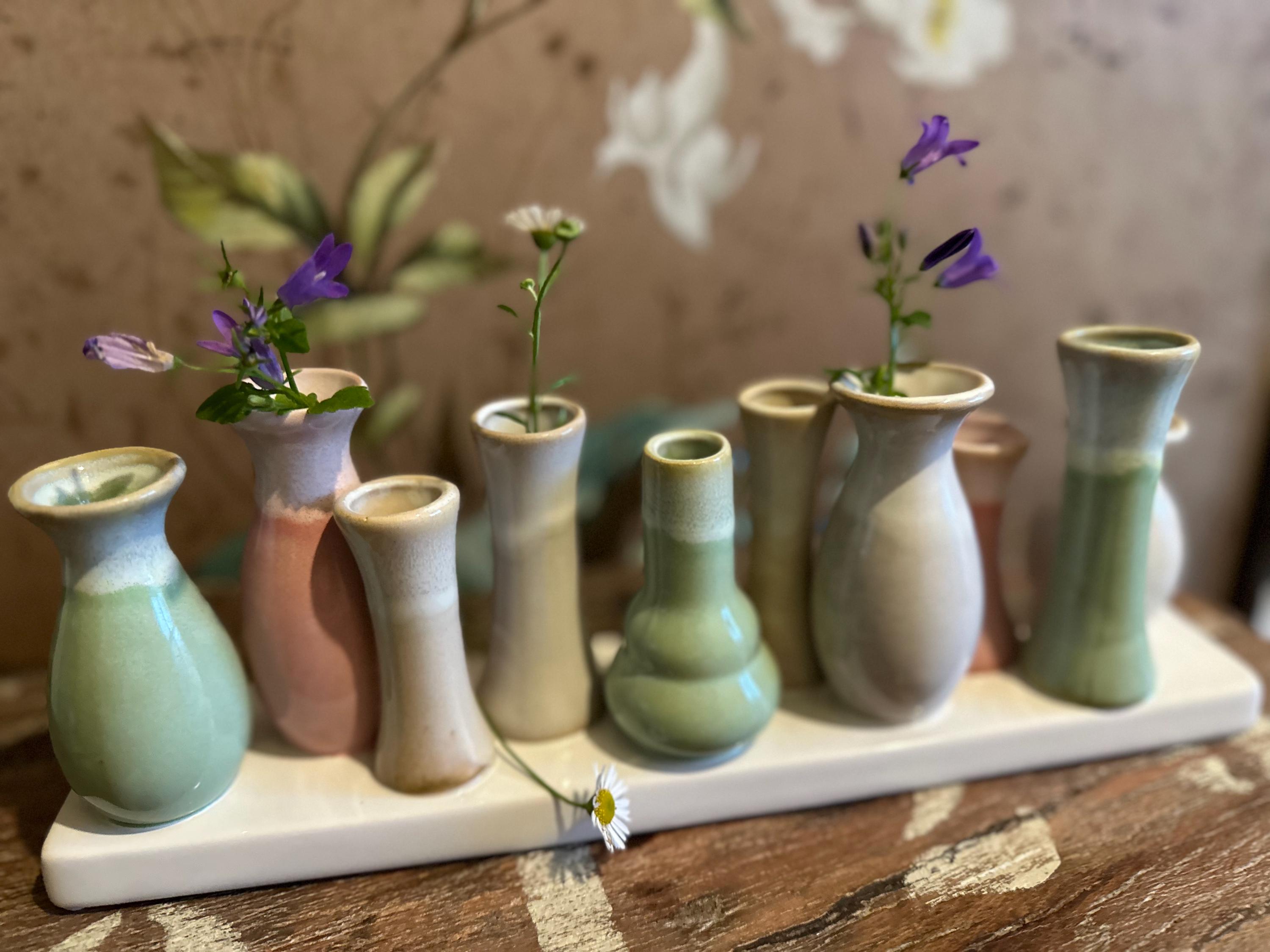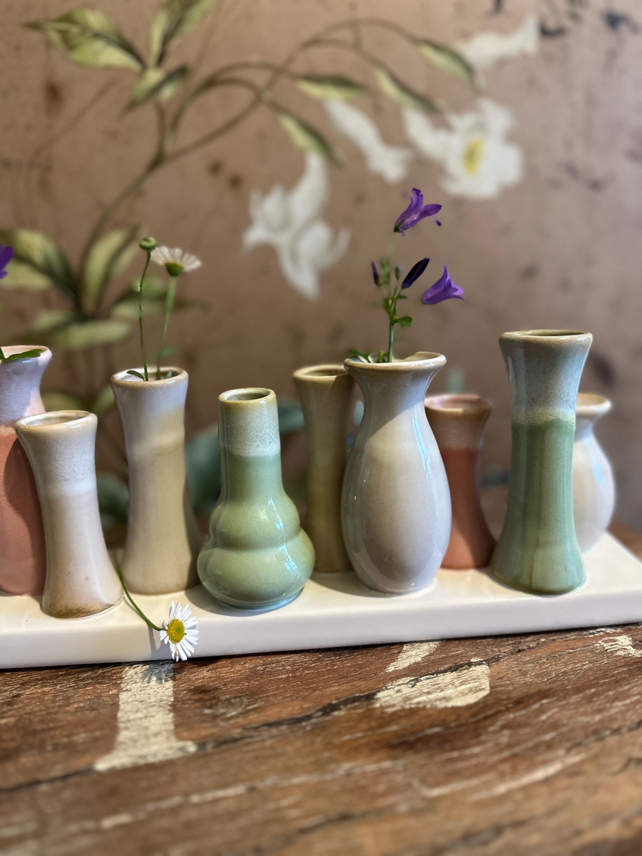 Vases with summer flowers staged on an old cracked patina, these pieces are modeled on old originals. Small mini vases for beautiful arrangements for individual small blossoms - heart ❤️sweetly they spread their charm and bring romance - enjoy these pretty accessories all year round.
