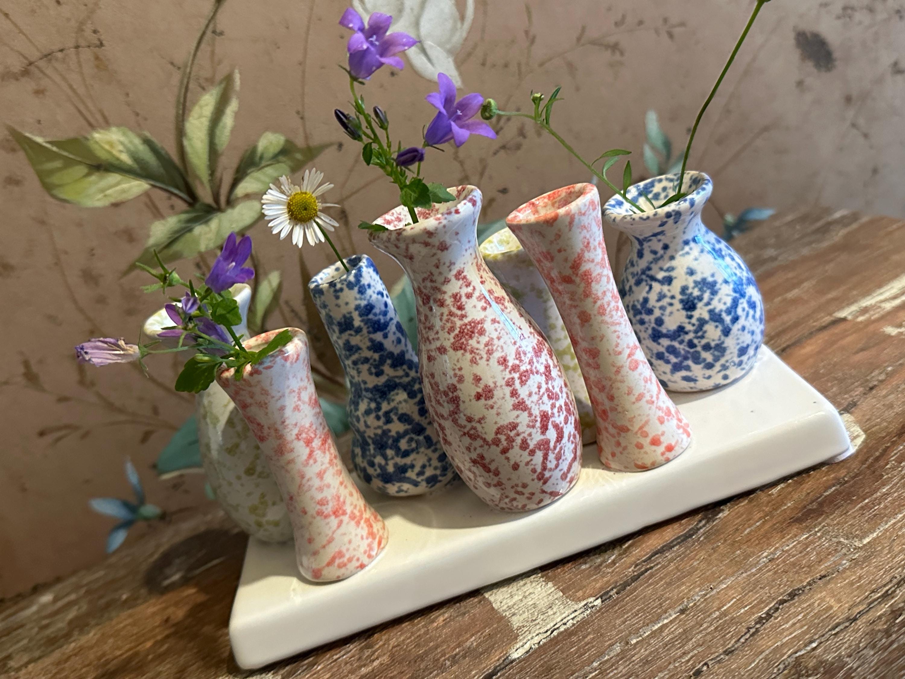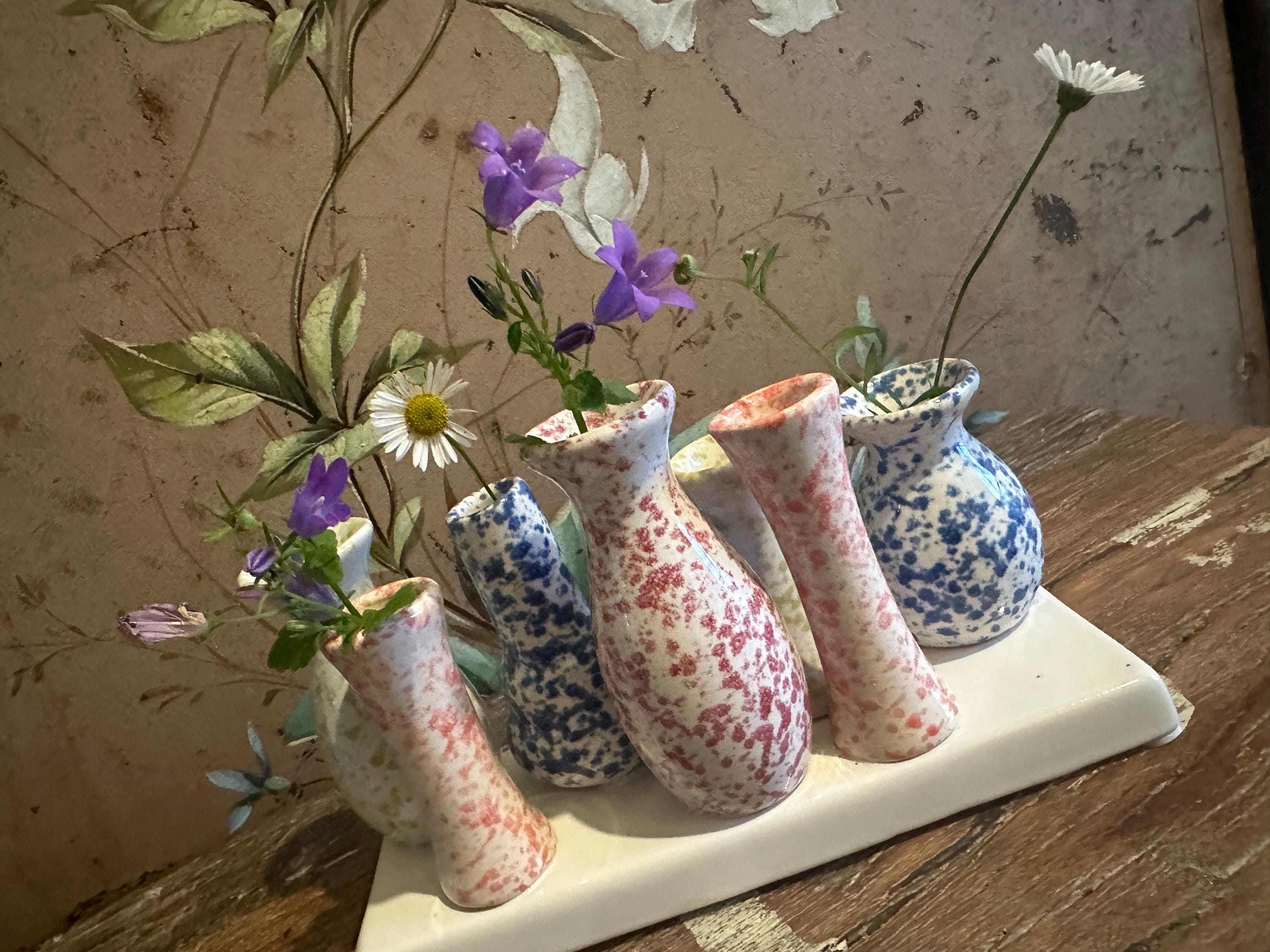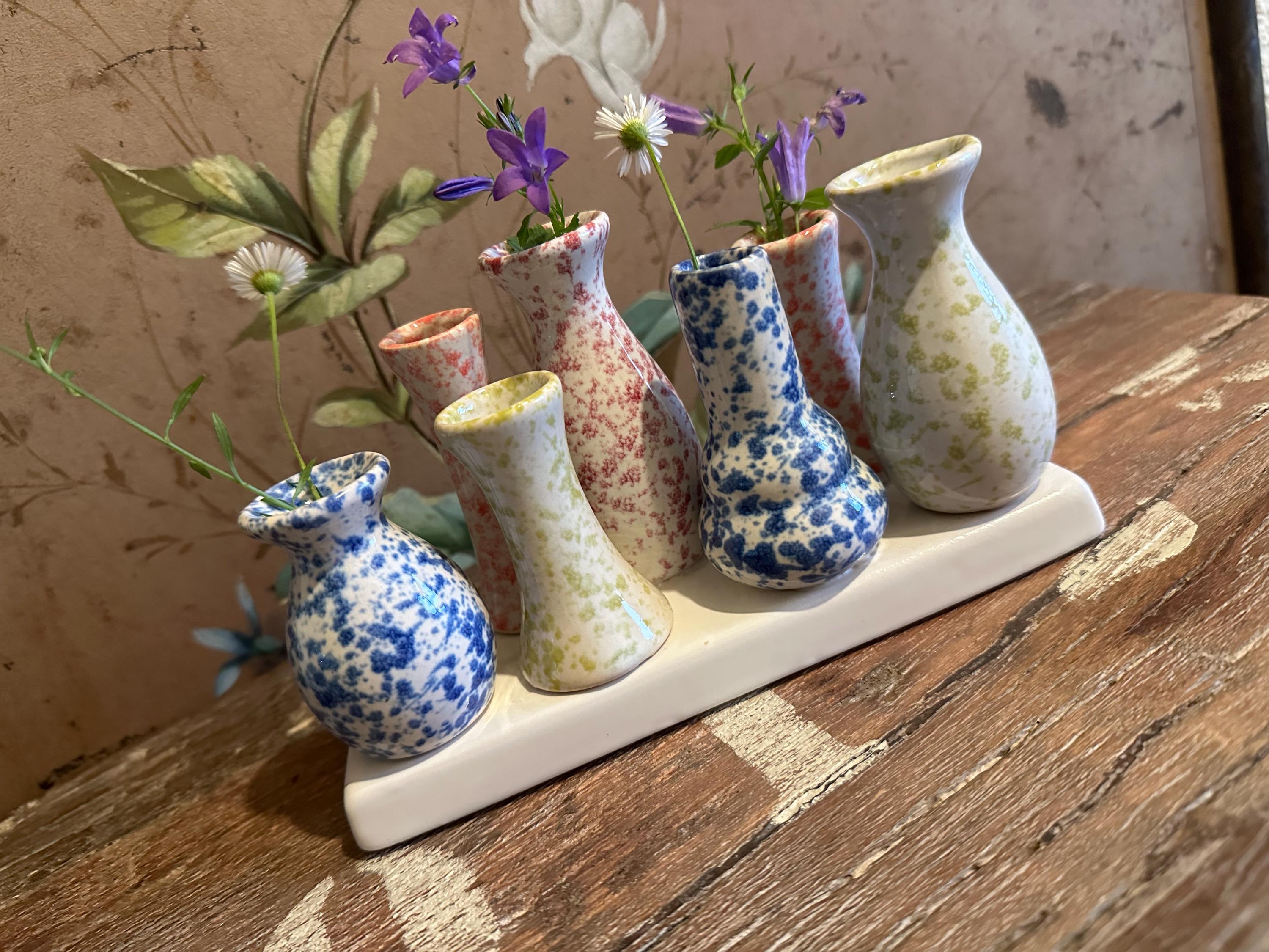 Vases with summer flowers staged on an old cracked patina, these pieces are modeled on old originals. Small mini vases for beautiful arrangements for individual small blossoms - heart ❤️sweetly they spread their charm and bring romance - enjoy these pretty accessories all year round.