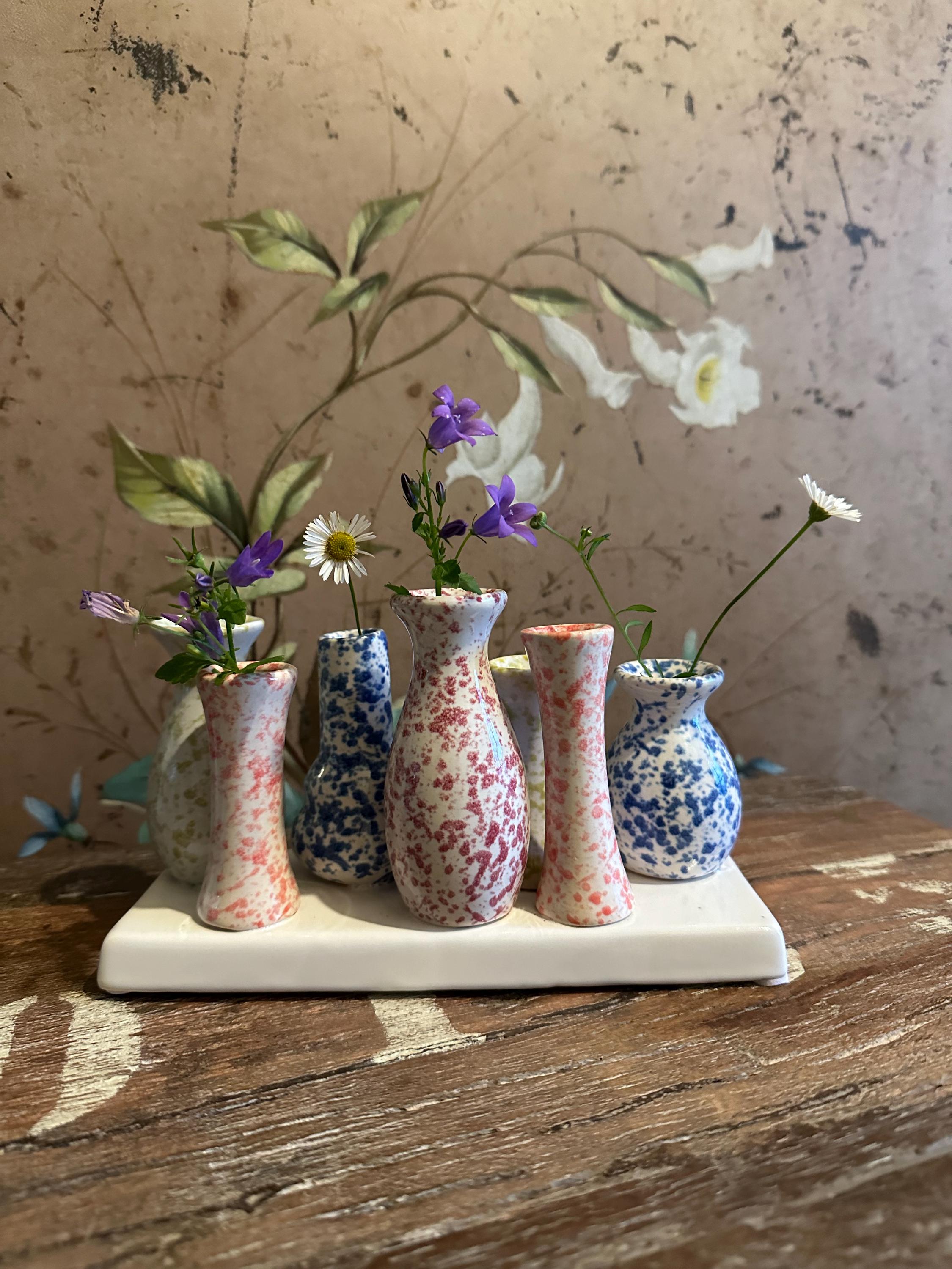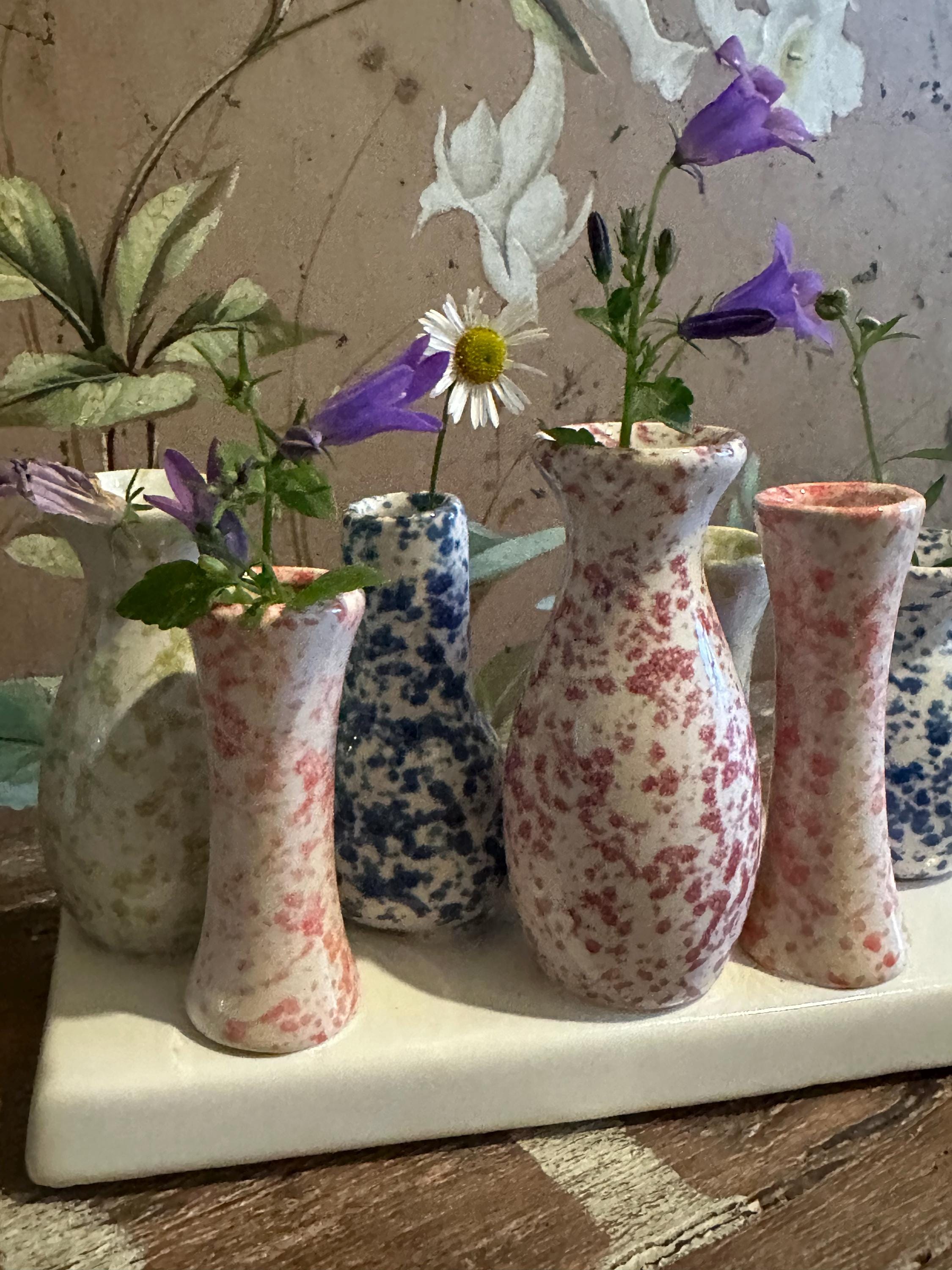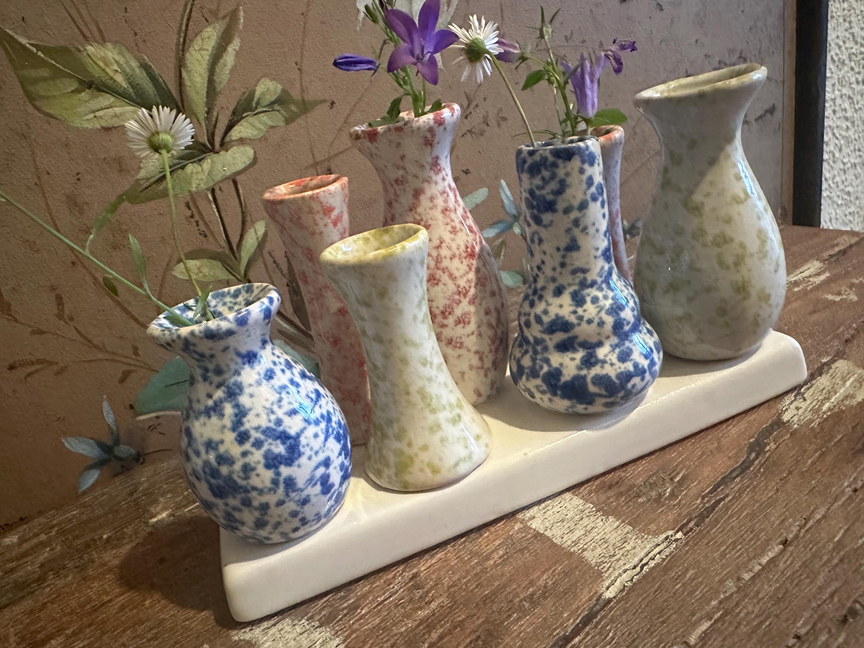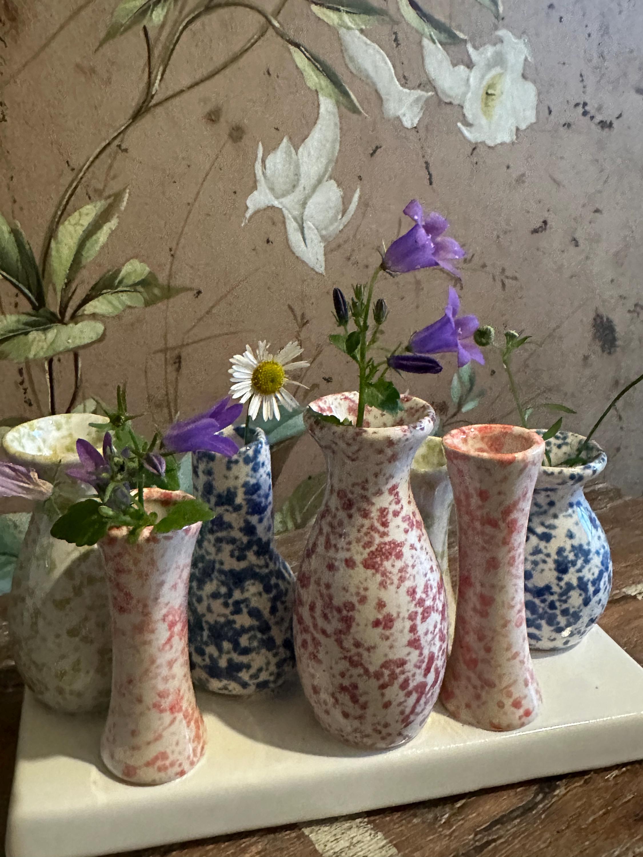Vases with summer flowers staged on an old cracked patina, these pieces are modeled on old originals. Small mini vases for beautiful arrangements for individual small blossoms - heart ❤️sweetly they spread their charm and bring romance - enjoy these pretty accessories all year round.