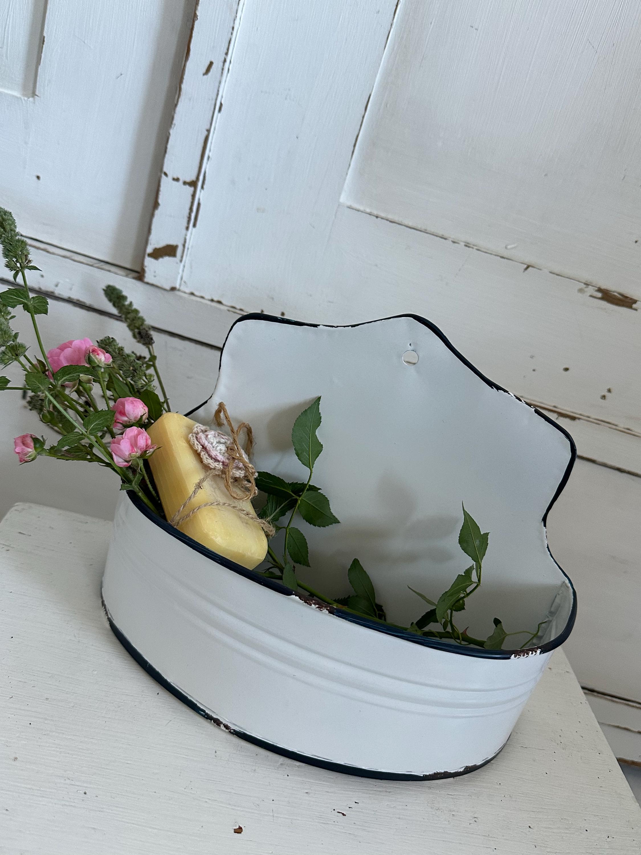 Soap dishes made of white enamel – a small helper for organizing things indoors or outdoors – but not only soap can be stored in them – you can also effectively arrange floral decorations in them ❤️