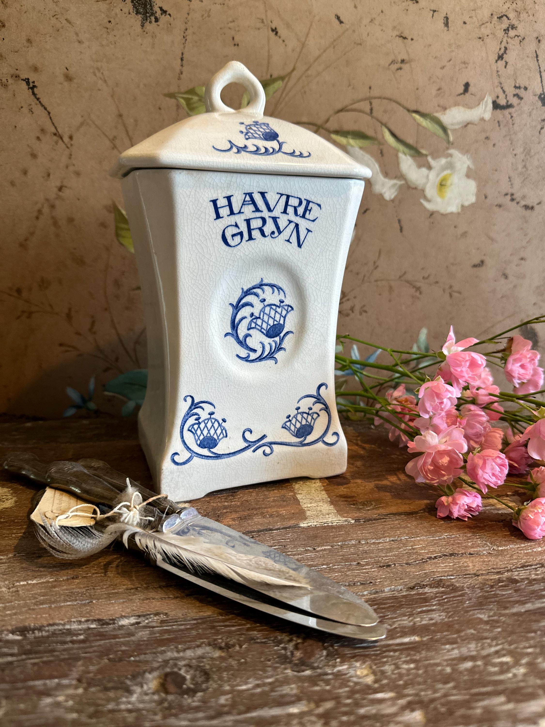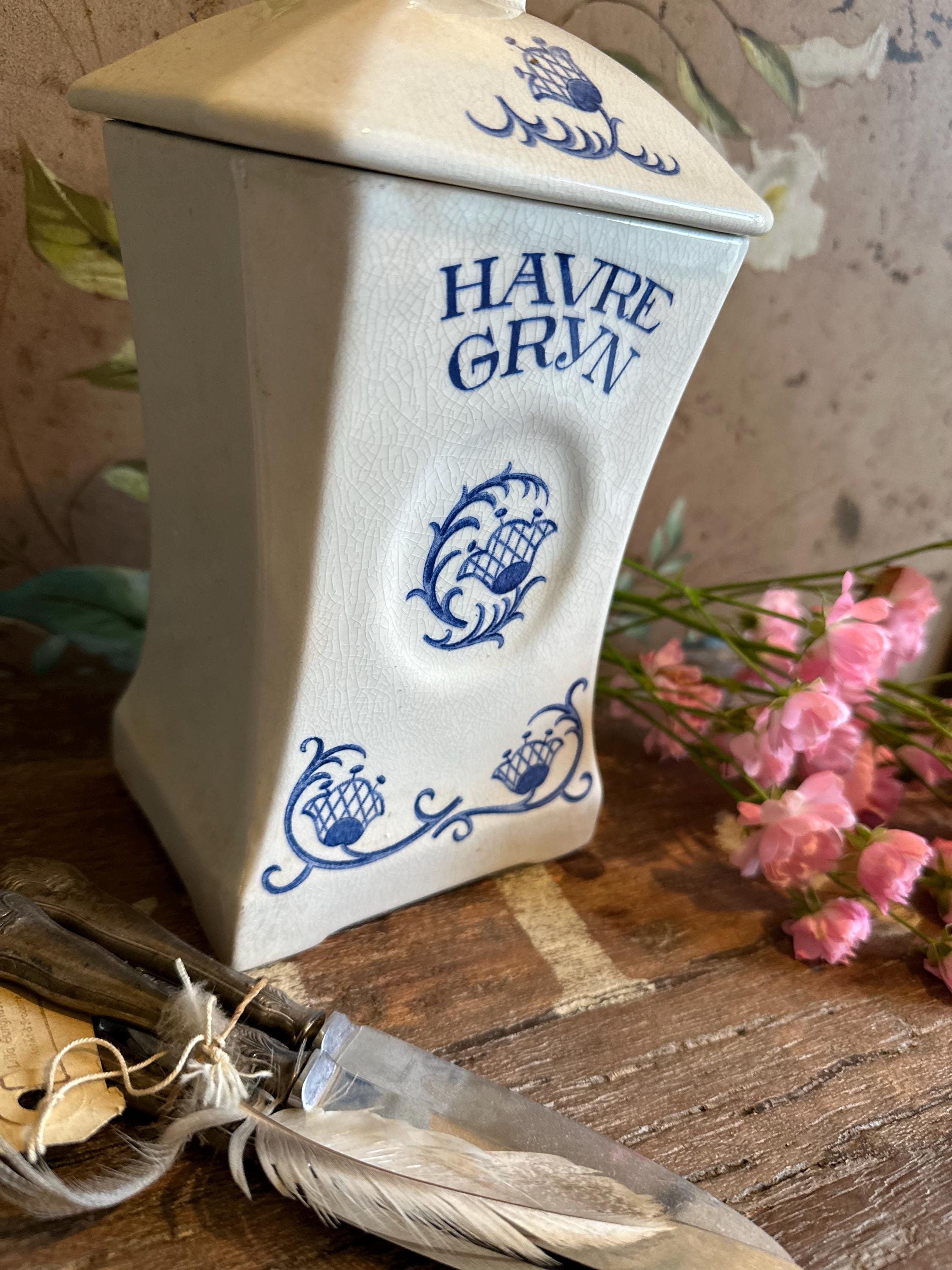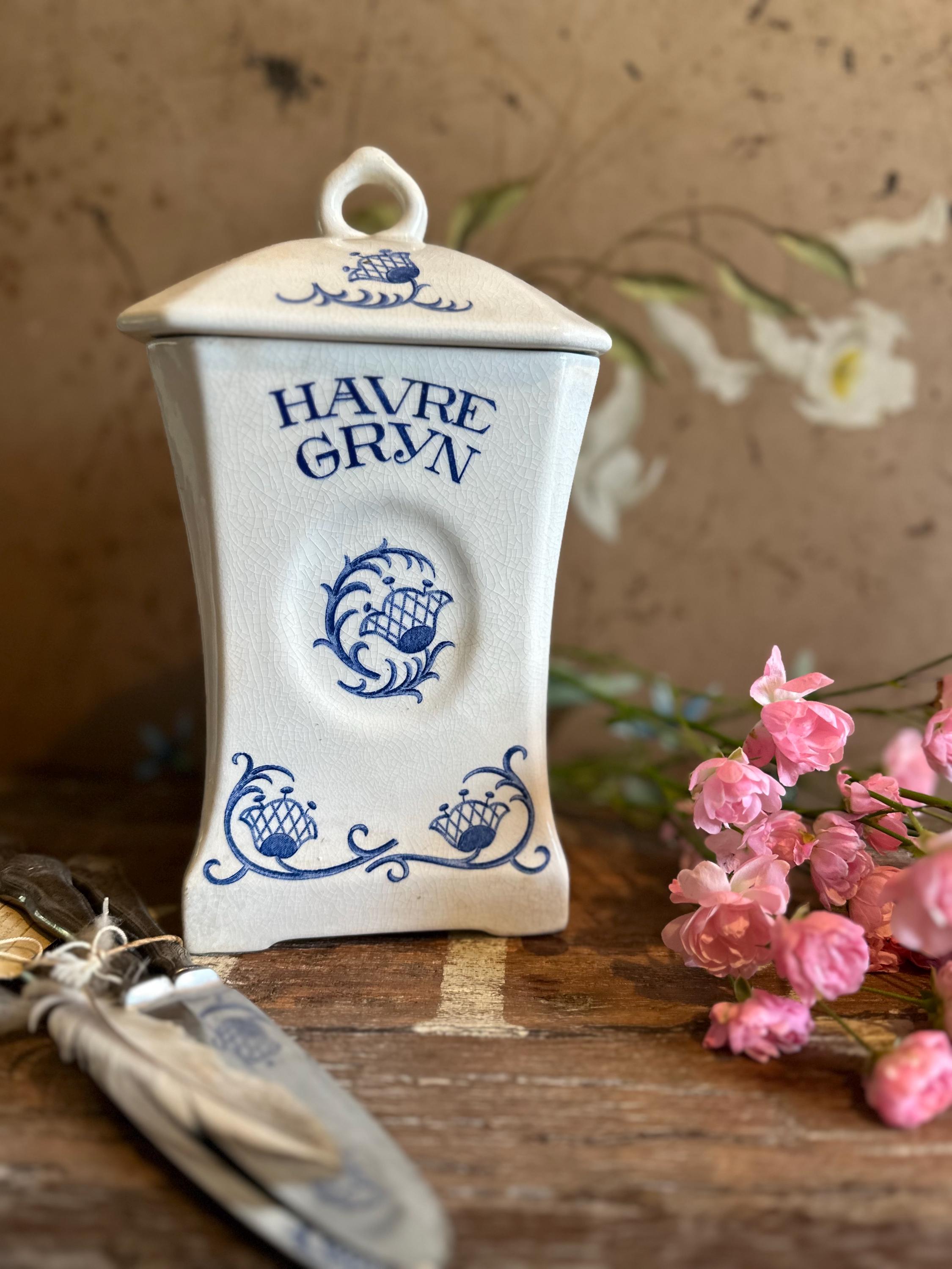 Greta's old Swedish porcelain storage jars - for muesli - a dreamy old porcelain patina decorated with a soft blue motif - these old storage containers are incomparably beautiful and fit as an eye-catcher in your country vintage kitchen - not only for storing muesli but also for small utensils that can be beautifully stored in them ❤️