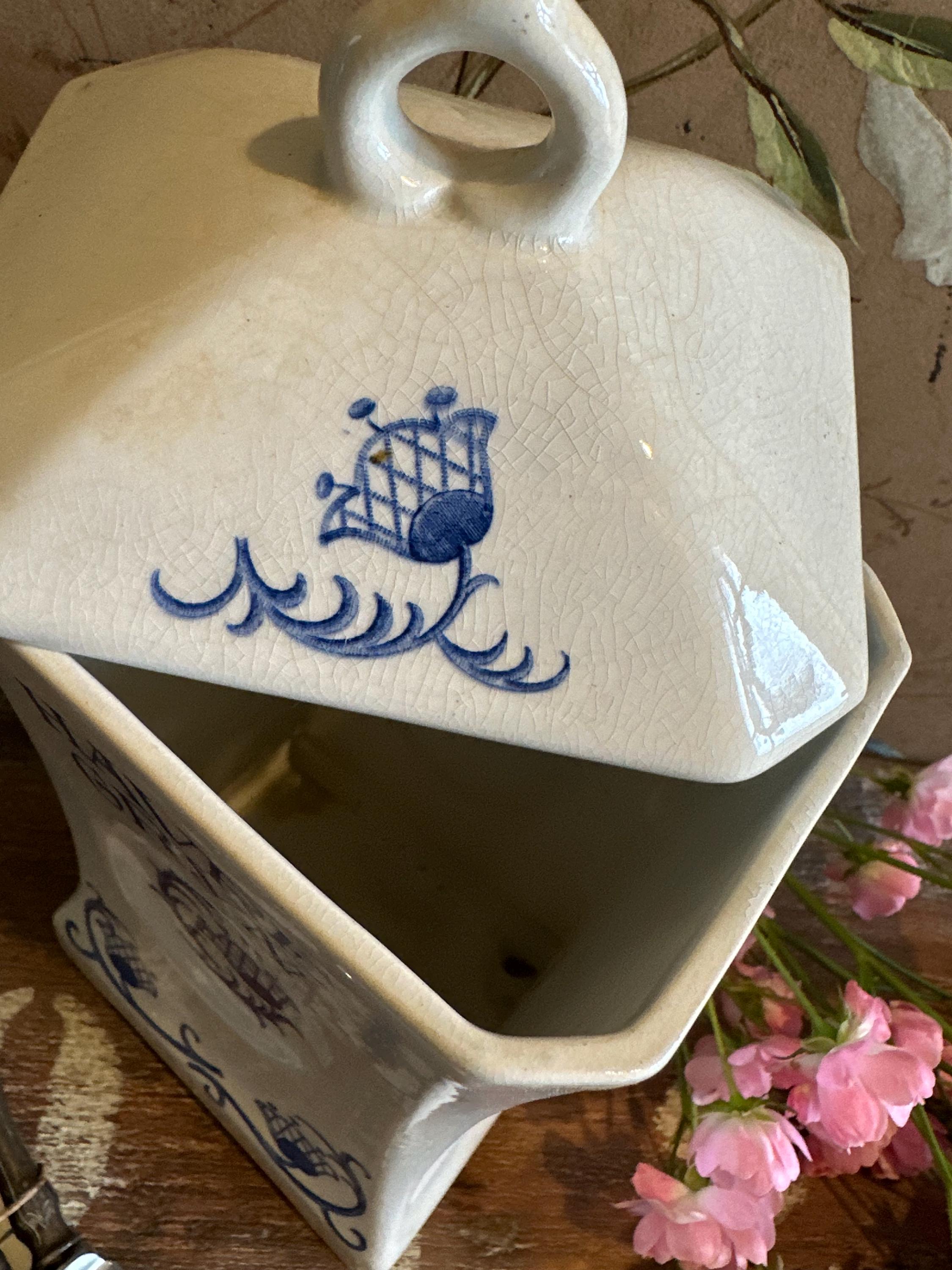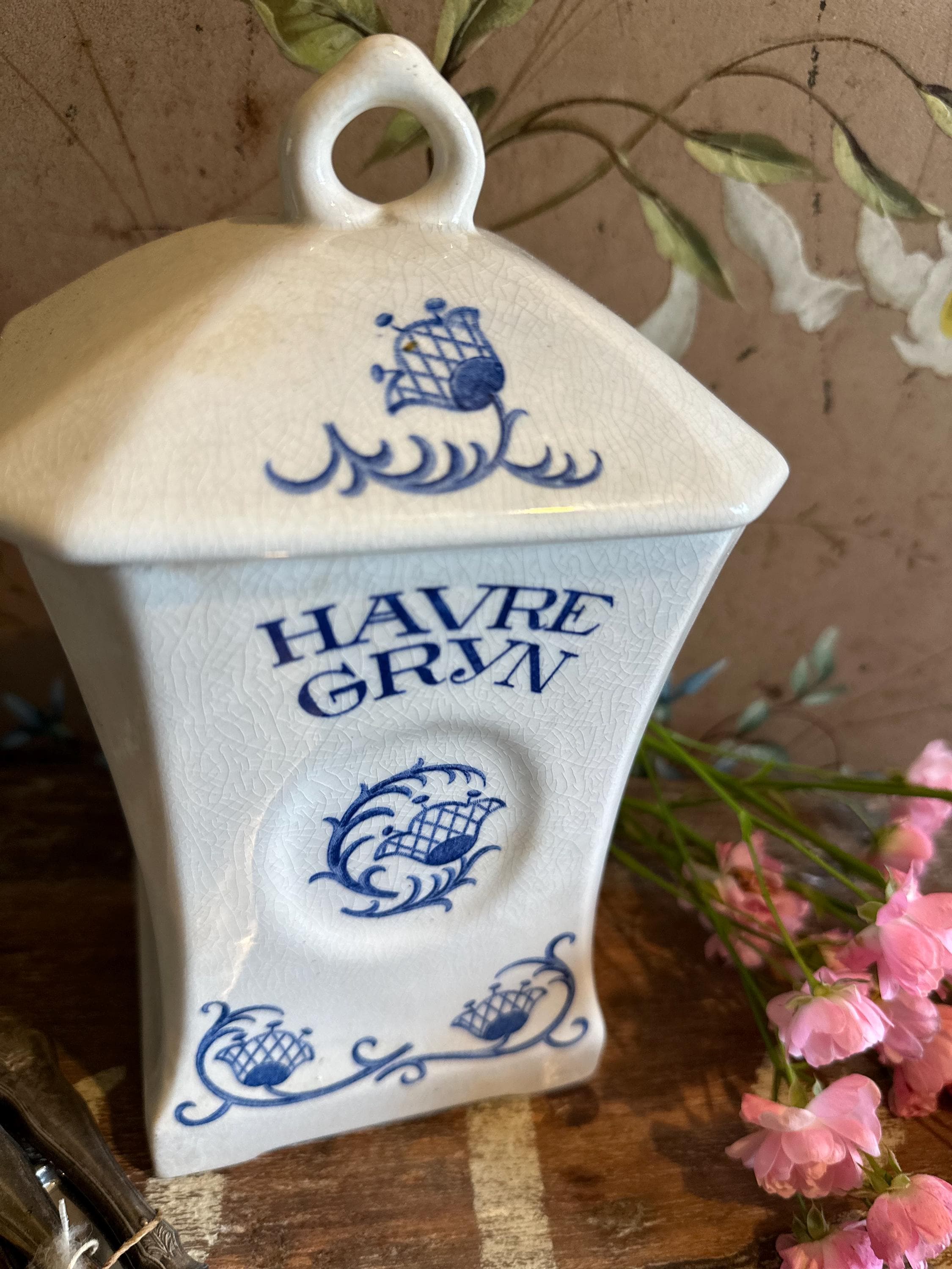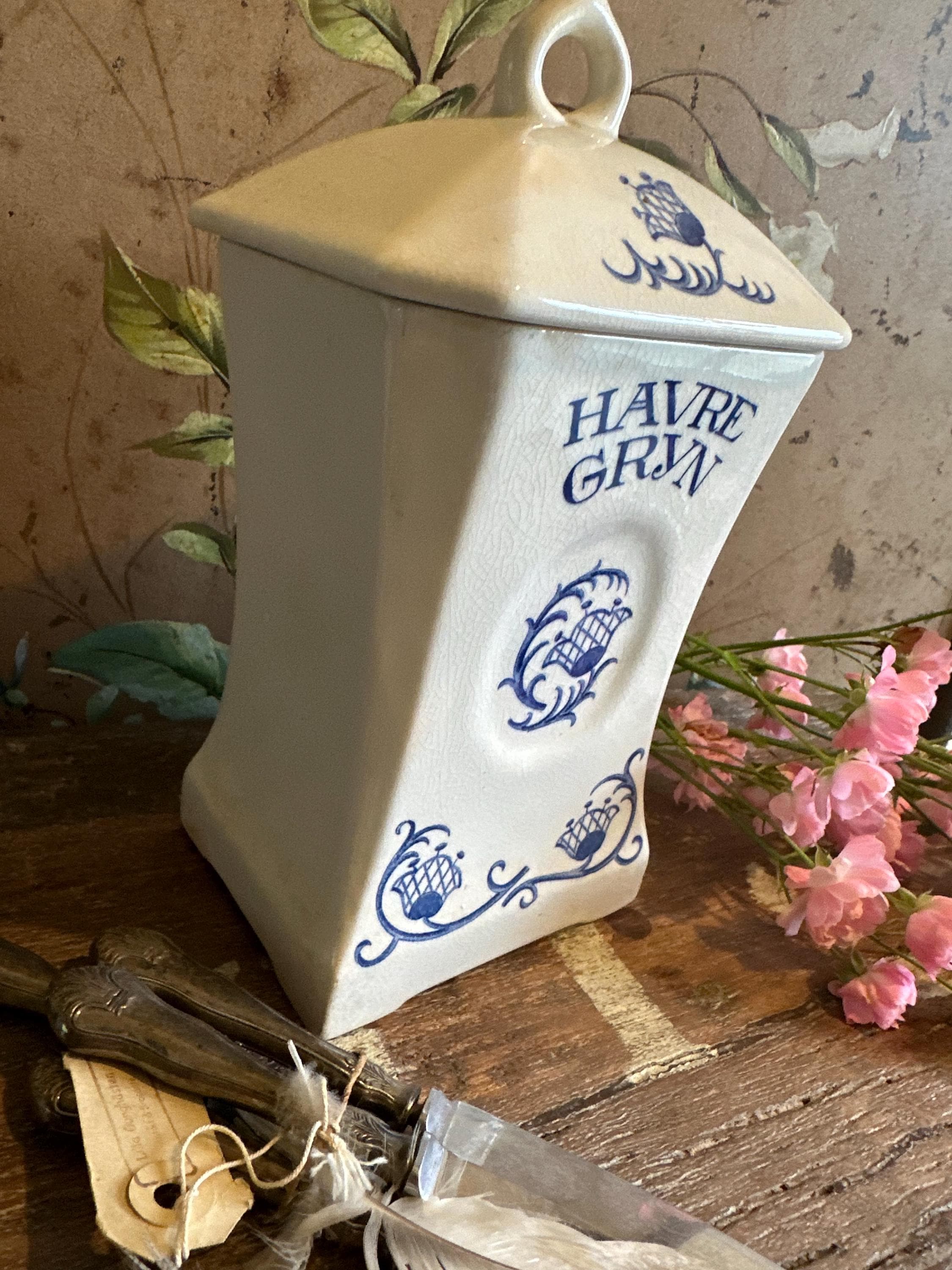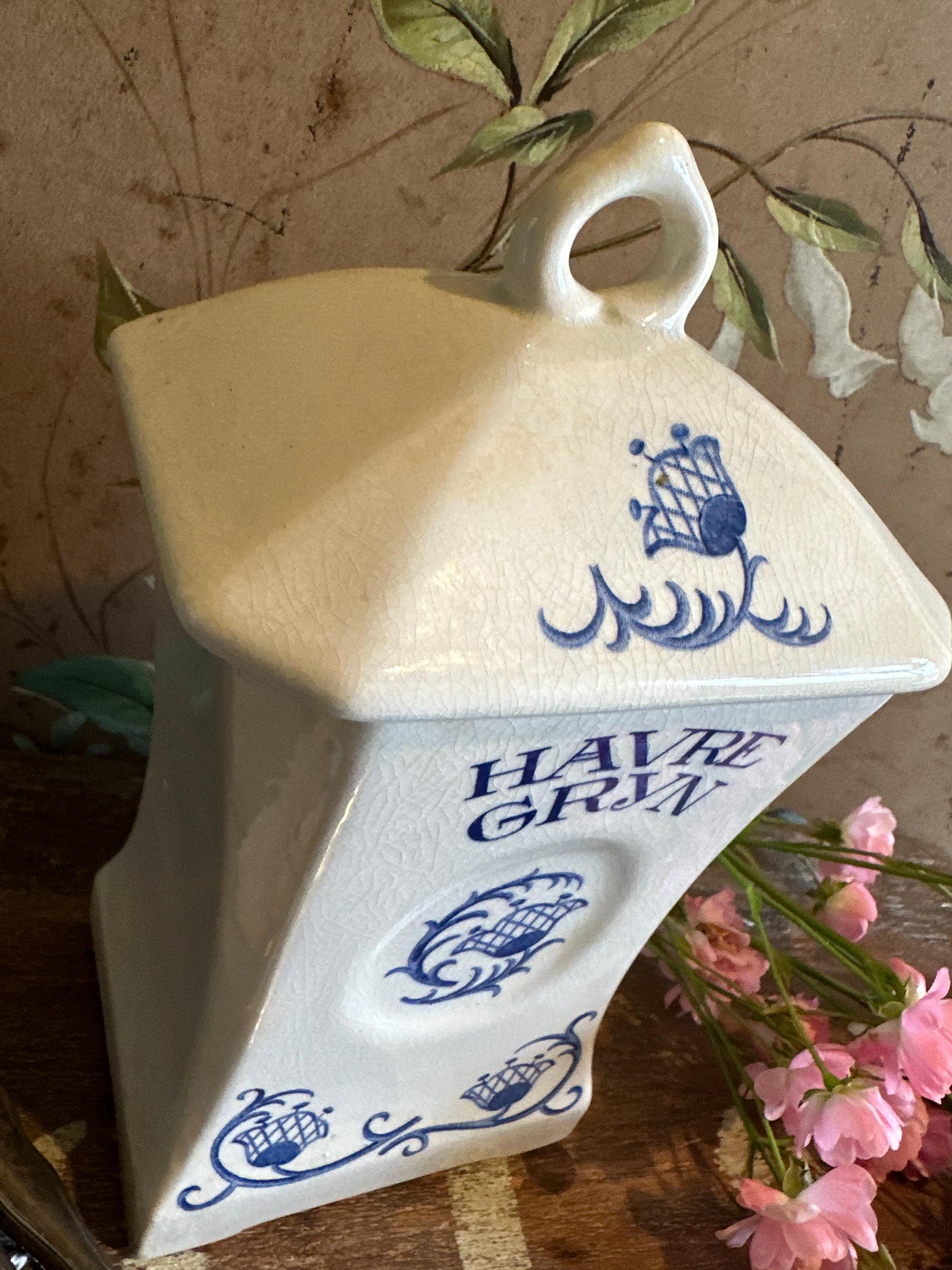 Greta's old Swedish porcelain storage jars - for muesli - a dreamy old porcelain patina decorated with a soft blue motif - these old storage containers are incomparably beautiful and fit as an eye-catcher in your country vintage kitchen - not only for storing muesli but also for small utensils that can be beautifully stored in them ❤️