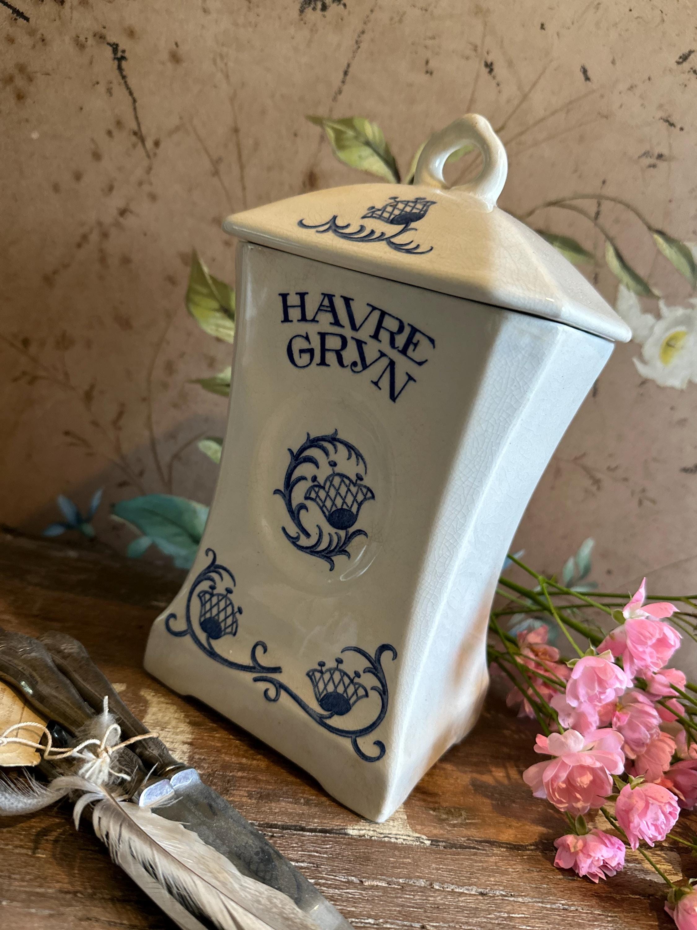 old antique storage tin porcelain tin vintage shabby muesli Swedish