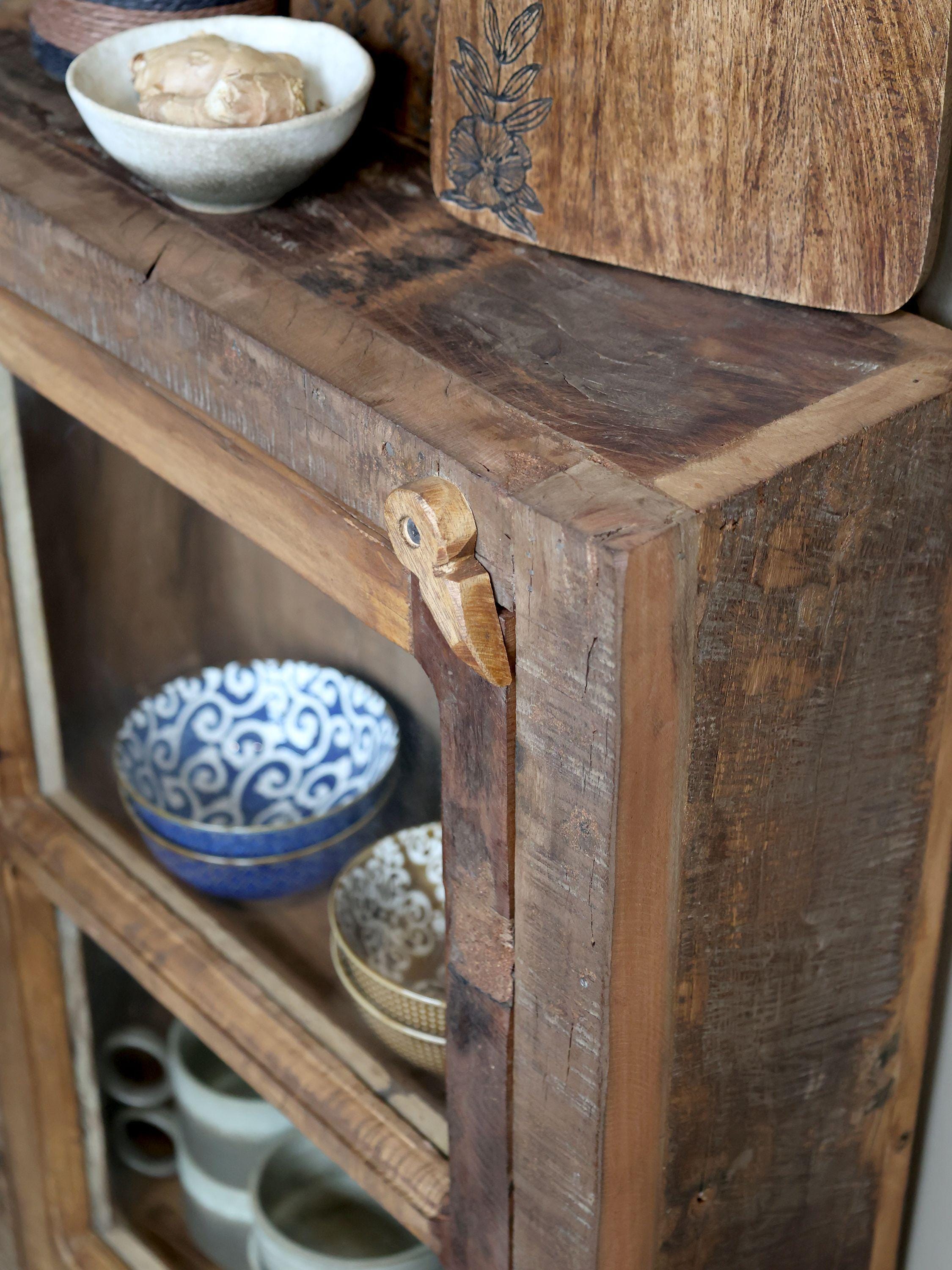An extravagant cabinet – a dream with a touch of industrial style paired with shabby chic and Nordic flair. A freestanding display case with an inviting, daydream-inducing ambiance – friendly and cozy, it blends seamlessly into various interior styles and is a real eye-catcher whether in the bathroom, kitchen, or living room – an extravagant standalone piece. Made of wood, this charming little piece of furniture can beautify your personal paradise. Inside, you can stylishly display and admire your treasured possessions.