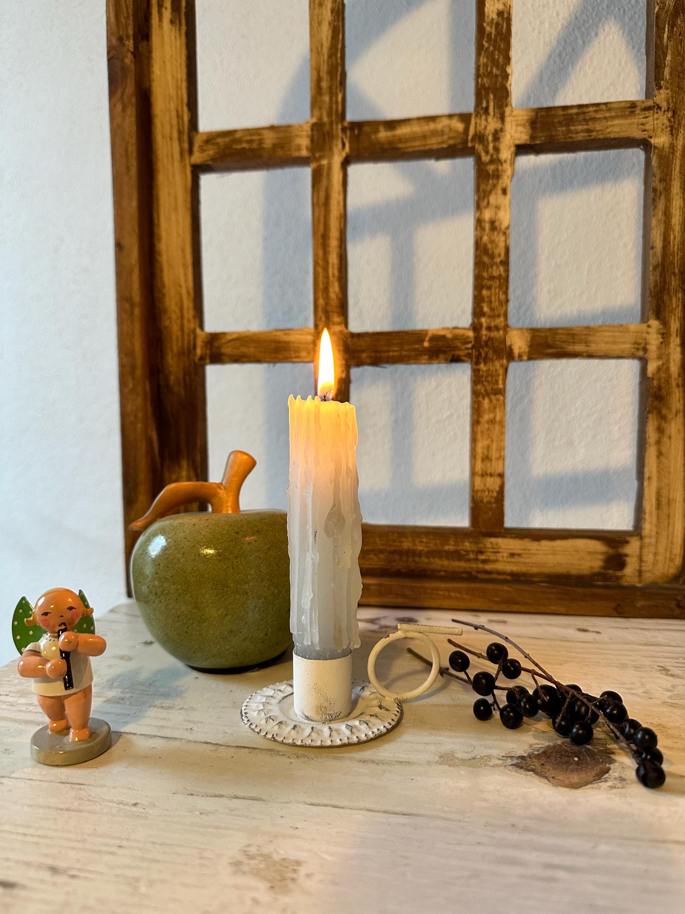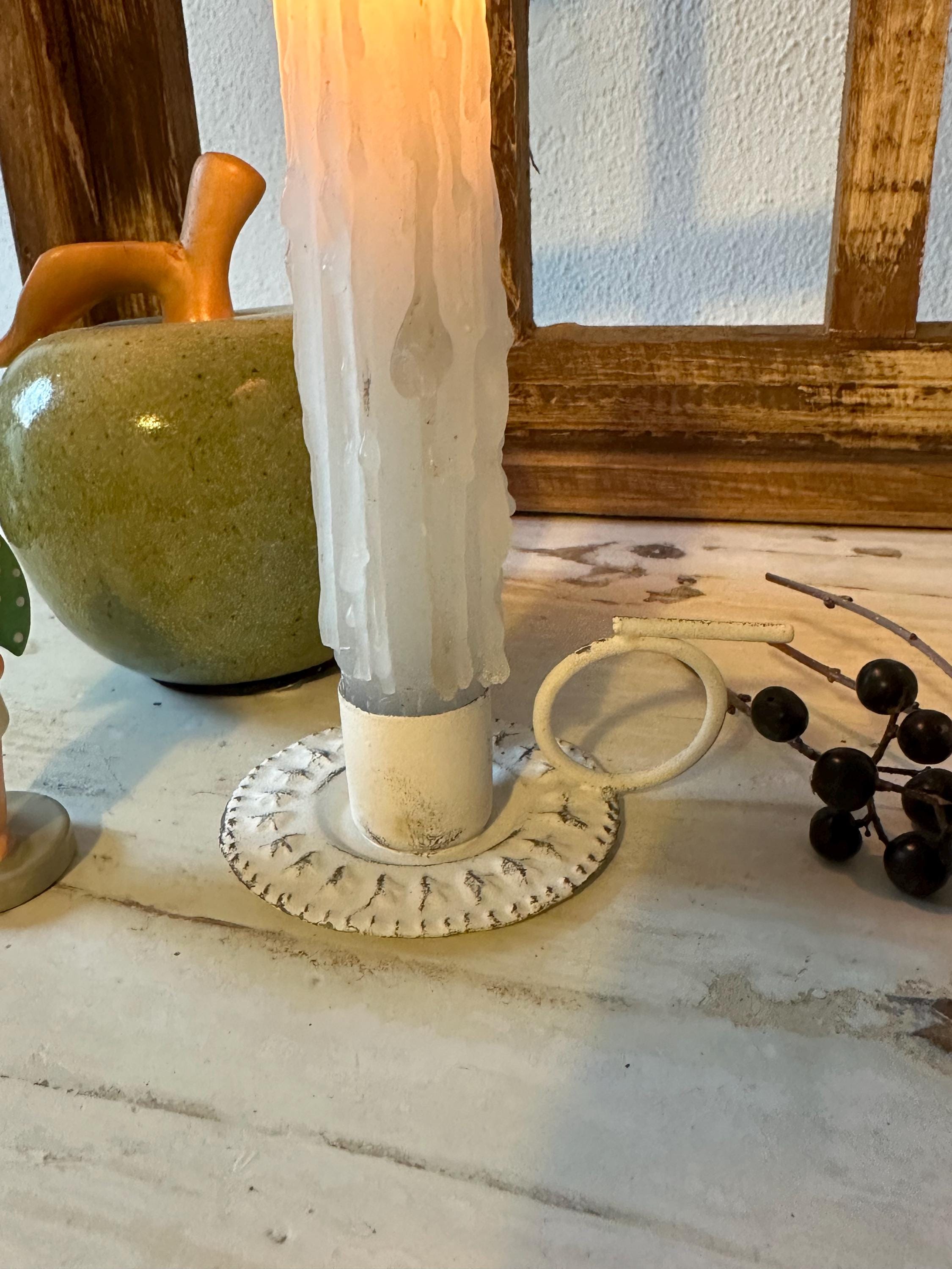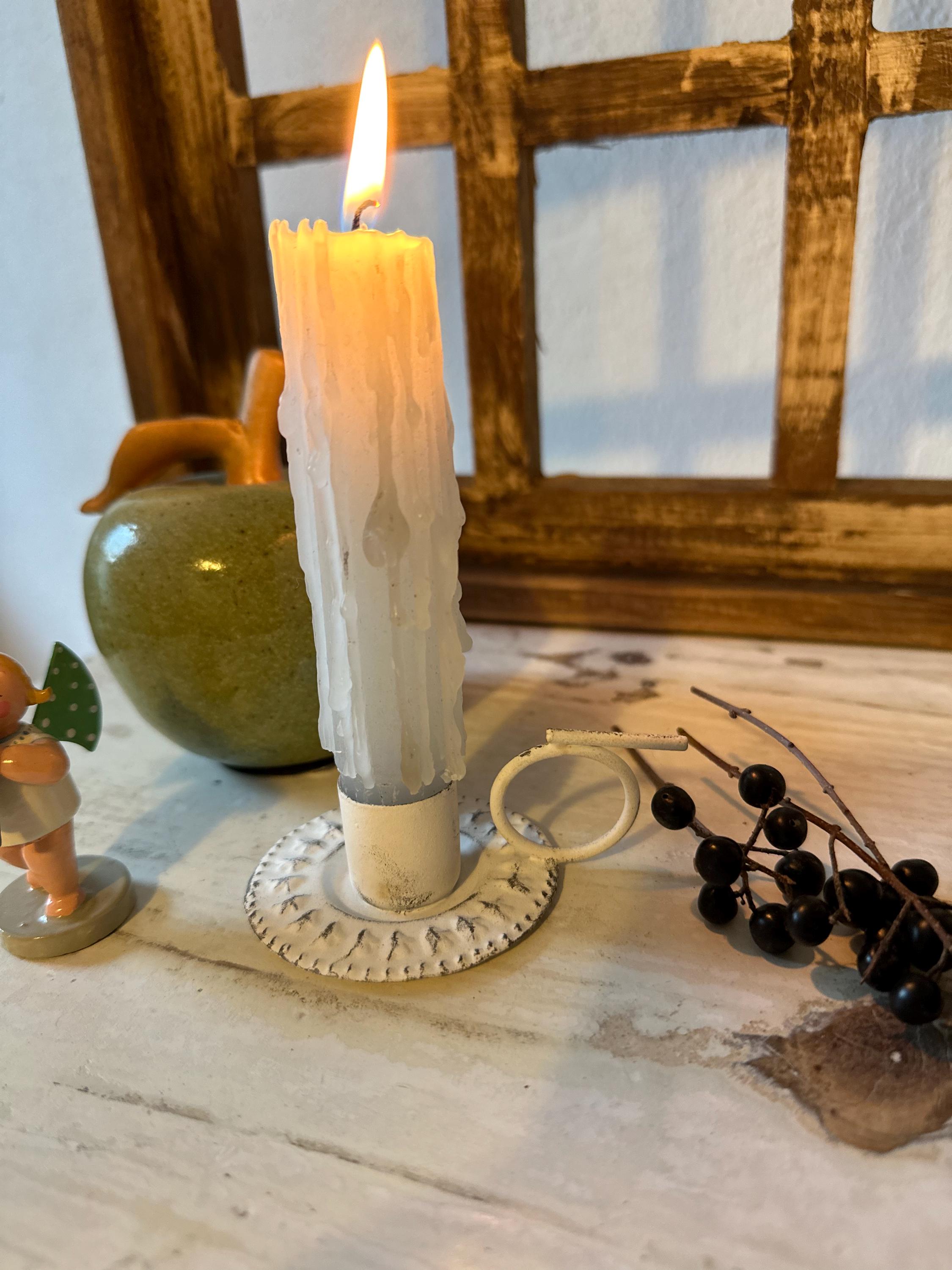 Matching, beautifully shaped zinc candle holders in white with handles - like an old chamber candlestick with a lovely white zinc patina - special candlesticks for a warm light - something different ❤️