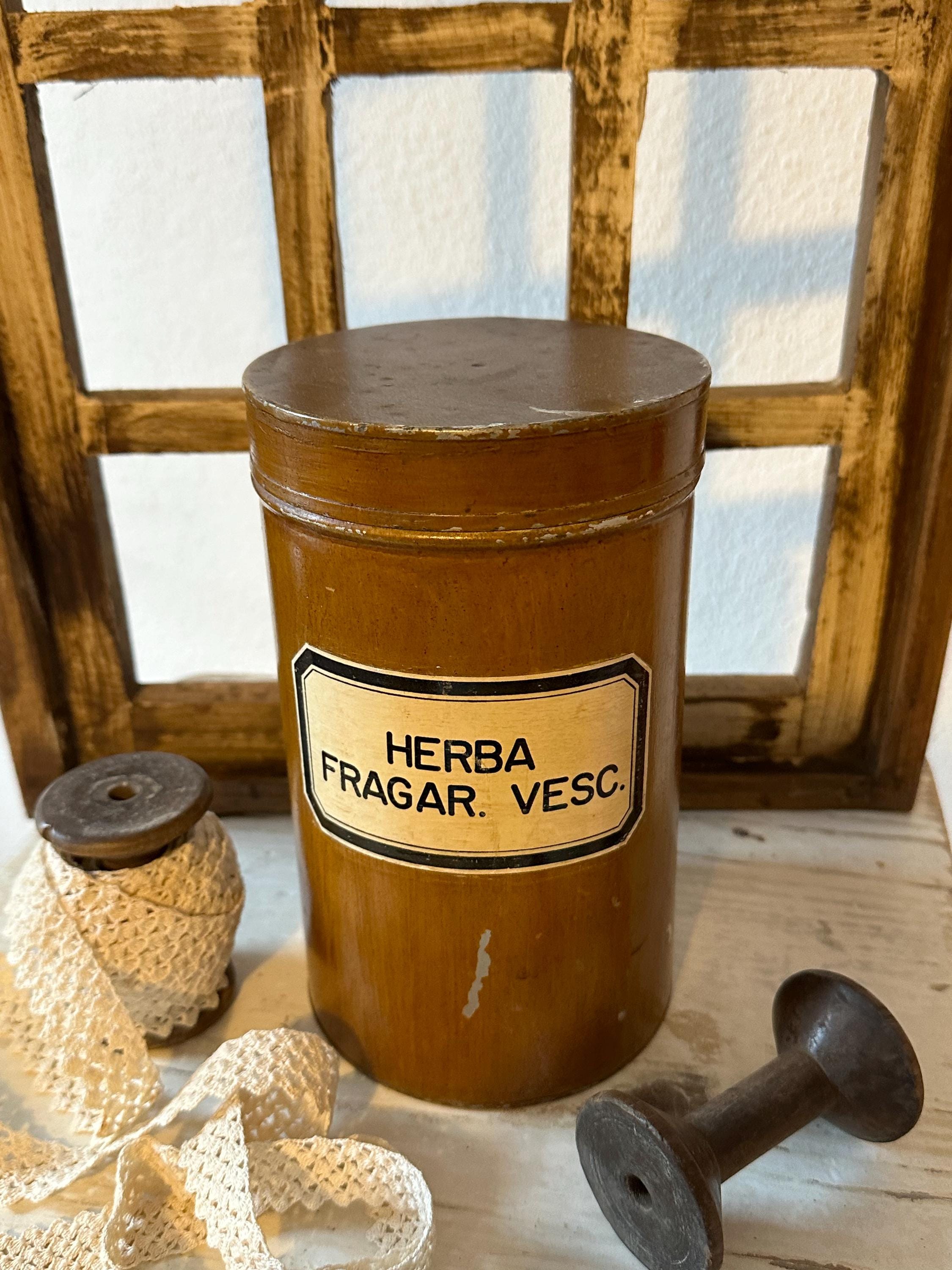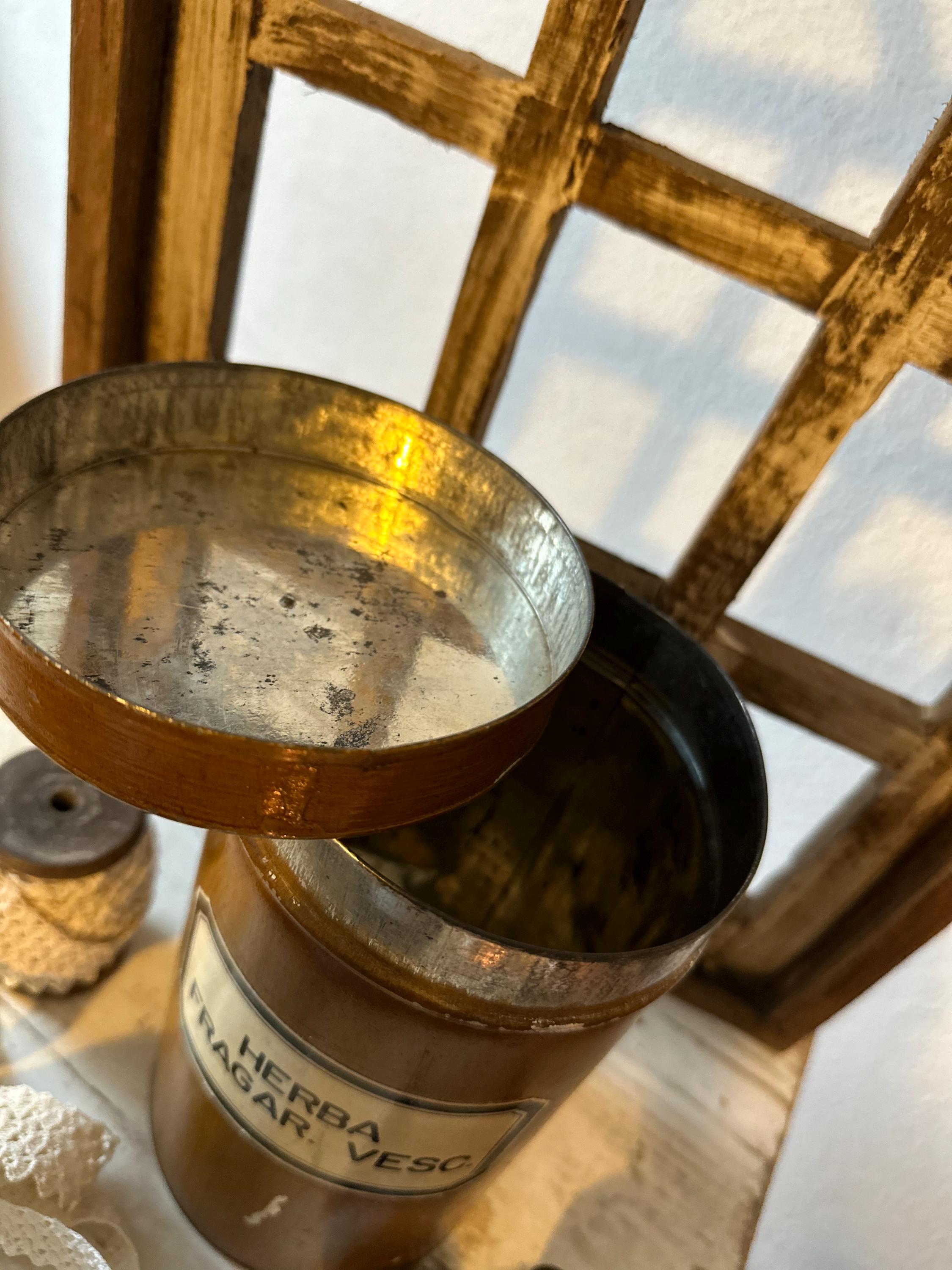 Old antique apothecary tins, tin storage box, vintage tin