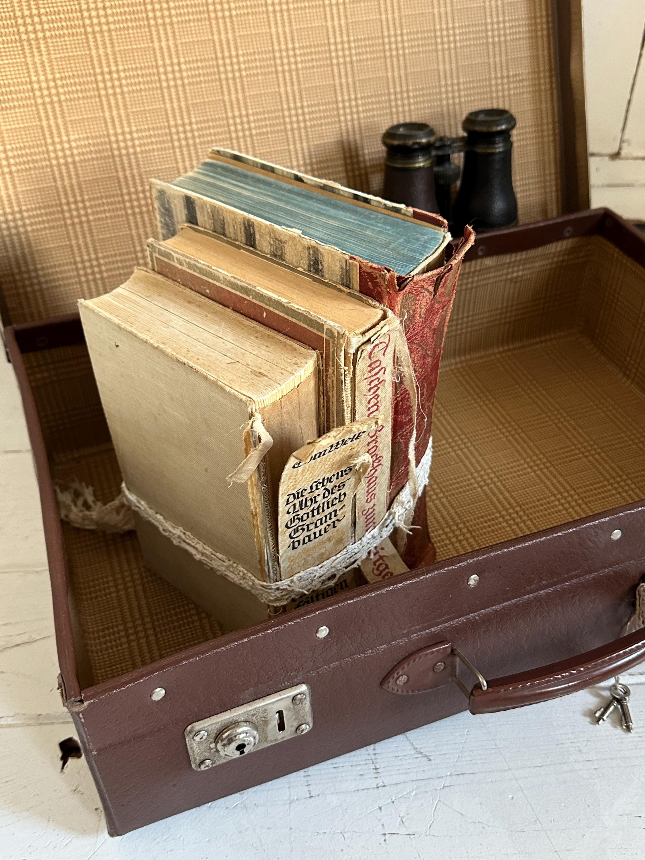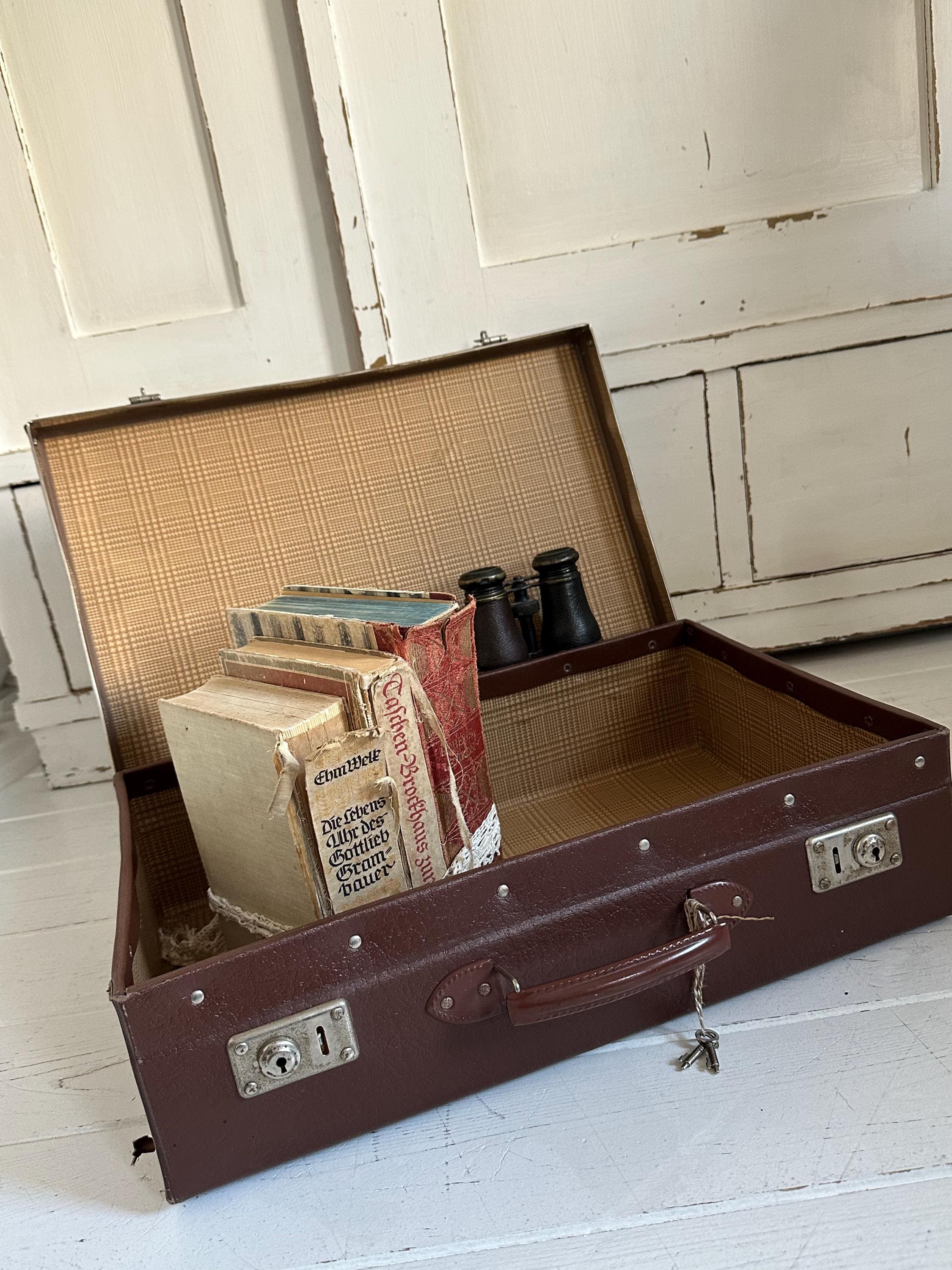 A small suitcase from grandfather's time, with it you can go on a journey through time, you can bring me to you, decorate me, arrange me or use me as storage and hiding place for small things.