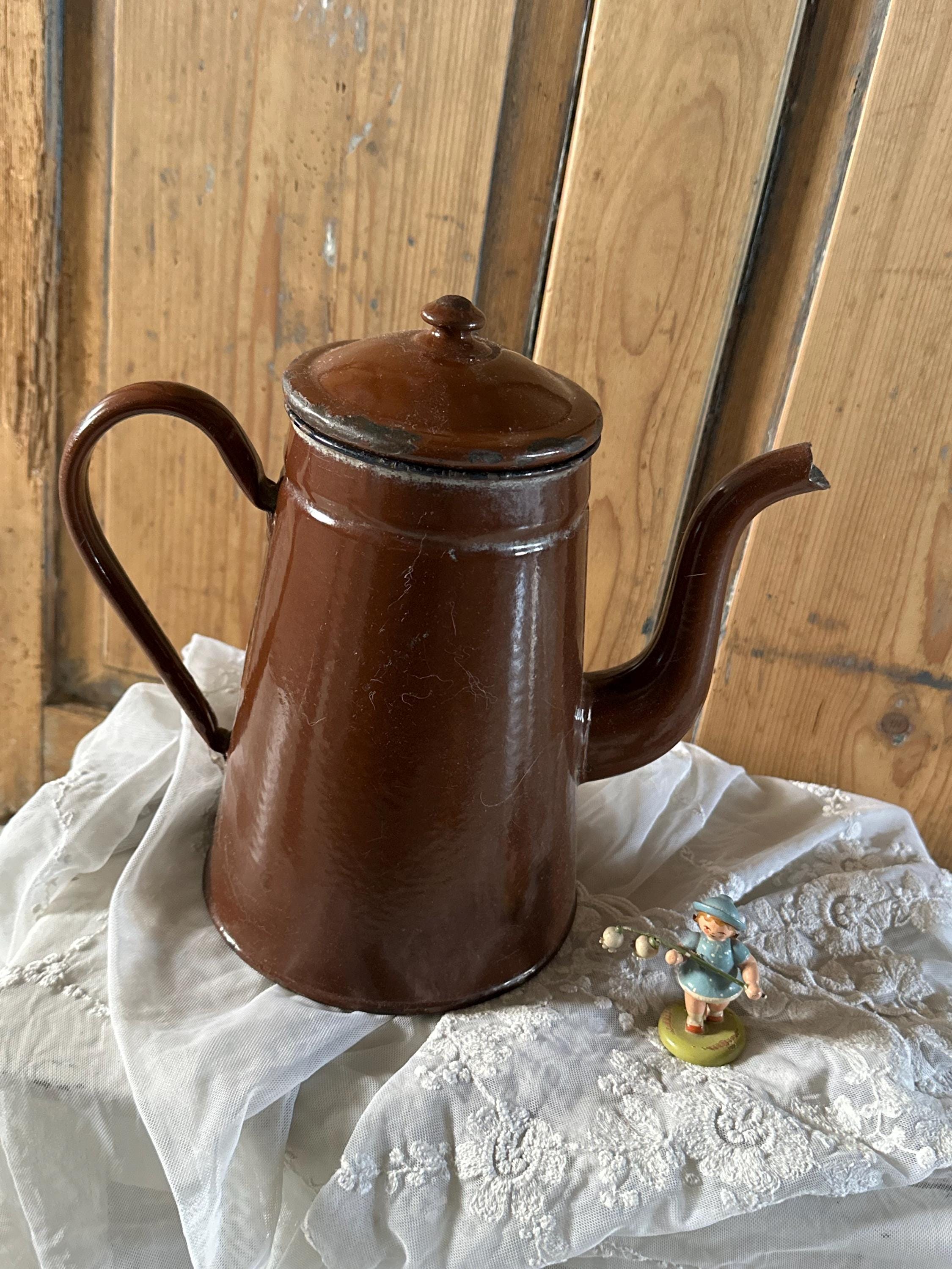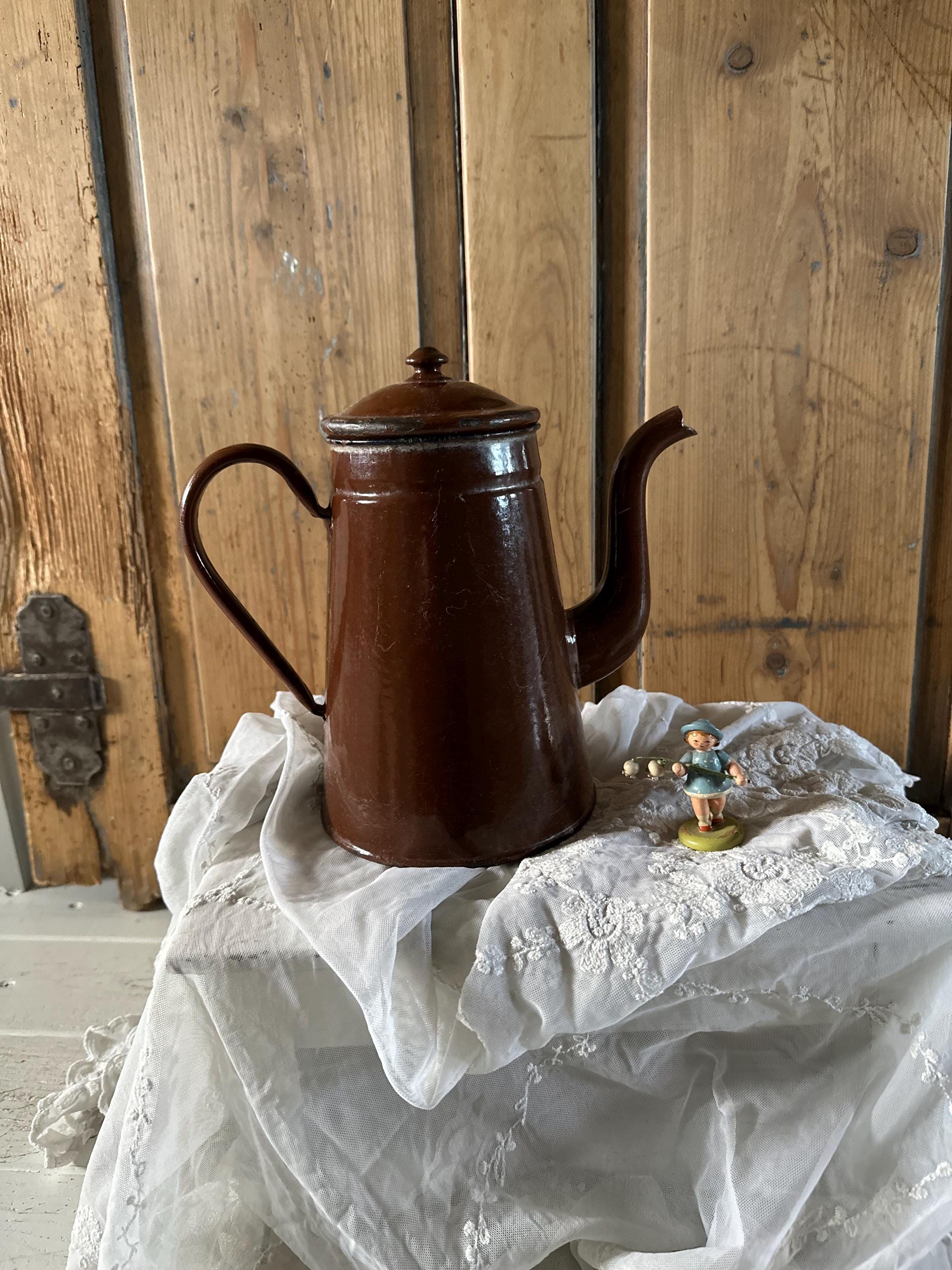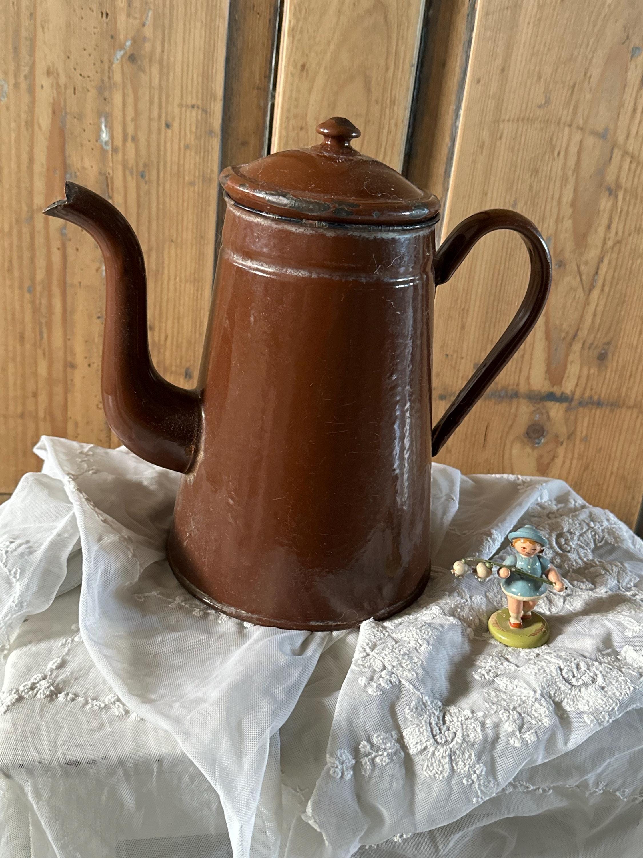 Old enamelware found in Grandma's kitchen - in brown - an old milk can with lots of vintage charm - decorative containers for indoors or outdoors - each one adds a touch and is also an alternative storage solution - used and old with all its imperfections ❤️