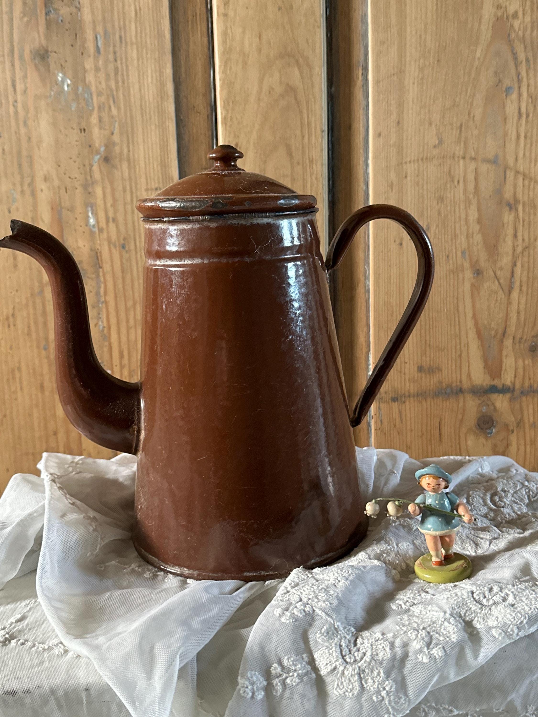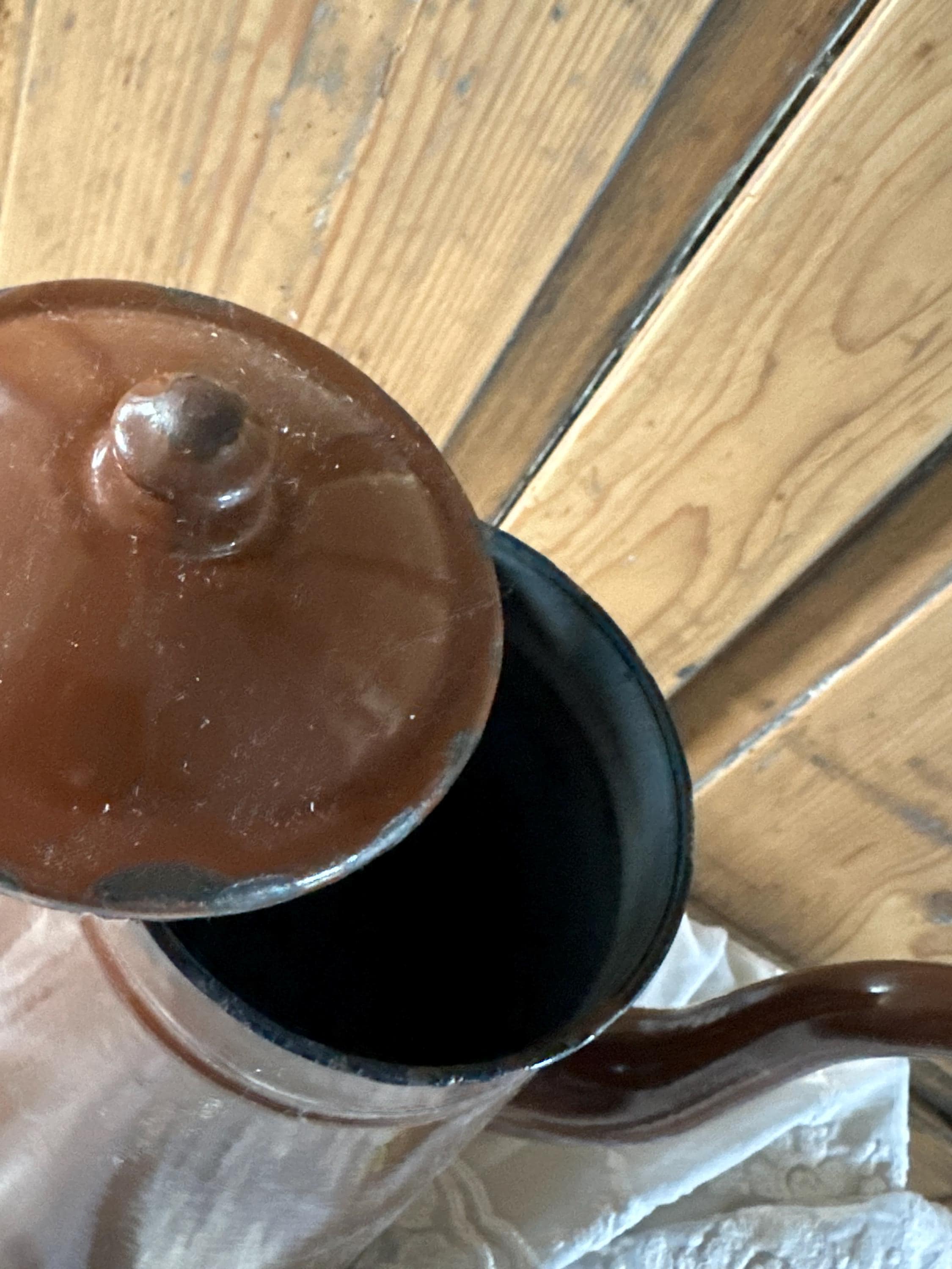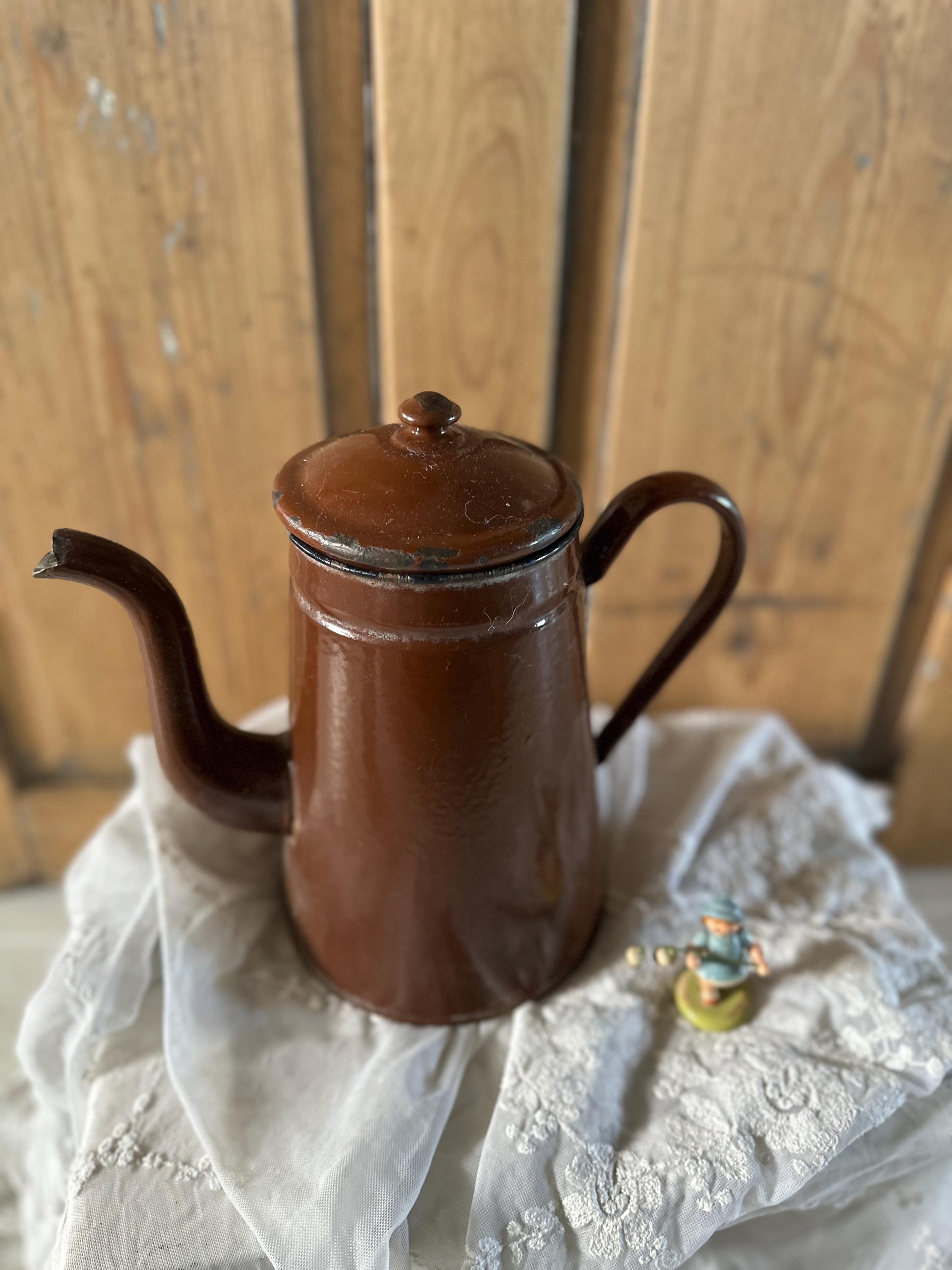 Old enamelware found in Grandma's kitchen - in brown - an old milk can with lots of vintage charm - decorative containers for indoors or outdoors - each one adds a touch and is also an alternative storage solution - used and old with all its imperfections ❤️