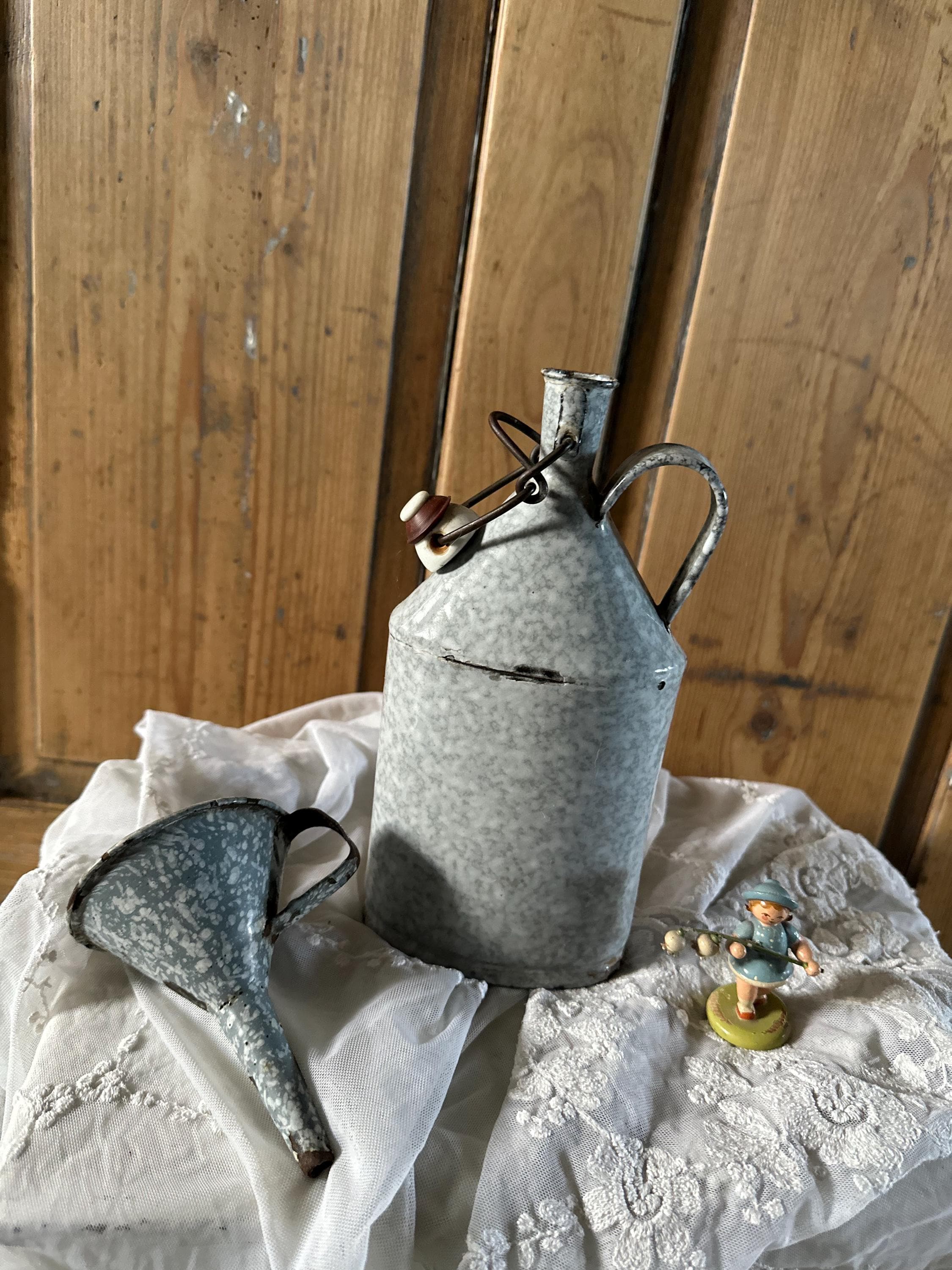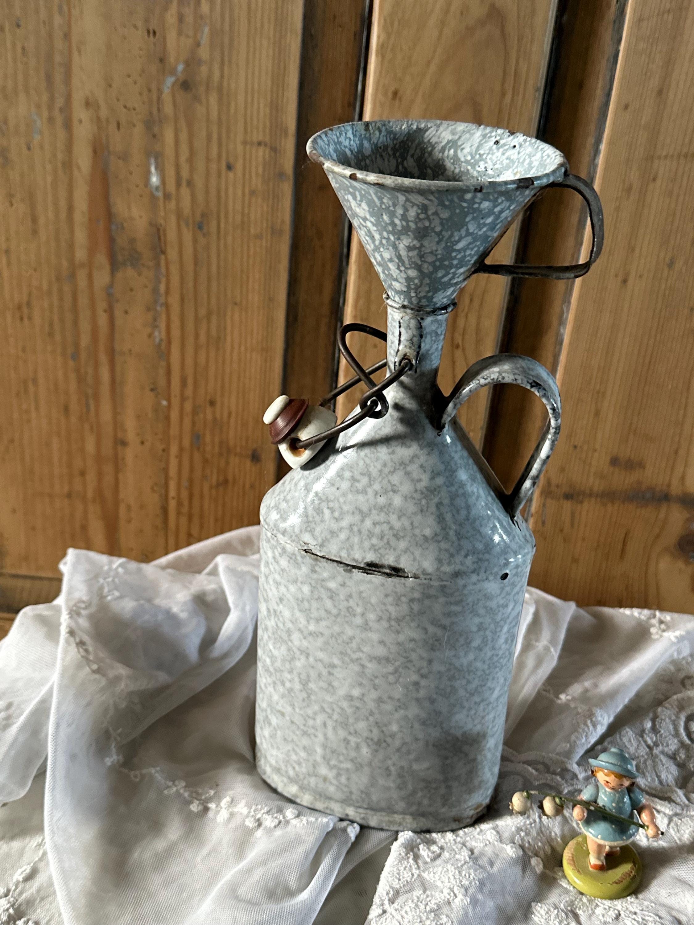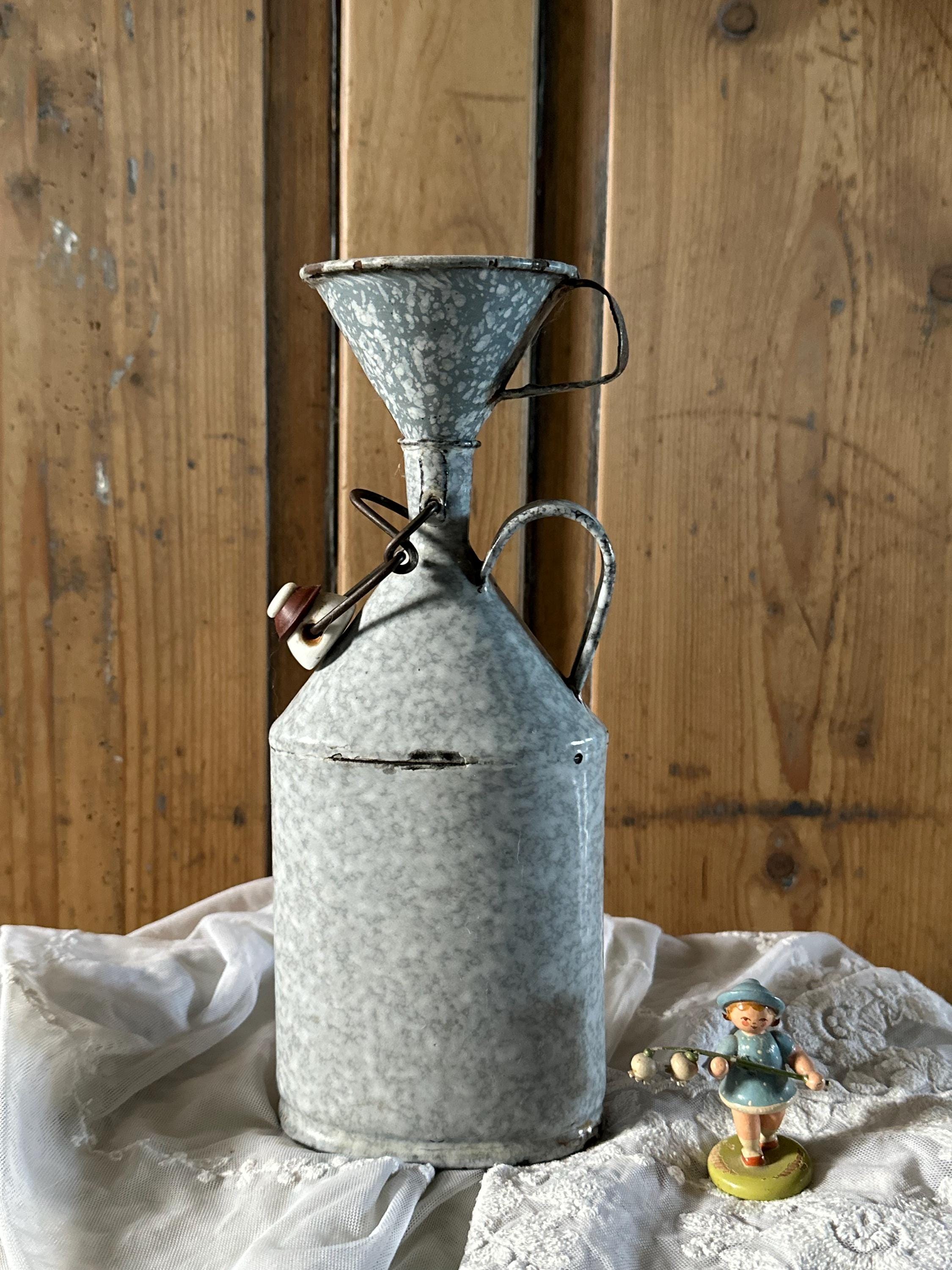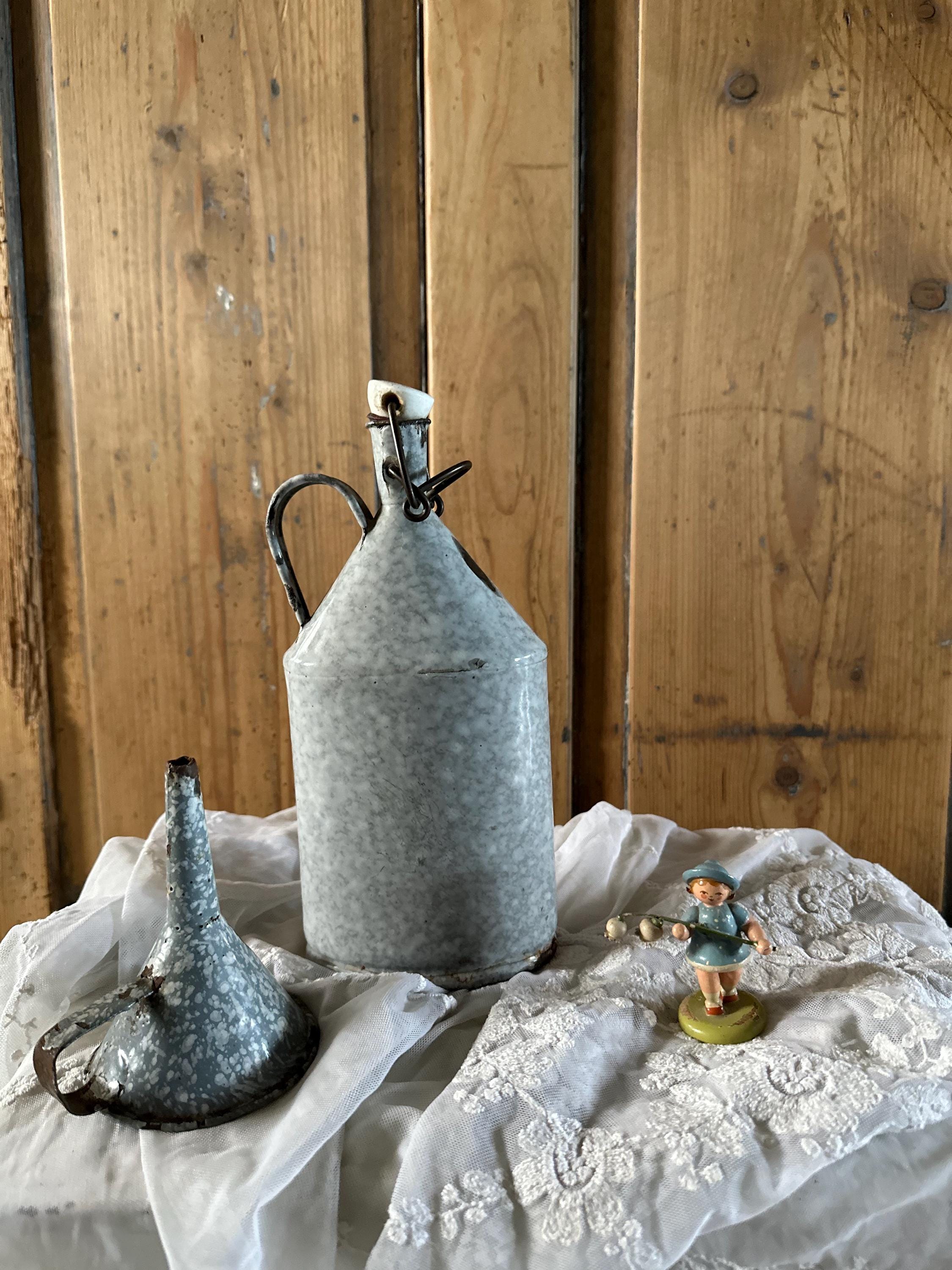 Old enamelware found in Grandma's kitchen - an old canteen with funnel as part of the set - full of vintage charm - decorative containers for indoors or outdoors - each one adds a special touch and also serves as an alternative storage solution - used and old with all its imperfections ❤️