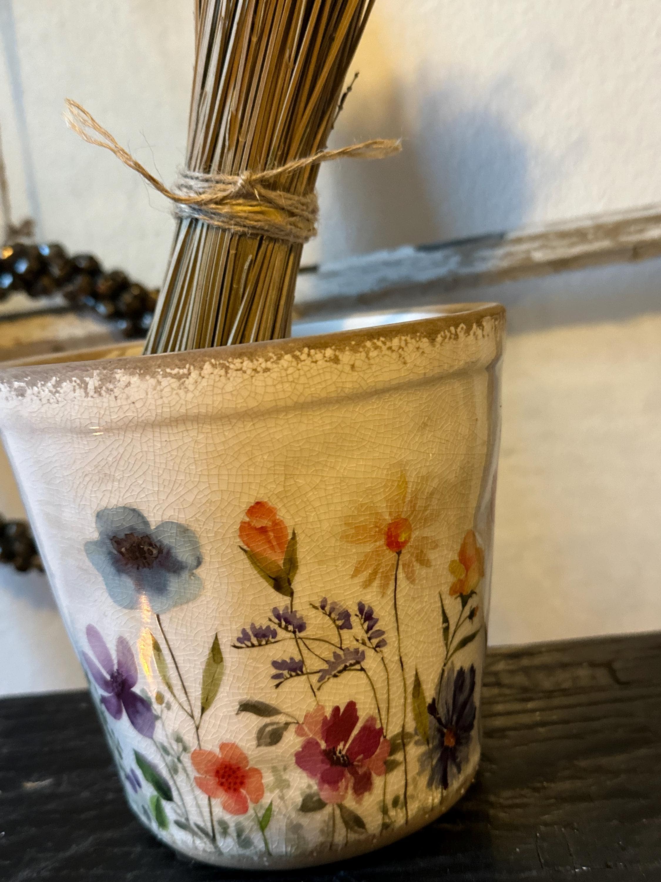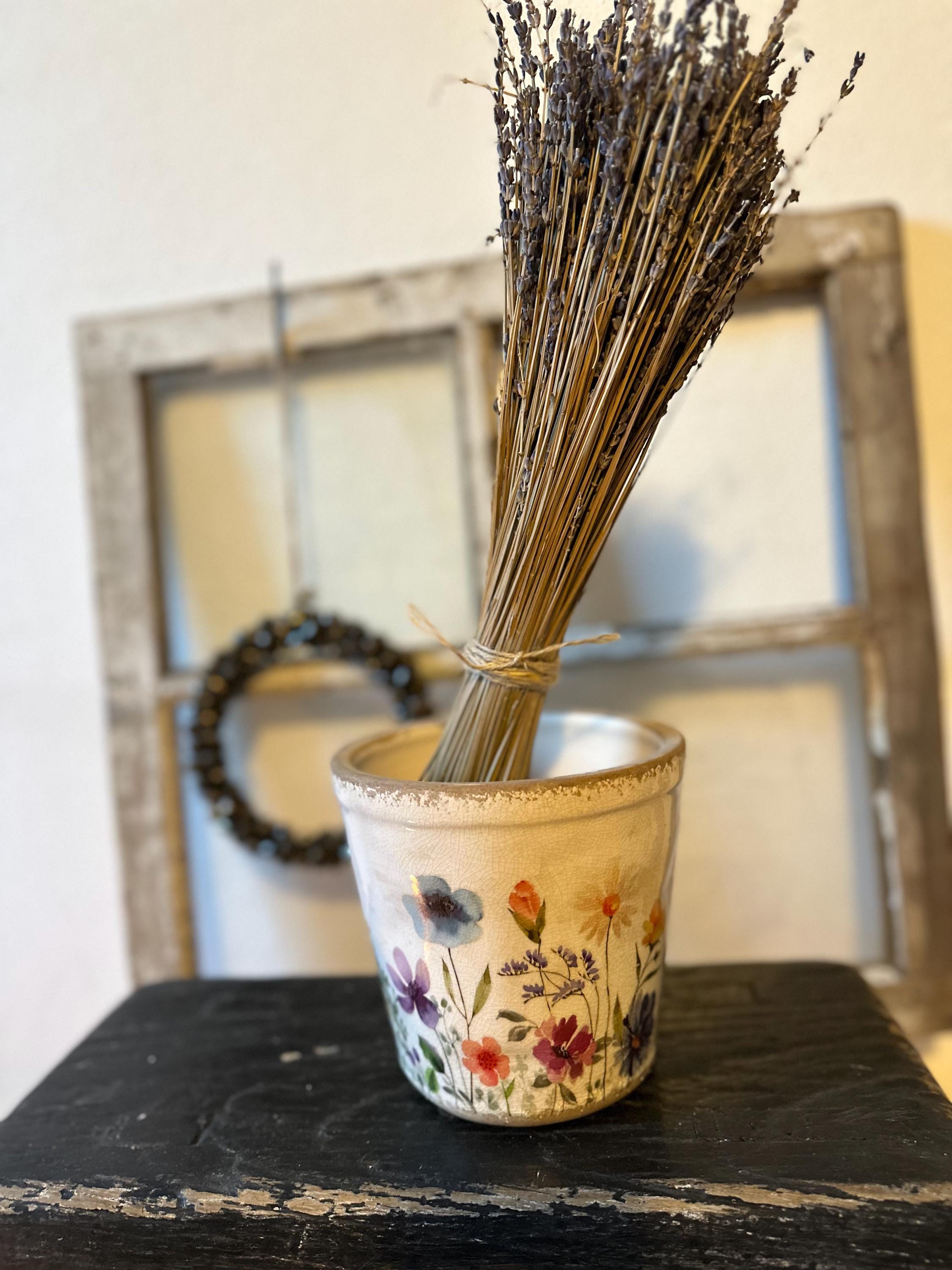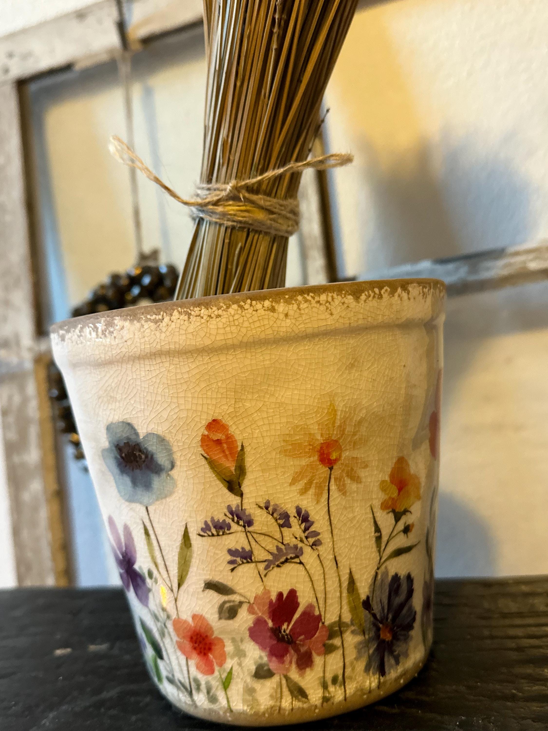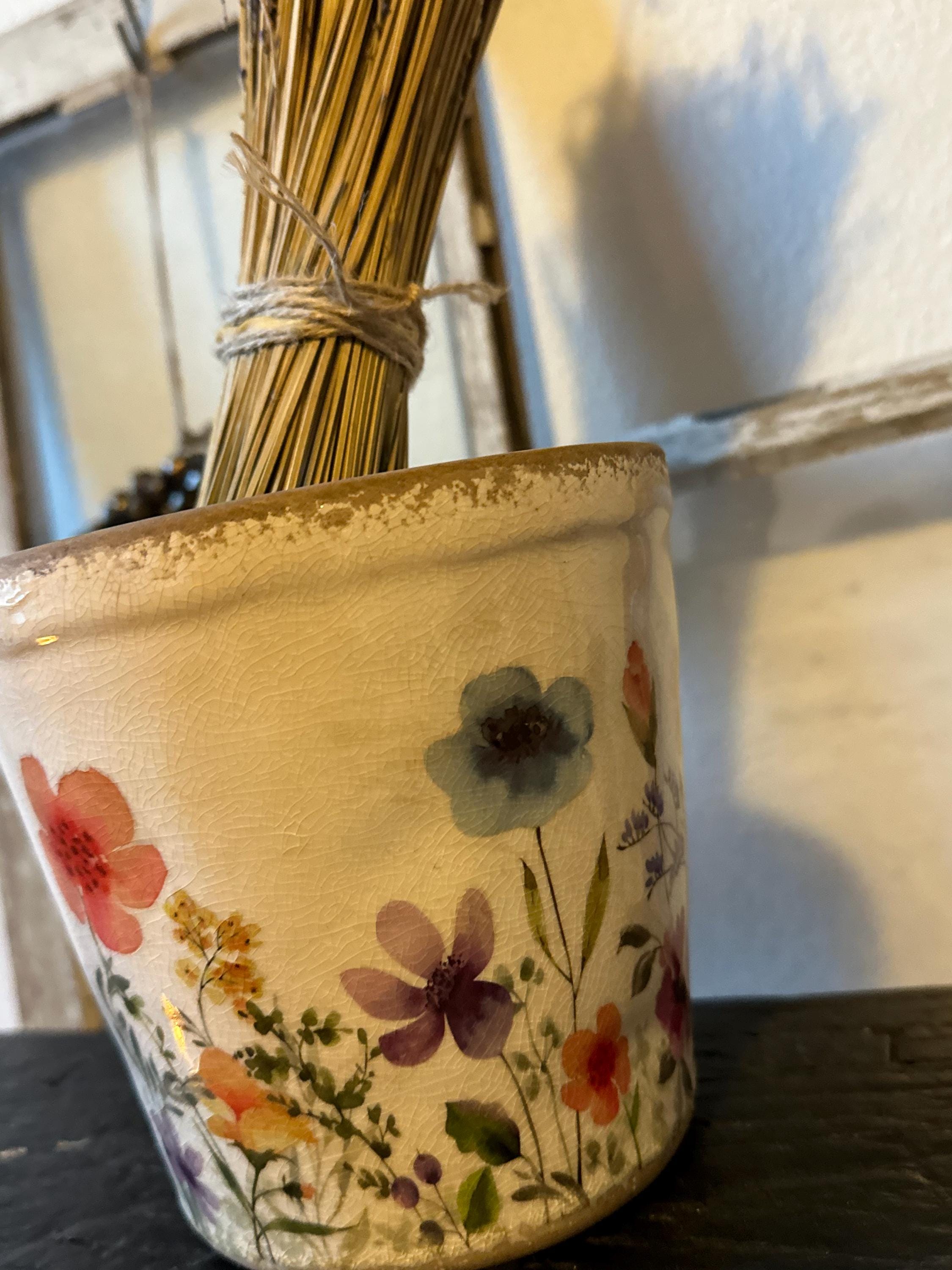 Beautiful ceramics – these enchanting pots are inspired by the French country style – a charming floral meadow pattern combined with a lovely old, cracked patina, as if these pots were decades old – they evoke memories of bygone eras and are a beautiful companion for fresh meadow bouquets, branches, or dried grasses – create your own unique atmosphere. ❤️
