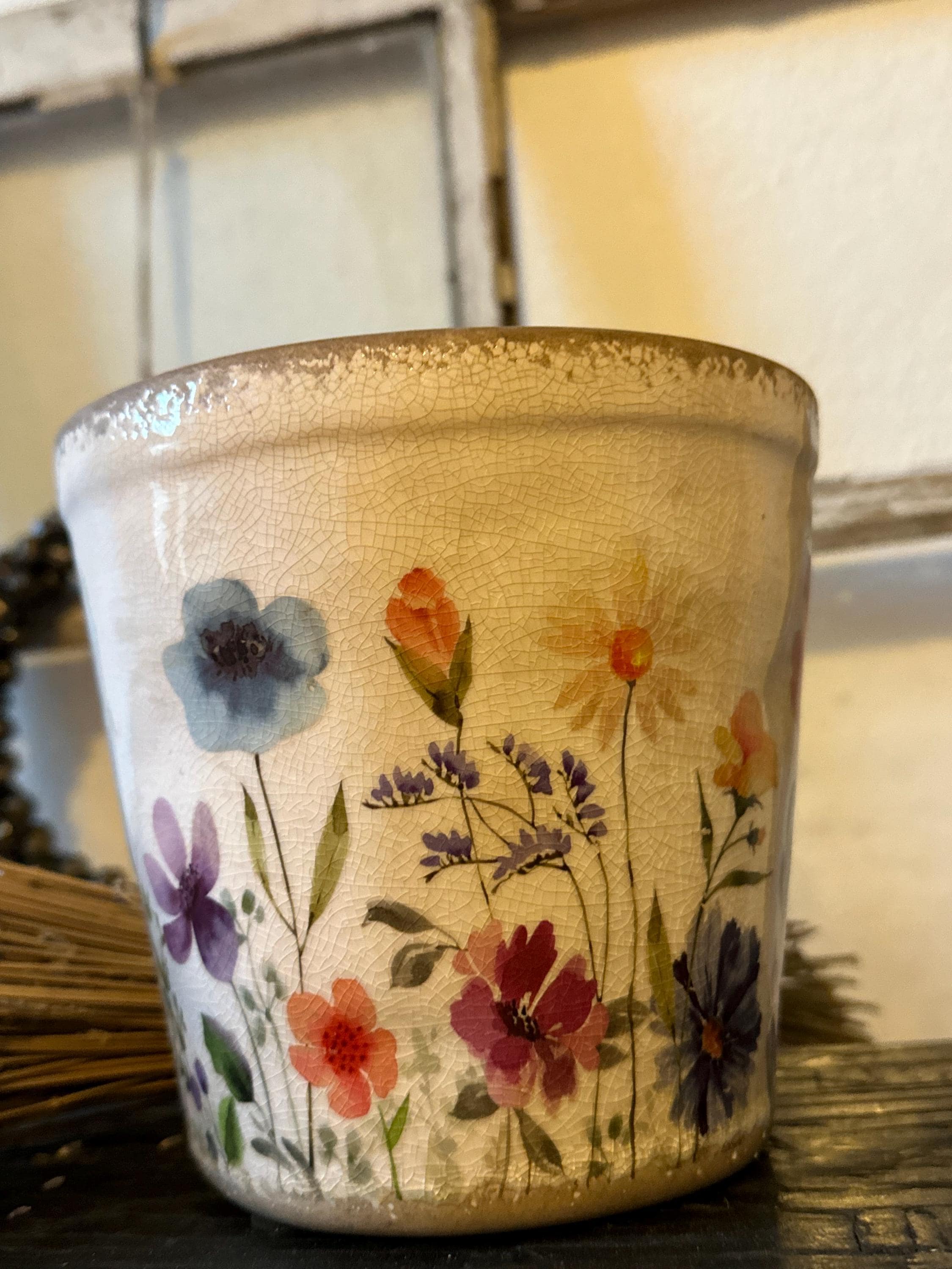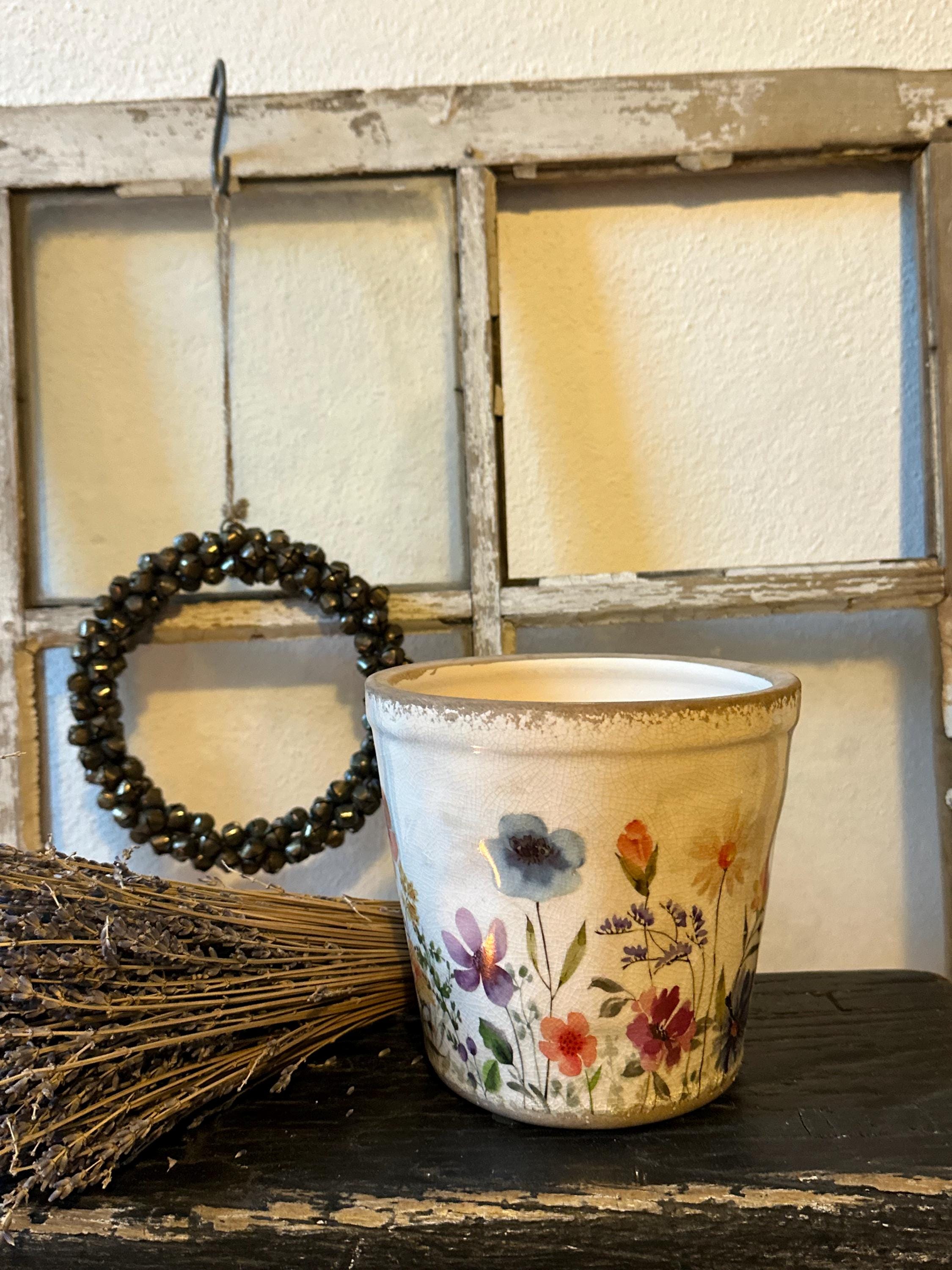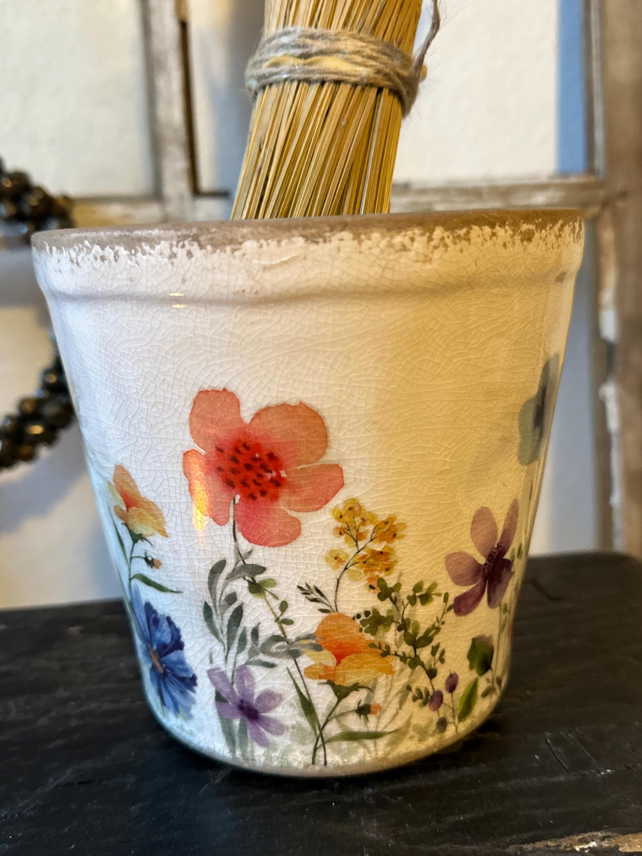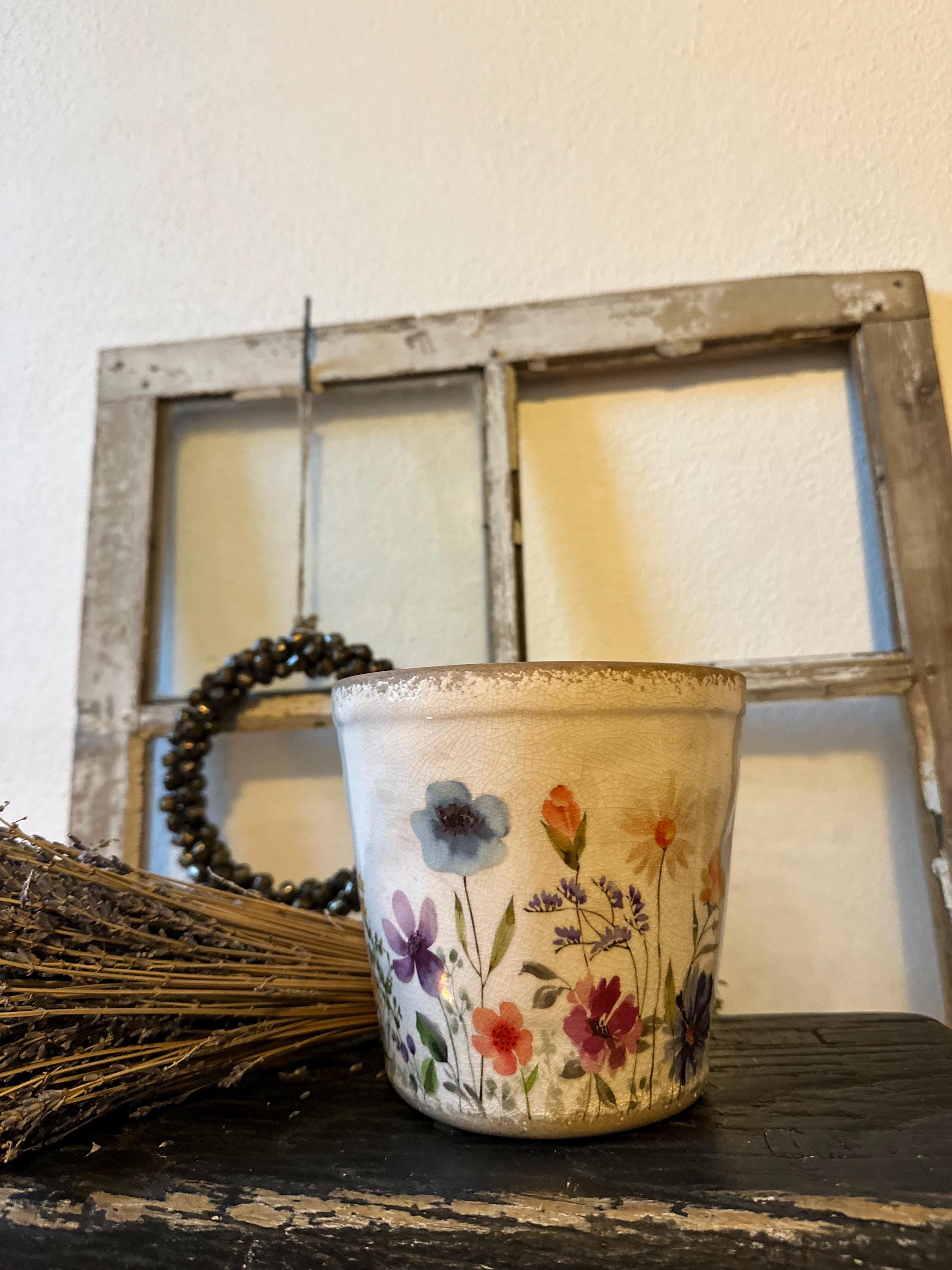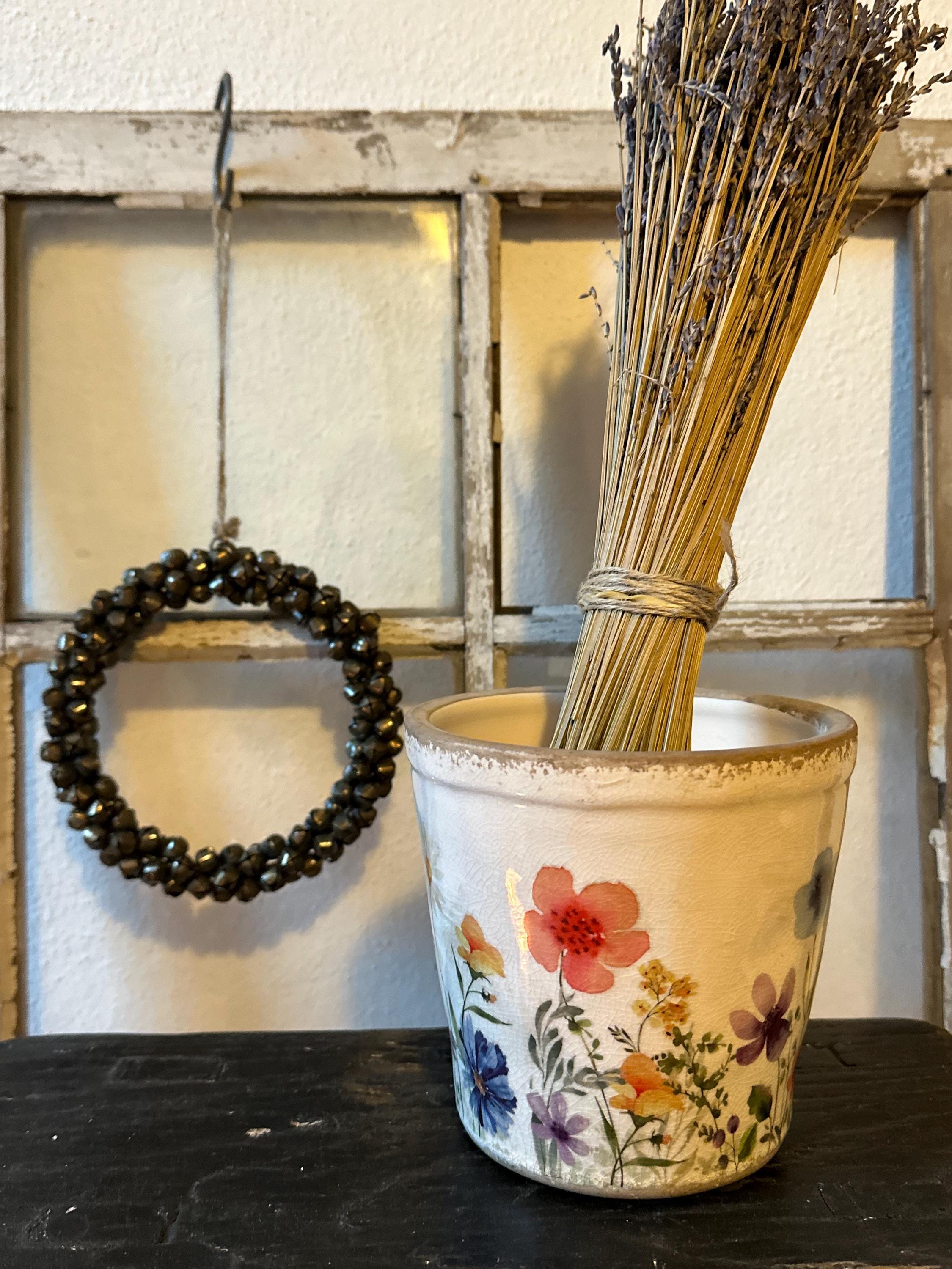 Beautiful ceramics – these enchanting pots are inspired by the French country style – a charming floral meadow pattern combined with a lovely old, cracked patina, as if these pots were decades old – they evoke memories of bygone eras and are a beautiful companion for fresh meadow bouquets, branches, or dried grasses – create your own unique atmosphere. ❤️