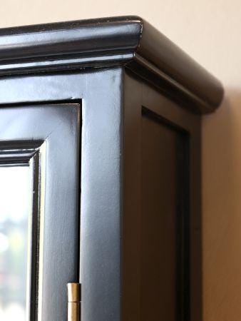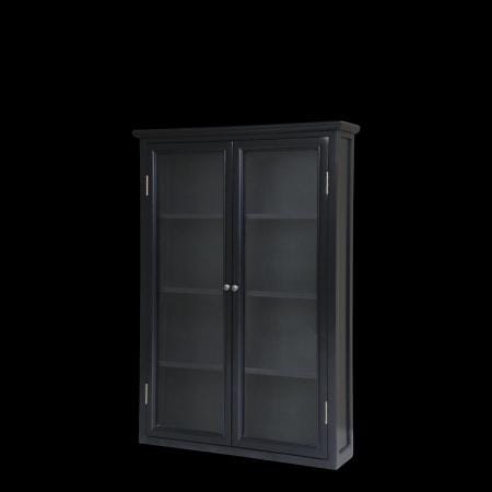 The Marseille wall cabinet from Chic Antique is an elegant and space-saving interpretation of the French country style. Handcrafted from solid poplar wood and finished in black lacquer, the cabinet offers an inviting look. With four shelves and two smooth glass doors, you have plenty of room to display your favorite items – from fine china and glassware to decorative objects for any room.