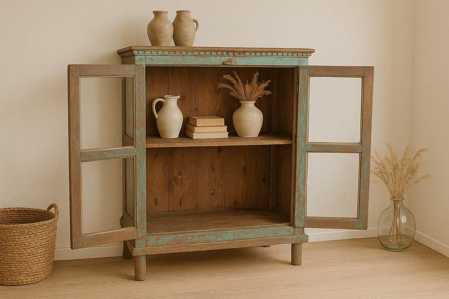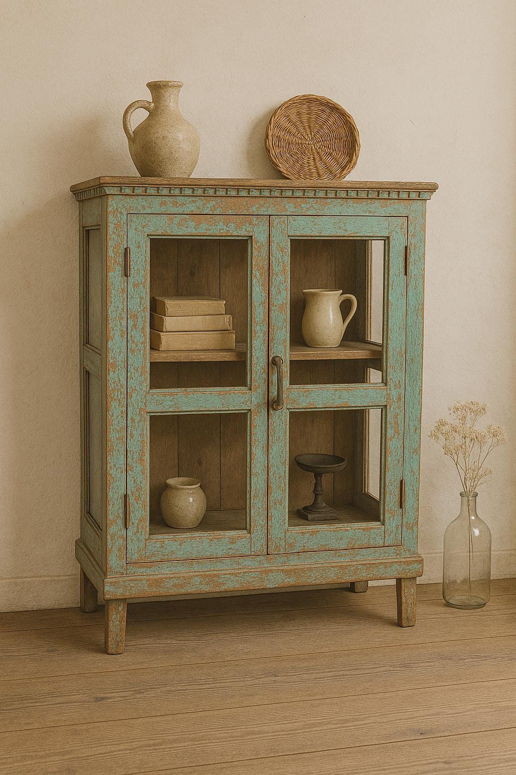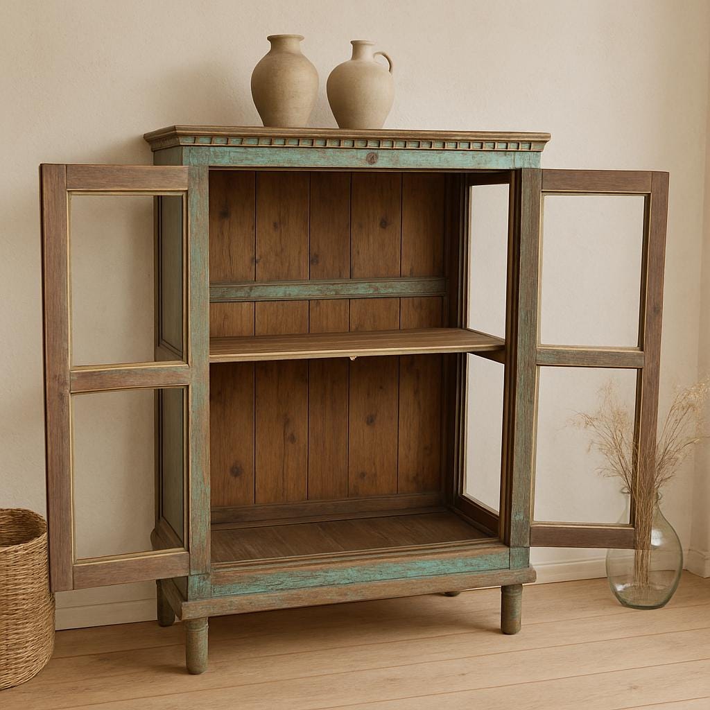 Greta's unique display case - an incredibly beautiful green display case with glass doors, for storing your favorite items.