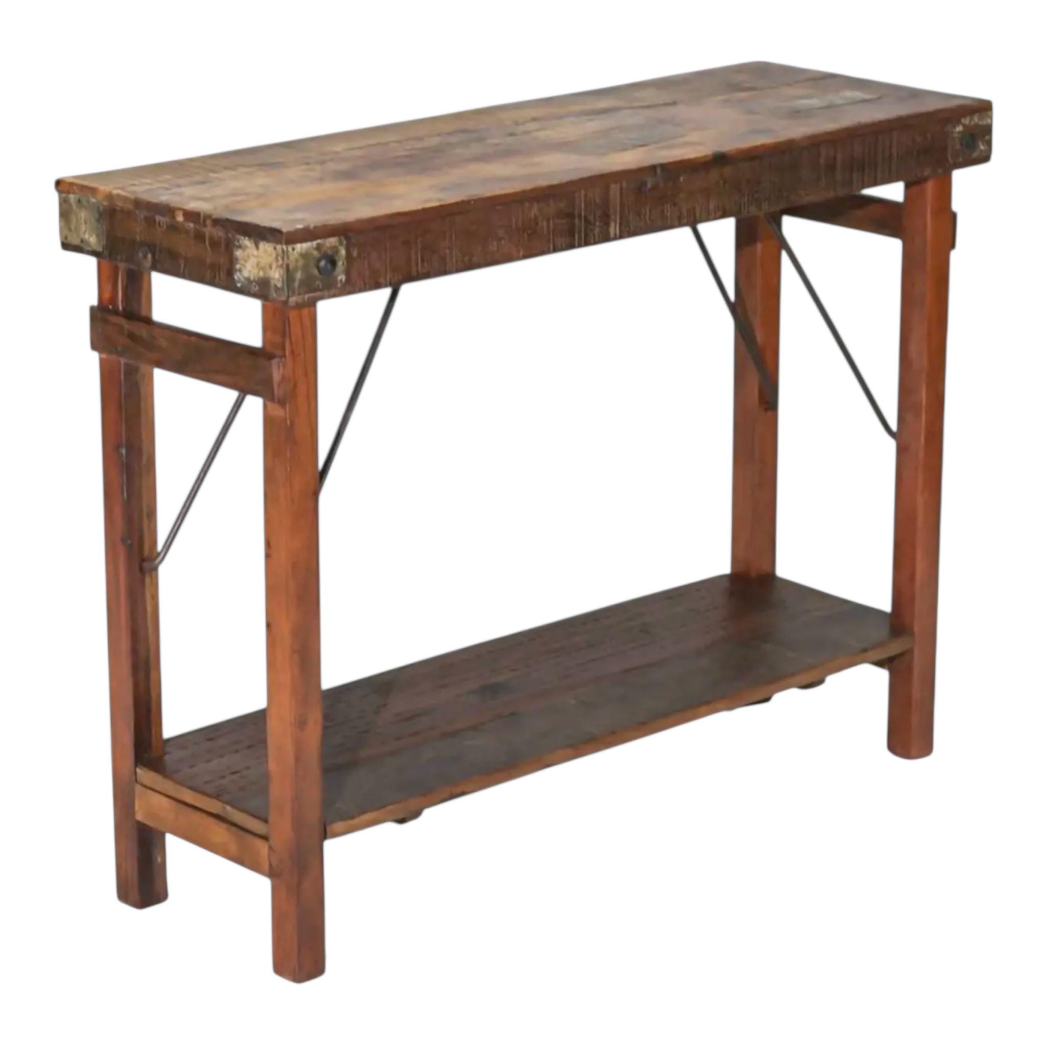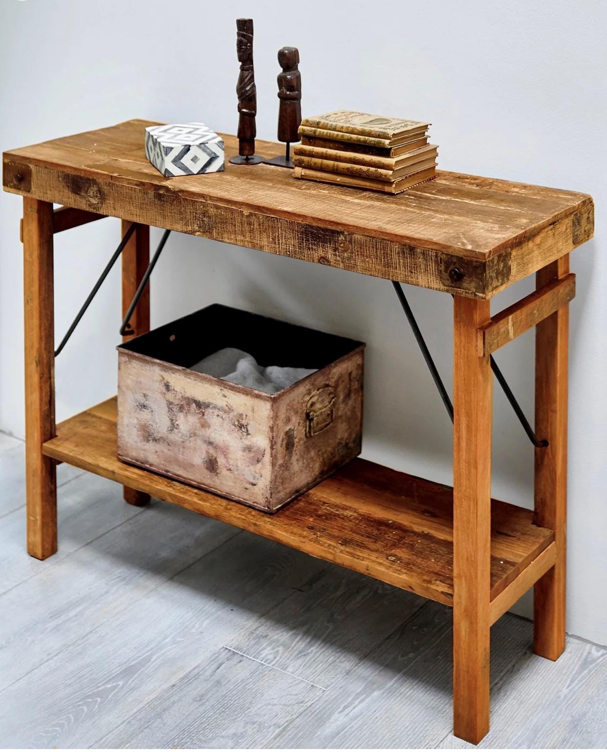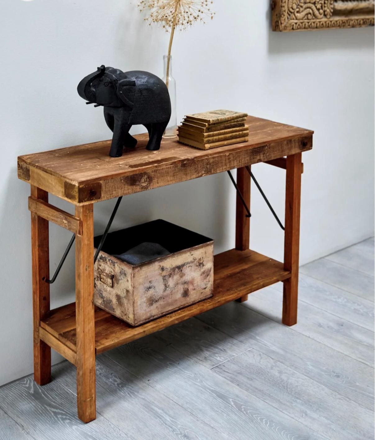 This small console table is a true gem for anyone who appreciates reclaimed wood and rustic craftsmanship. Made from reclaimed wood, each piece has its own unique history, the wood grain gives it a distinctive character. The raw look of the reclaimed wood and the sturdy construction make it perfect. This table is equally at home in a modern setting or for those seeking a touch of rustic charm.