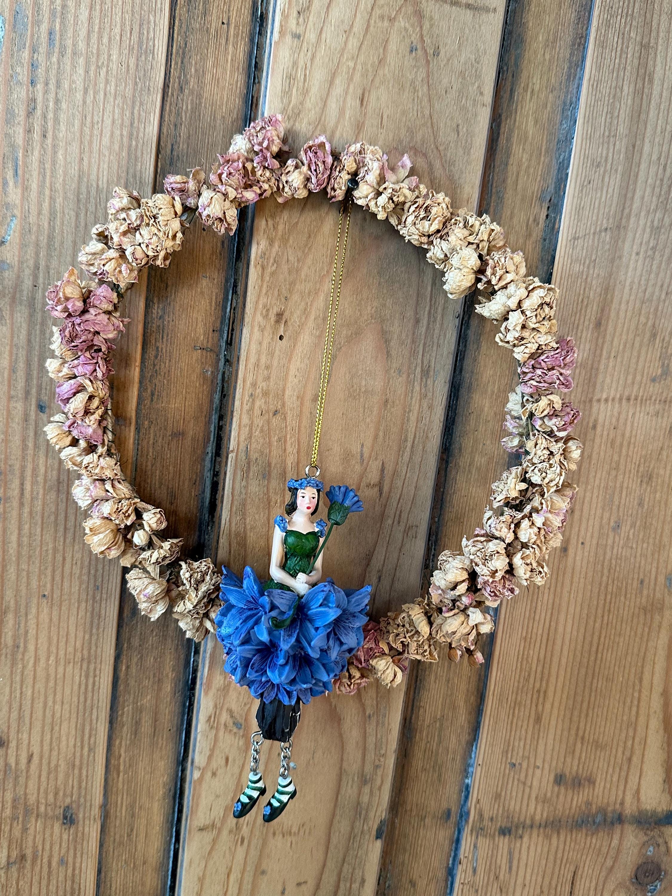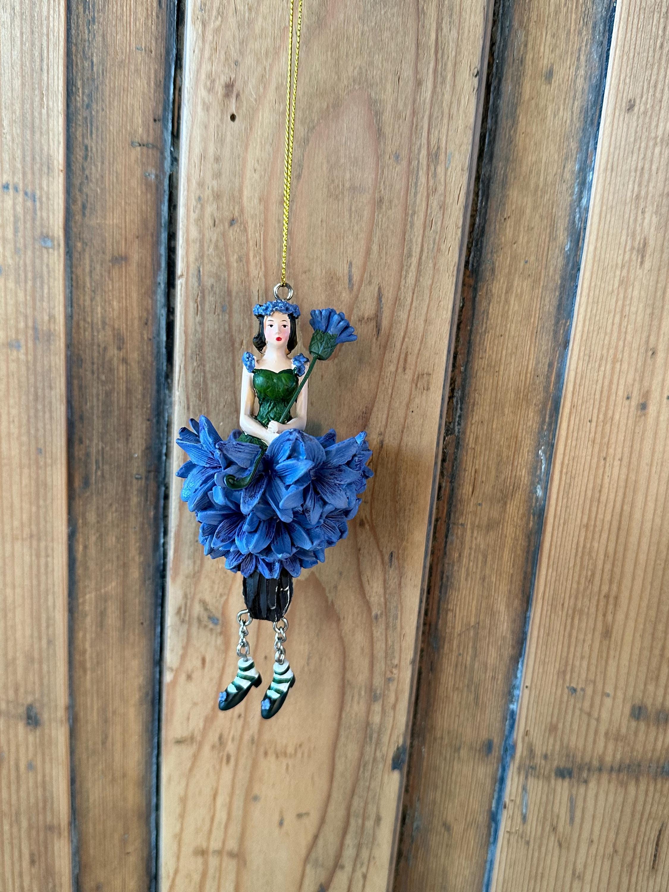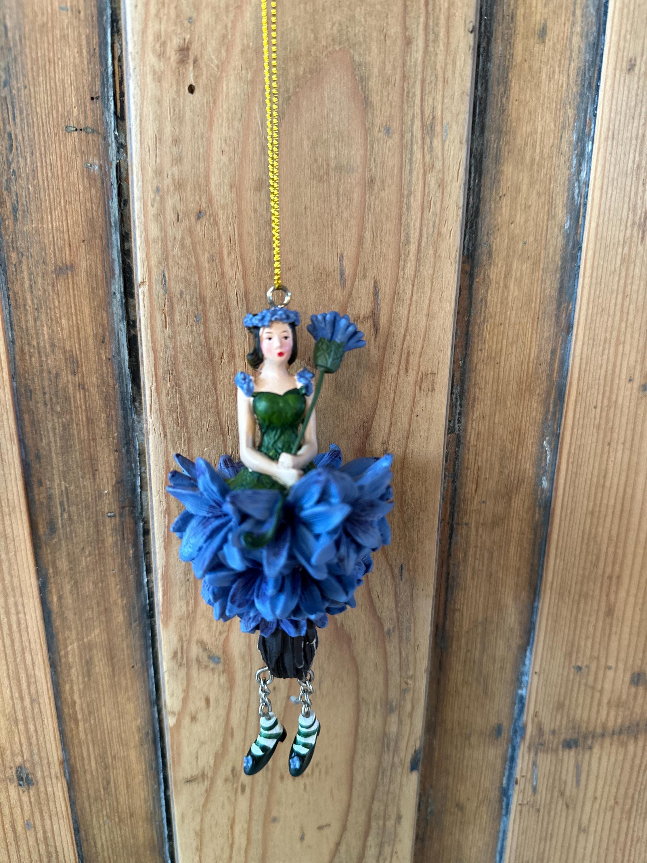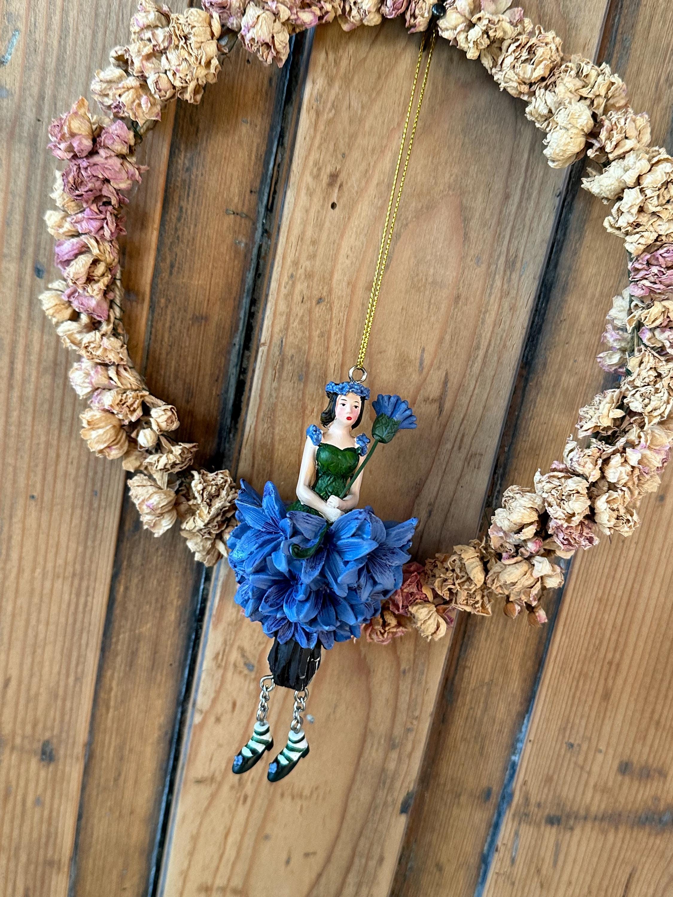 Enchanting little things – a cornflower girl… a charming hanging decoration. The girl wears a dress made of beautiful blue flowers, radiating a sense of natural elegance and freshness. The dress has a wide, ruffled skirt that falls to the floor, creating a fairytale, floral look… adding a touch of atmosphere – as decoration on a door, a cupboard, a window, or as a small gift – the figures are lovely to behold with an antique, imitation patina ❤️