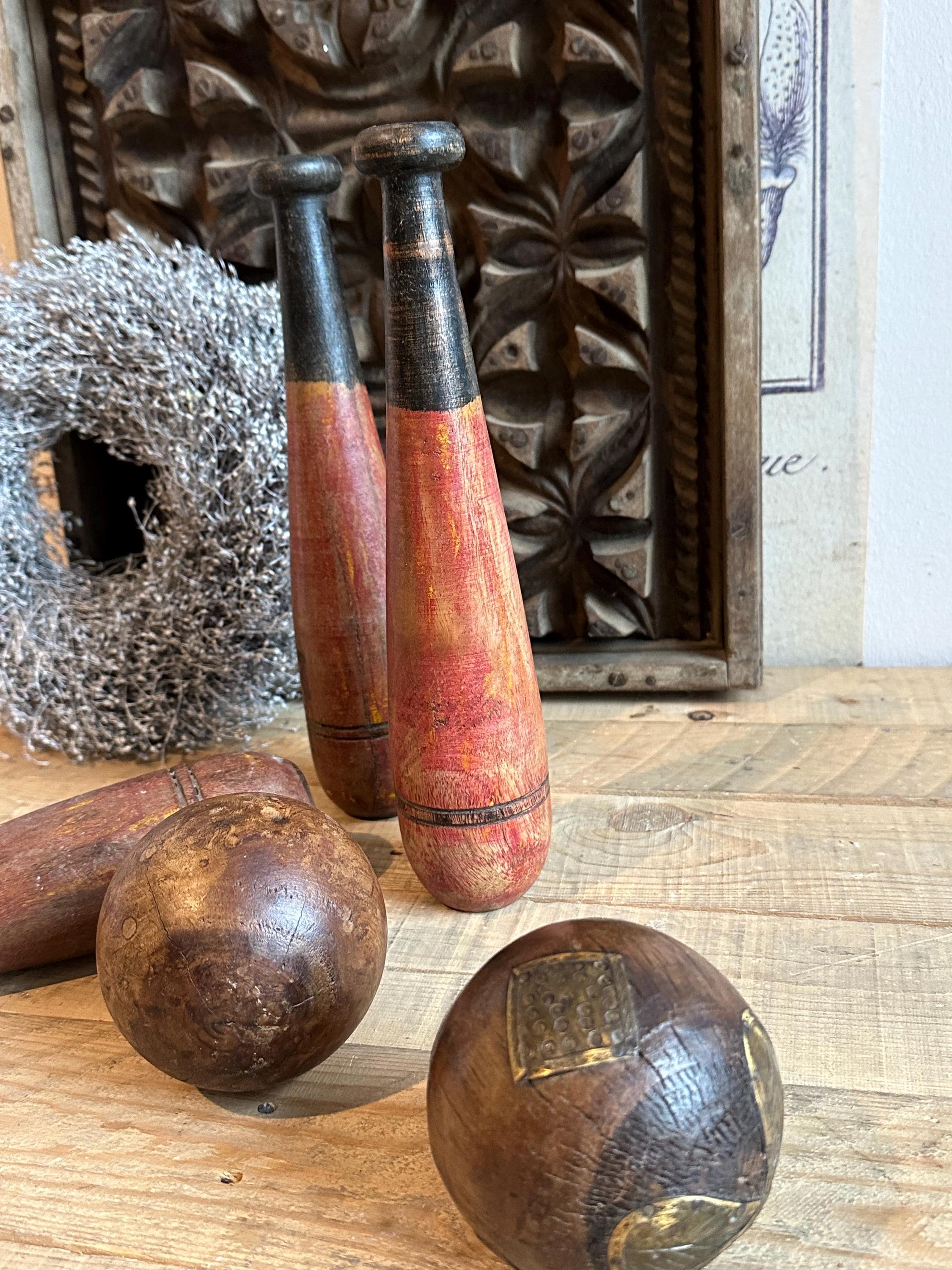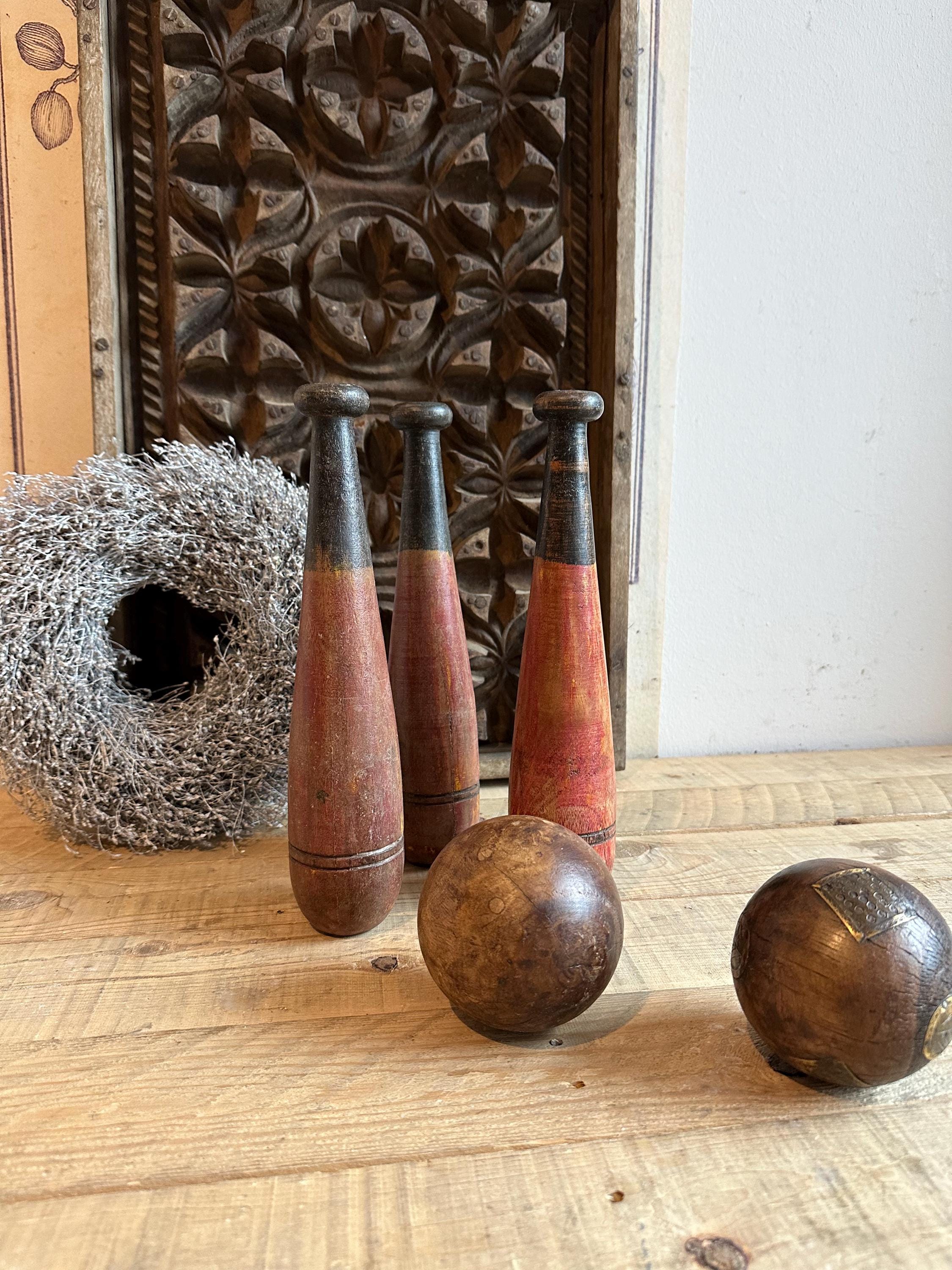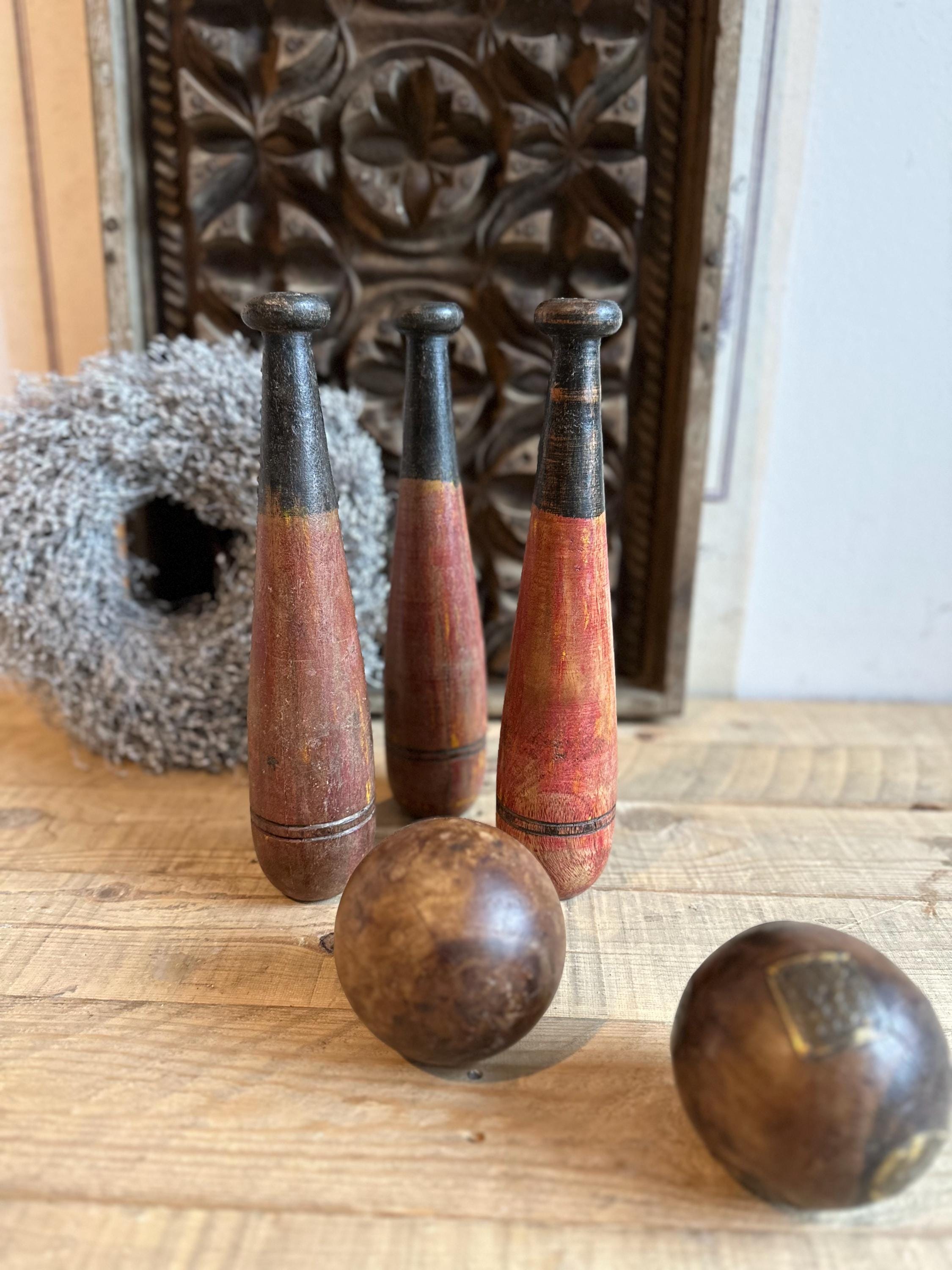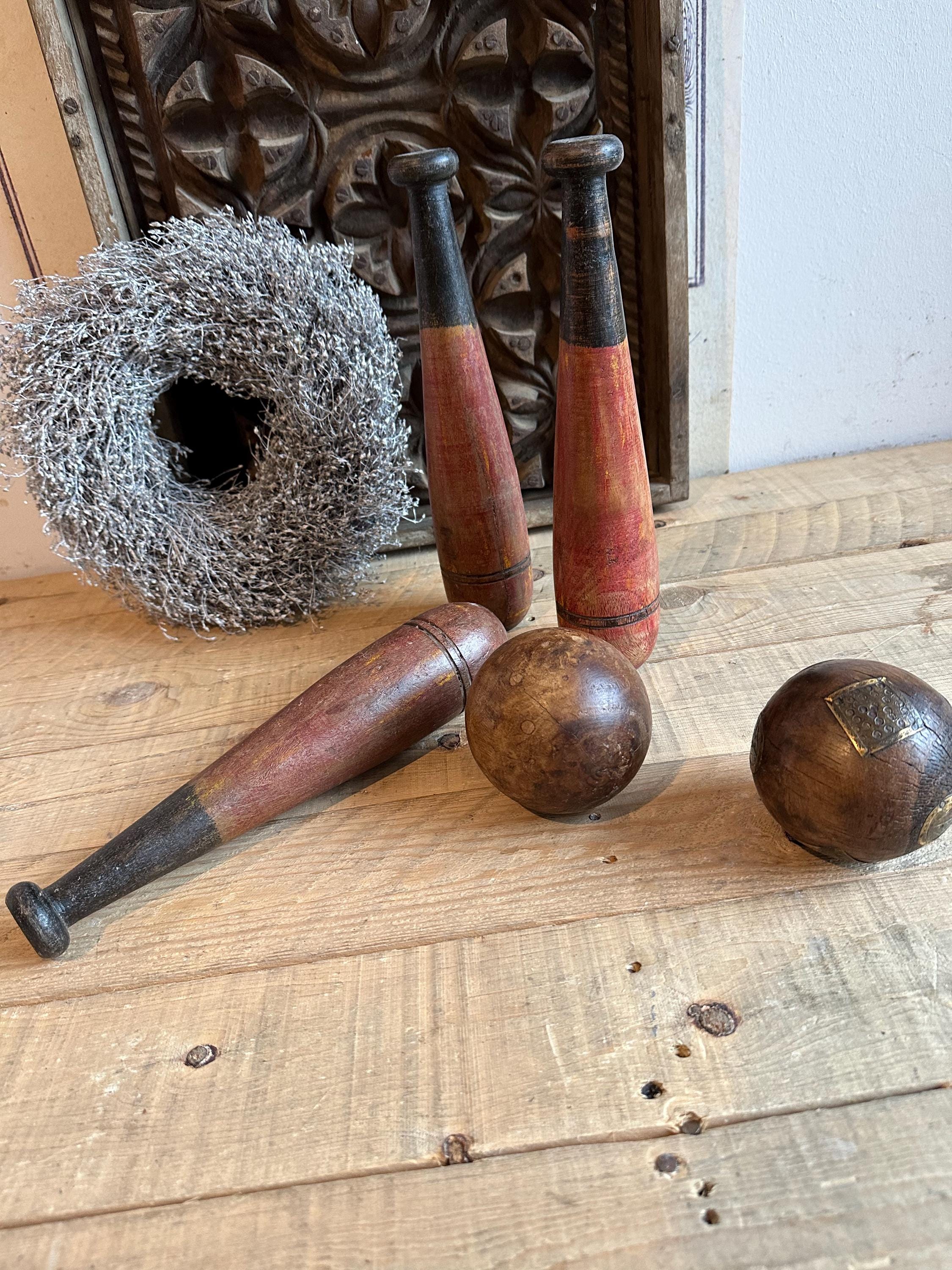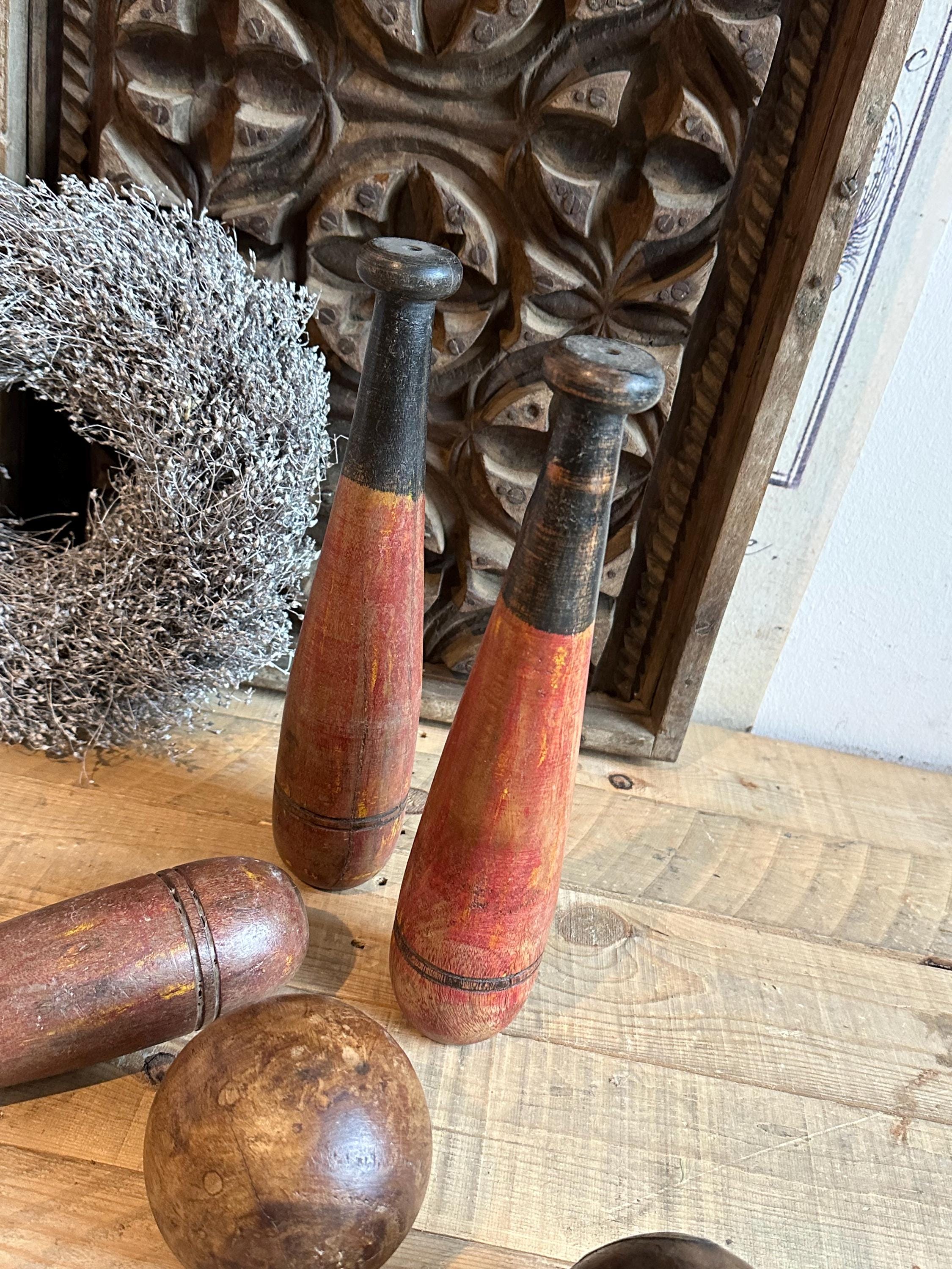 Old wooden bowling pins – made from old wood – with an old patina – this warm, untreated wood once added a touch of style to the bowling alley – now it graces your home oasis ❤️ They make a charming decoration when combined with dried flowers and old photos –