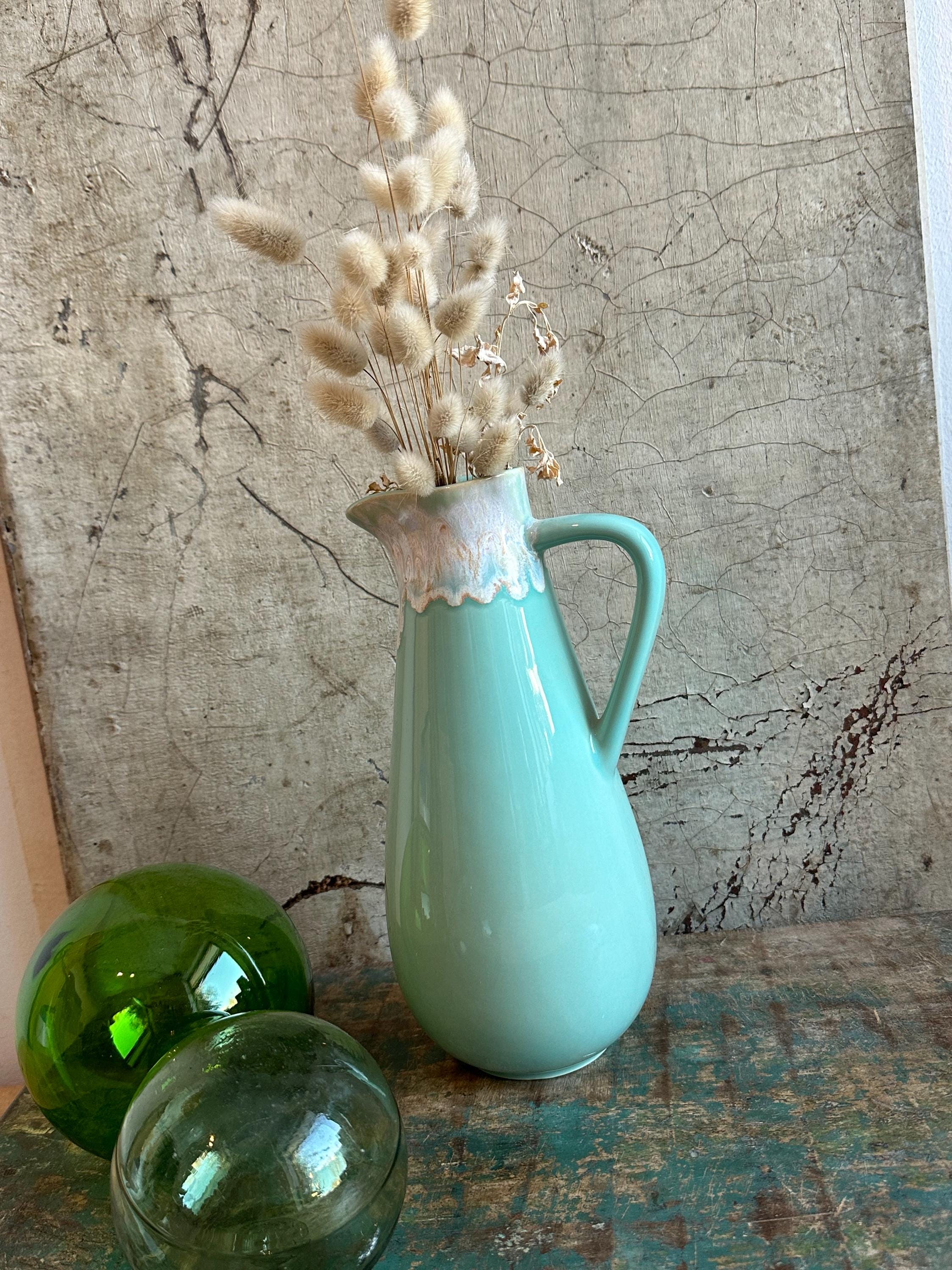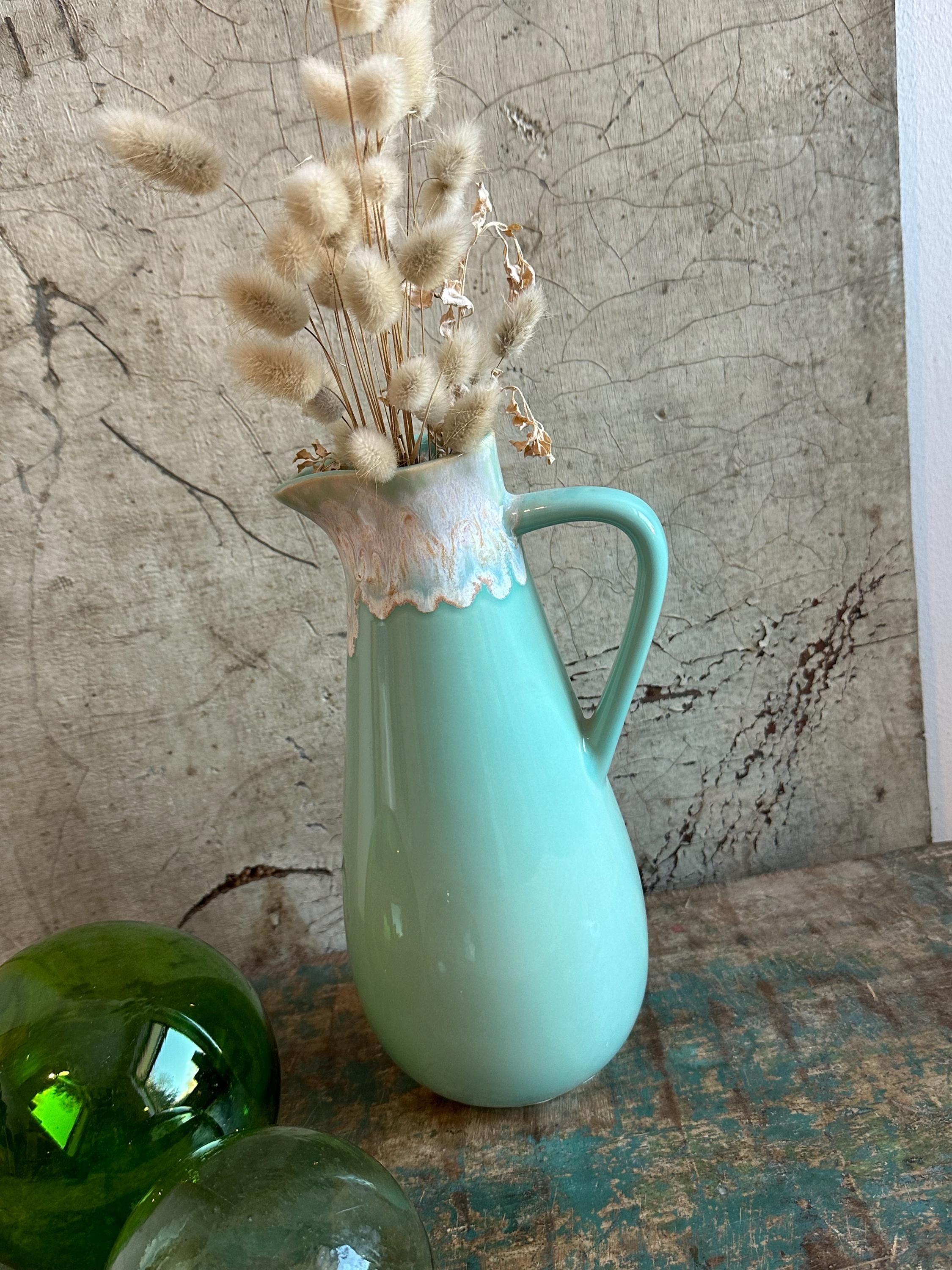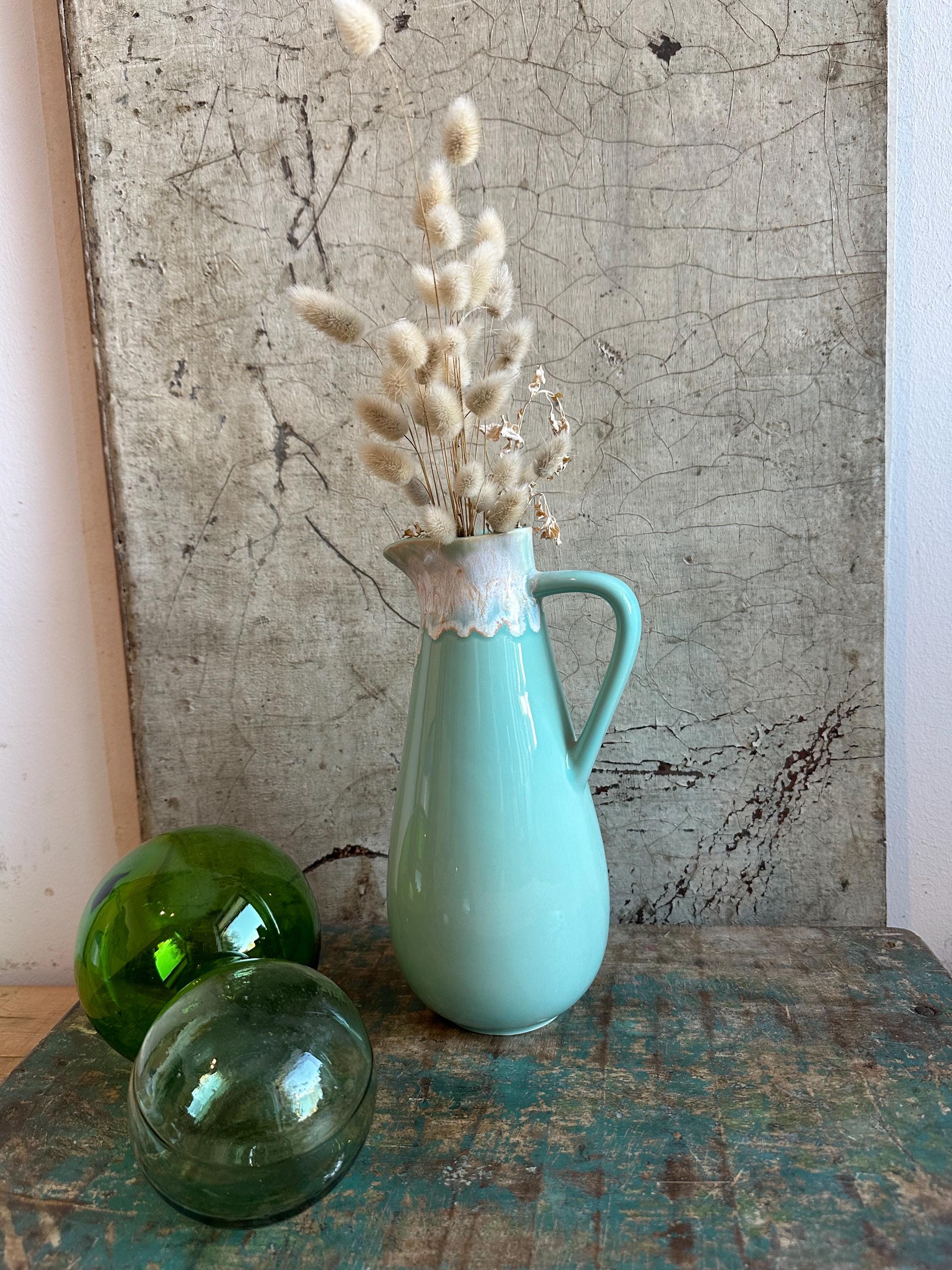 Delicate lime green ceramic - a beautiful pitcher made of soft lime green stoneware, simple yet dreamily beautiful - enchanting and too lovely to hide away in a cupboard after use. Perfect as a water or juice pitcher on a beautifully set table, or as a lovely decoration for a dresser, cupboard, or display cabinet. Perhaps arranged with blossoms and flowers depending on the season, it looks wonderfully romantic! ❤️