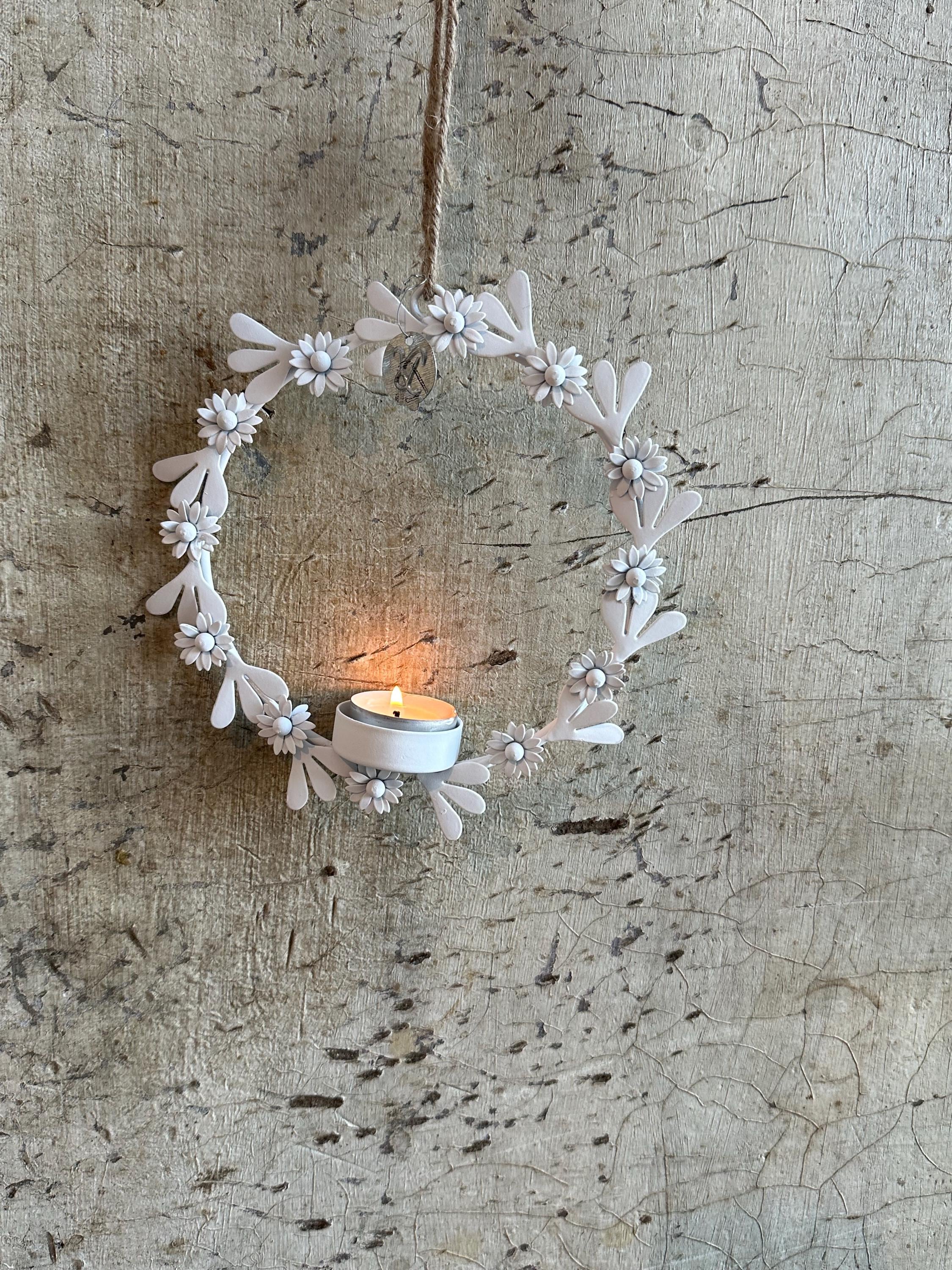 A candle wreath – a beautiful base for many, many decorations with warm candlelight, adorned with metal flowers in a worn, shabby vintage look – a perfect template – you can design everything with your own creativity and enjoy it – with little effort, the decorations around the candlelight can be changed – Isn't it love that warms our hearts? ❤️ A hanging candle wreath for a romantic tea light.
