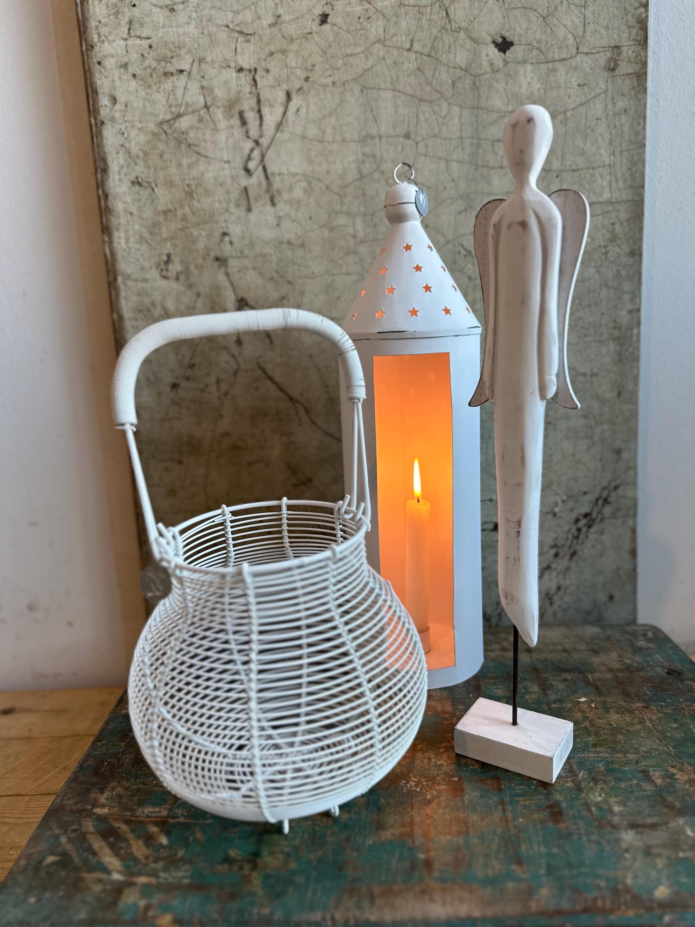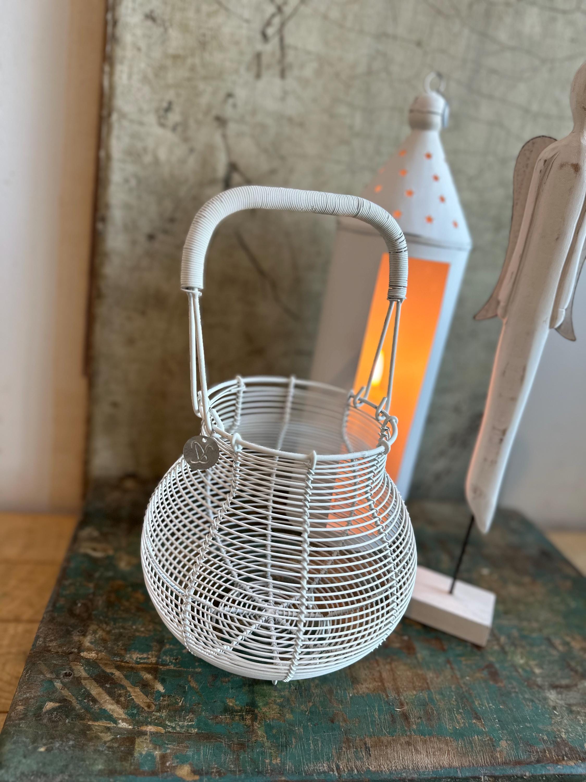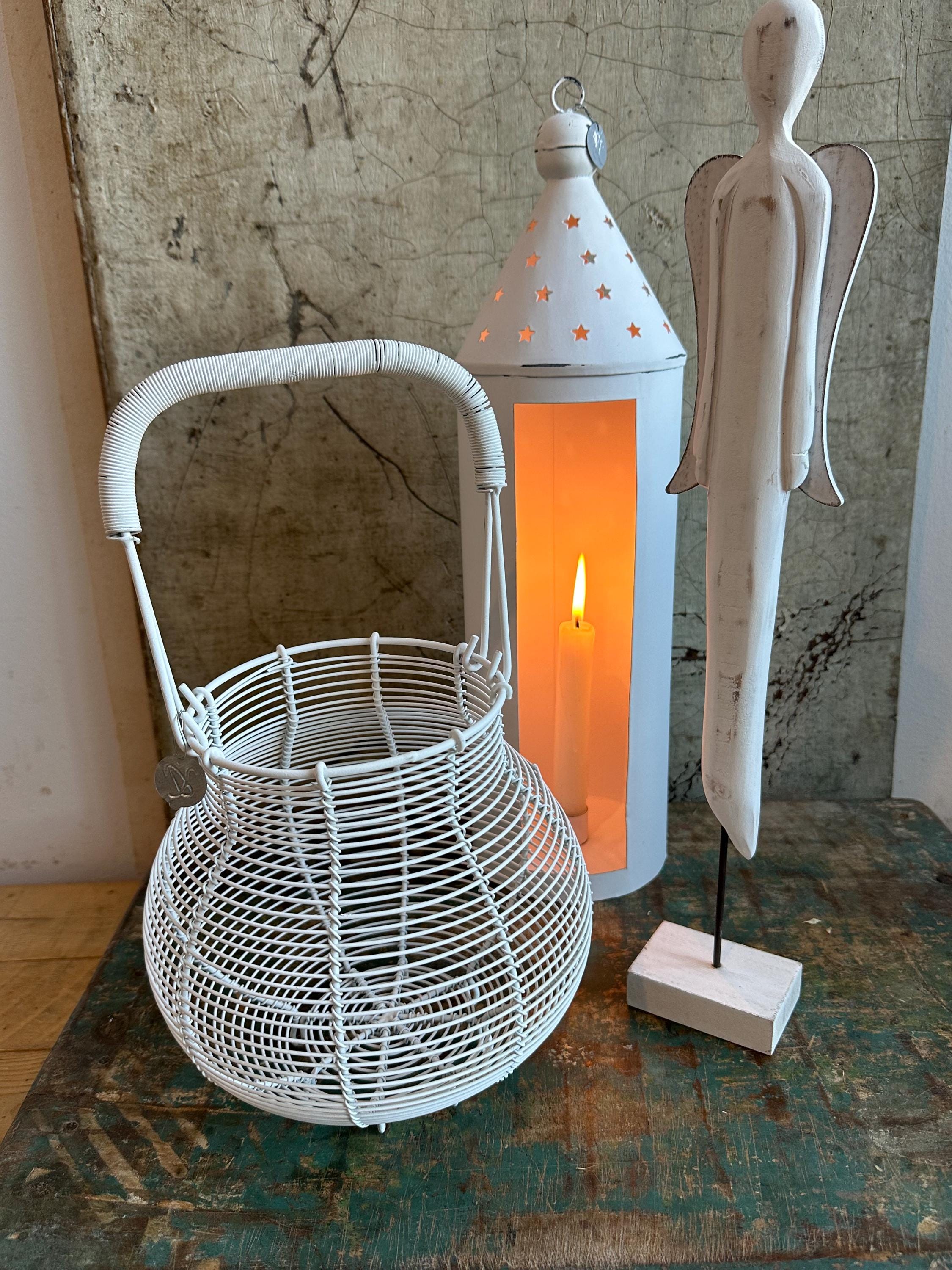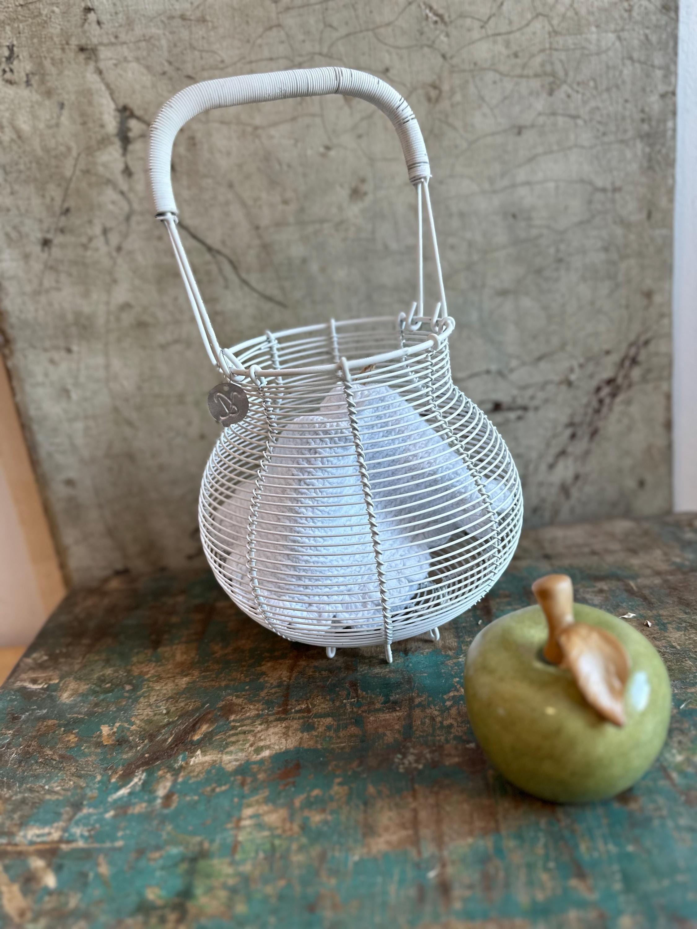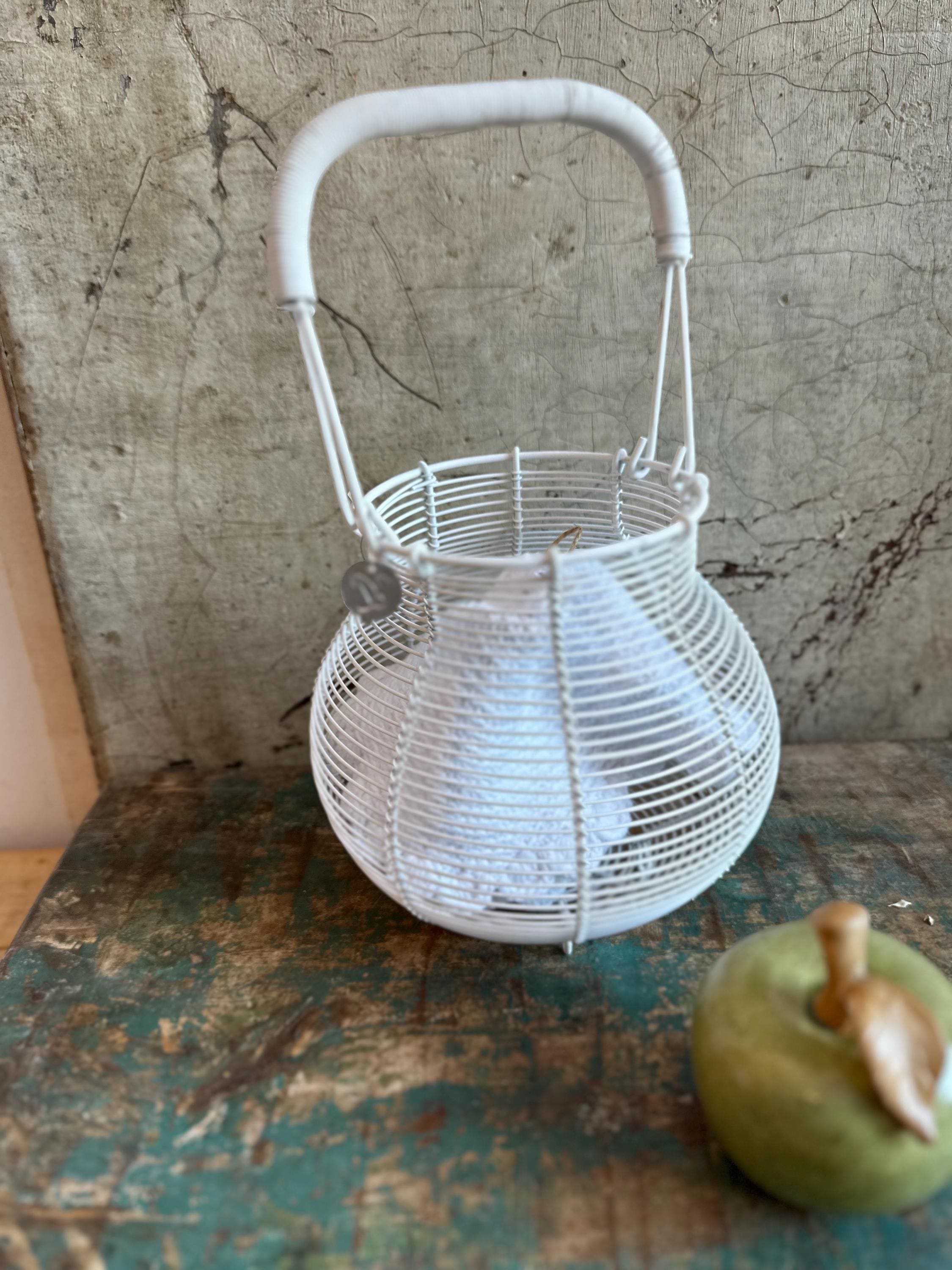 Egg basket, harvest basket, zinc basket, white, vintage, shabby chic, antique finish