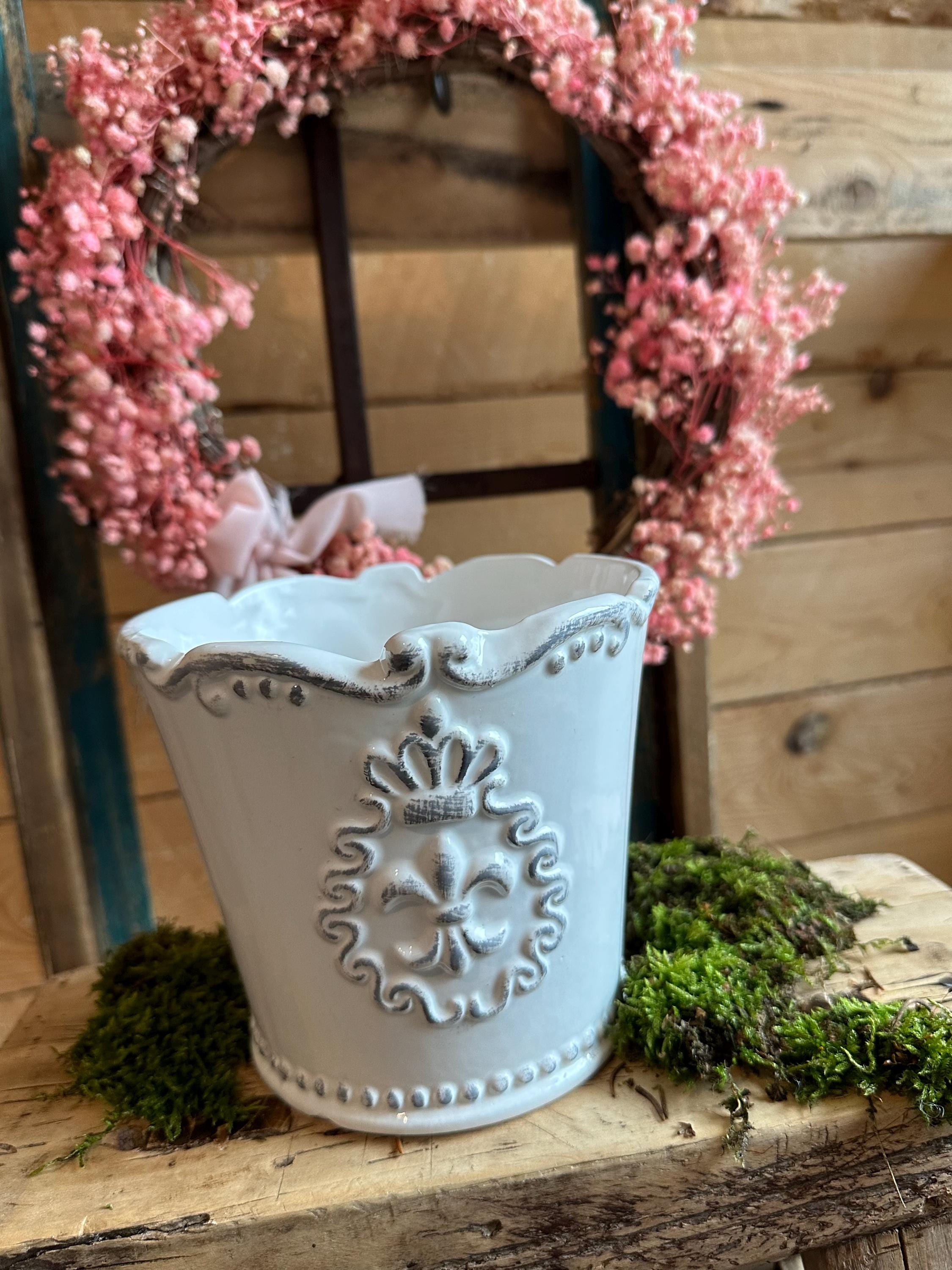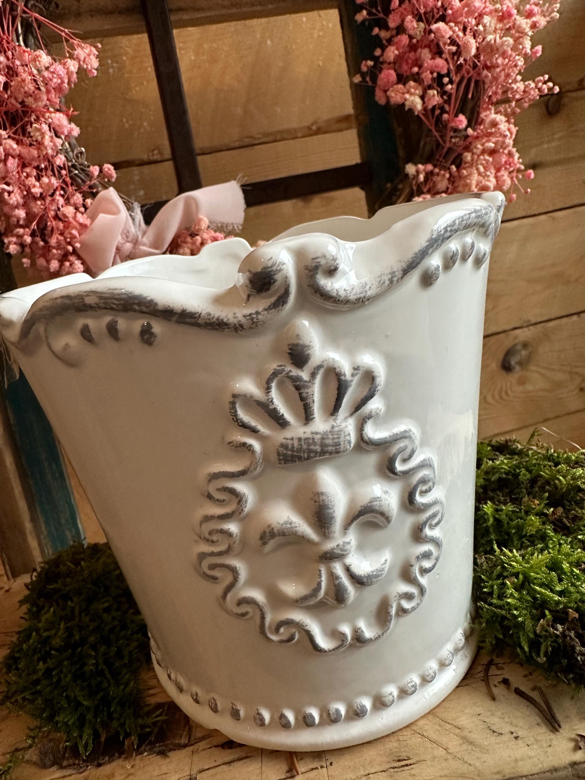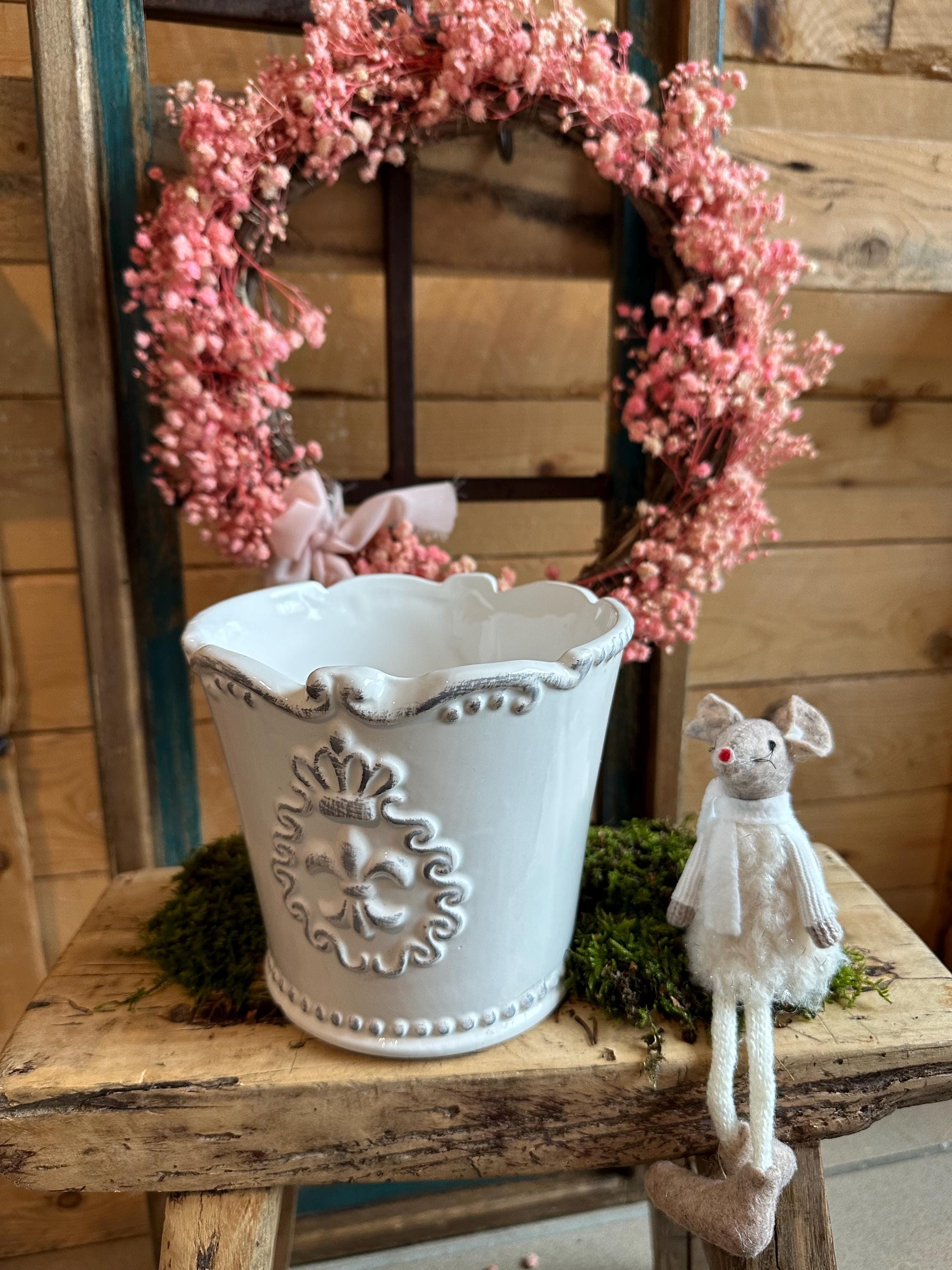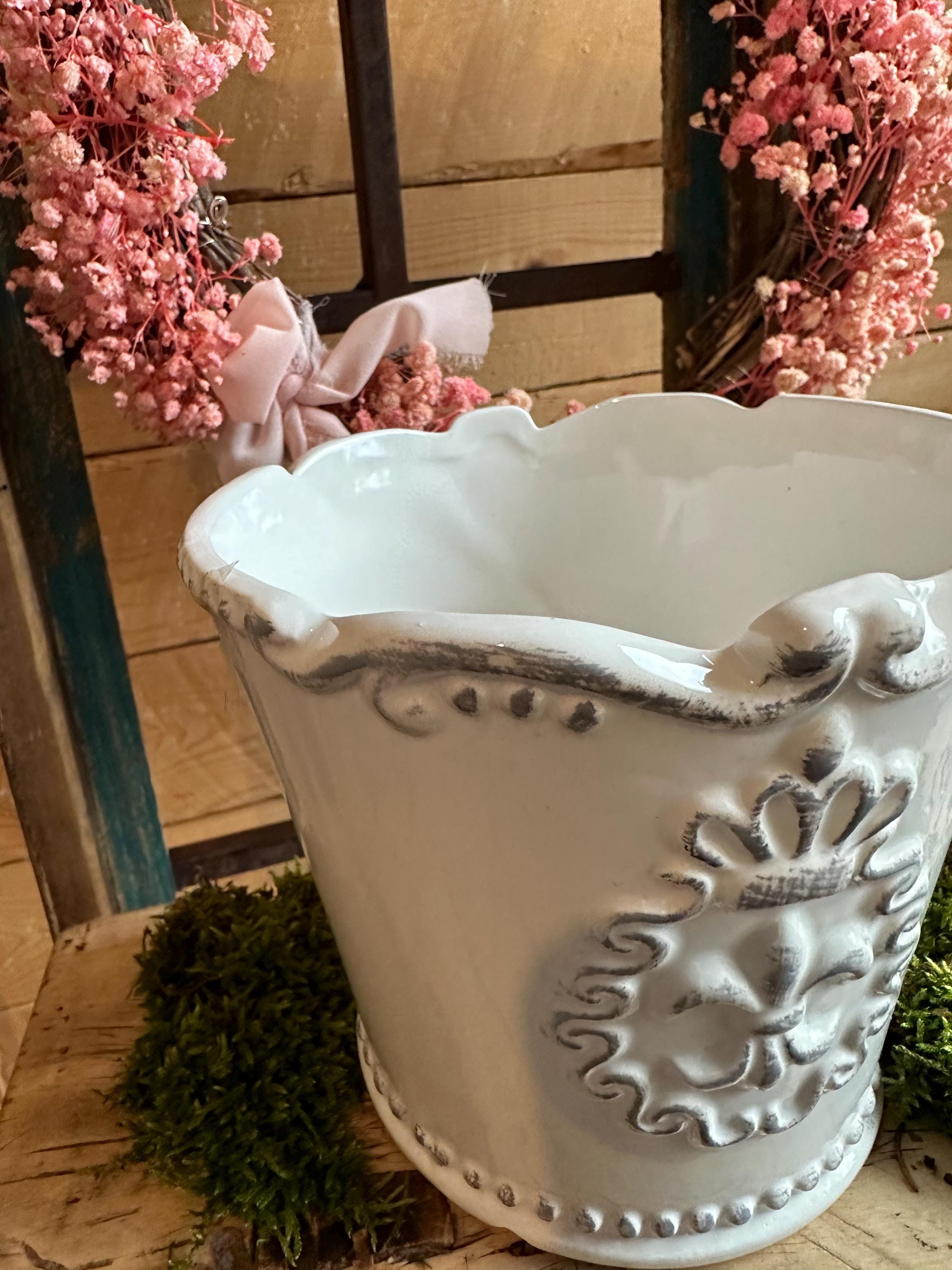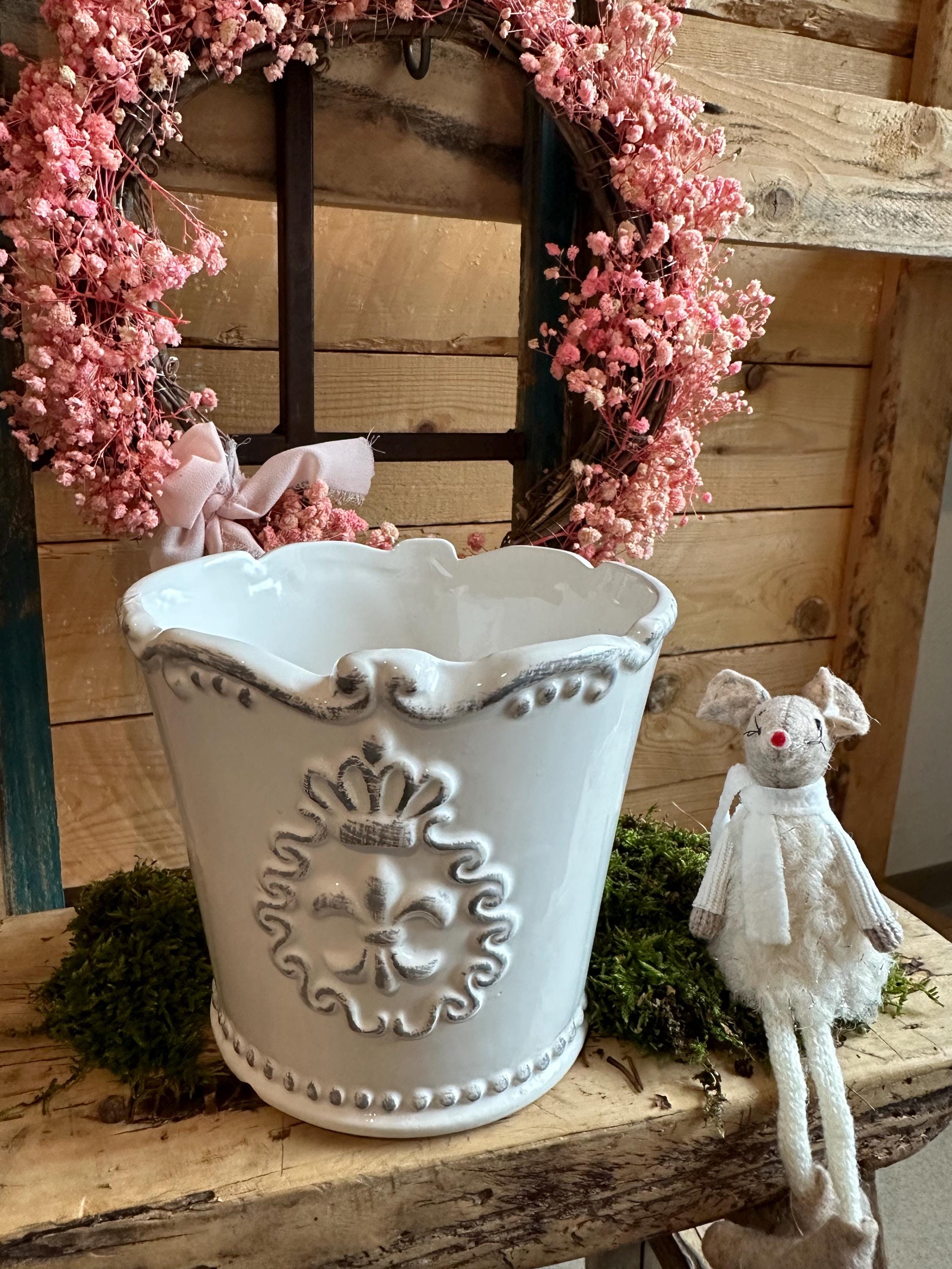 Plant pots – for a warm and decorative atmosphere in your home – for favorite spots in this romantic, small, playful vintage pattern in white, bringing atmosphere and good vibes to your dresser, windowsill or table – the subtly worn patina – the striking color – little beauties with a romantic touch ❤️