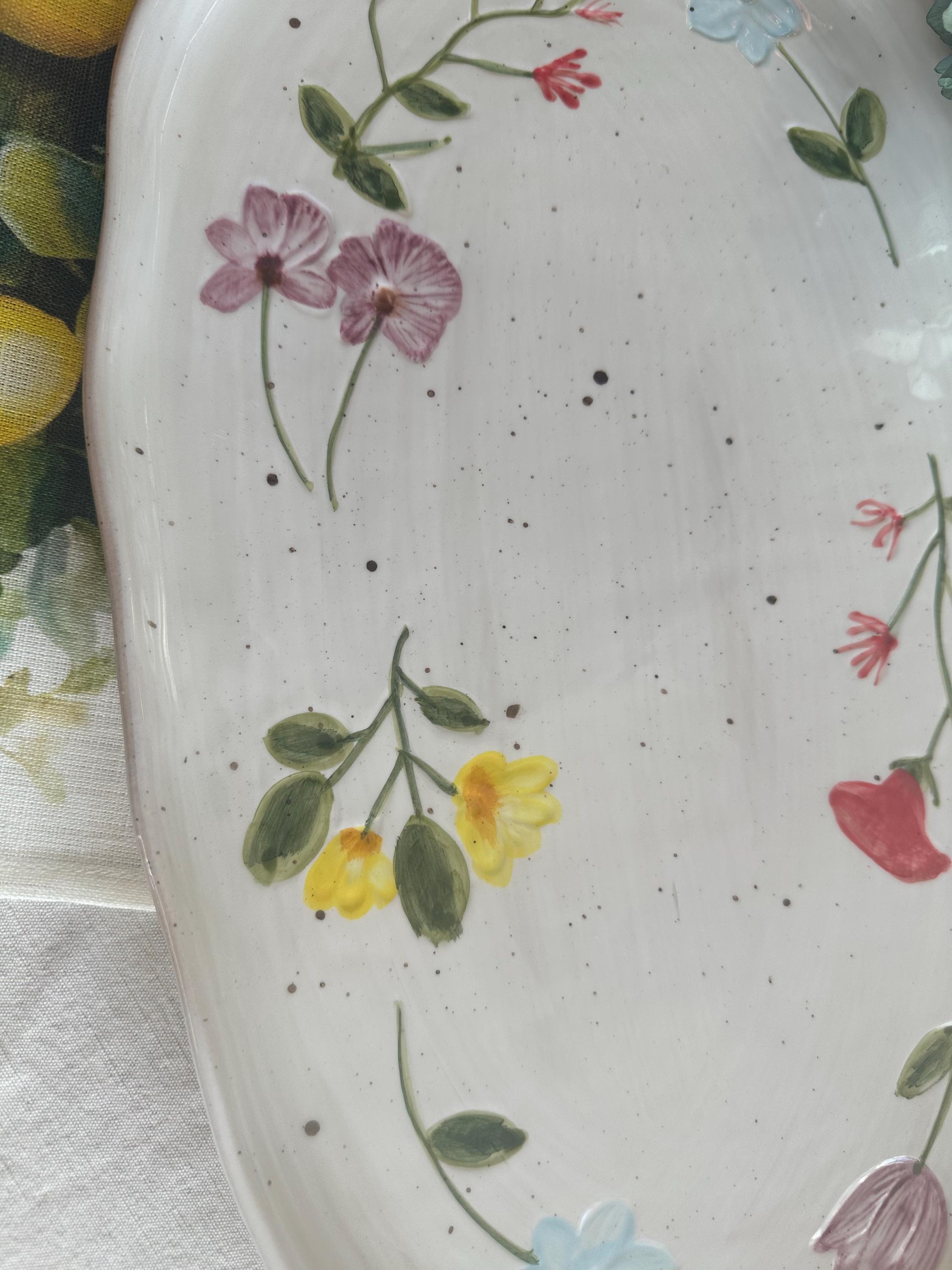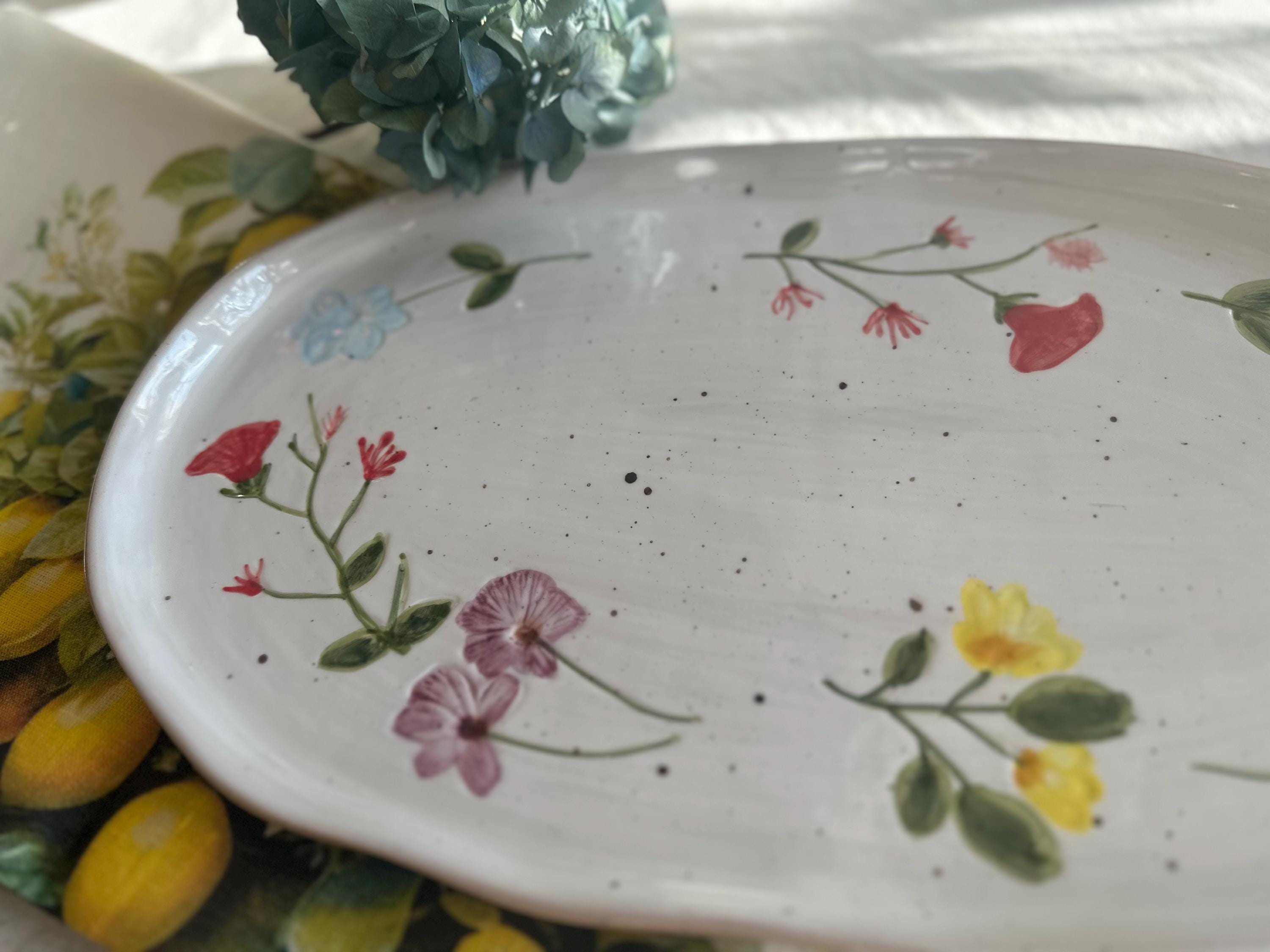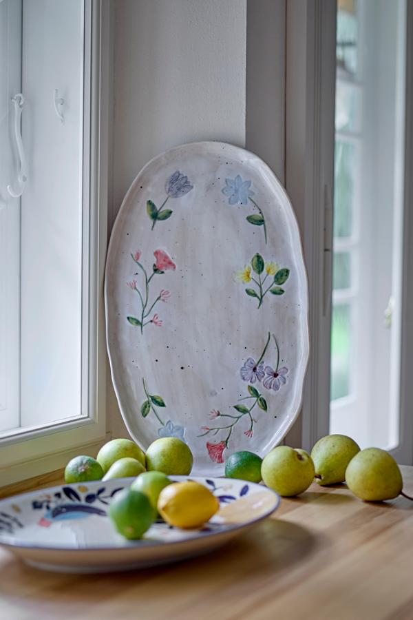 The Camilla serving platter from Creative Collection is a decorative stoneware plate featuring a hand-painted floral motif in beautiful, vibrant hues. The soft edges and hand-painted design lend it a charming look, making it ideal for both serving and display. The reactive glaze creates subtle variations in color and pattern, ensuring that each piece is unique.