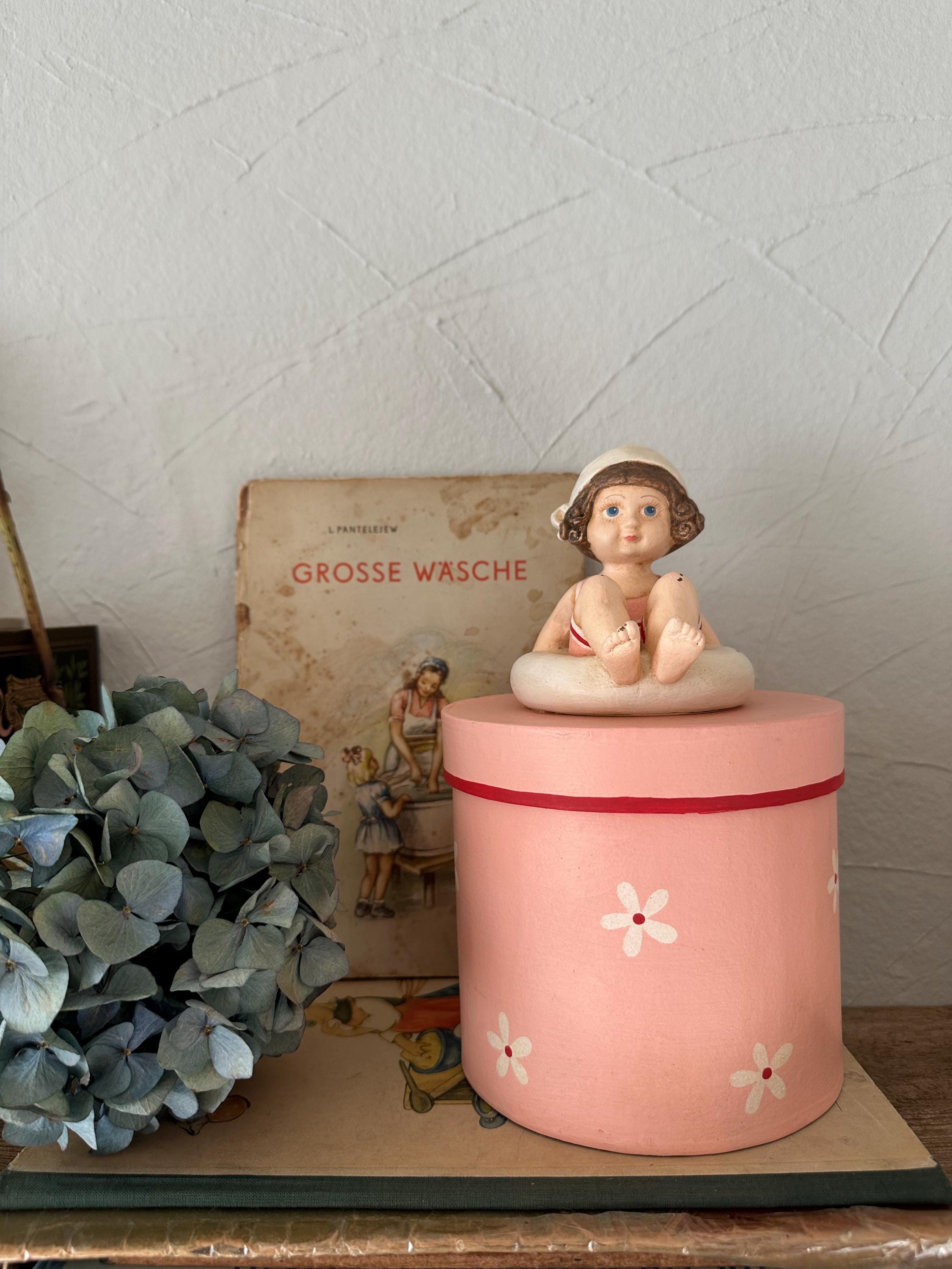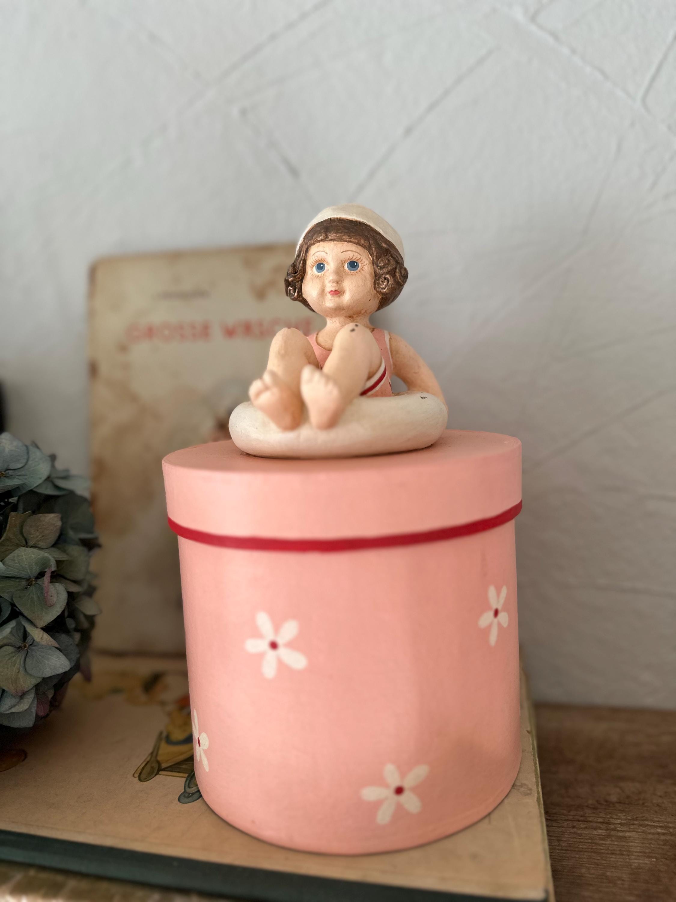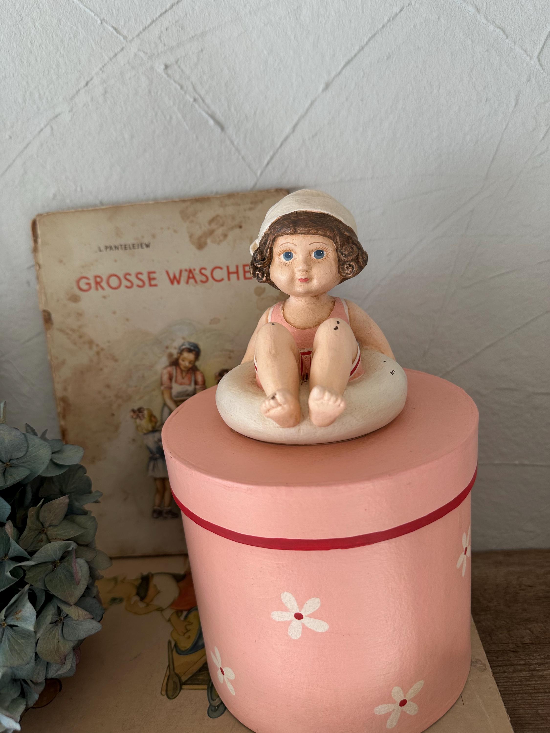 A romantic papier-mâché box with a pretty handmade figure - in a lovely old-fashioned rose - these boxes are from bygone eras and