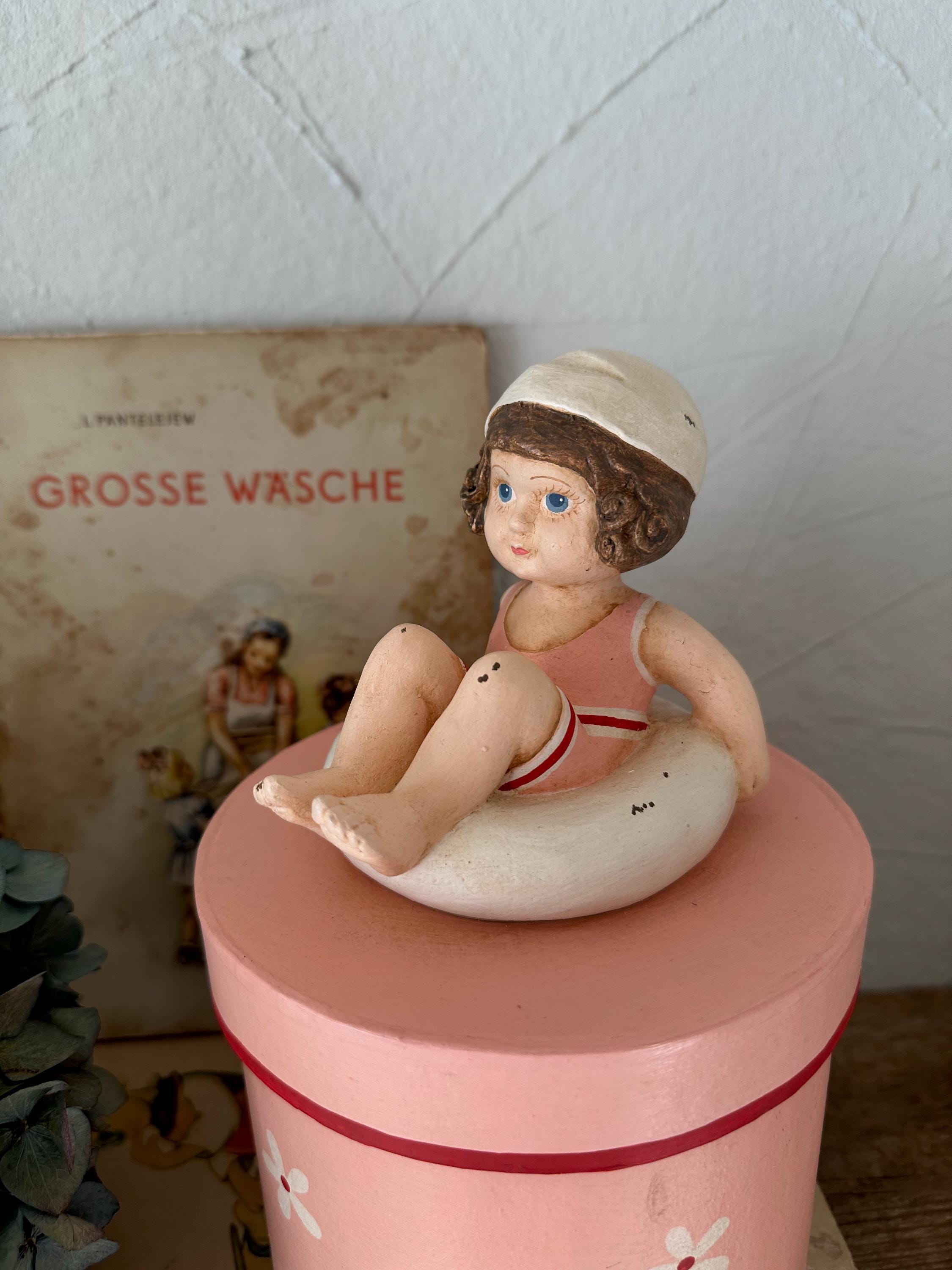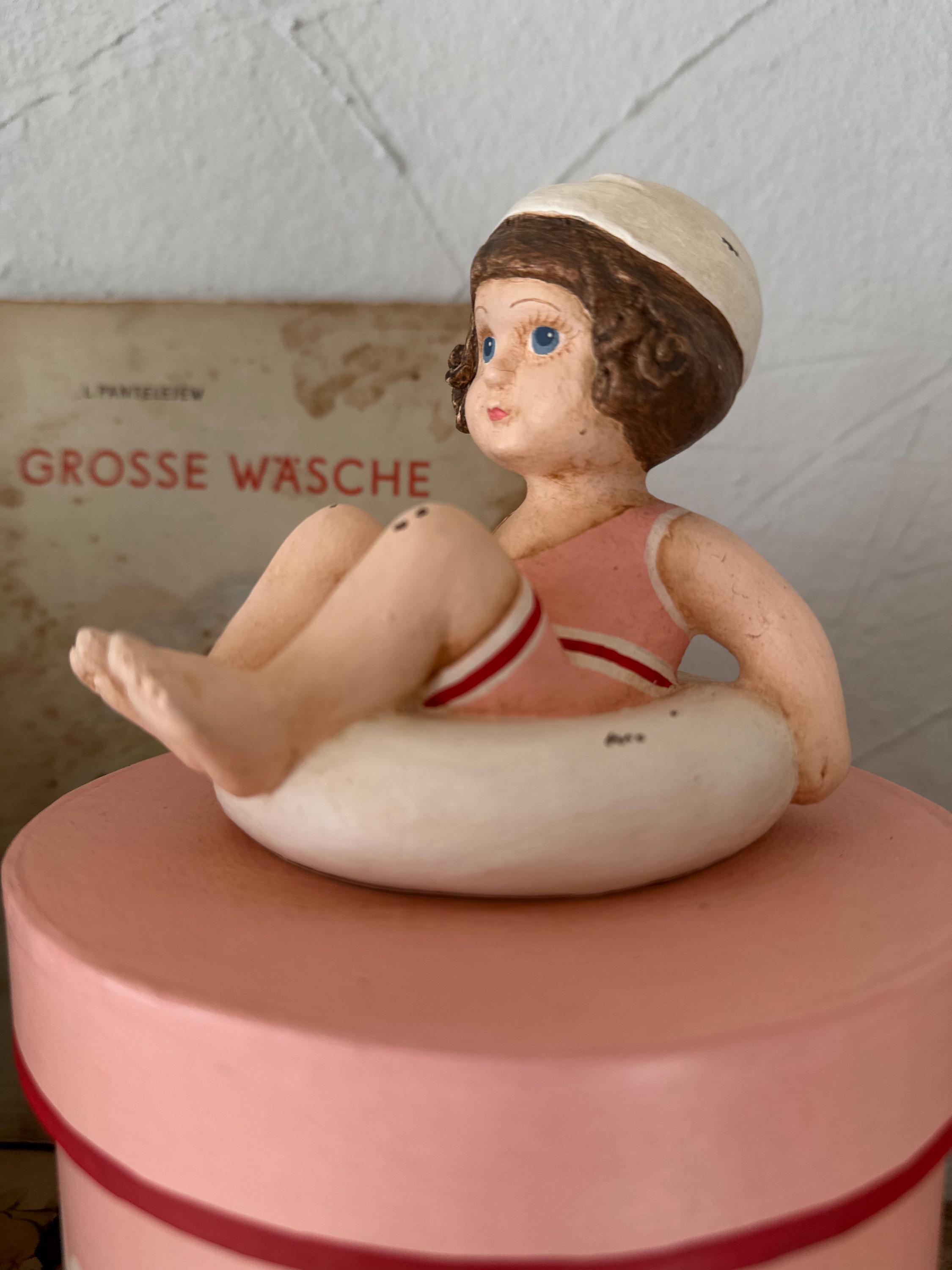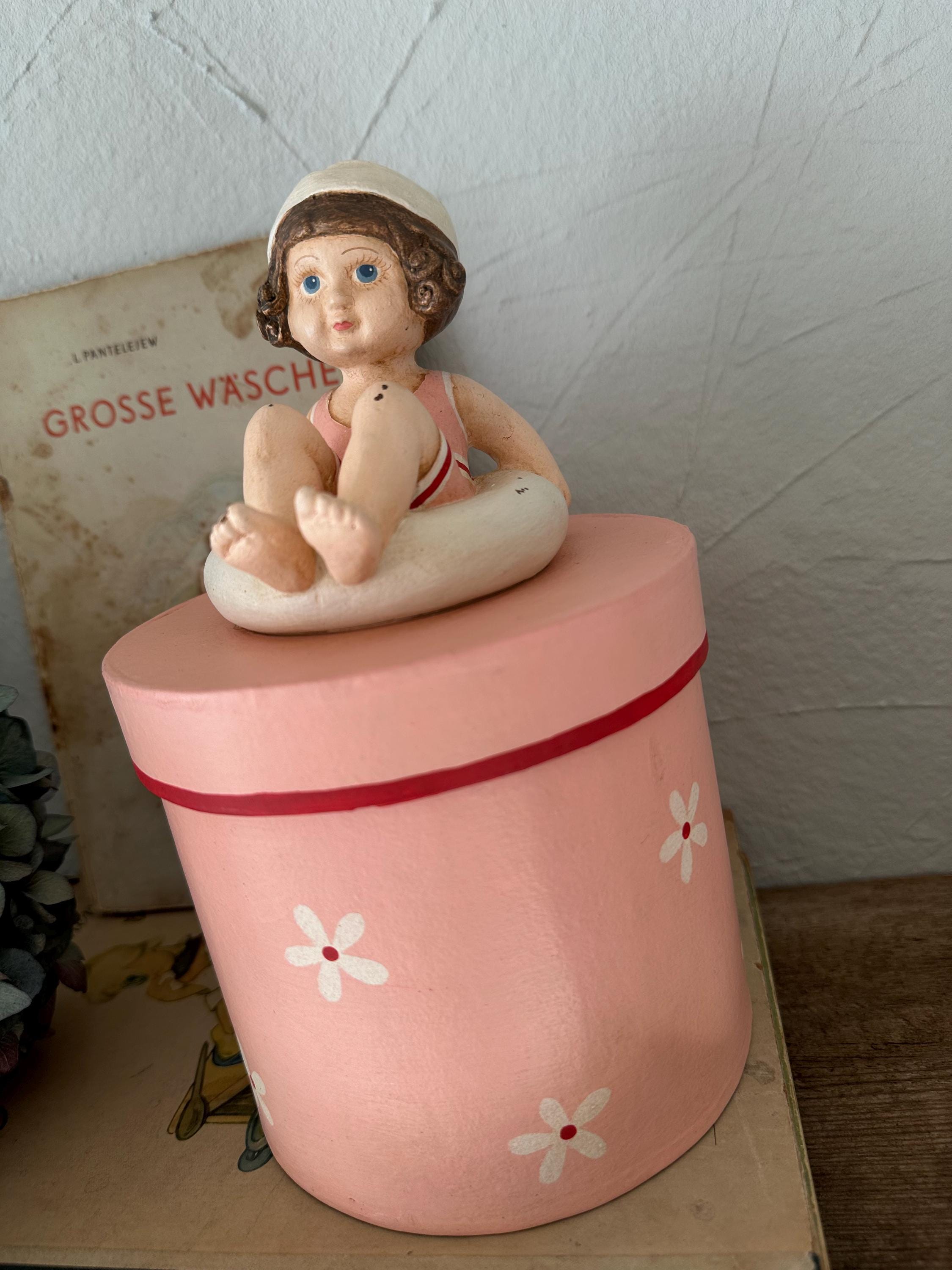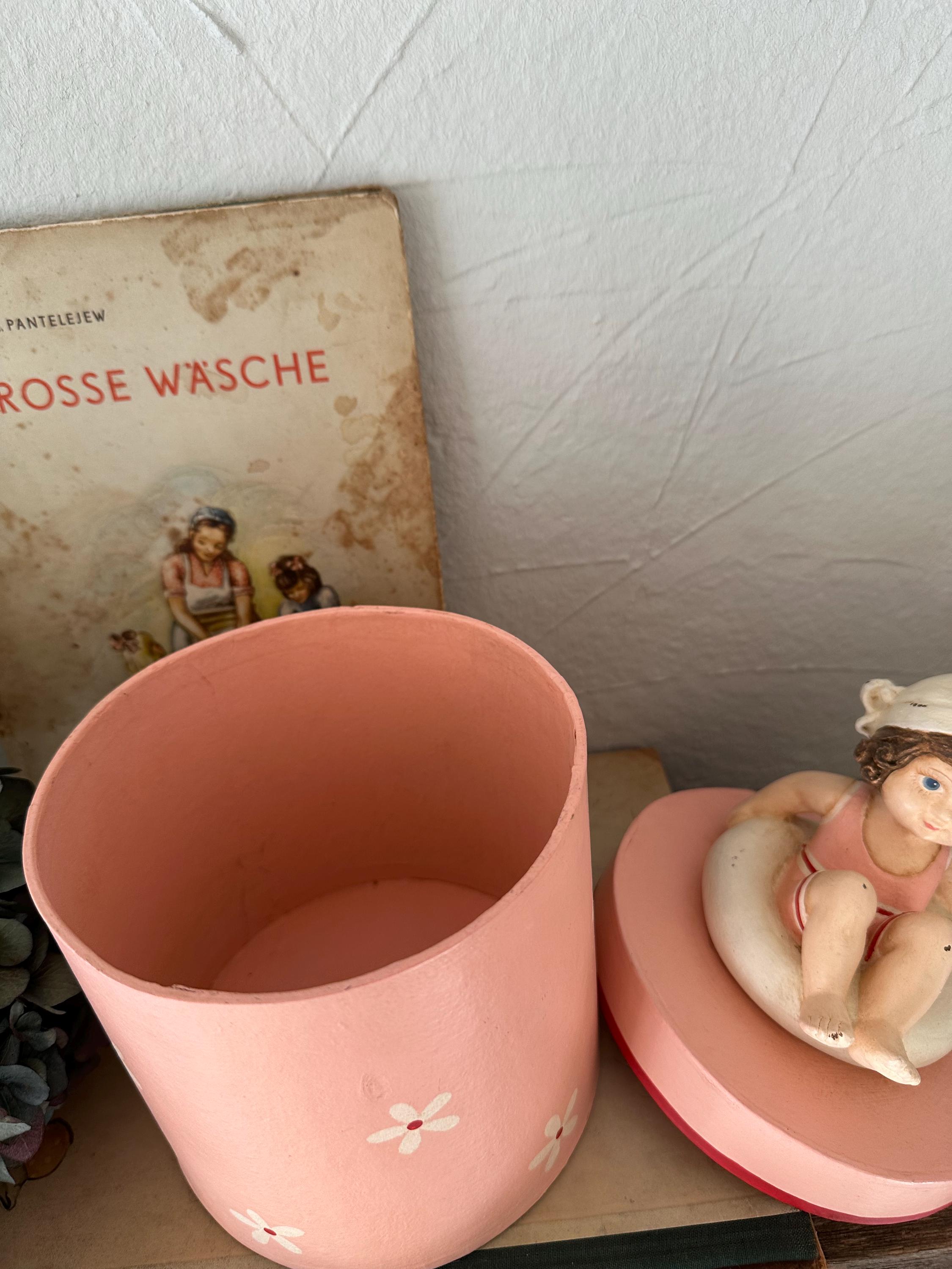 A romantic papier-mâché box with a pretty handmade figure - in a lovely old-fashioned rose - these boxes are from bygone eras and