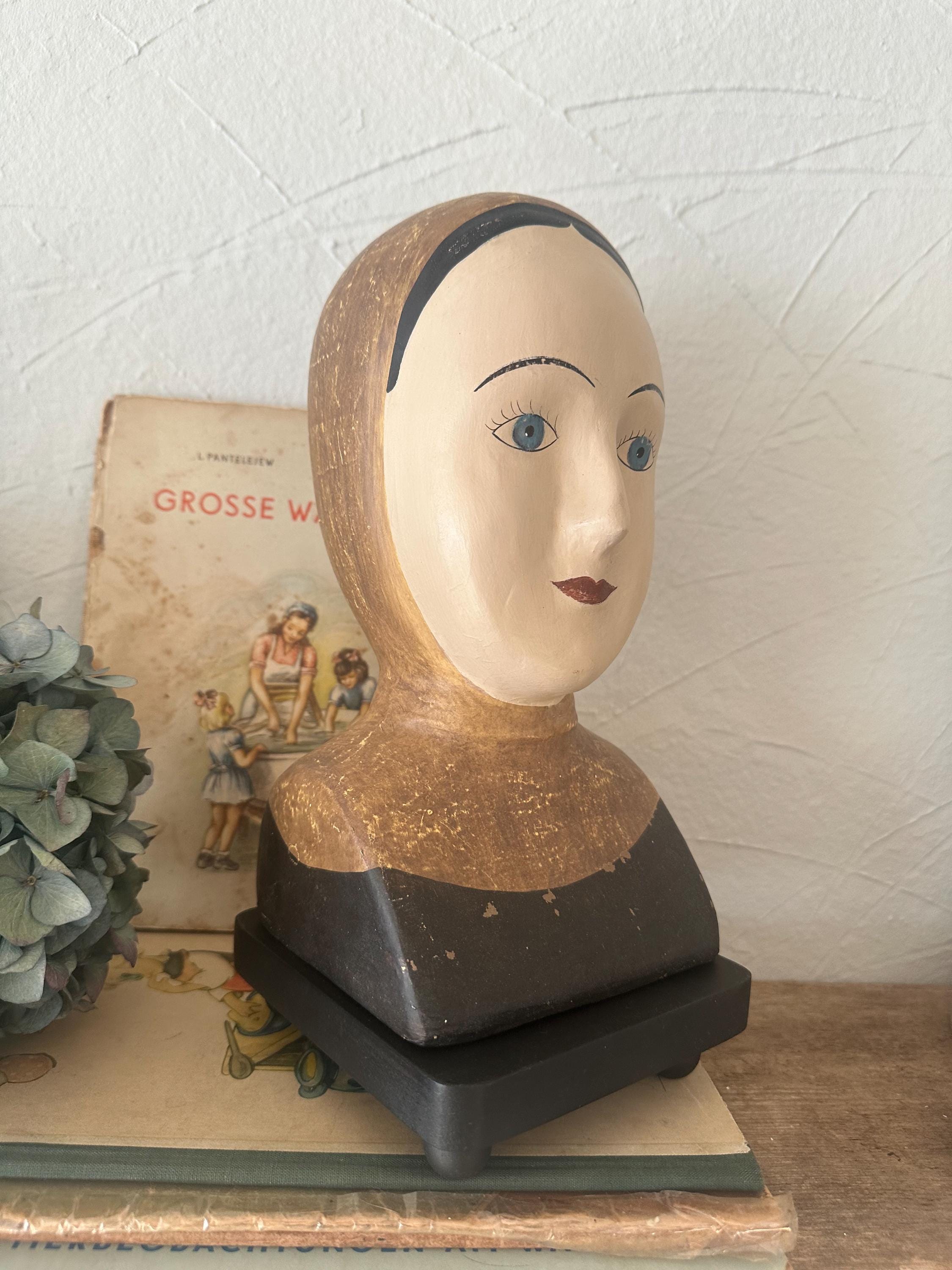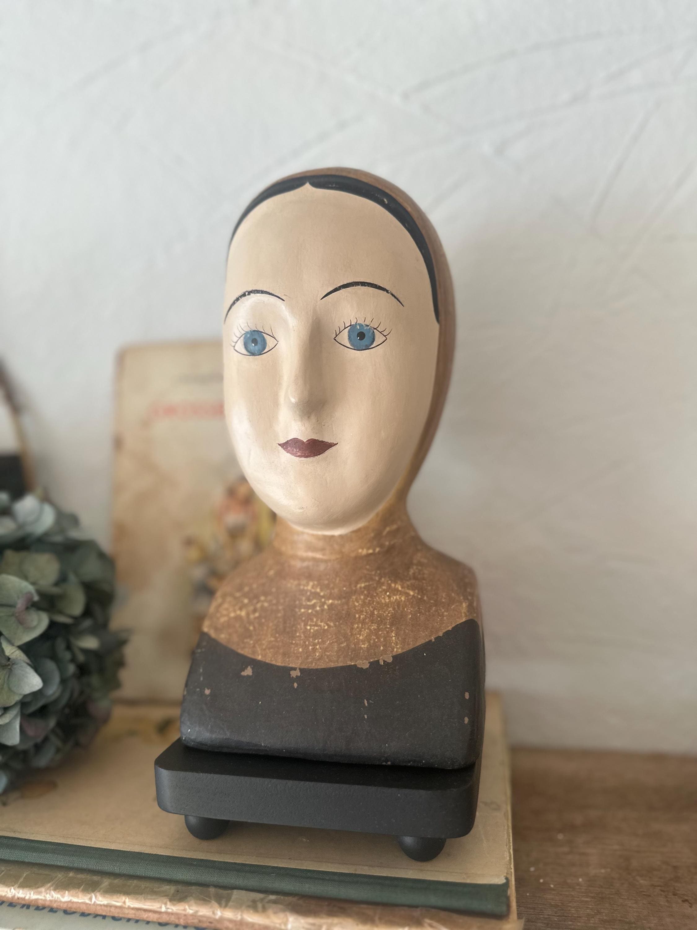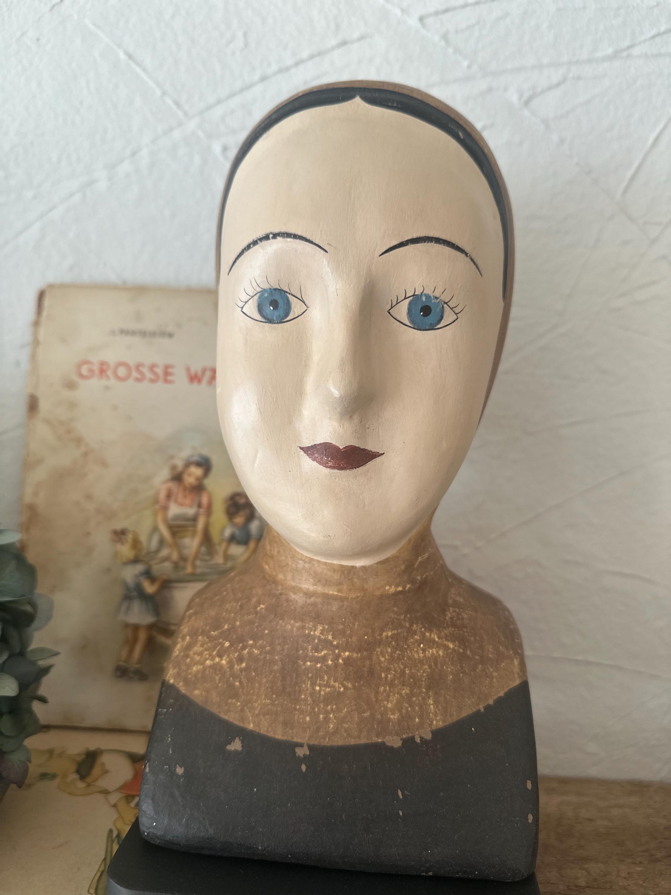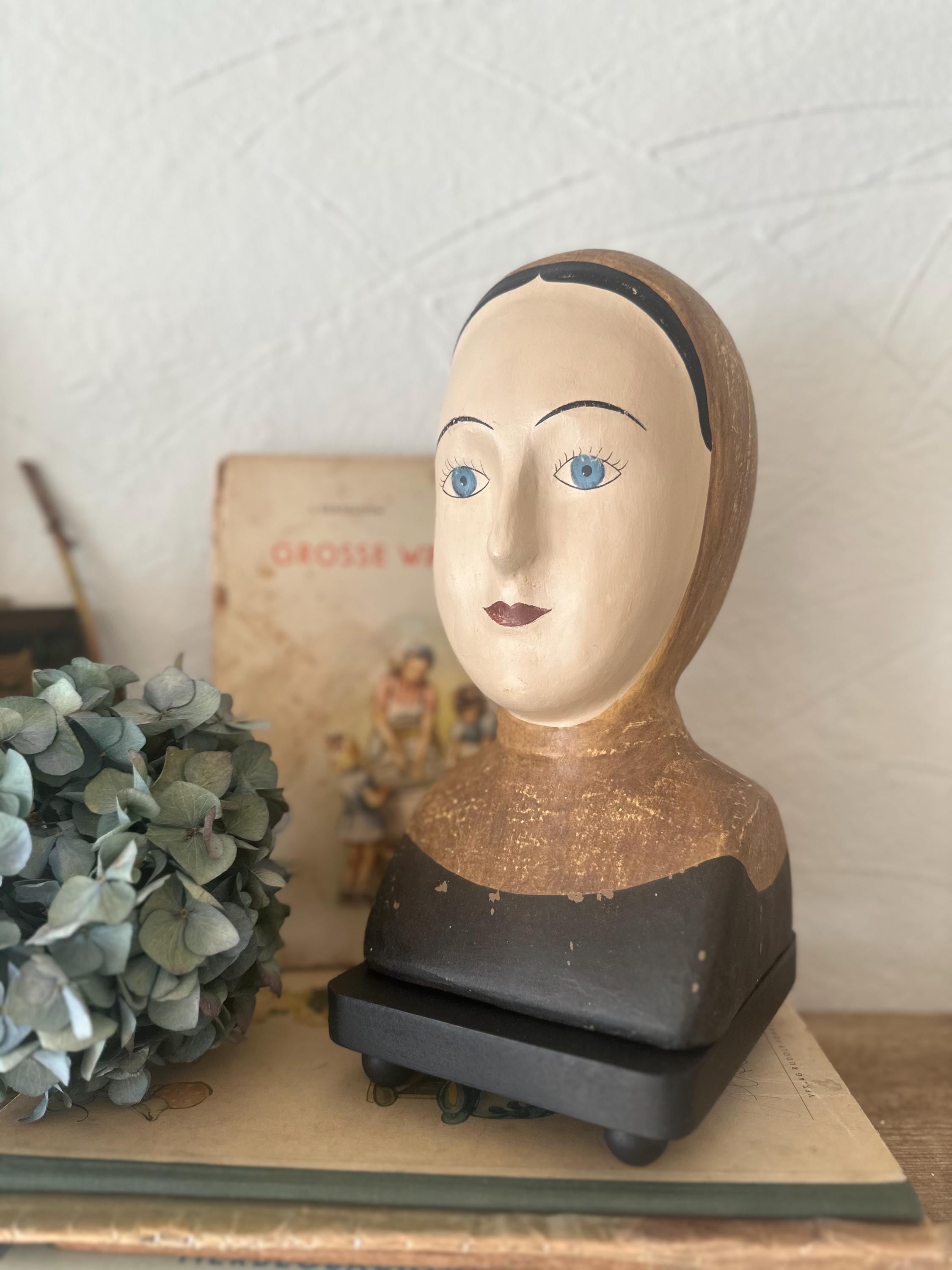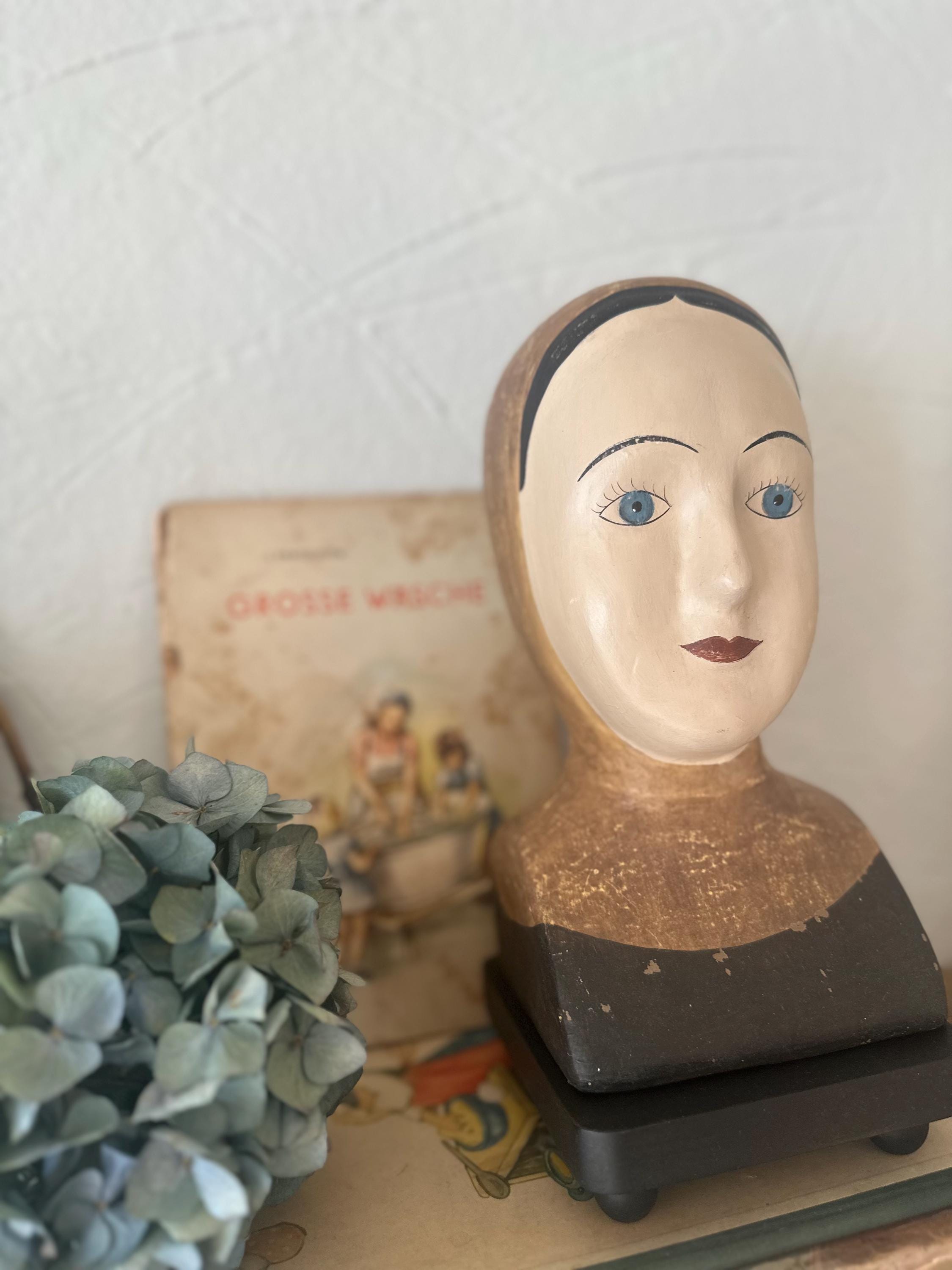 A finesse… A whimsical head with an antique finish, a refinement reminiscent of bygone eras… a beautifully crafted bust… something truly special… beautiful and curious at the same time… an old-world charm… discovering and preserving the old ❤️ These heads were once made of papier-mâché for theatrical puppets… today they are an extraordinary eye-catcher ❤️