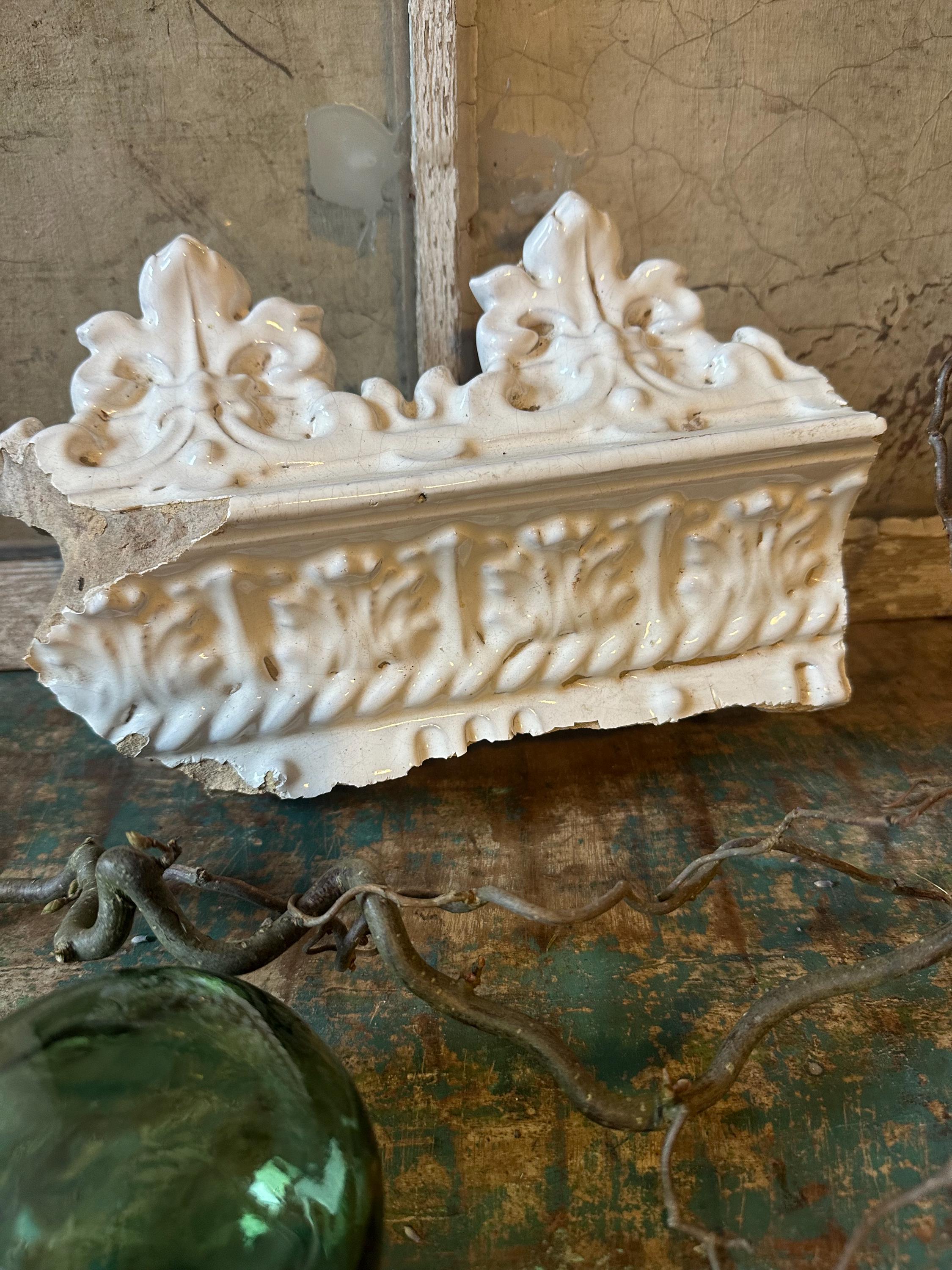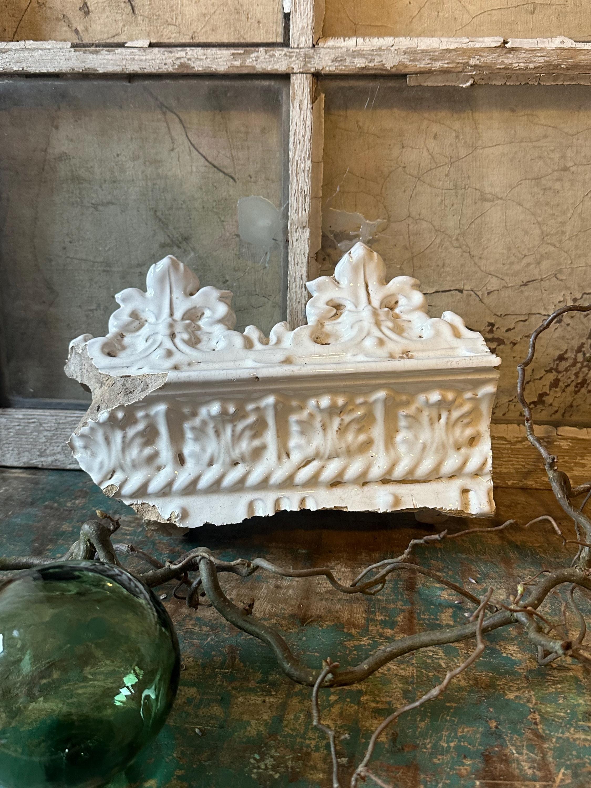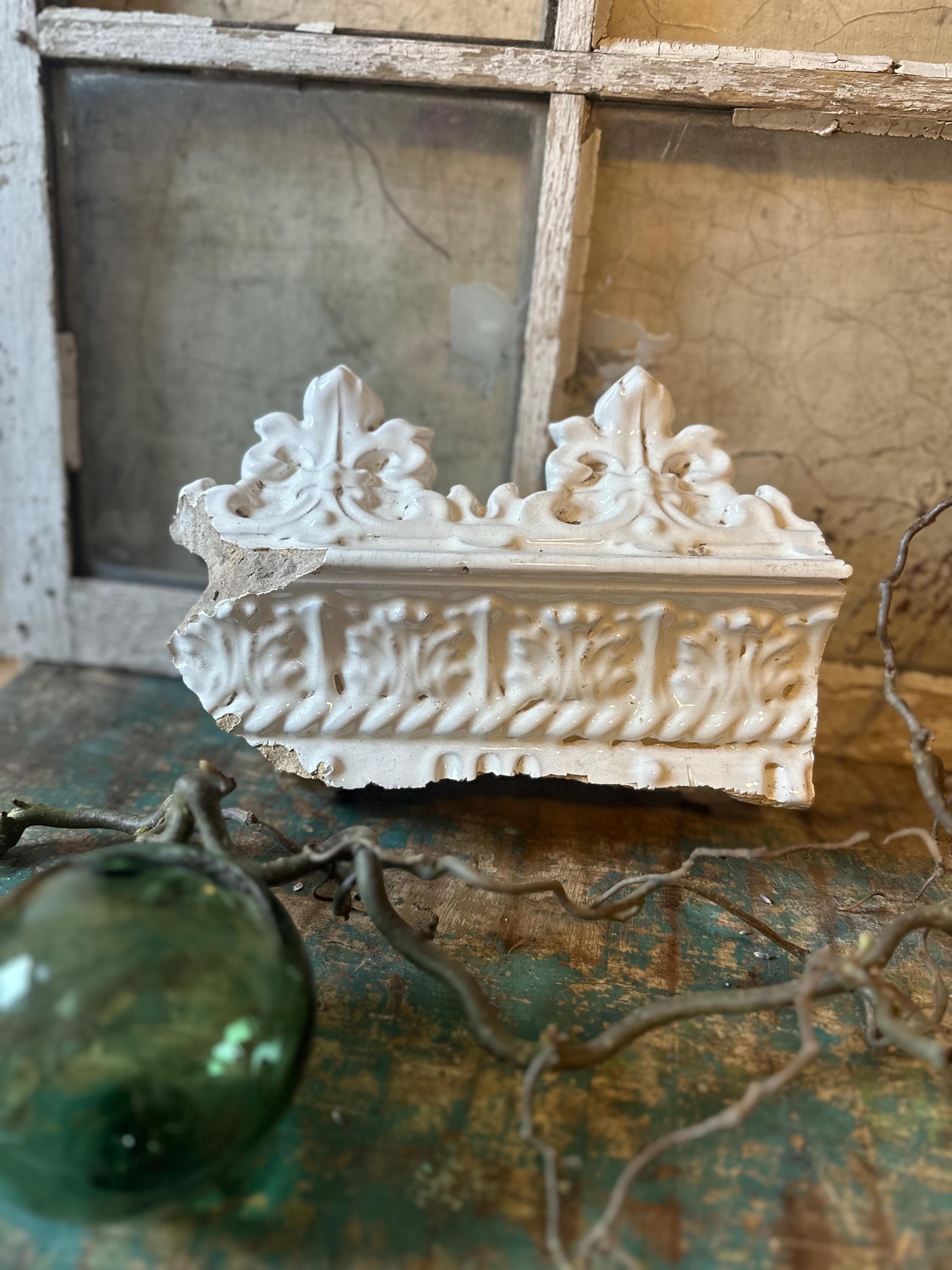 Greta's old antique stove crown - preserving the old, rediscovering old treasures - we offer this old stove crown and elements of an old Swedish round tile stove - these individual pieces can be beautifully showcased in a skillful combination - for an atmospheric living space in white and pastel - here the charm of bygone eras and a touch of dreamy romance come together - they reflect the light in their beautiful glazed white - let yourself be inspired ❤️