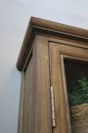 The Marseille wall cabinet from Chic Antique is an elegant and space-saving interpretation of classic French country style. Handcrafted from solid poplar wood, its warm hue and beautiful grain create a timeless and inviting look. With three shelves and two light glass doors, you have plenty of room to display your favorite items – from porcelain and glassware to small decorative pieces.