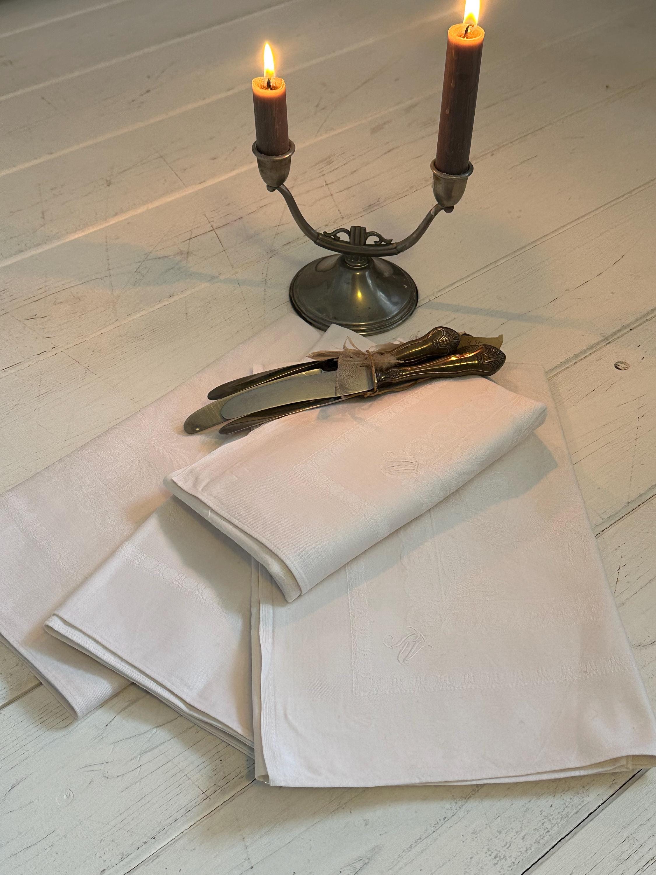 Cloth napkins with embroidery, old antique style, linens, home textiles, set of 4