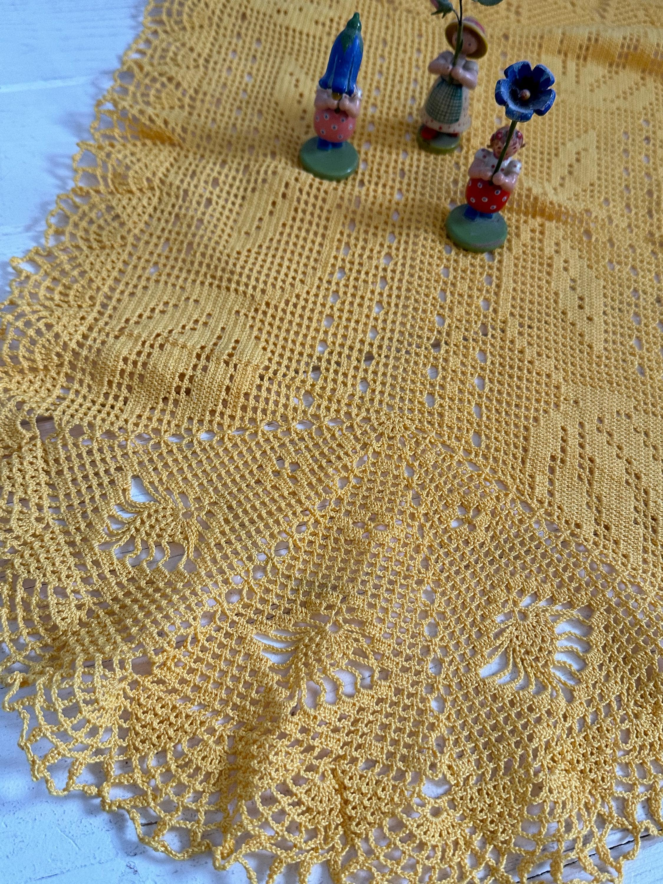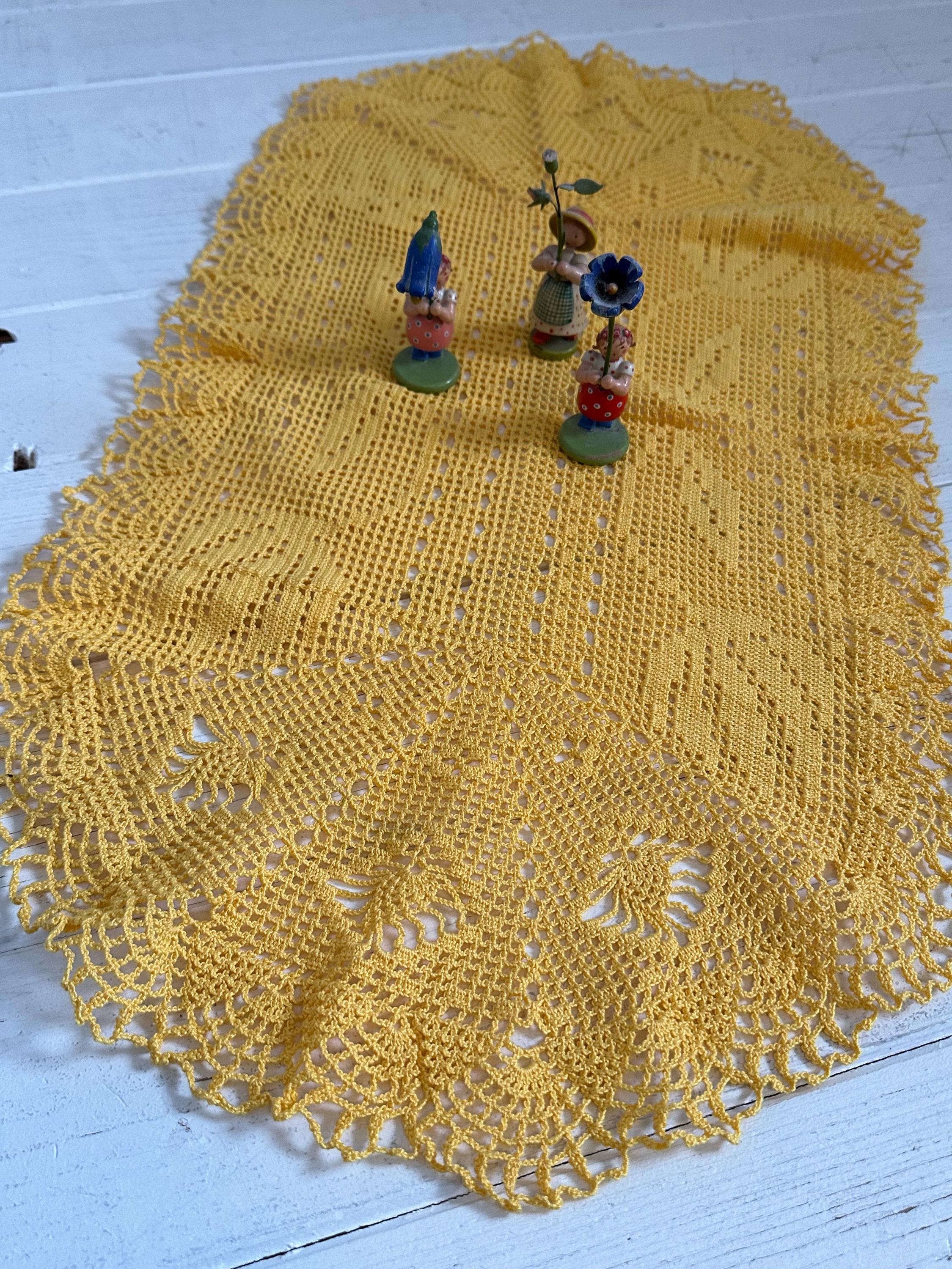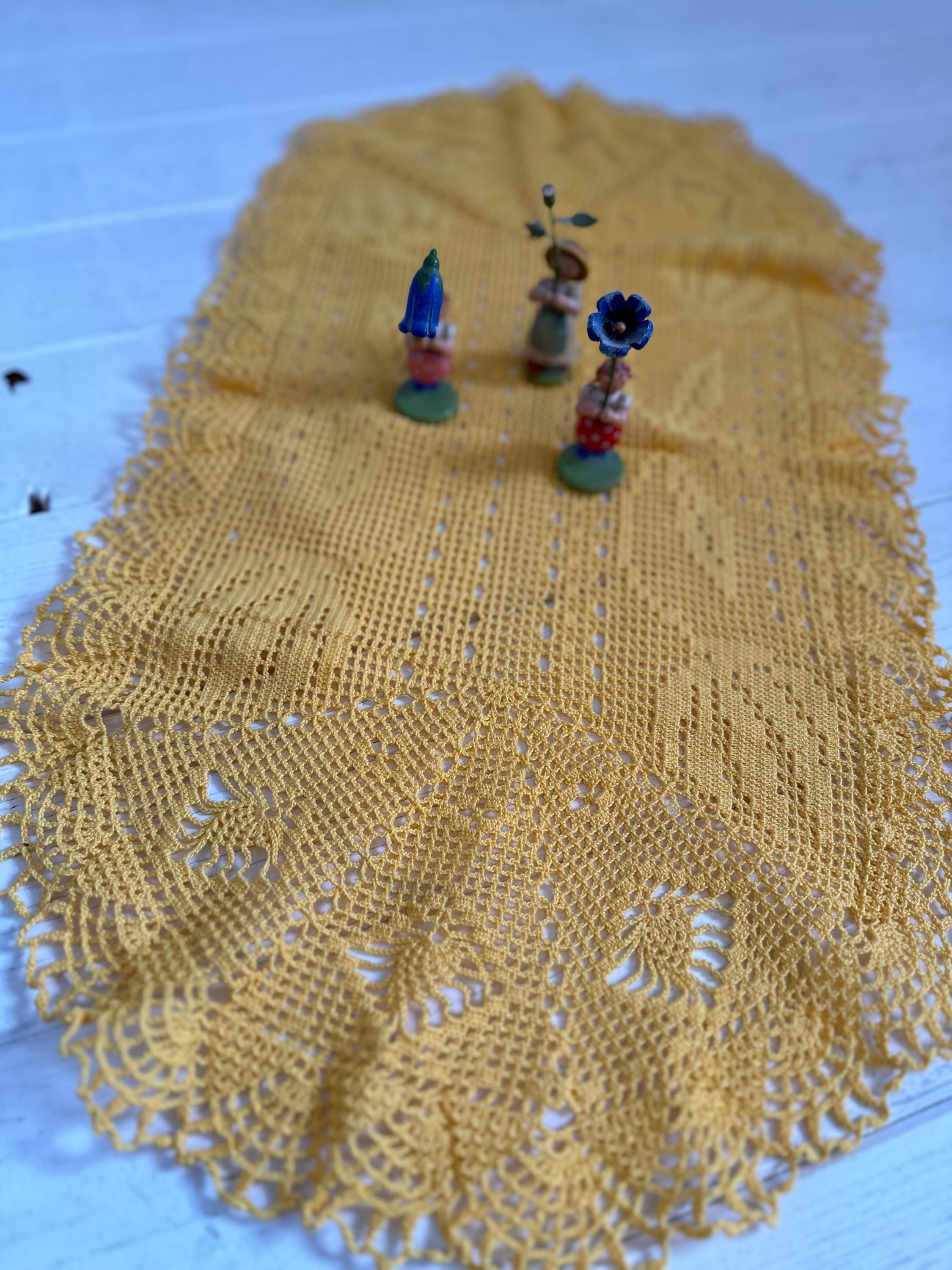 Grandmother's crocheted blankets - handcrafted by grandmothers in a rich yellow, creating an atmosphere of peace and relaxation, for the longing for cozy hours, for enjoying old-world charm, true treasures for your table - they create a harmonious effect and bring a touch of vintage flair to your home ❤️