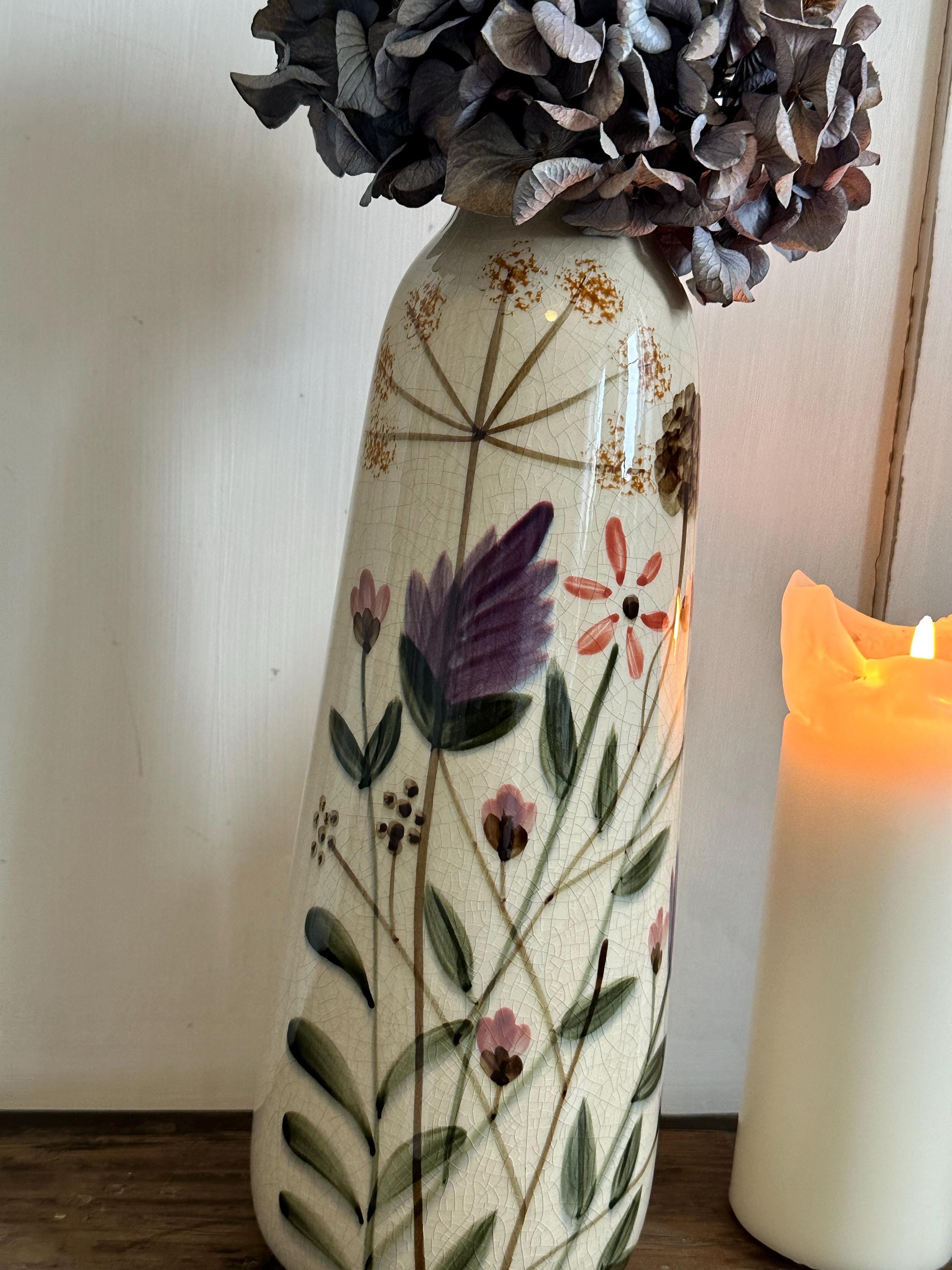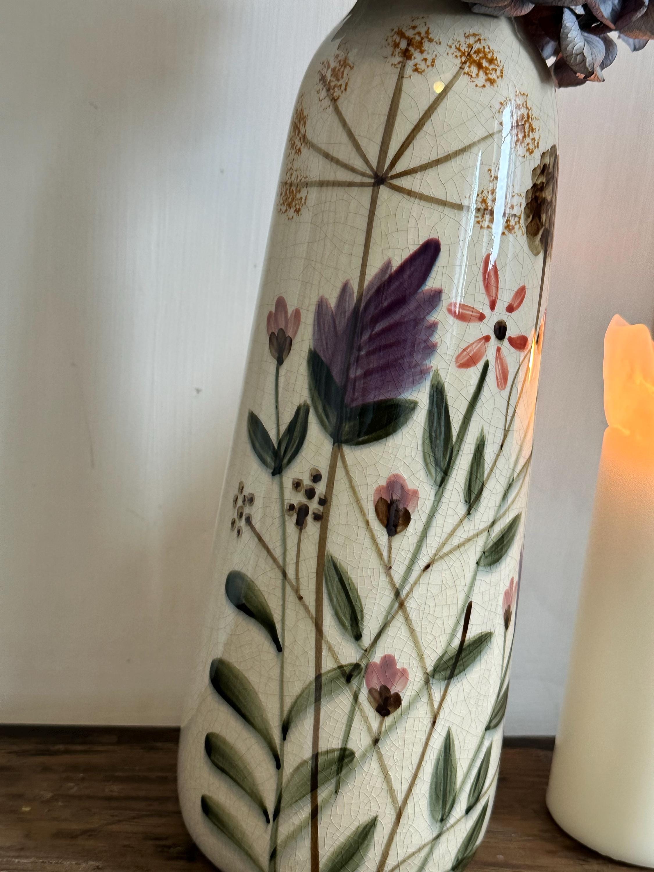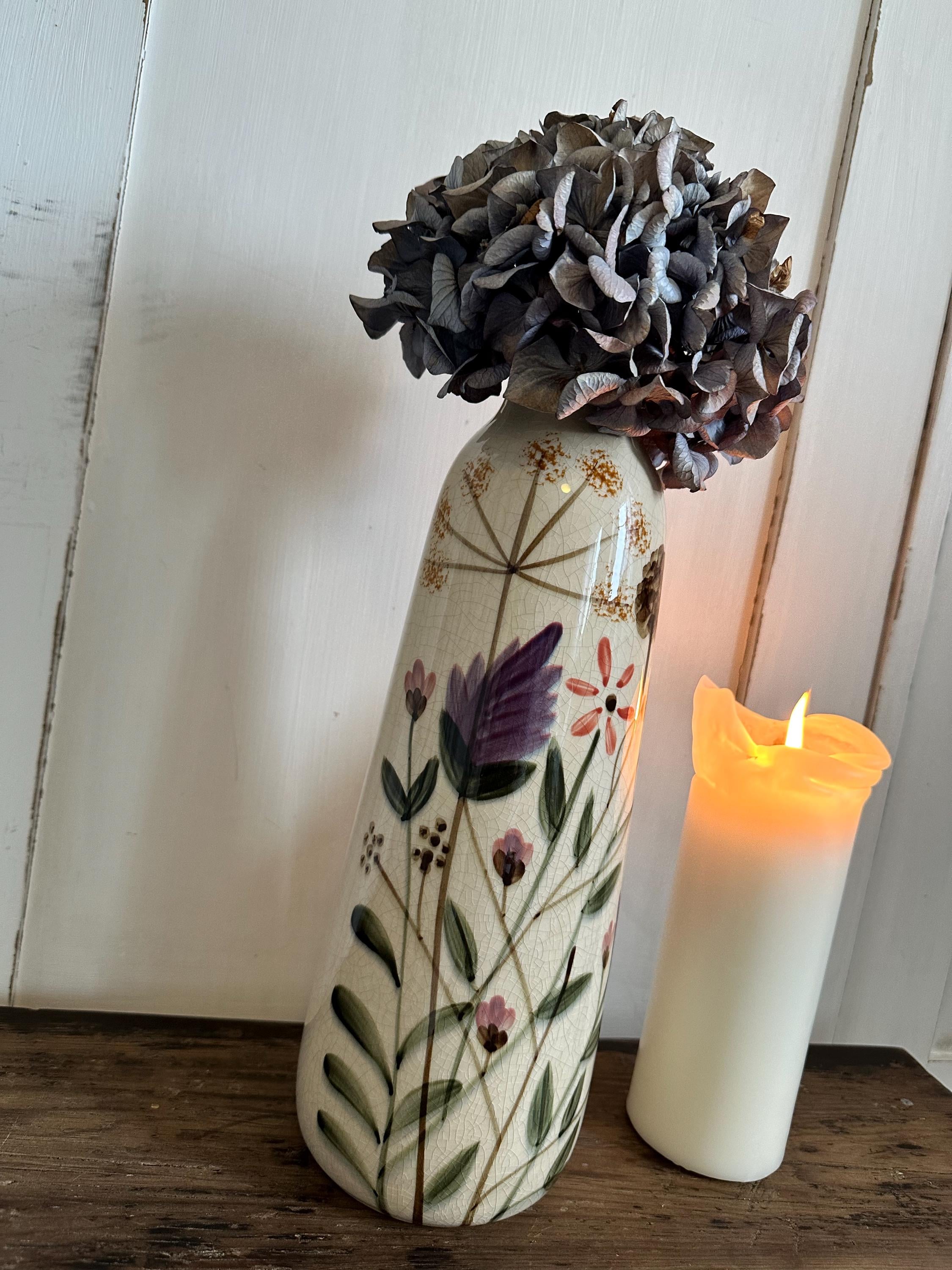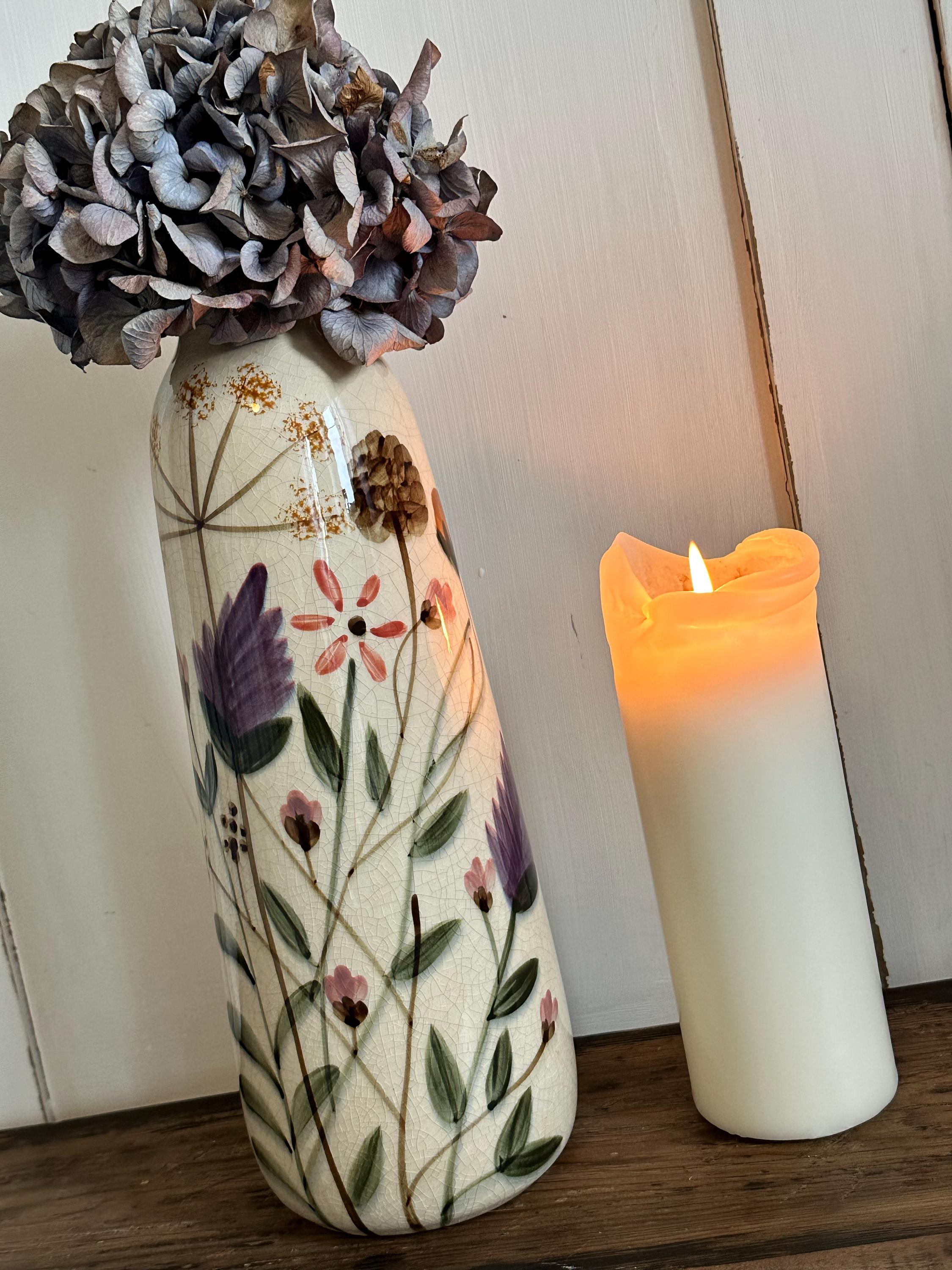 A ceramic vase - this enchanting vase was modeled after the Swedish country house look - a lovely floral pattern combined with this beautiful old cracked patina, as if the vase were decades old - it evokes memories of bygone times and is a beautiful companion for fresh meadow bouquets, branches or dried grasses - create your own ambience.