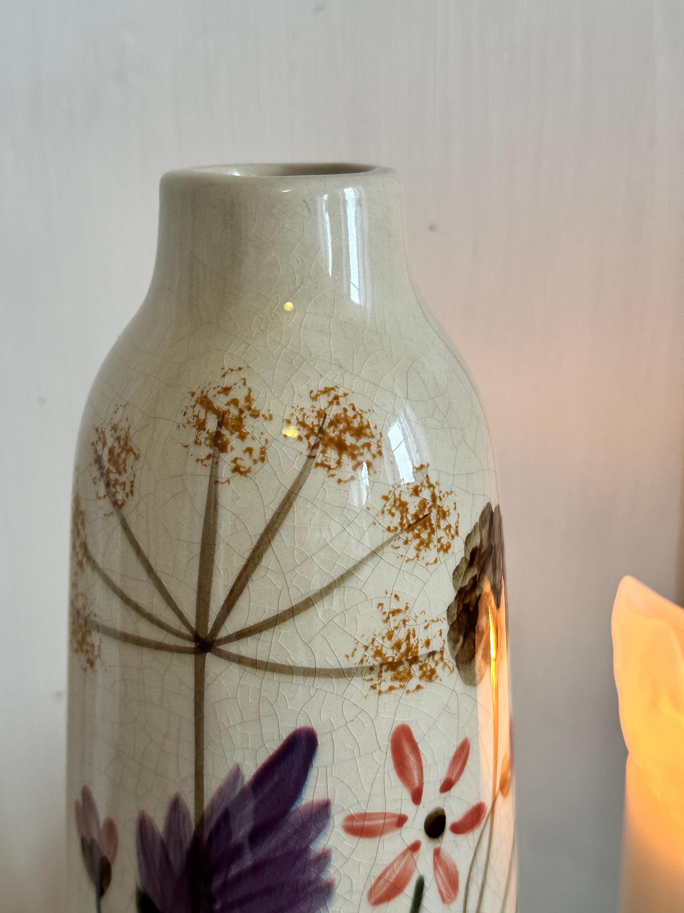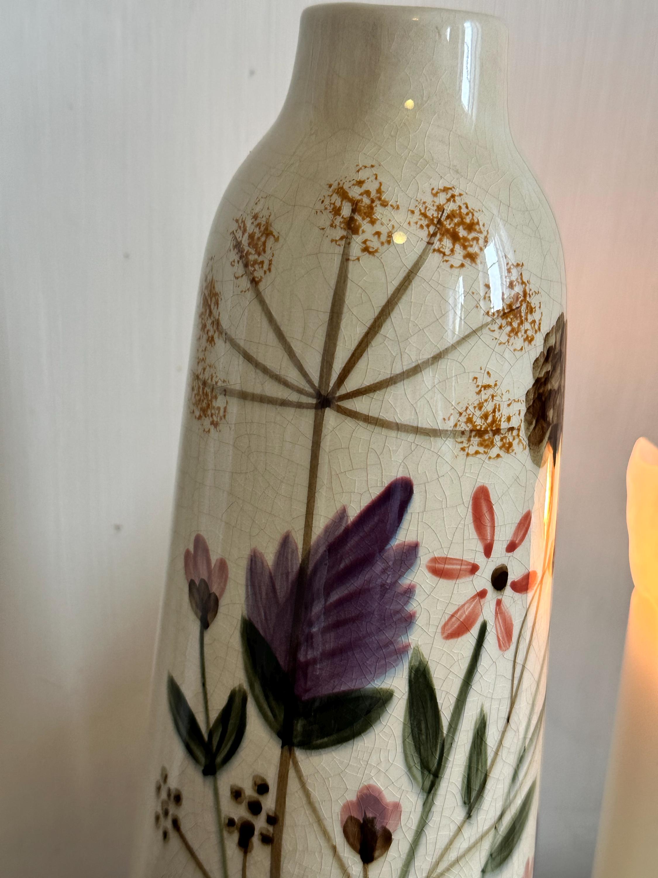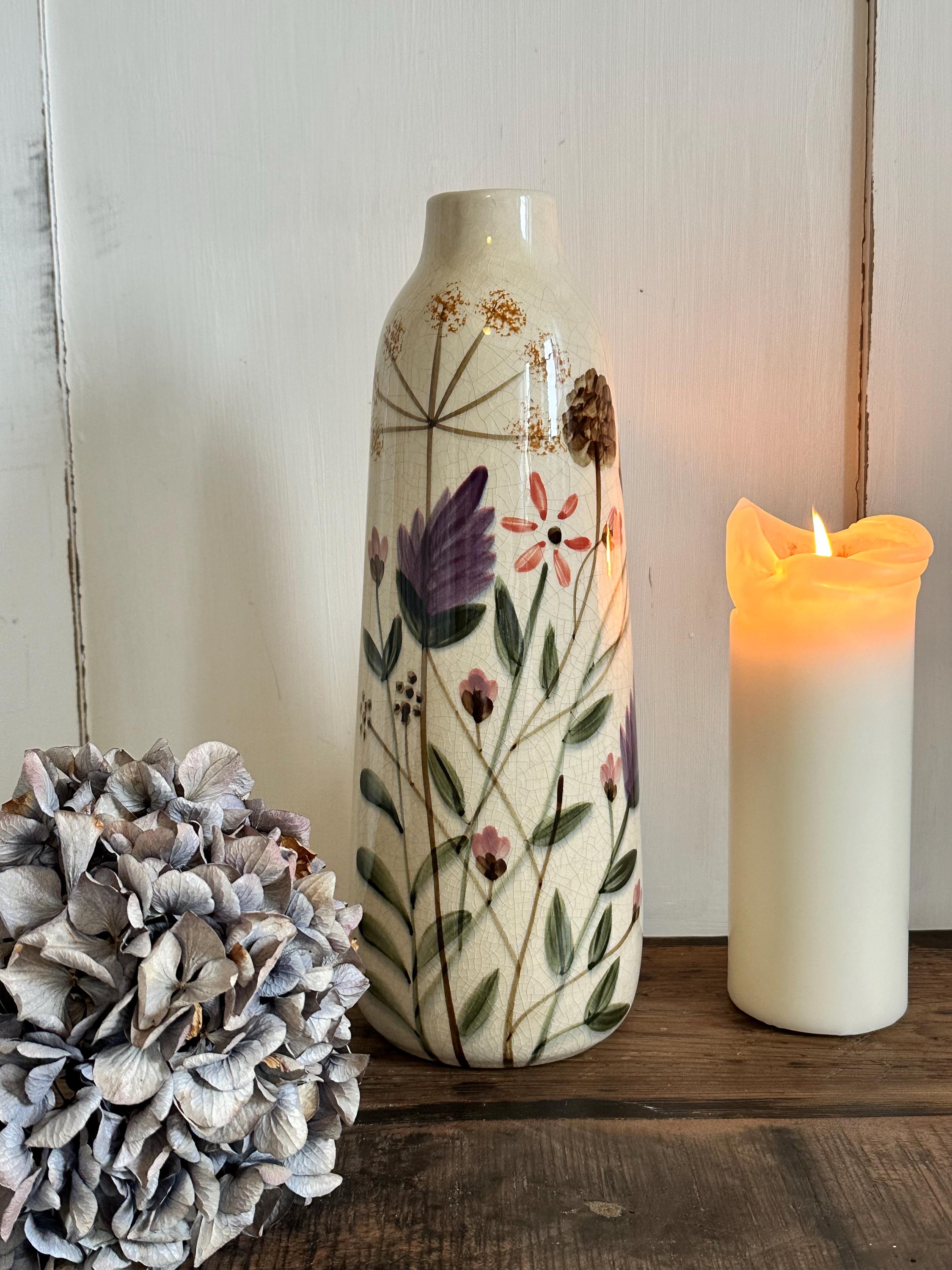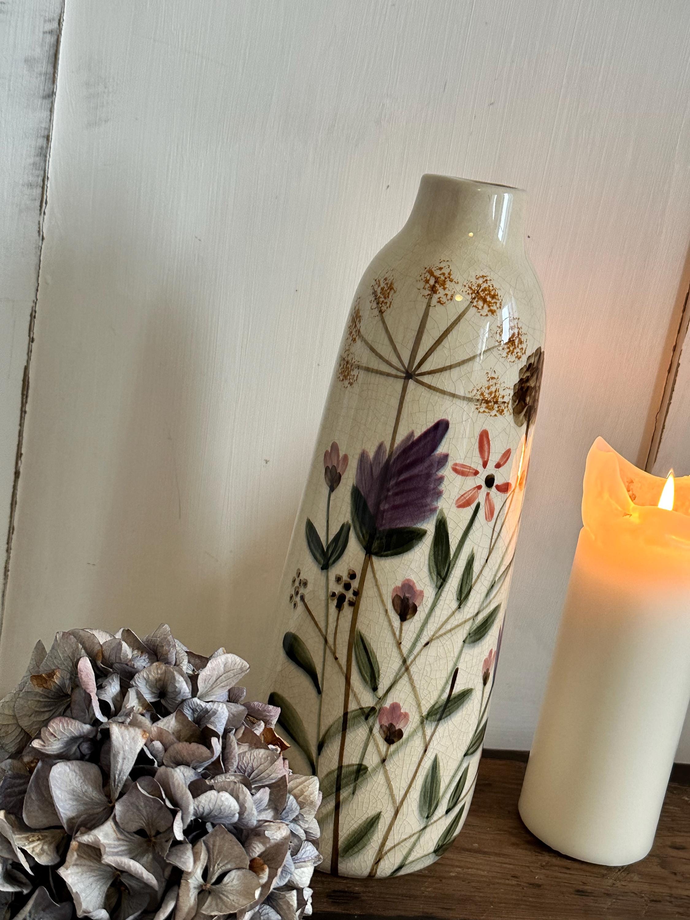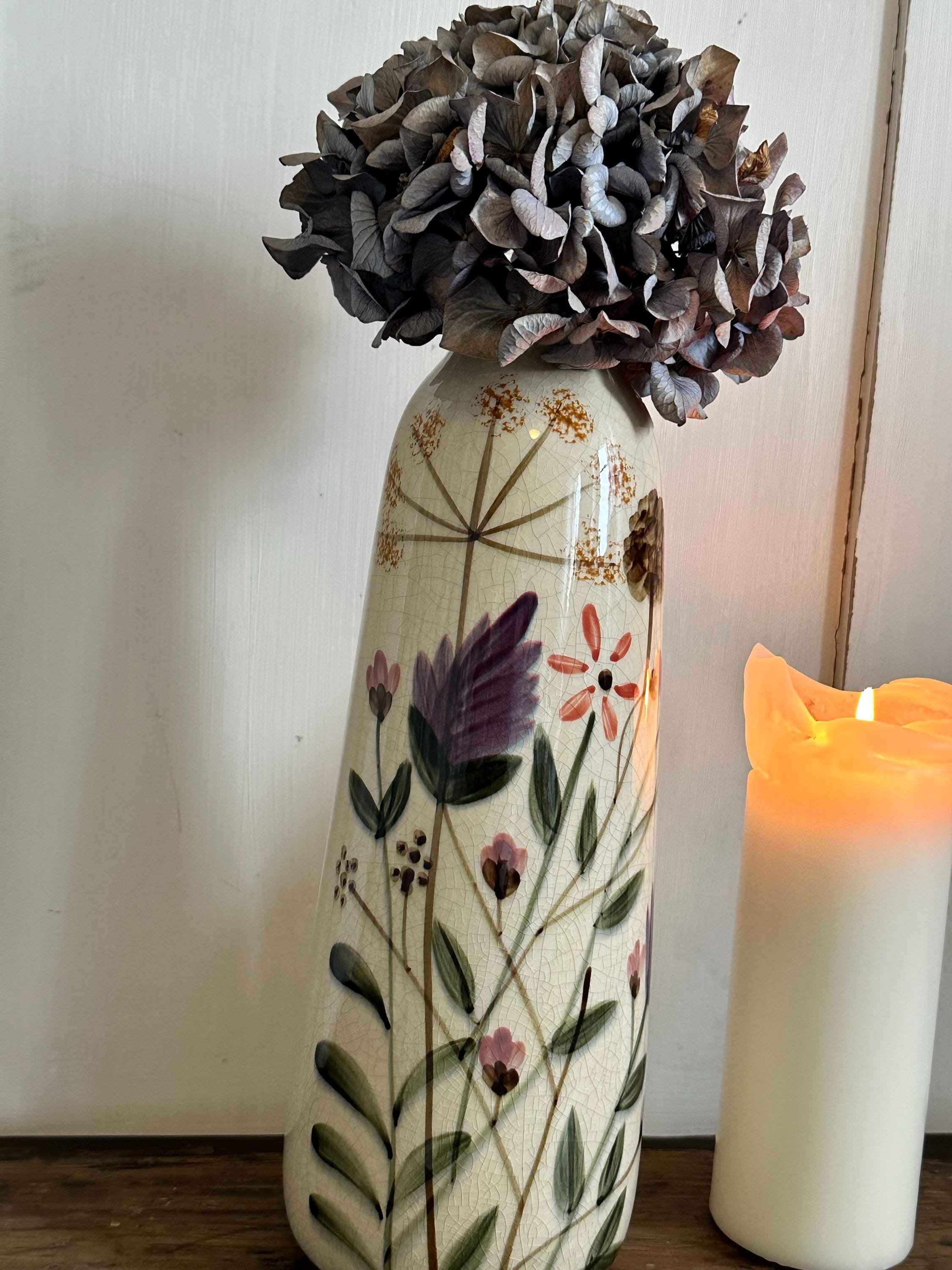 A ceramic vase - this enchanting vase was modeled after the Swedish country house look - a lovely floral pattern combined with this beautiful old cracked patina, as if the vase were decades old - it evokes memories of bygone times and is a beautiful companion for fresh meadow bouquets, branches or dried grasses - create your own ambience.