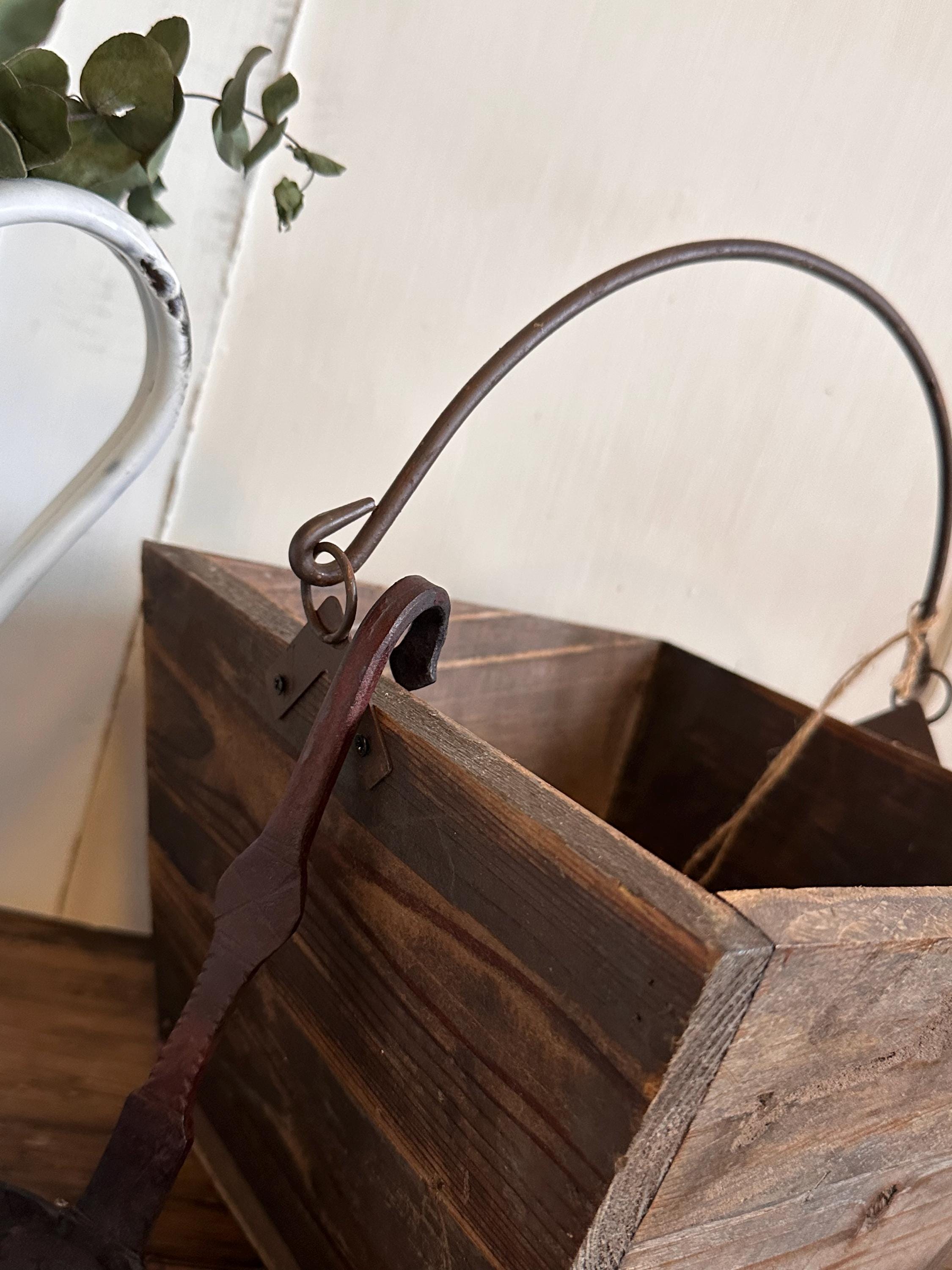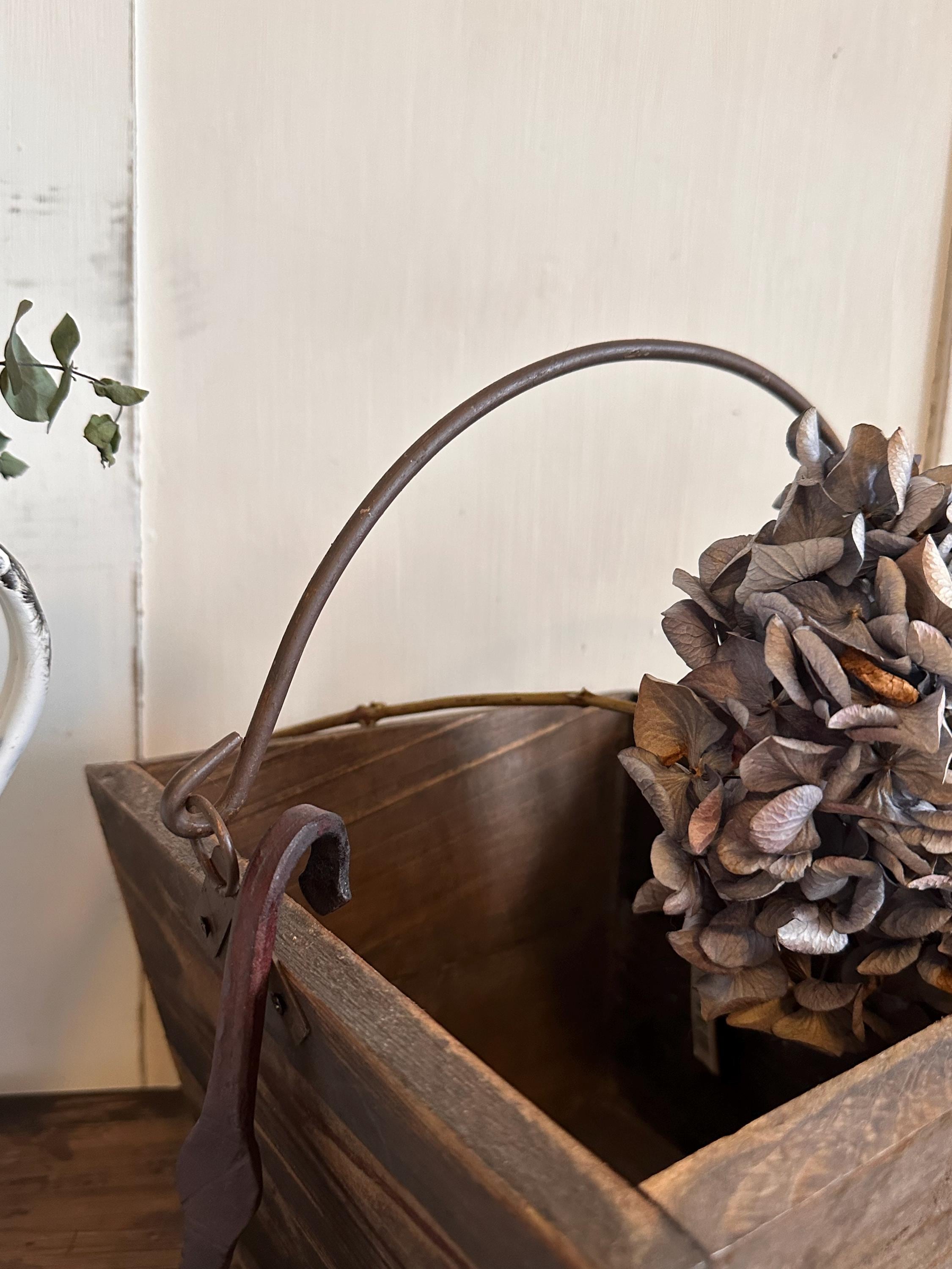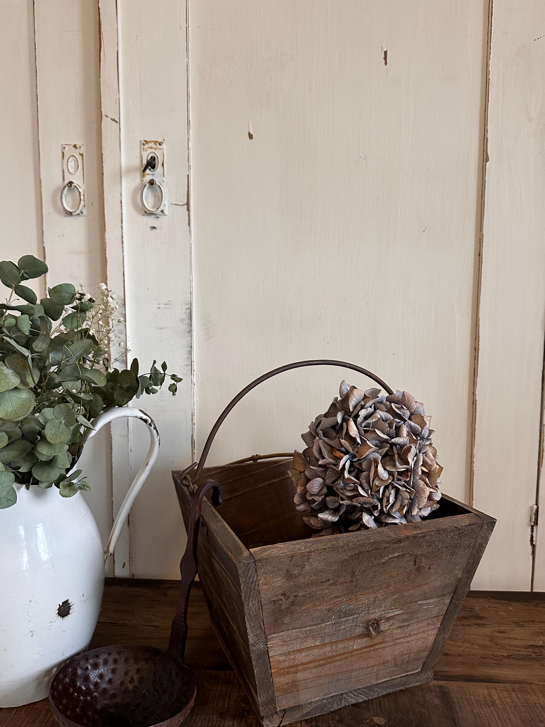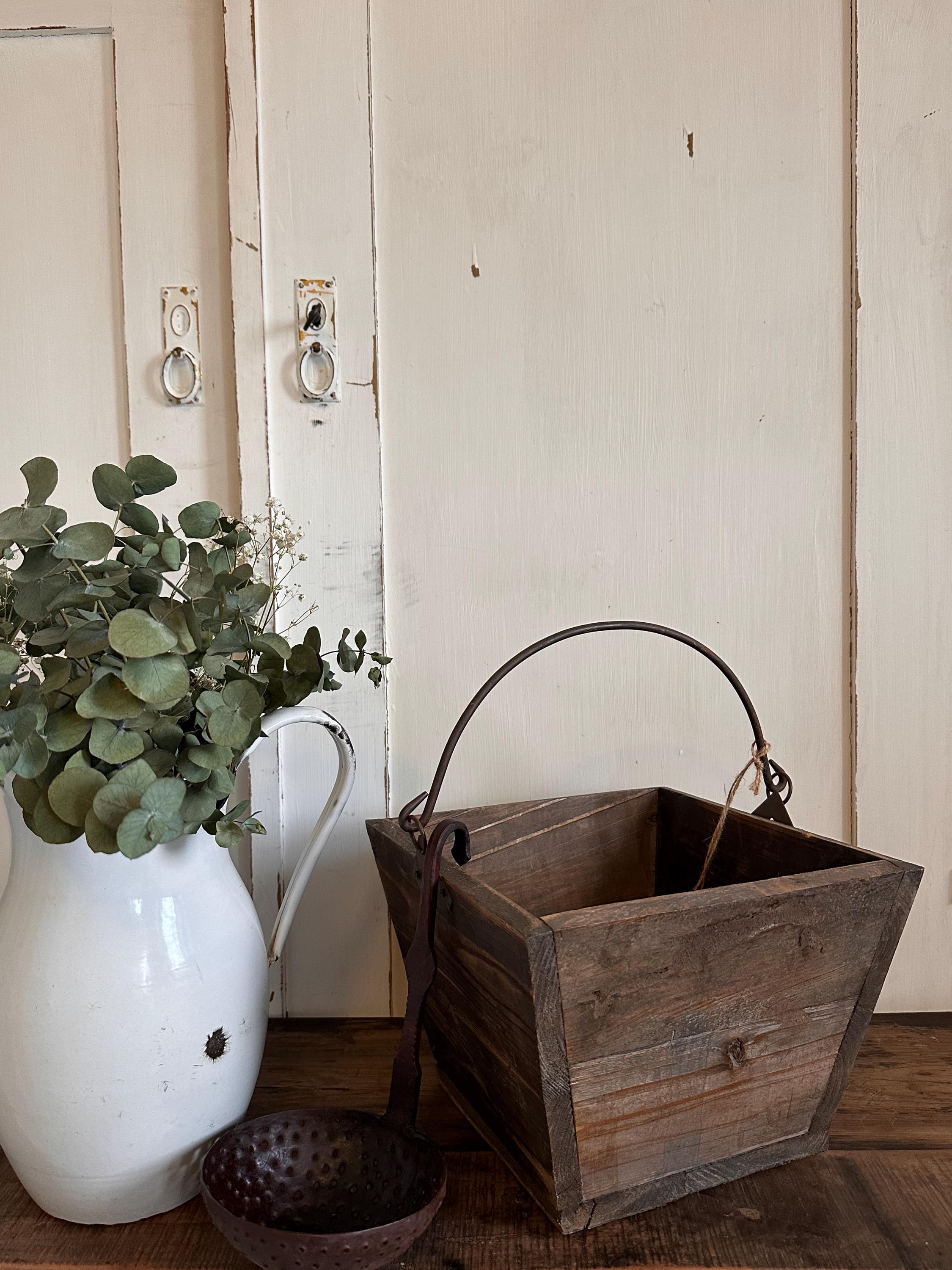 A wooden basket made of sturdy, solid wood with an iron handle. This one is modeled after old utensil boxes – with a beautiful wooden patina – a useful helper for all sorts of small utensils or cutlery, but also for creating magical arrangements for any season with a touch of country idyll – for dreamy ideas with that wow effect❤️