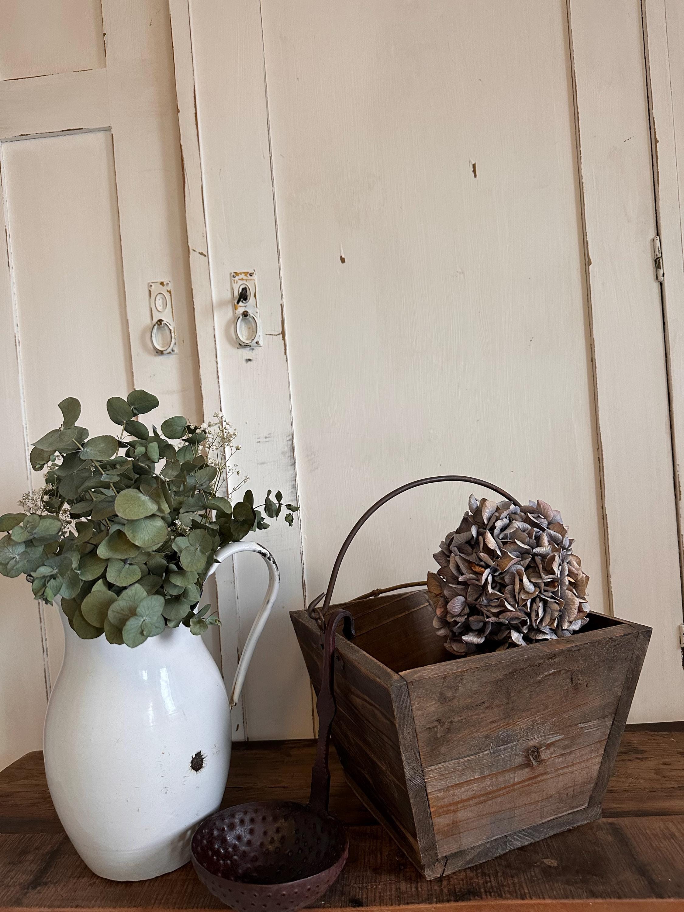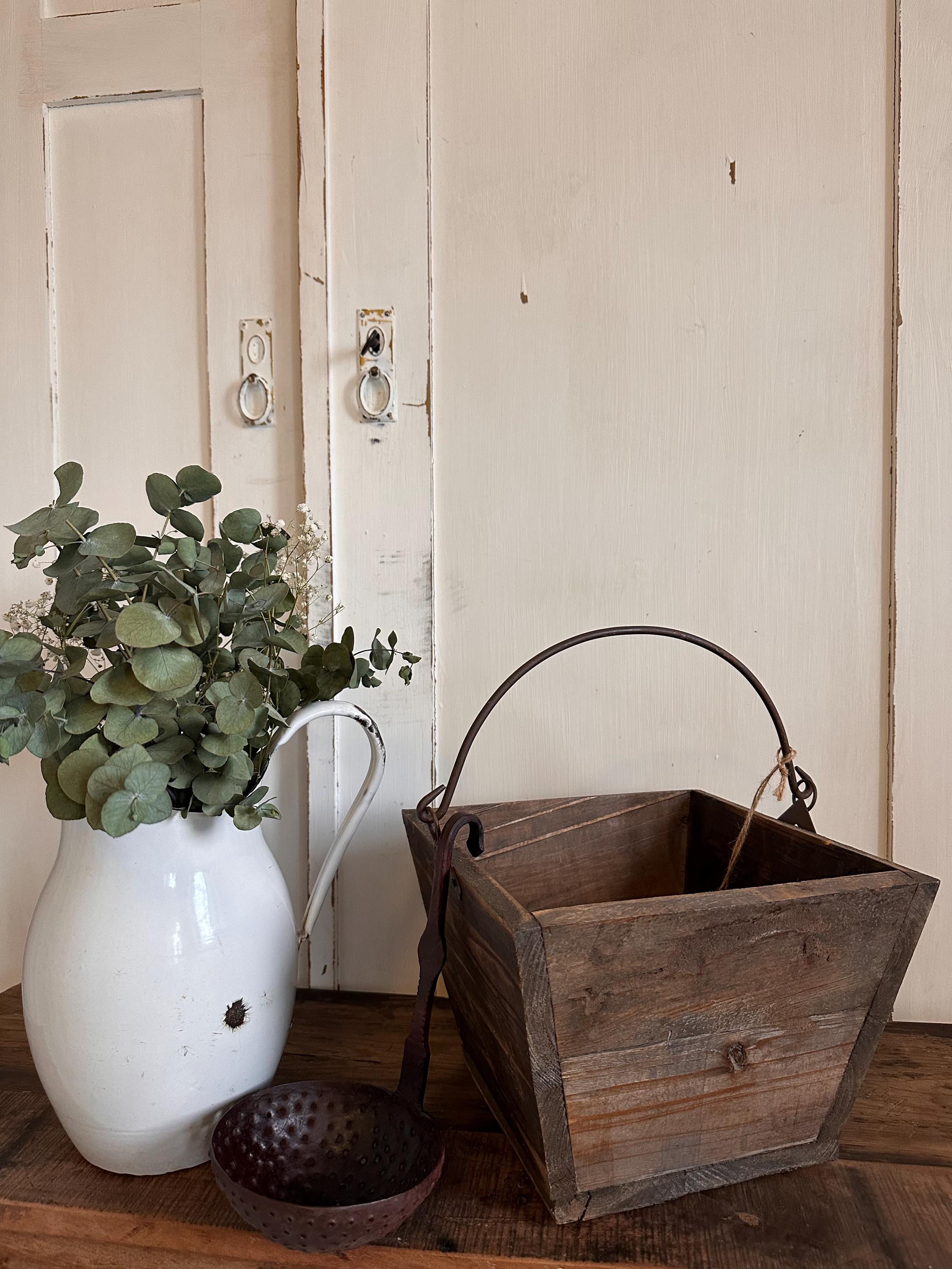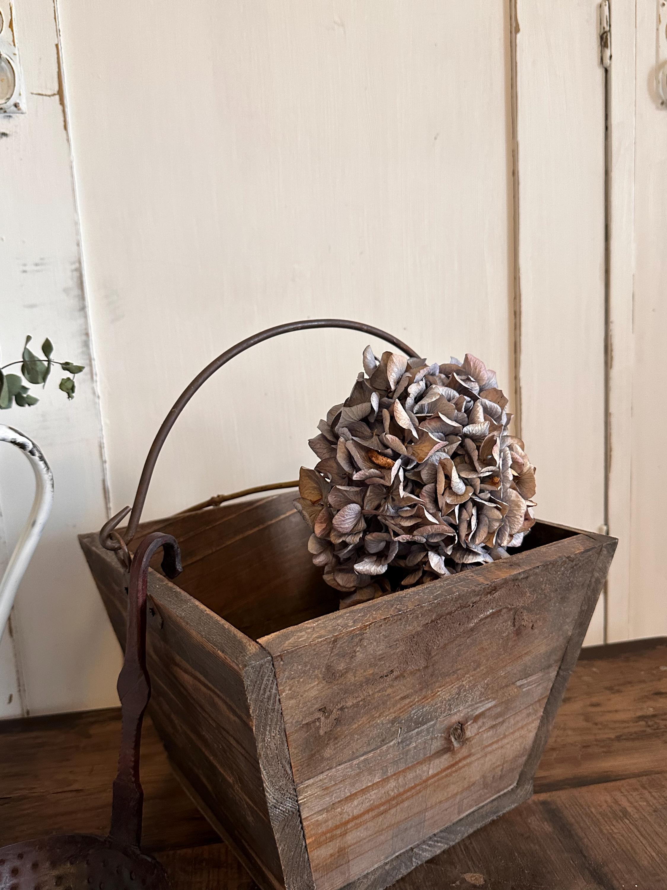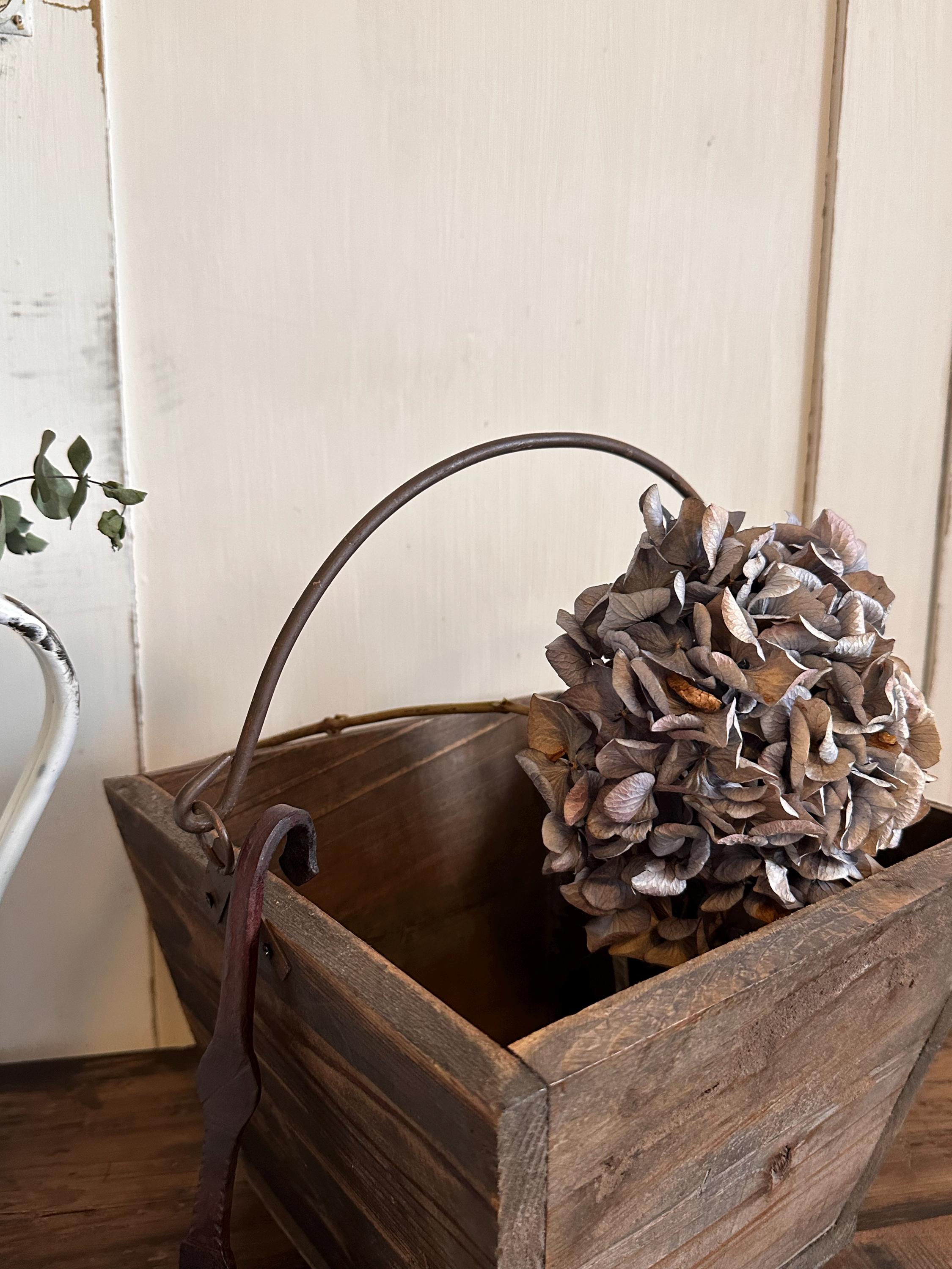 A wooden basket made of sturdy, solid wood with an iron handle. This one is modeled after old utensil boxes – with a beautiful wooden patina – a useful helper for all sorts of small utensils or cutlery, but also for creating magical arrangements for any season with a touch of country idyll – for dreamy ideas with that wow effect❤️